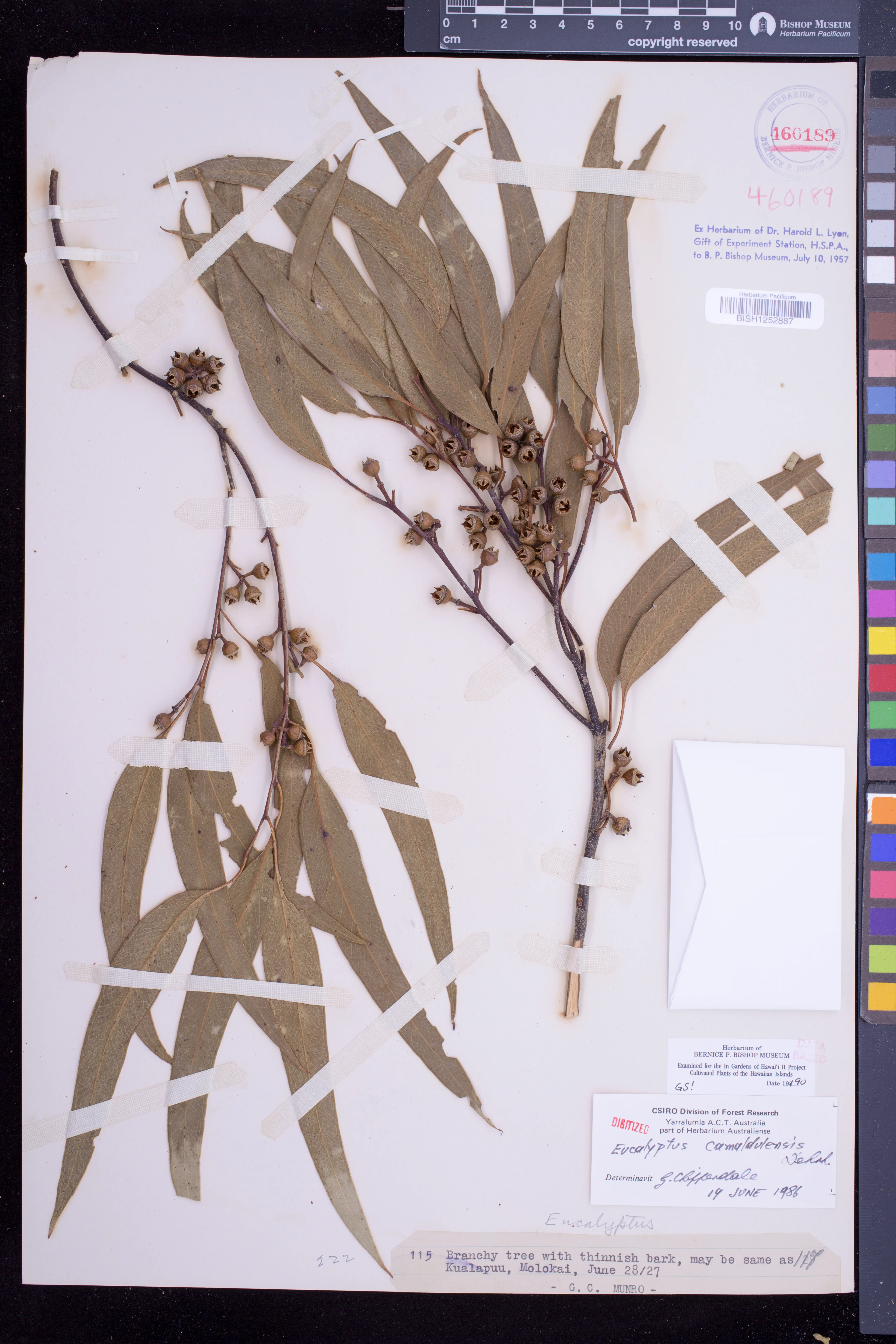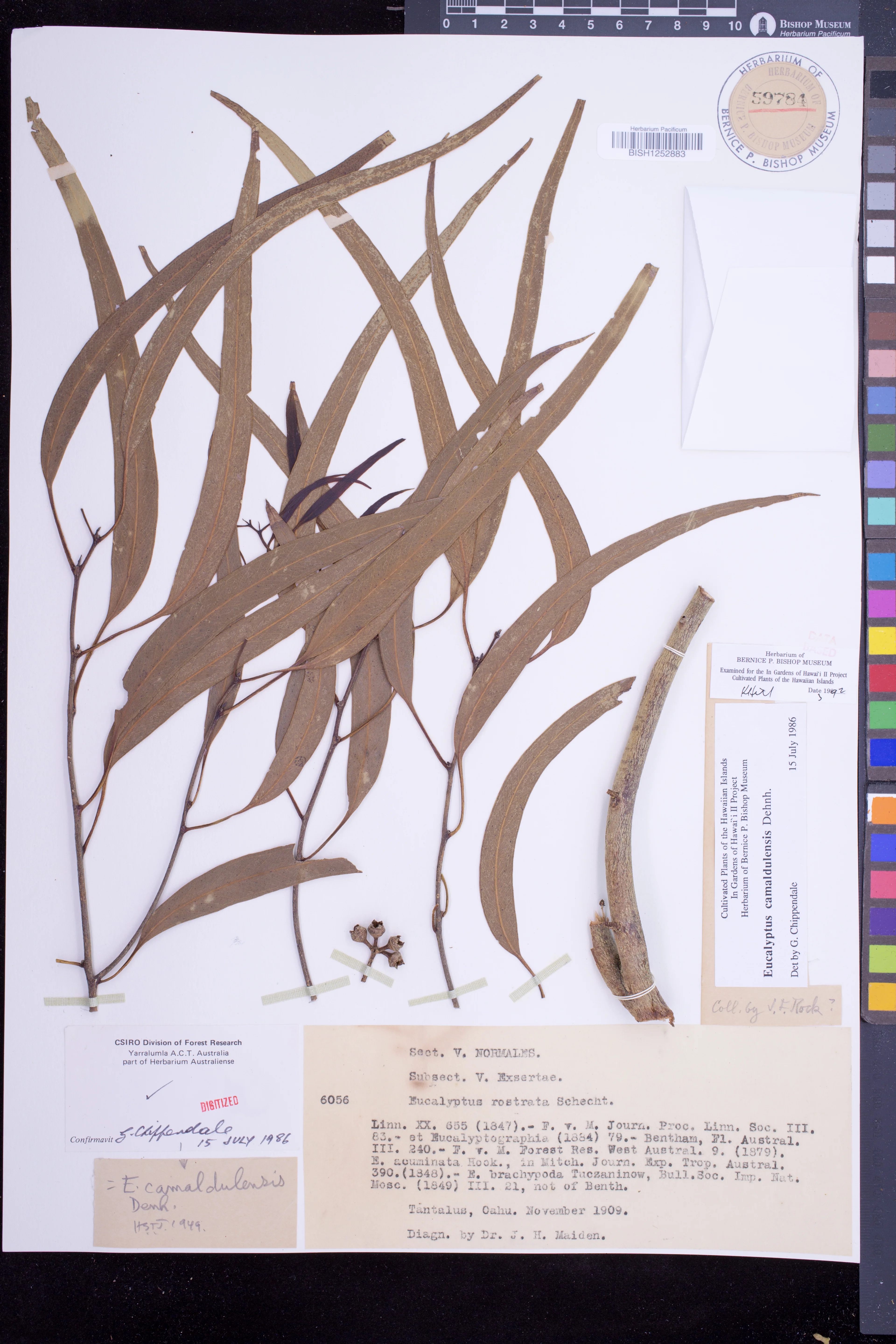 | 6 | Eucalyptus camaldulensis | Dehnh. | tantalus, oahu | On rotten fallen log. | PRESERVED_SPECIMEN | rock, j.f.c. | collector number: 6056 | Oahu | BISH | 11/1/1909 |