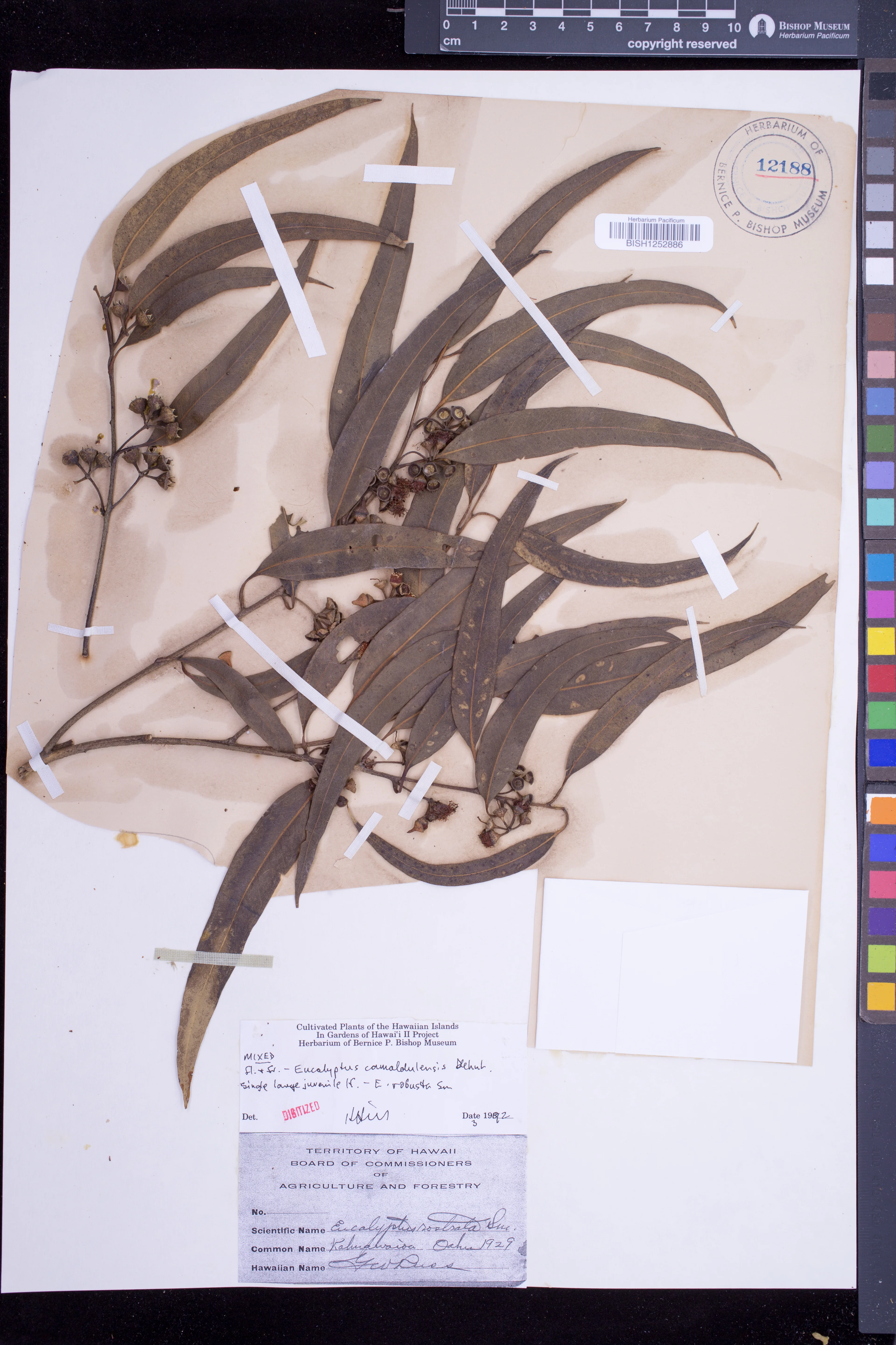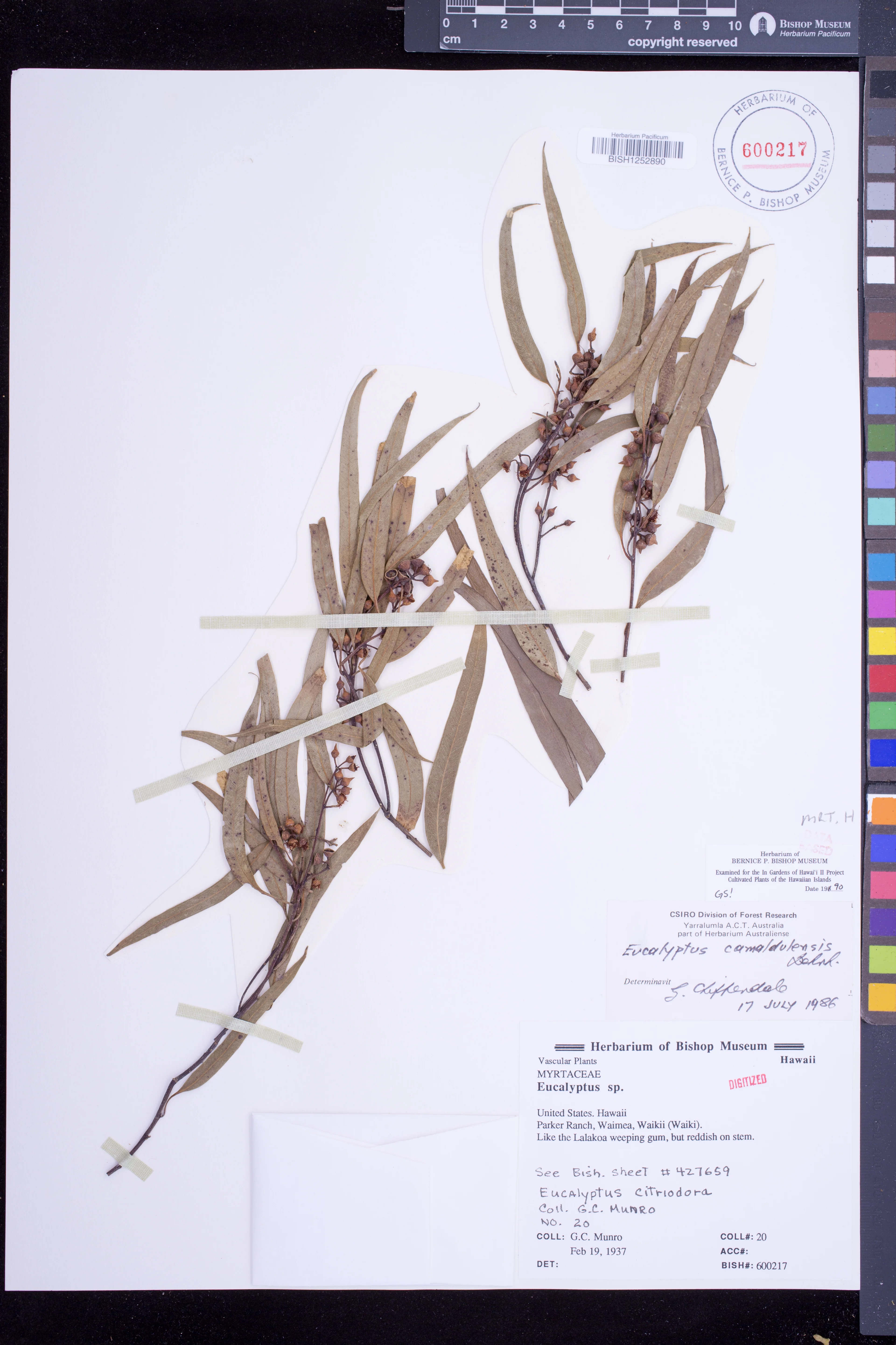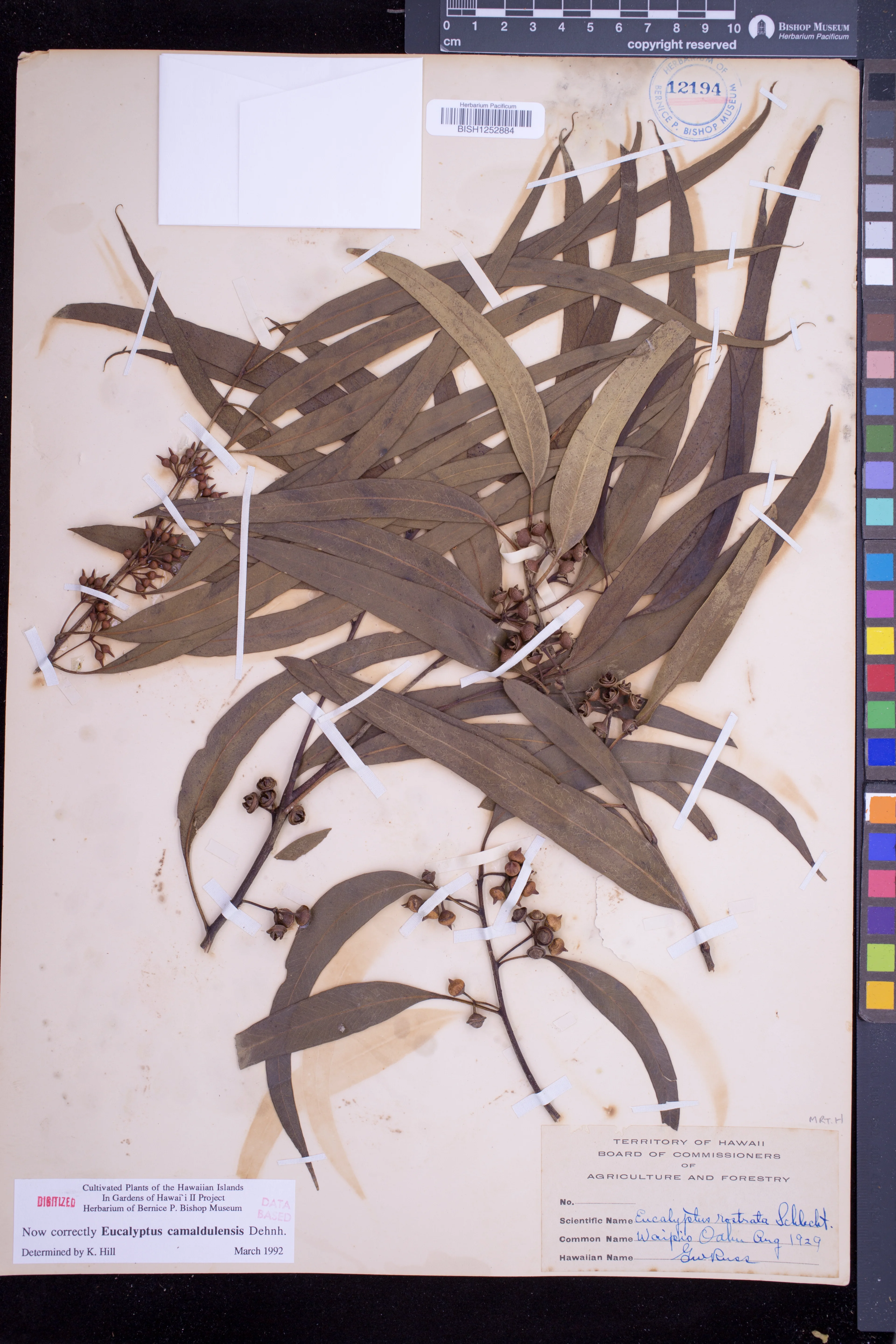 | 12 | Eucalyptus camaldulensis | Dehnh. | parker ranch, waimea, waikii (waiki) | PRESERVED_SPECIMEN | munro, g.c. | collector number: 20 | Hawaii | BISH | 2/19/1937 | |