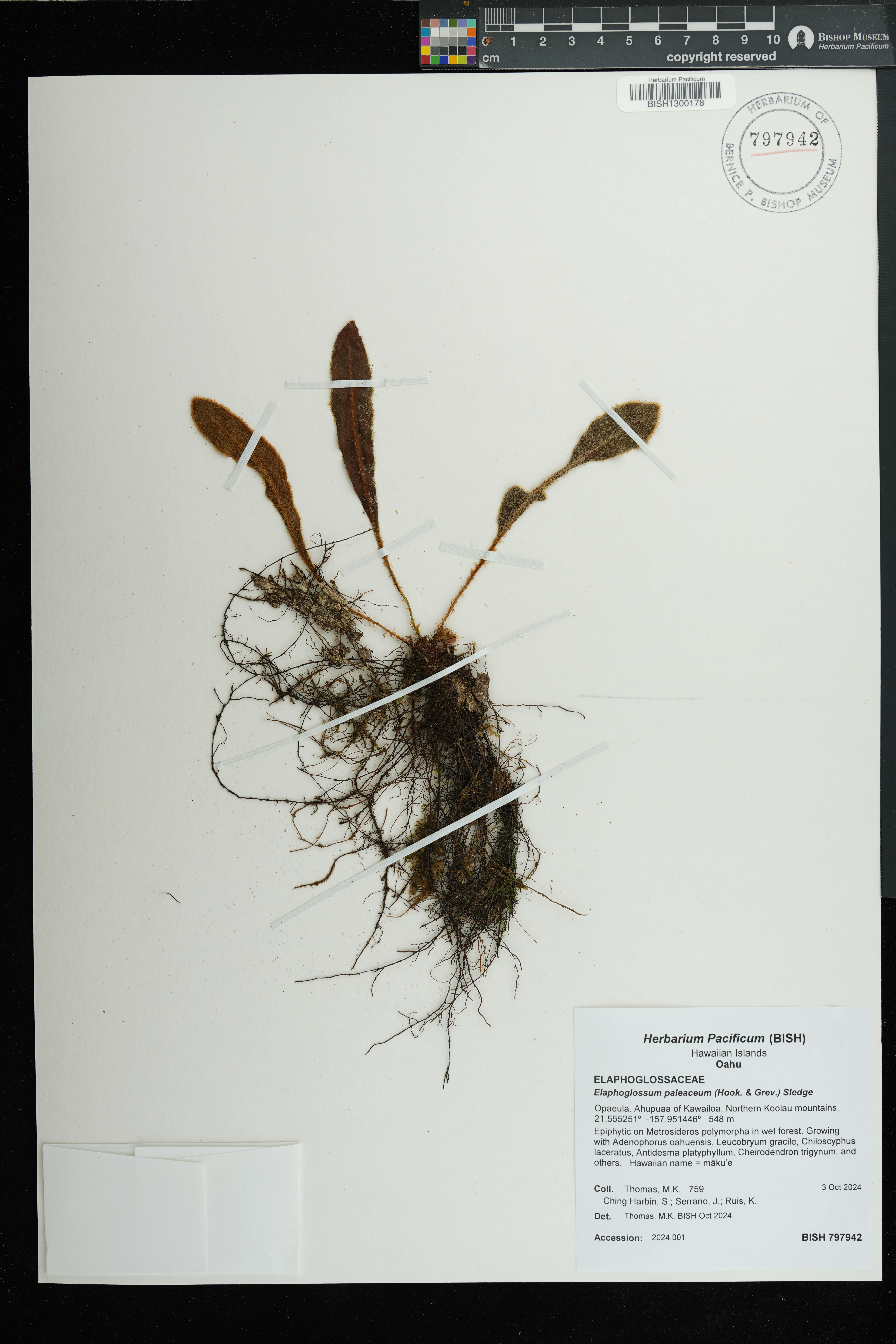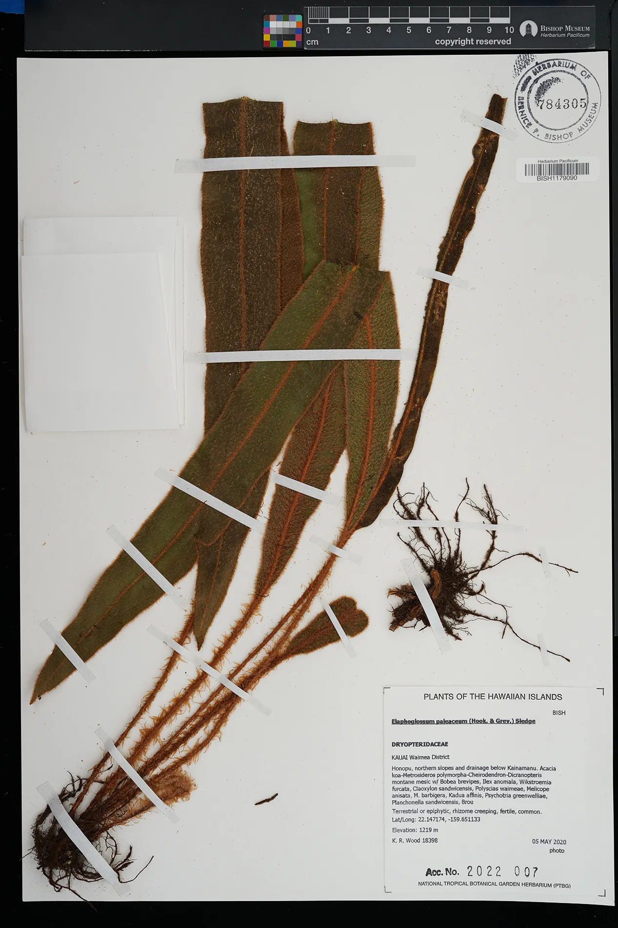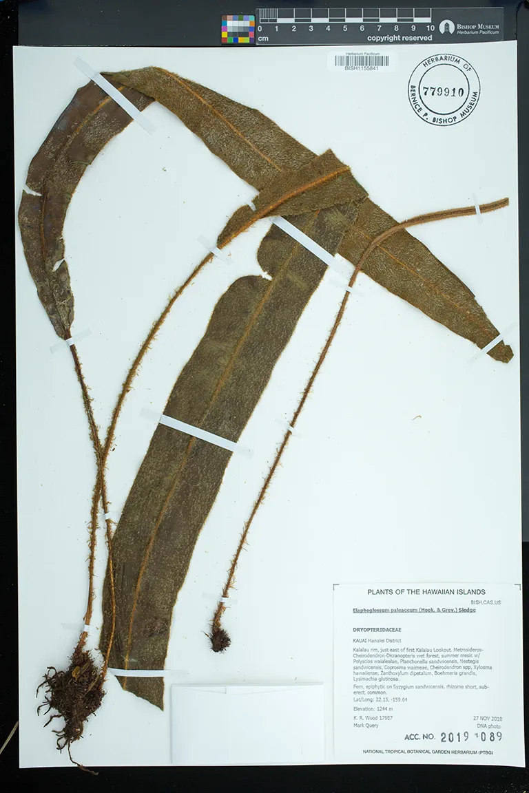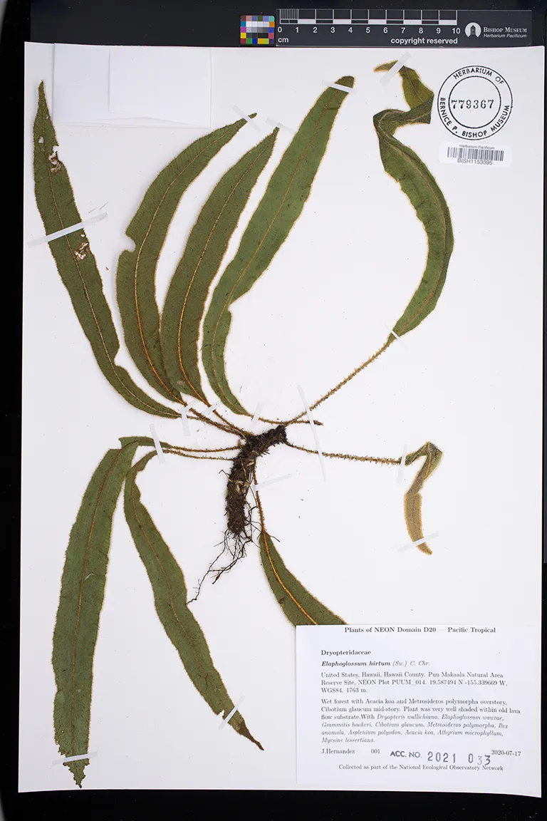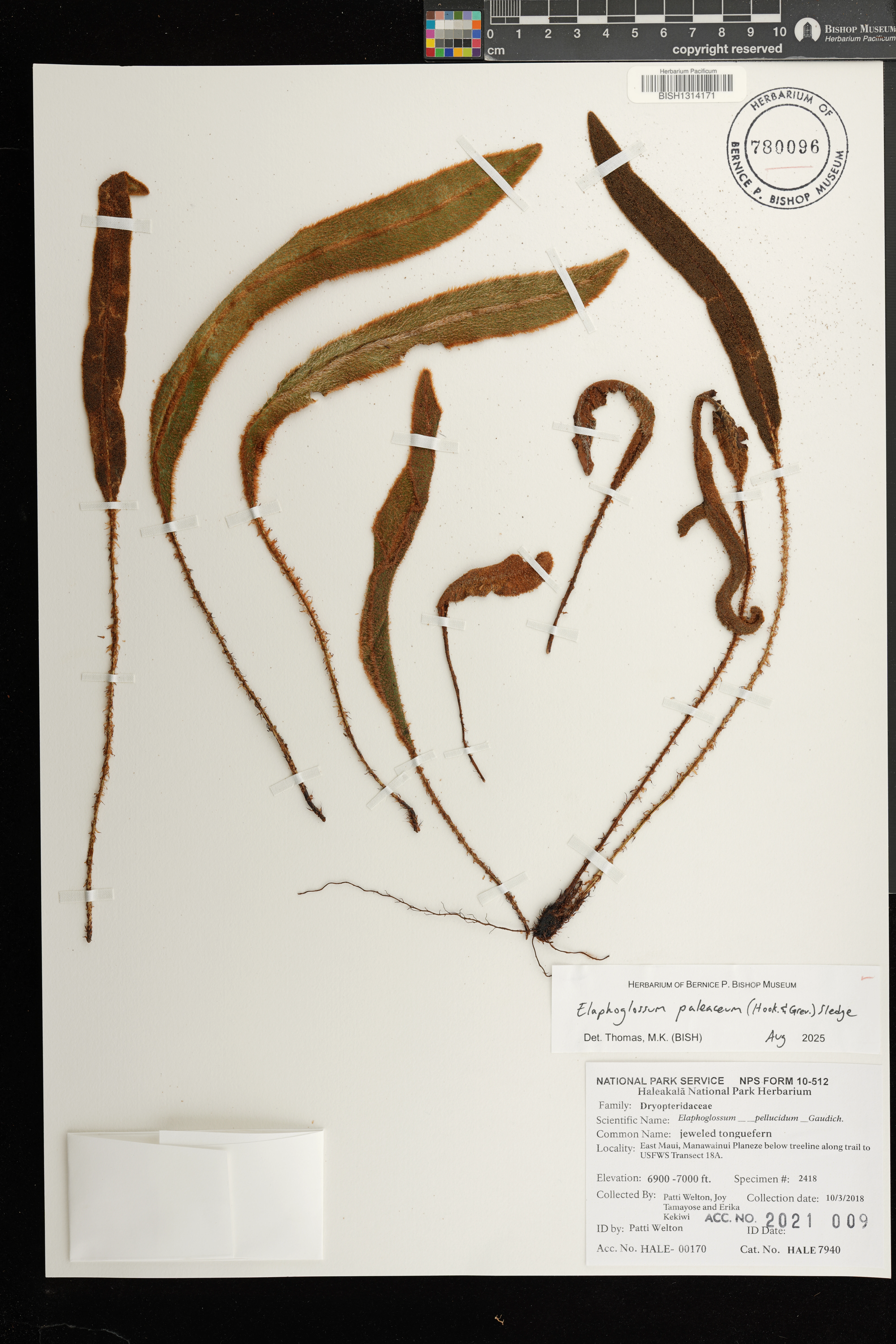 Kingdom: Viridiplantae Phylum: Pteridophyta Class/Clade: Polypodiopsida Order: Polypodiales Family: Dryopteridaceae Genus: Elaphoglossum