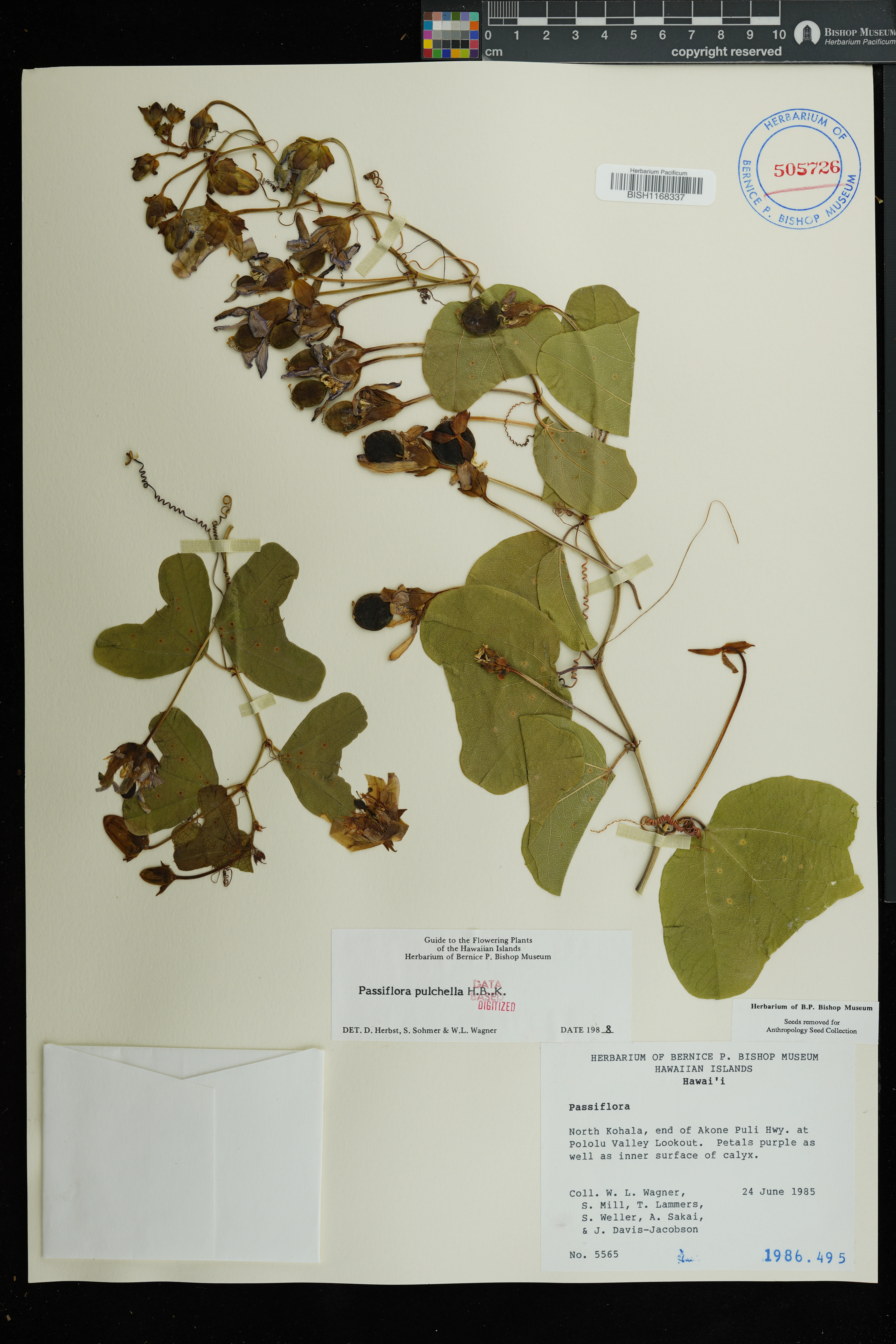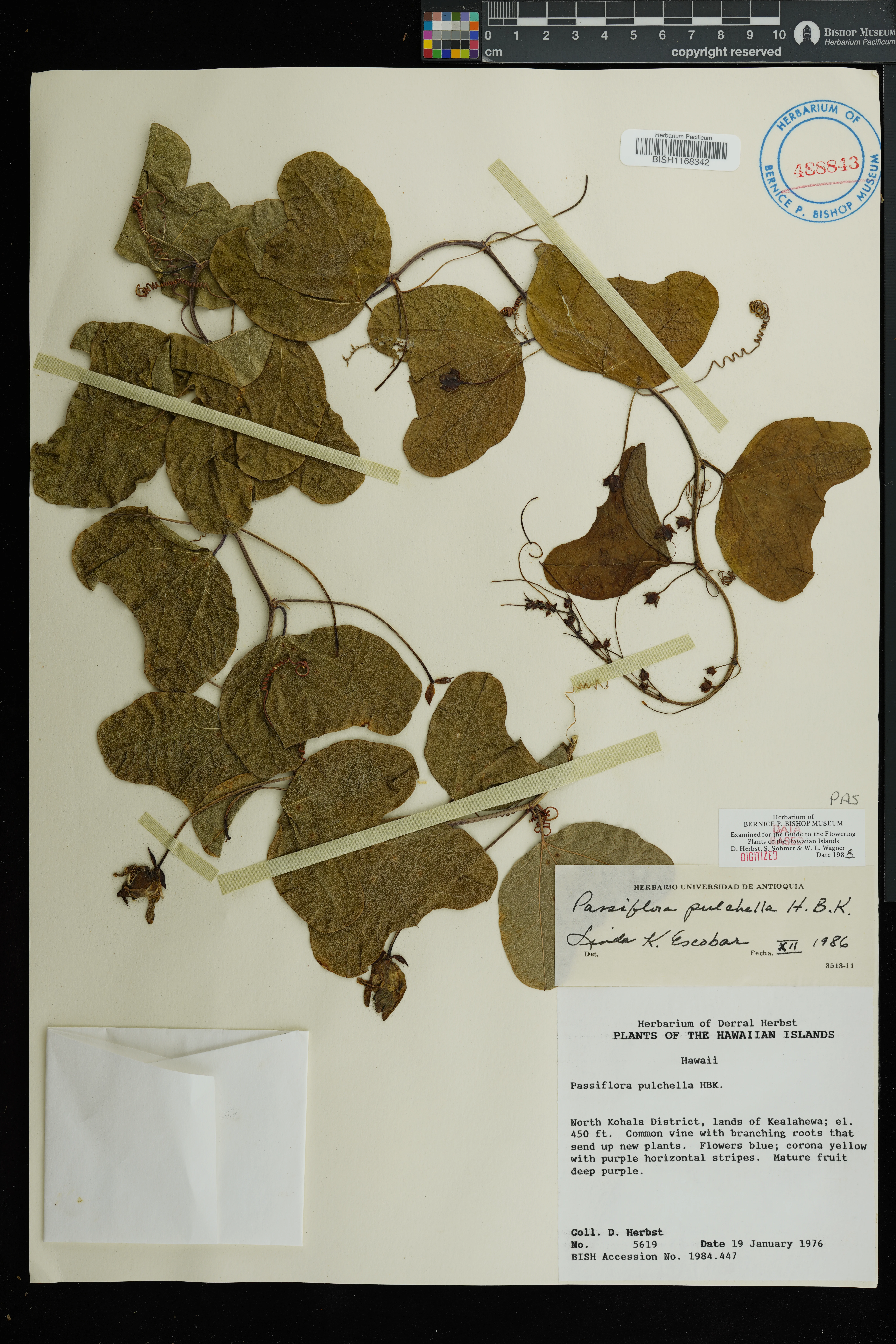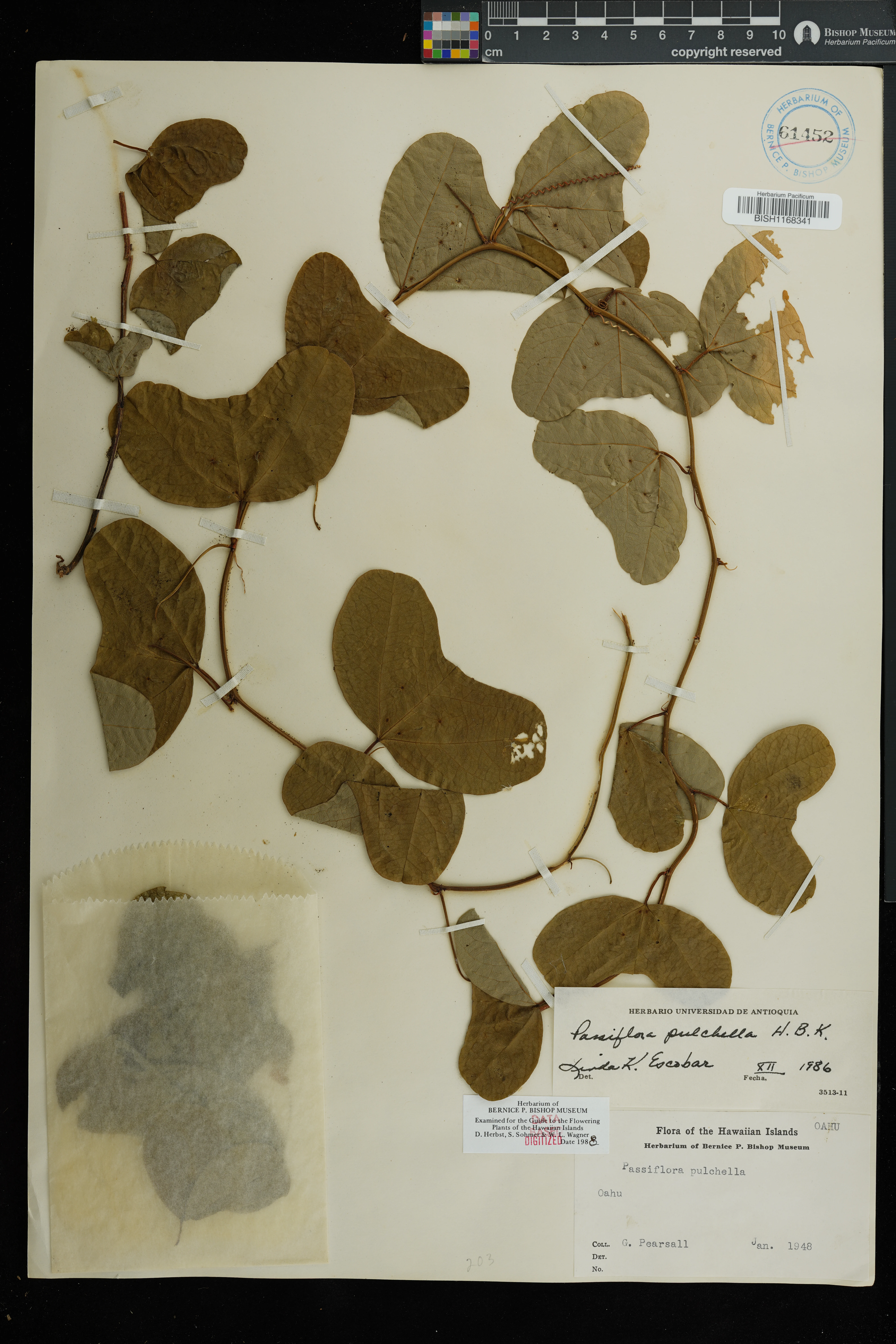 Climbing on guava and christmas berry trees. Growing along trail on western side of valley, which climbs up from the beach. |