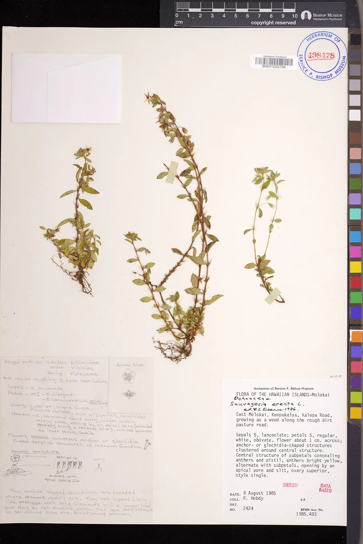 | 17 | Sauvagesia erecta | L. | keopuka loa | PRESERVED_SPECIMEN | Molokai | US | ||||