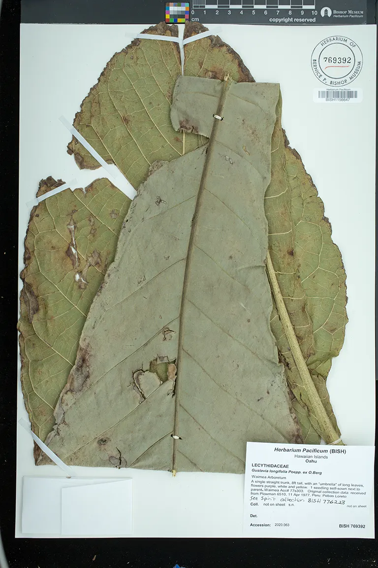 Kingdom: Viridiplantae Phylum: Magnoliophyta Class/Clade: Eudicot-Asterids Order: Ericales Family: Lecythidaceae Genus: Gustavia