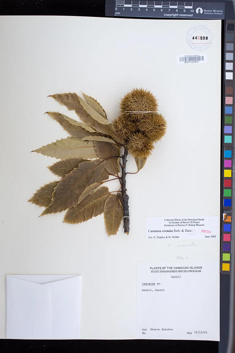 | 8 | Castanea crenata | Siebold & Zucc. | waikii | PRESERVED_SPECIMEN | kokubun, s. | Hawaii | BISH | 11/12/1983 |