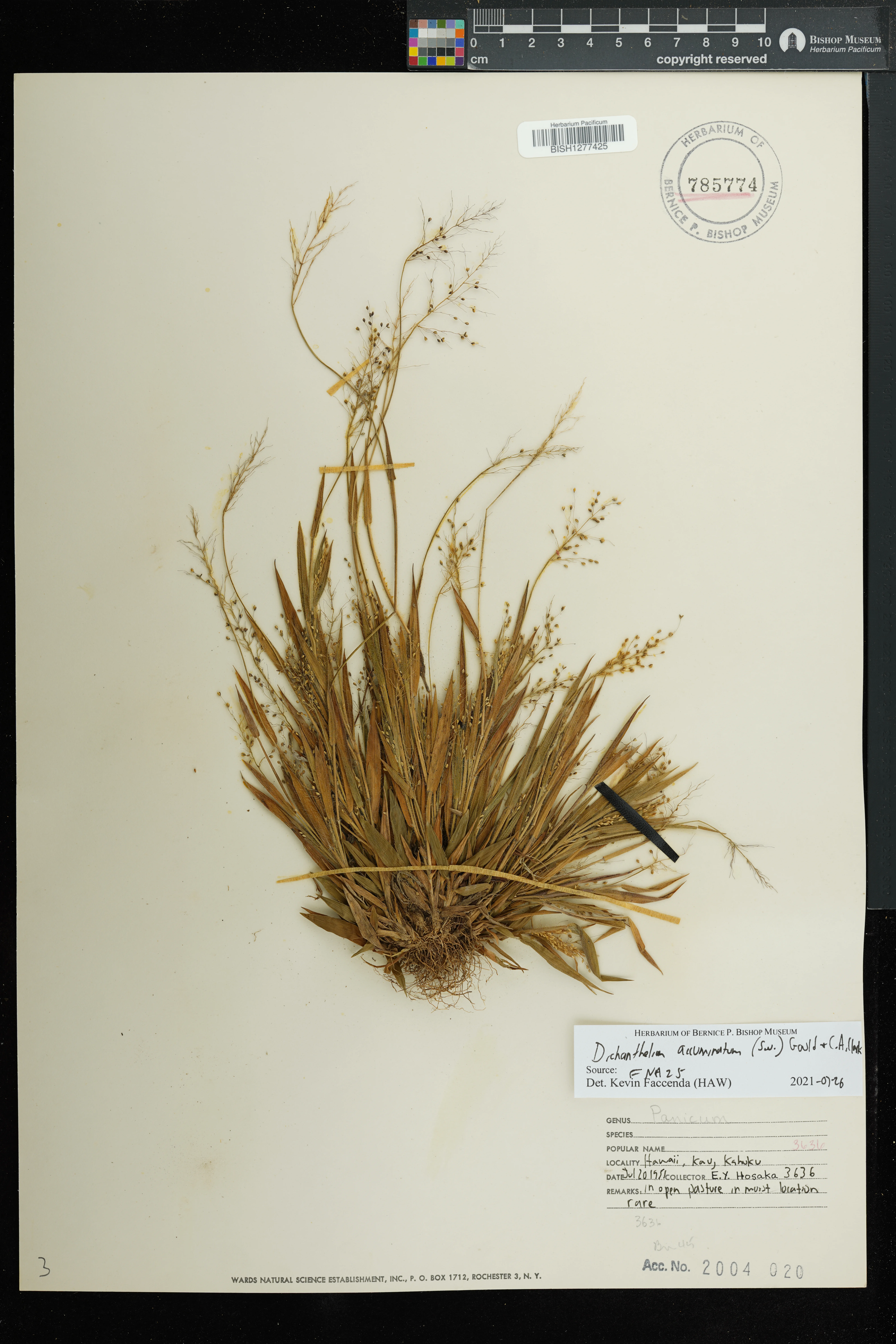 Kingdom: Viridiplantae Phylum: Magnoliophyta Class/Clade: Monocots Order: Poales Family: Poaceae Genus: Dichanthelium
