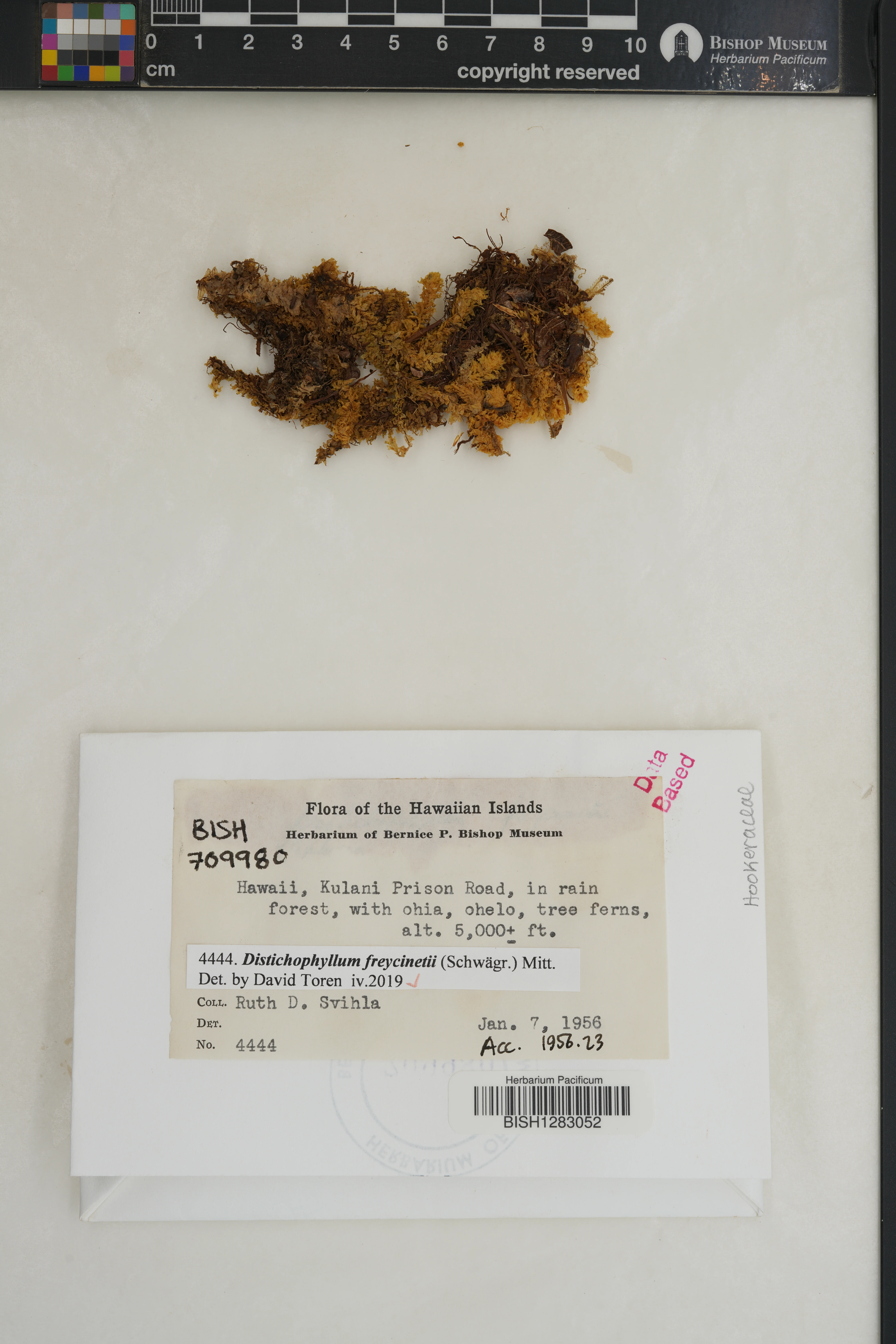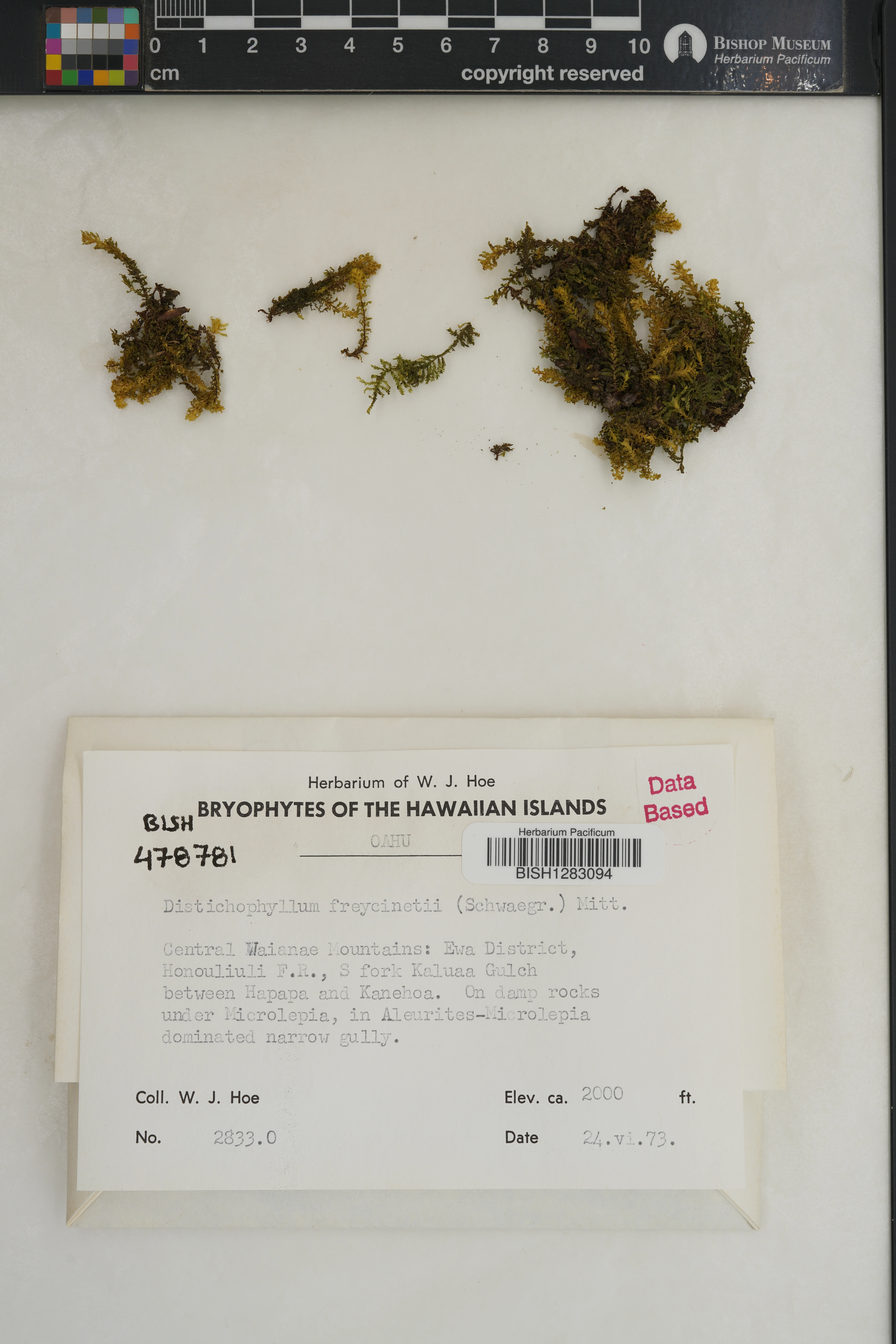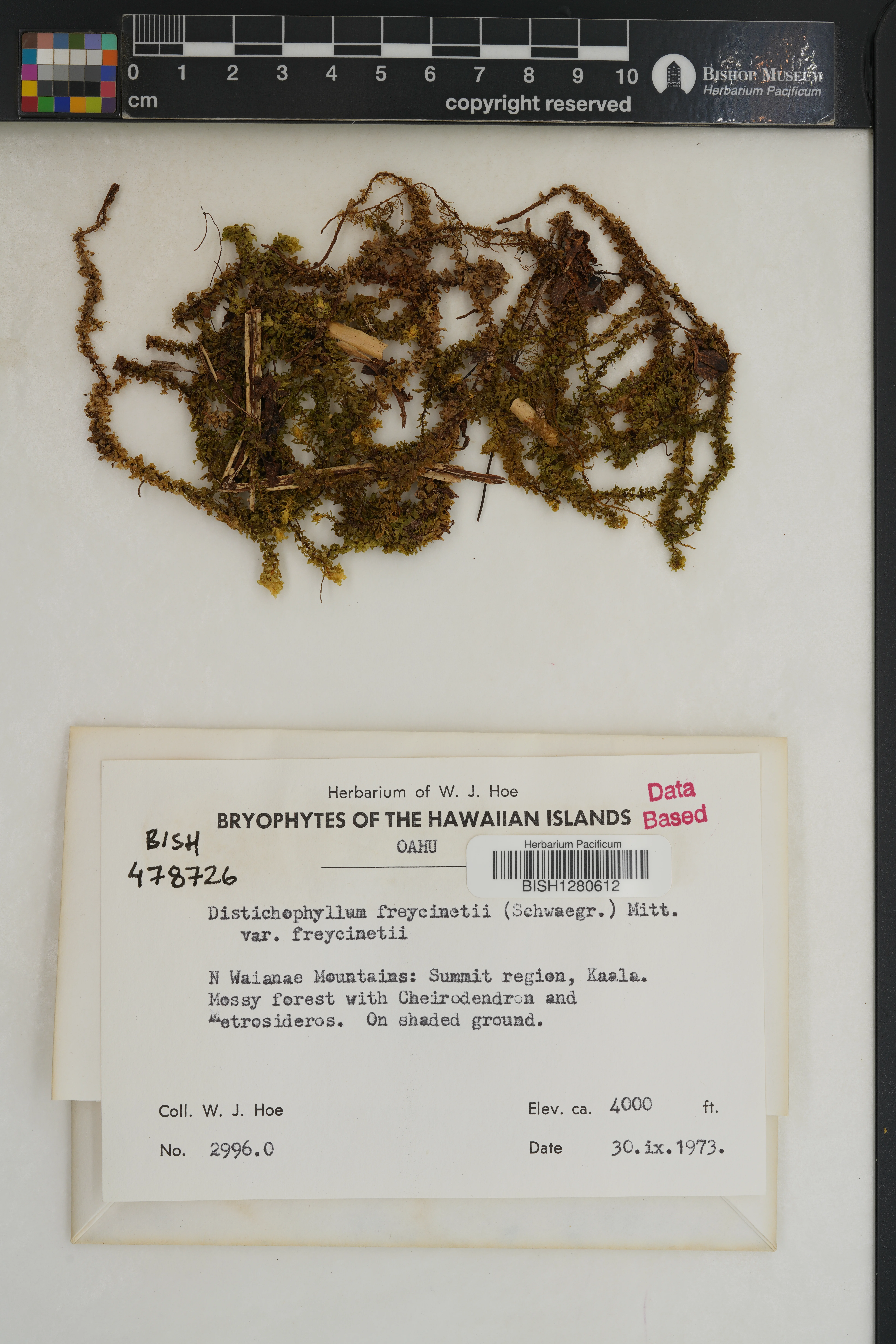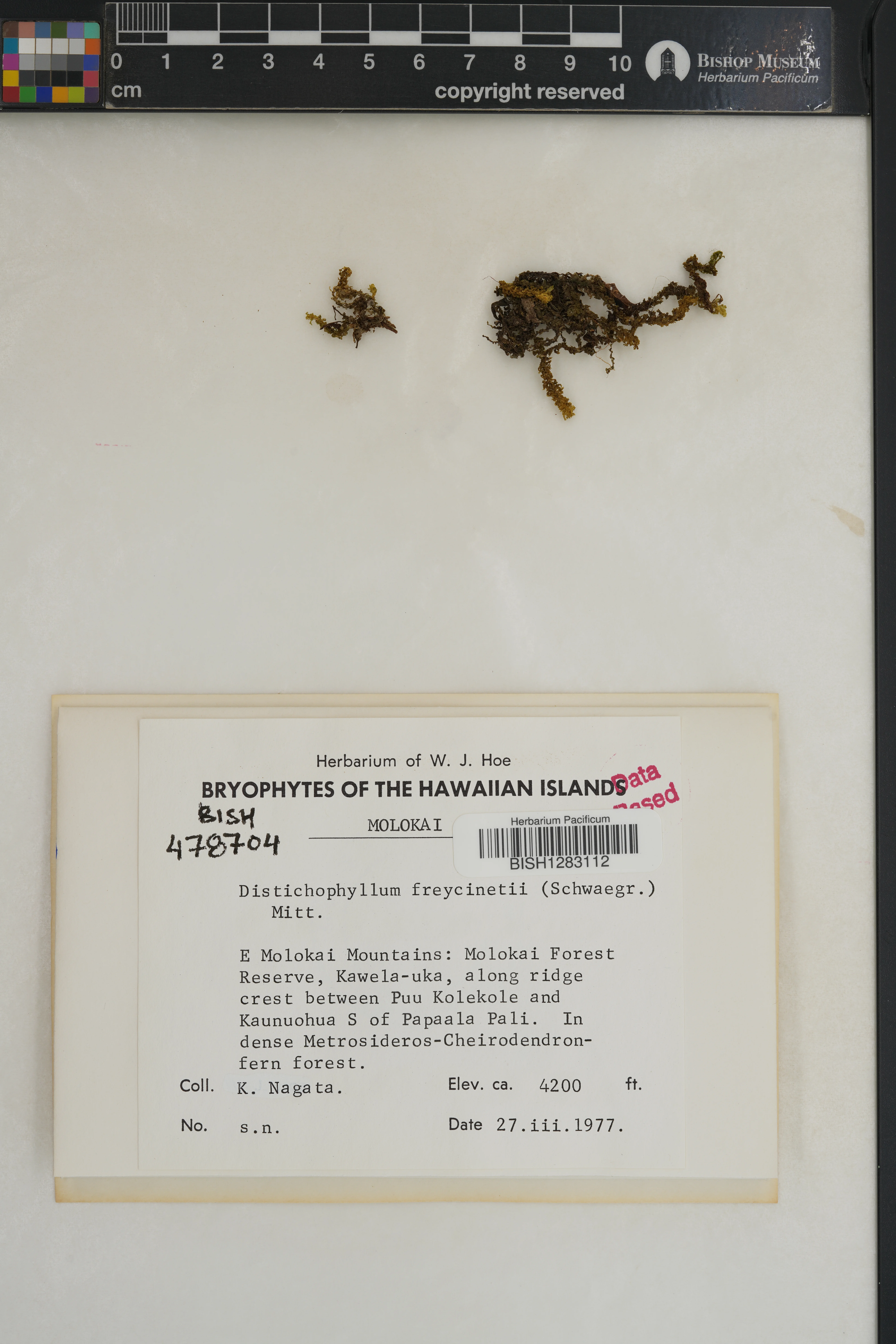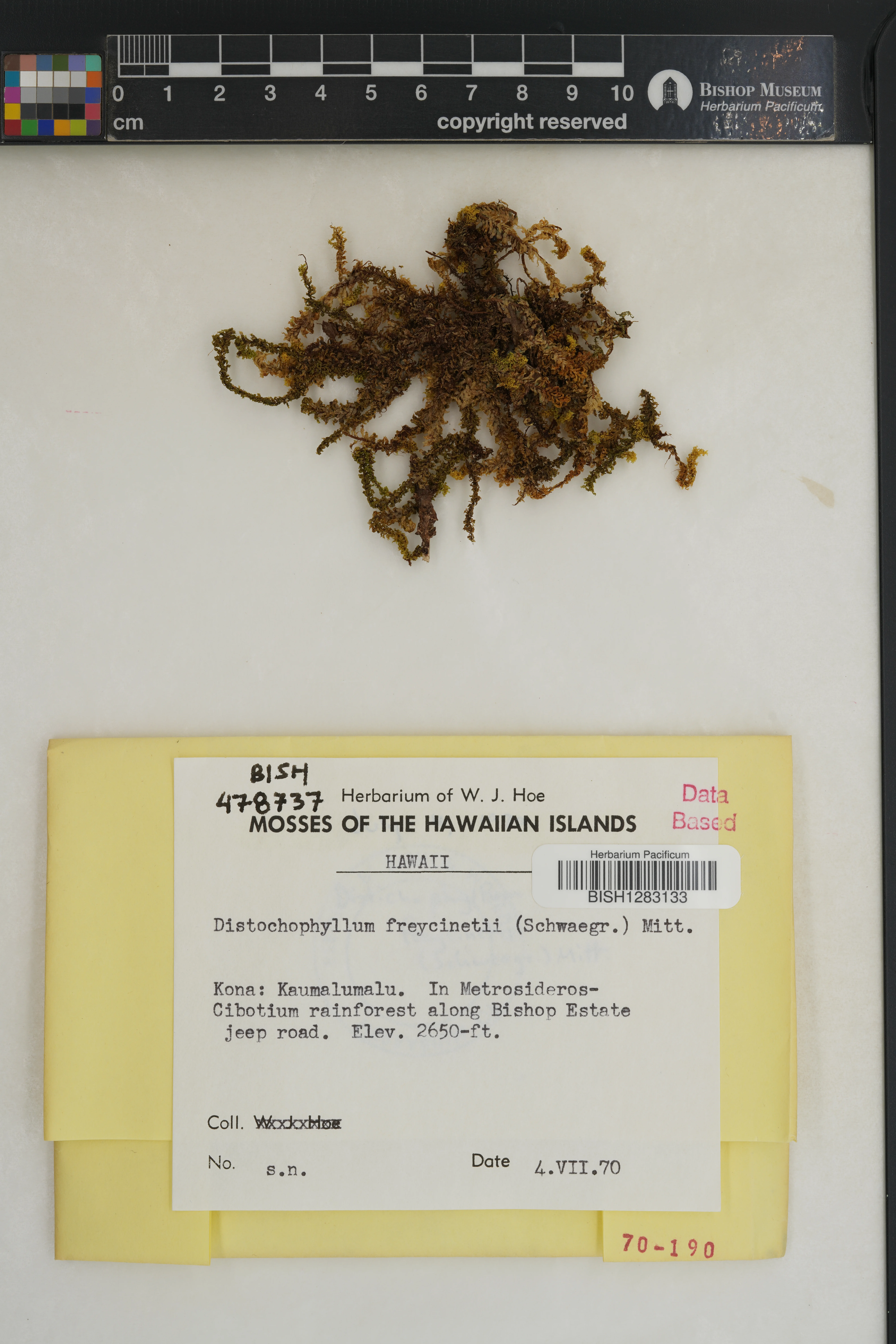 Kingdom: Viridiplantae Phylum: Bryophyta Class/Clade: Bryopsida Order: Hookeriales Family: Hookeriaceae Genus: Distichophyllum