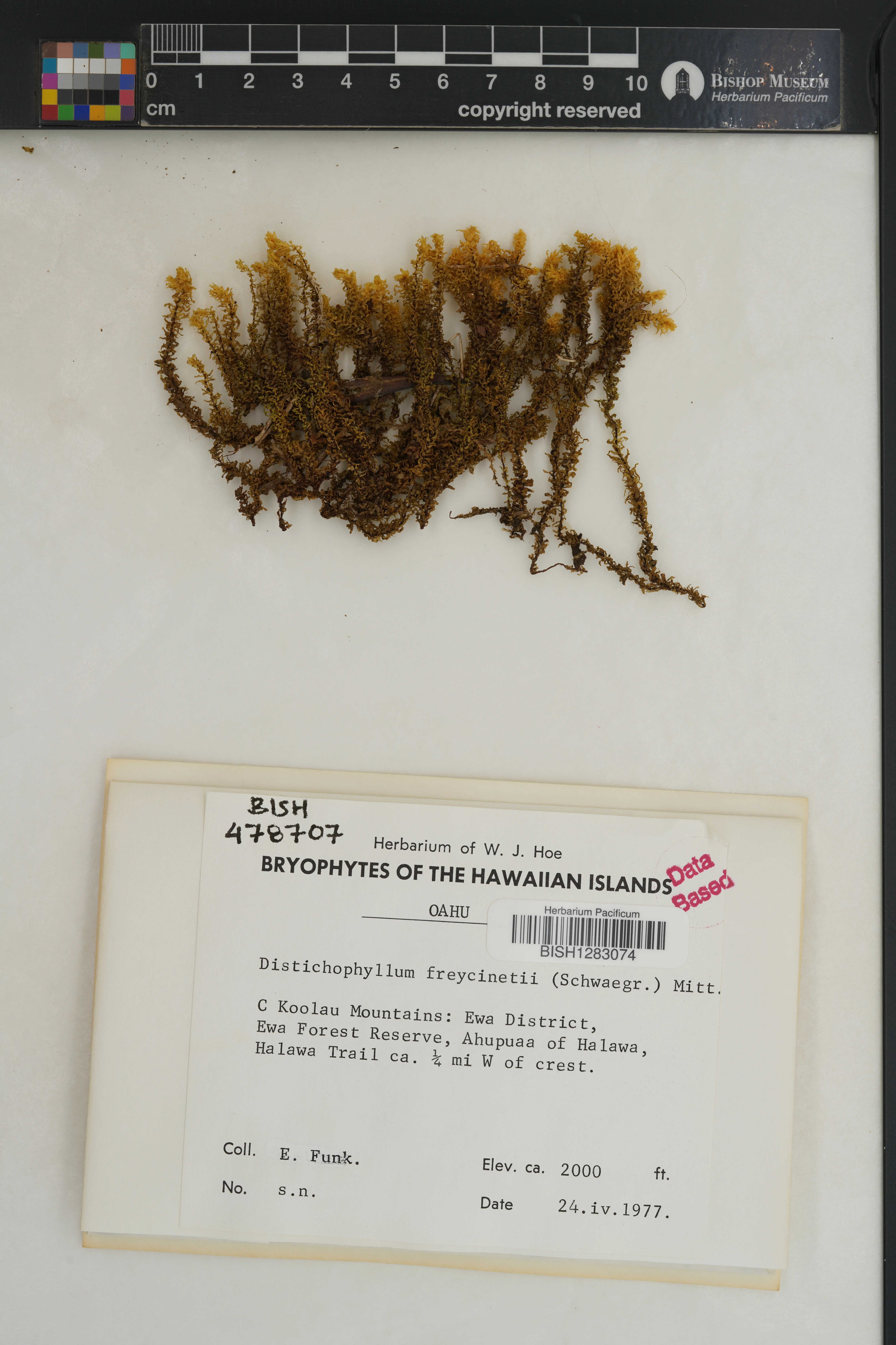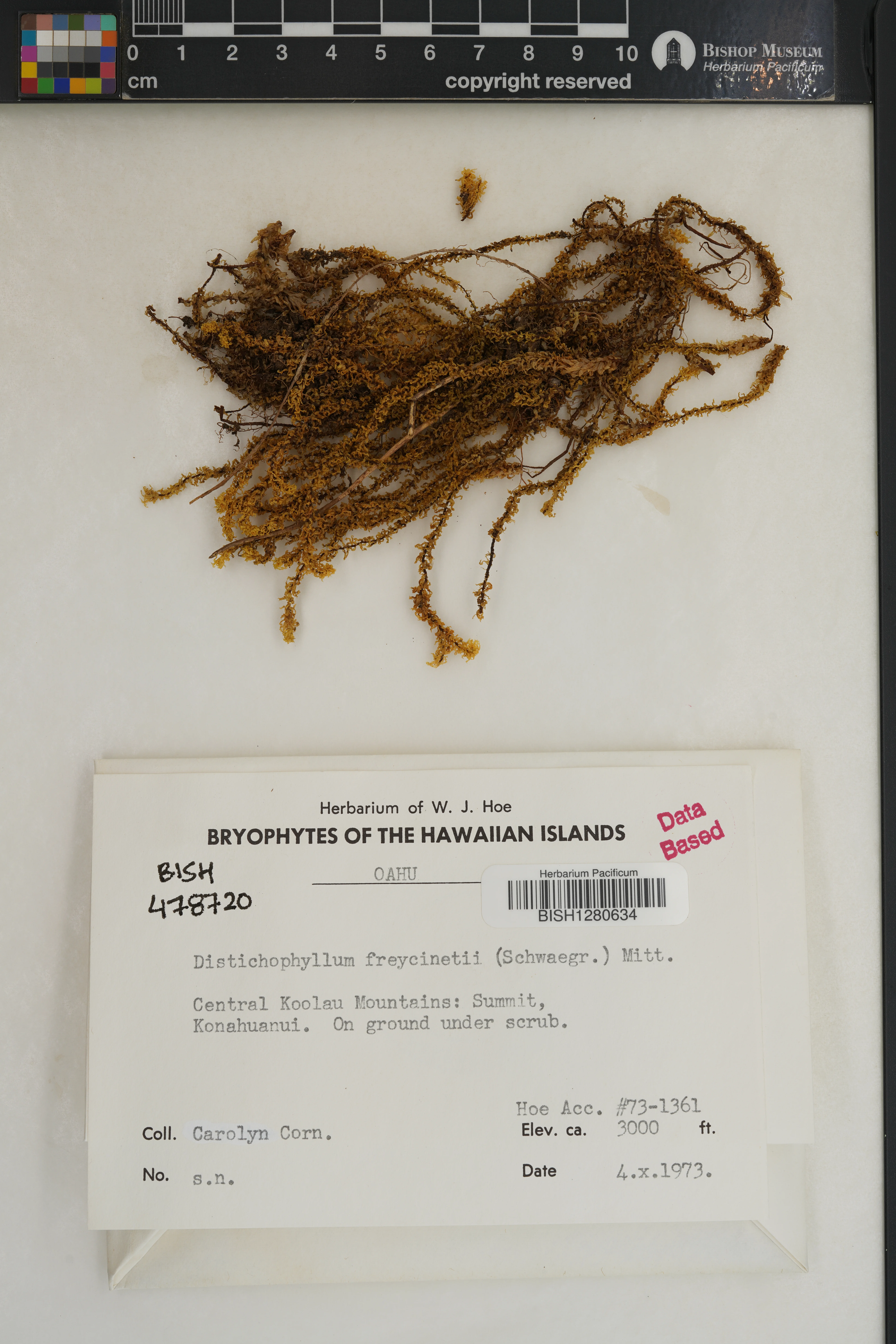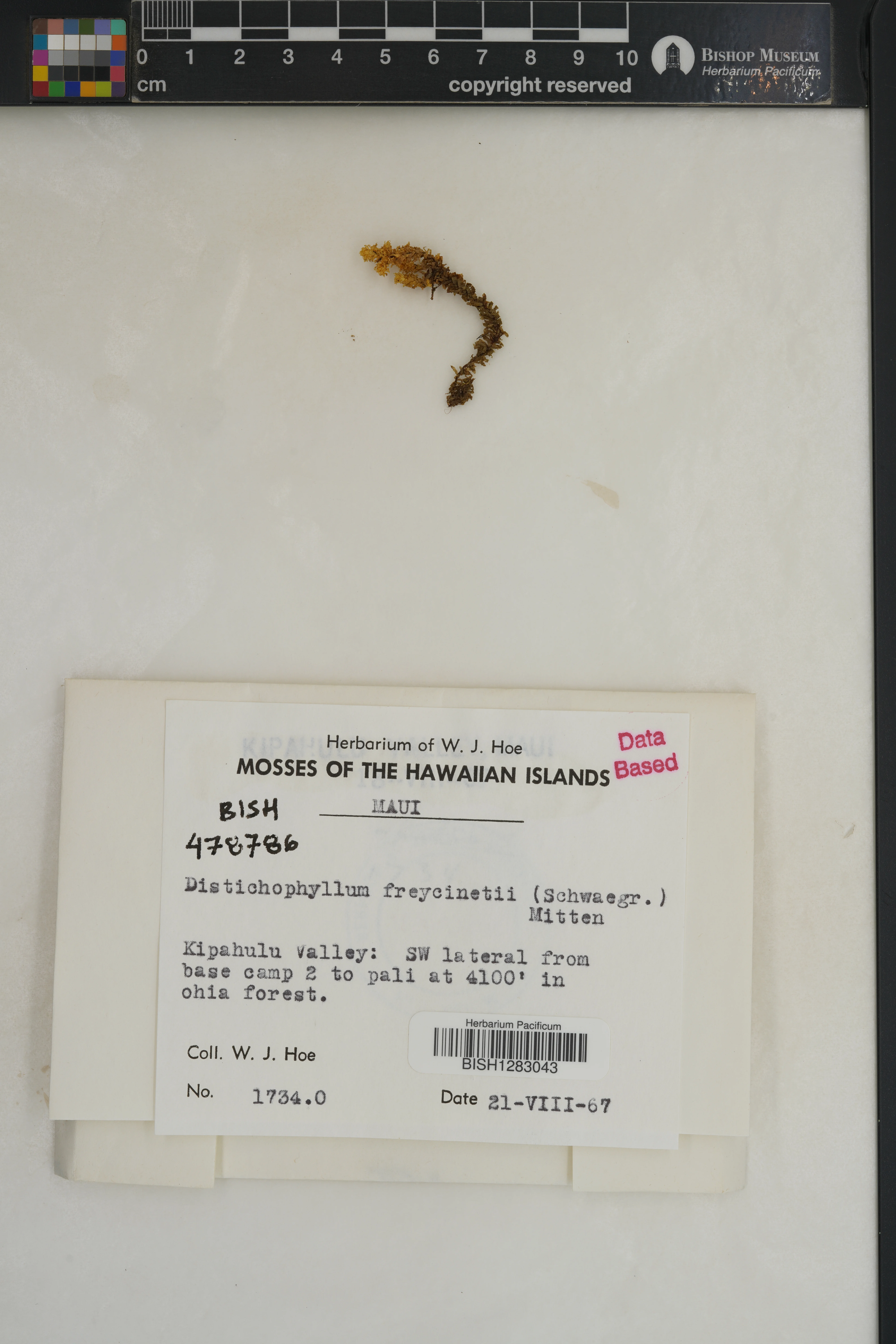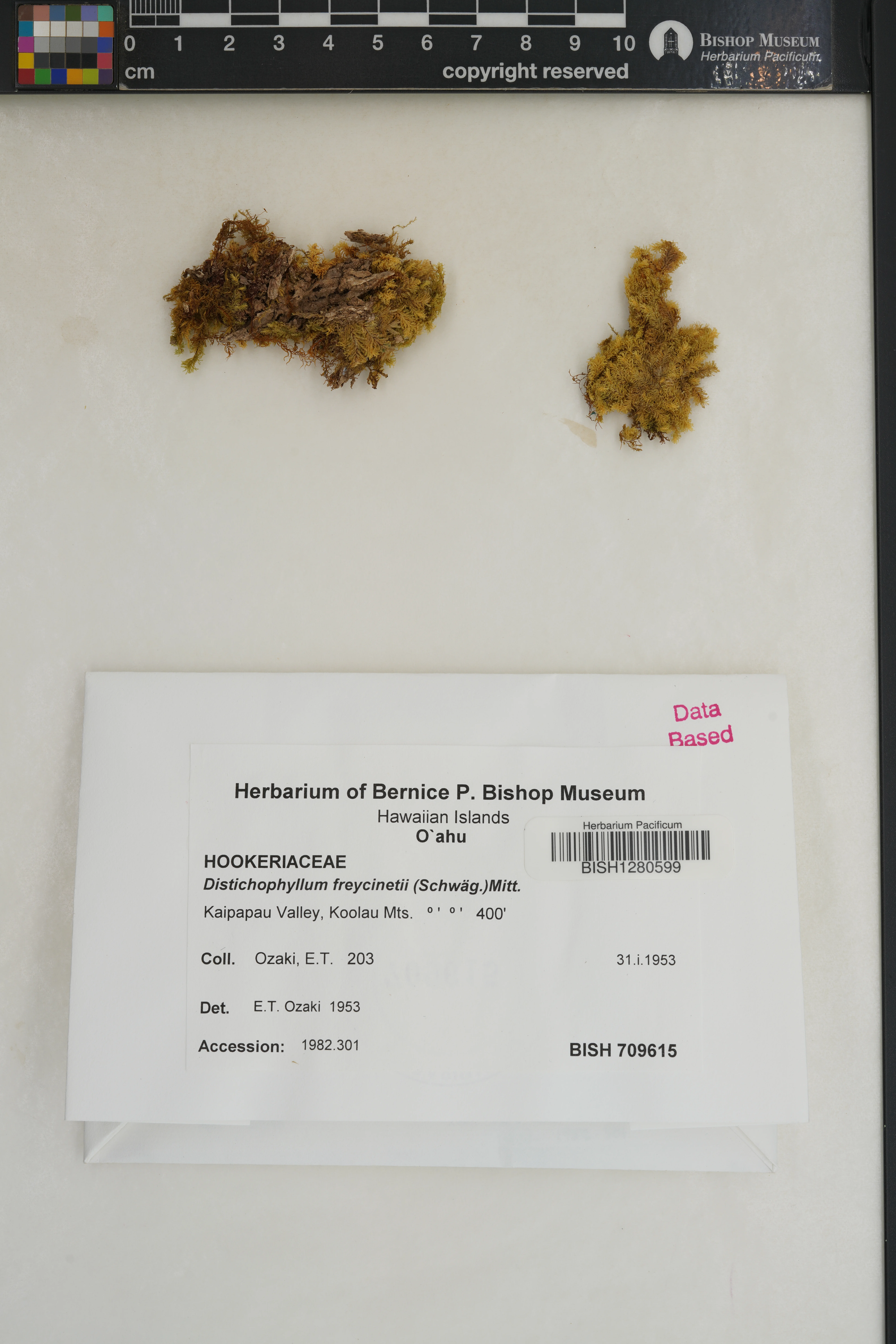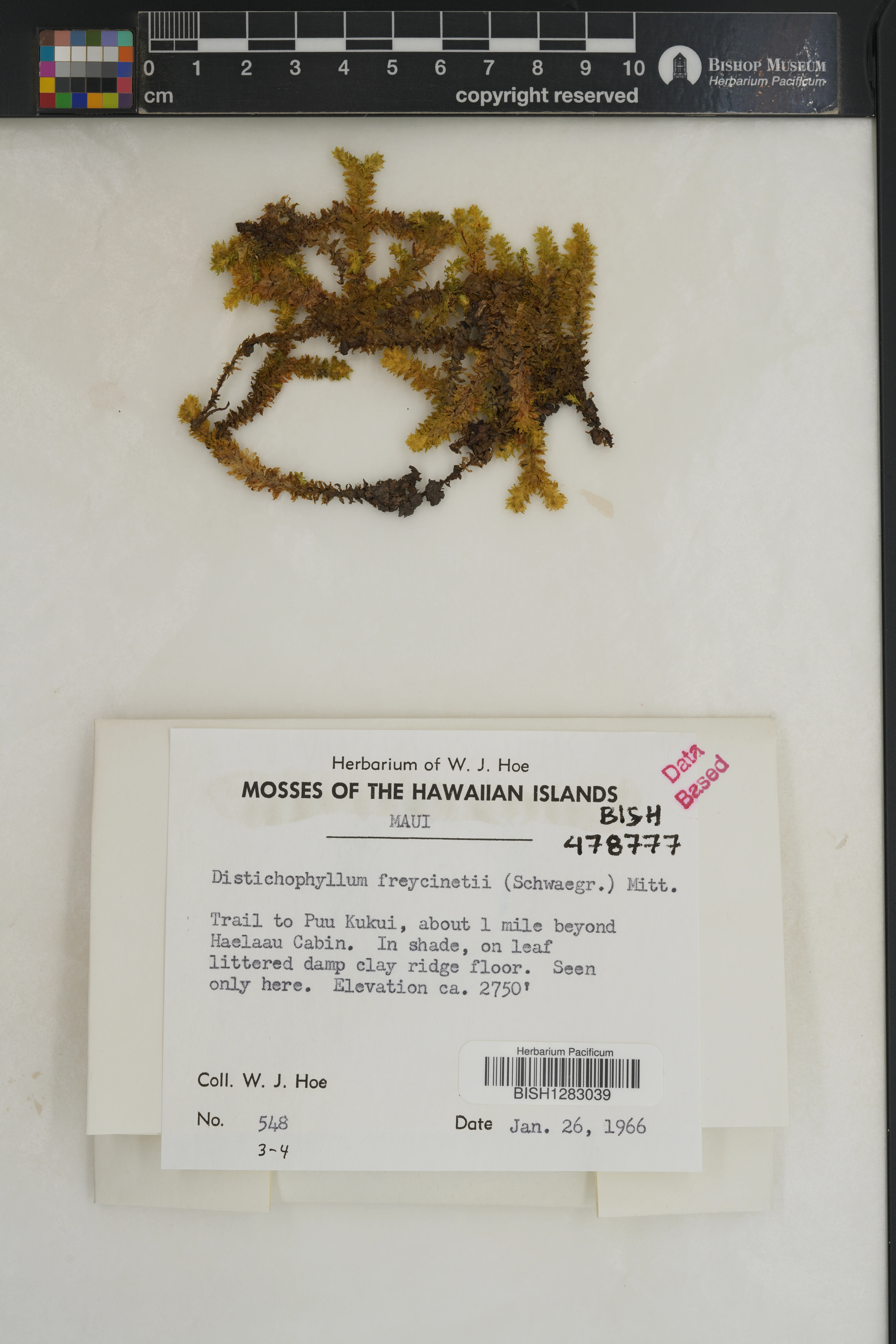 Kingdom: Viridiplantae Phylum: Bryophyta Class/Clade: Bryopsida Order: Hookeriales Family: Hookeriaceae Genus: Distichophyllum