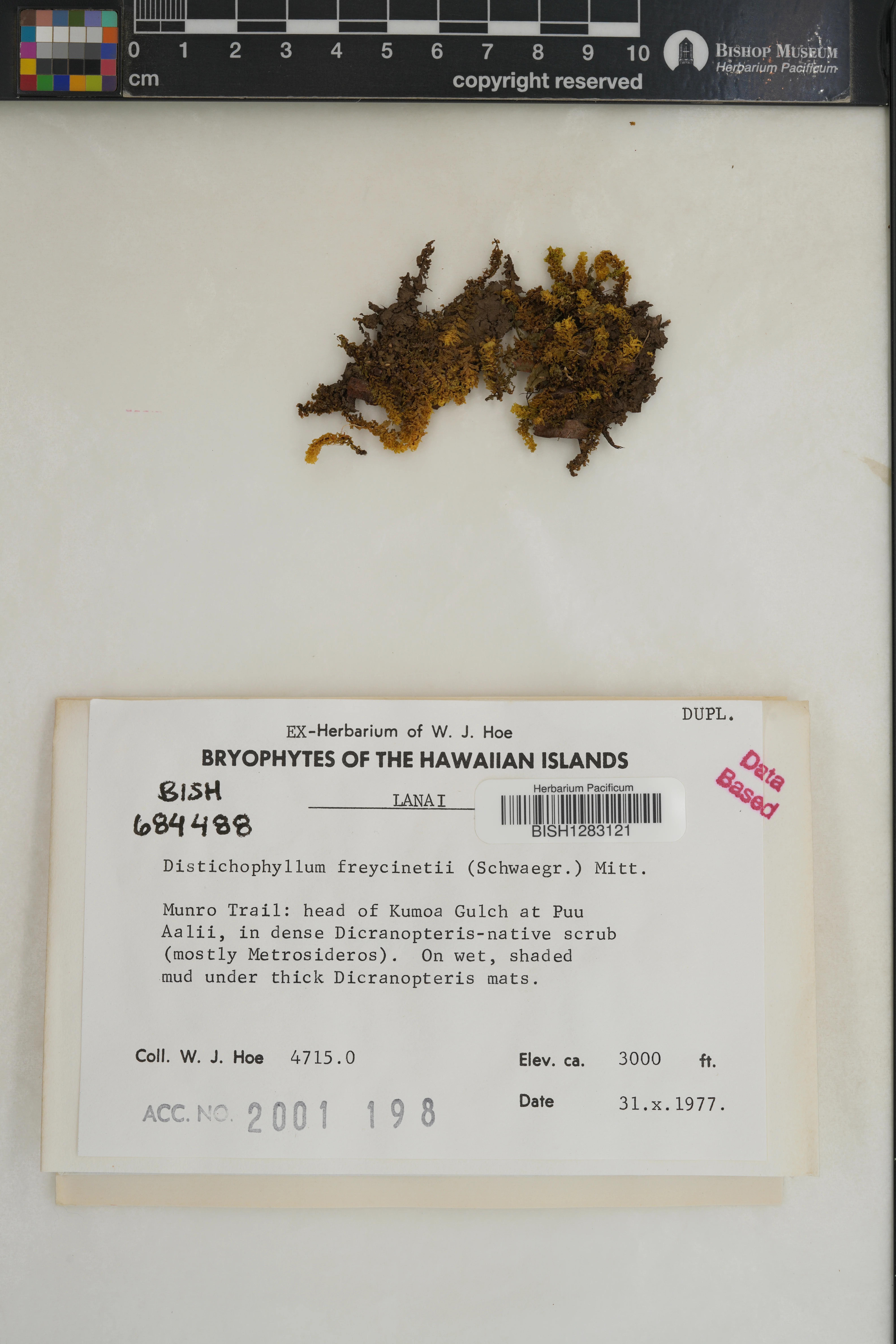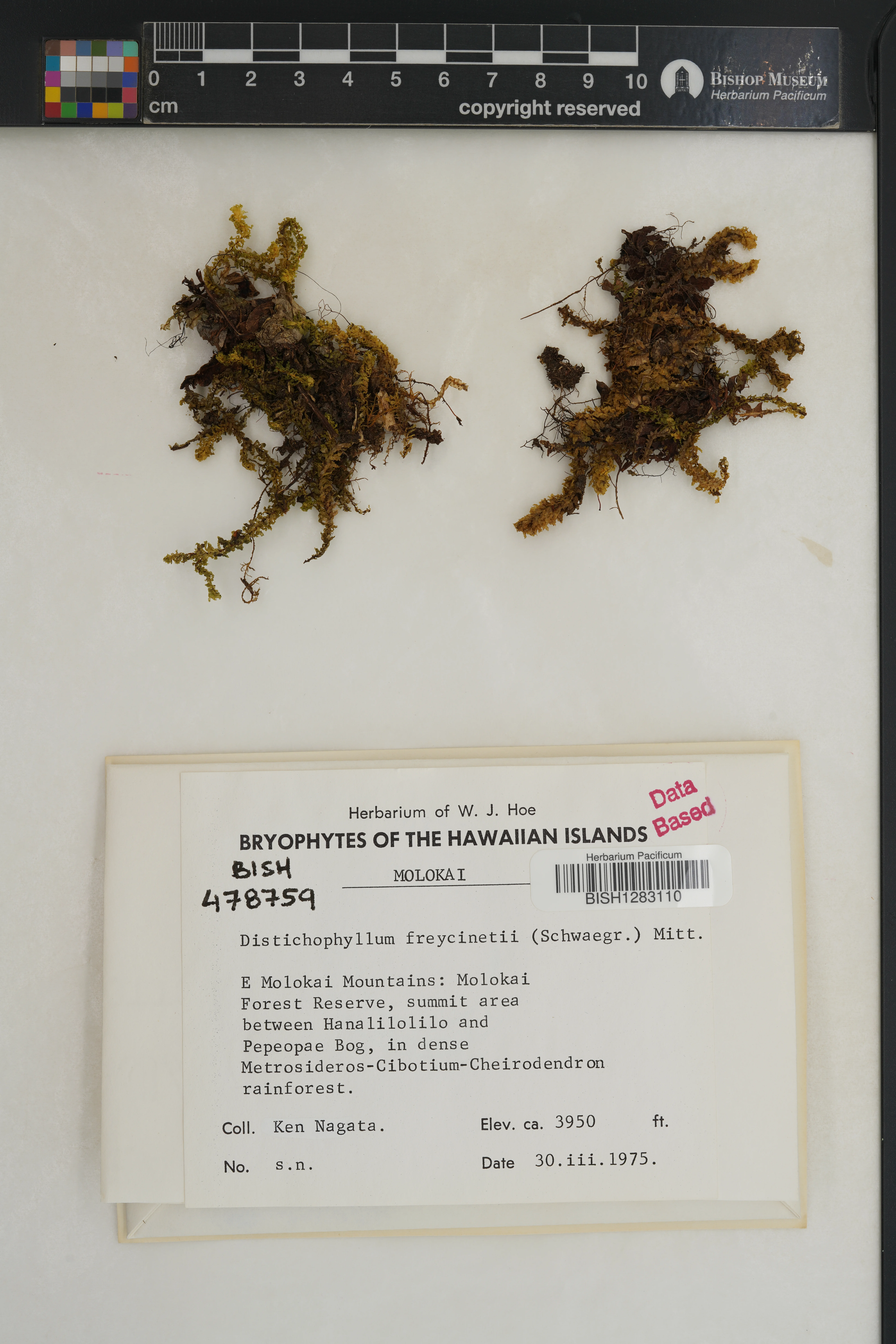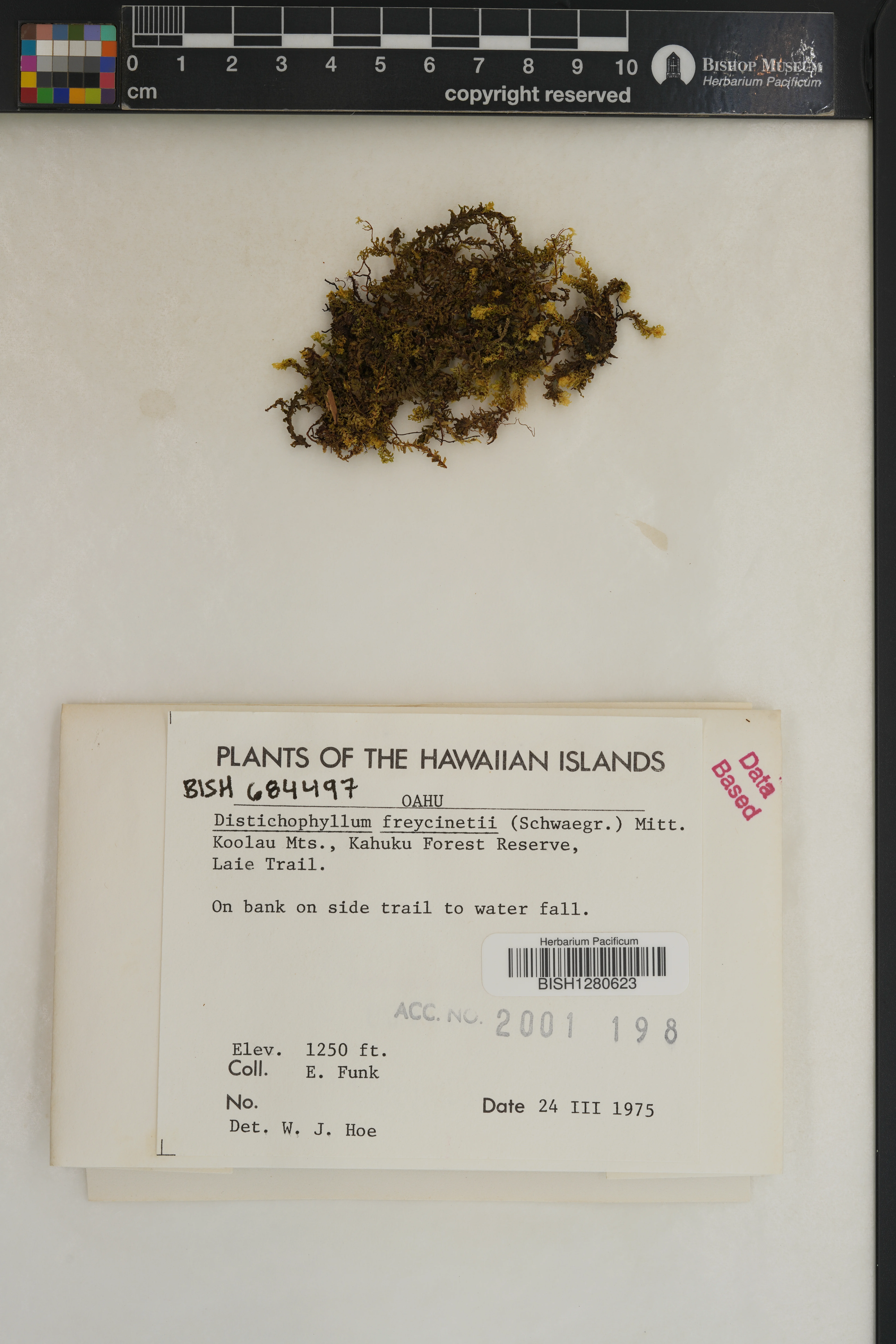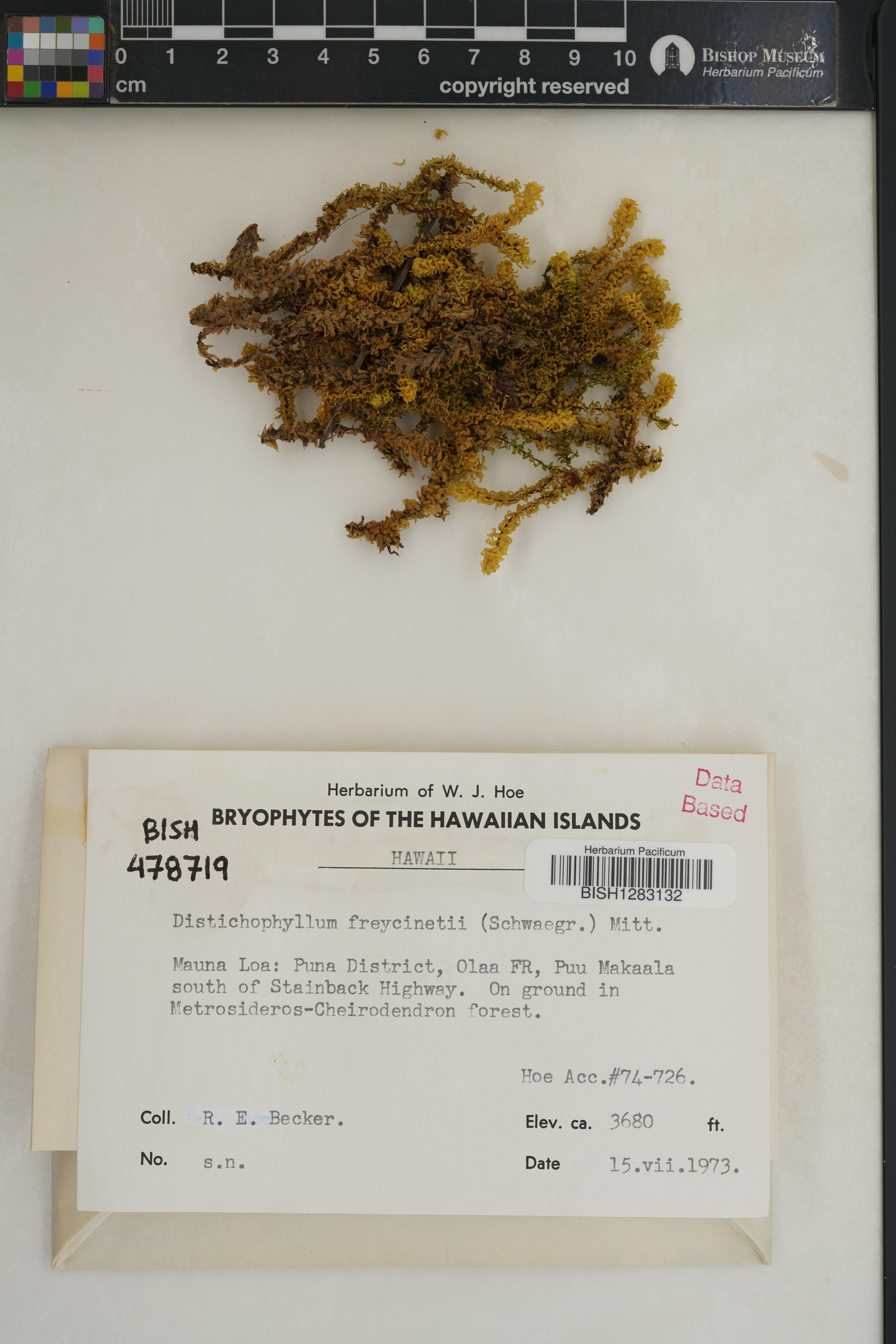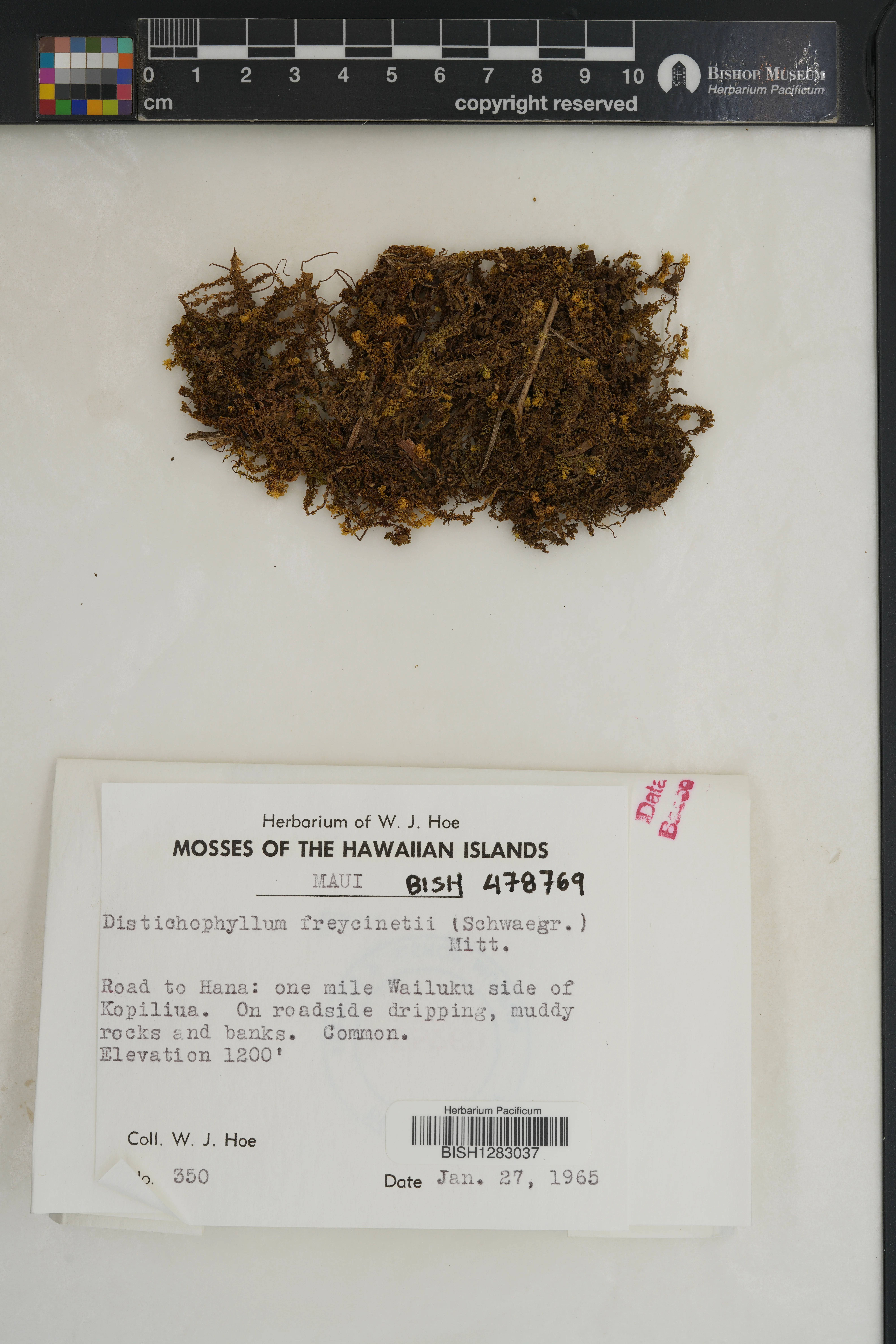 Kingdom: Viridiplantae Phylum: Bryophyta Class/Clade: Bryopsida Order: Hookeriales Family: Hookeriaceae Genus: Distichophyllum