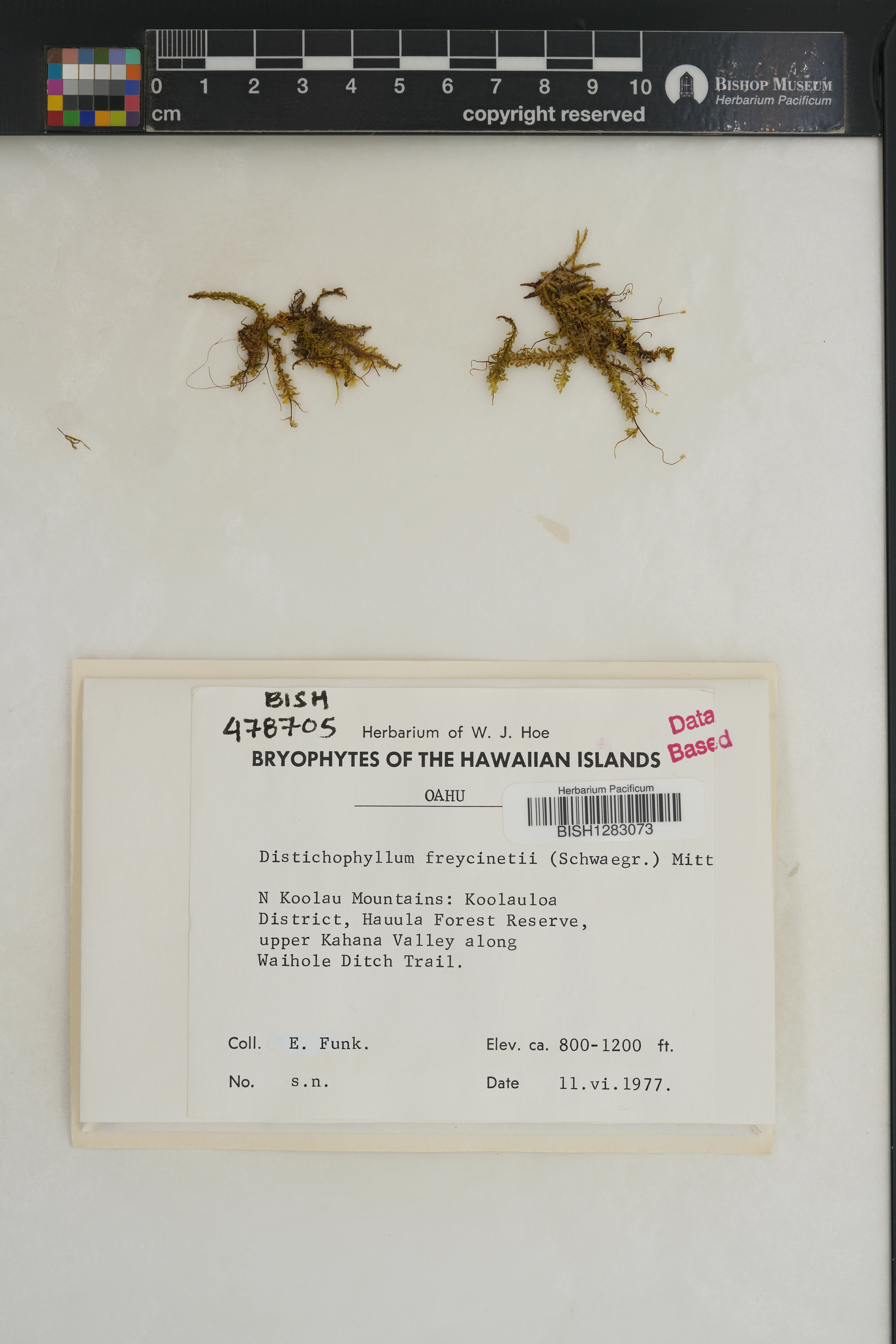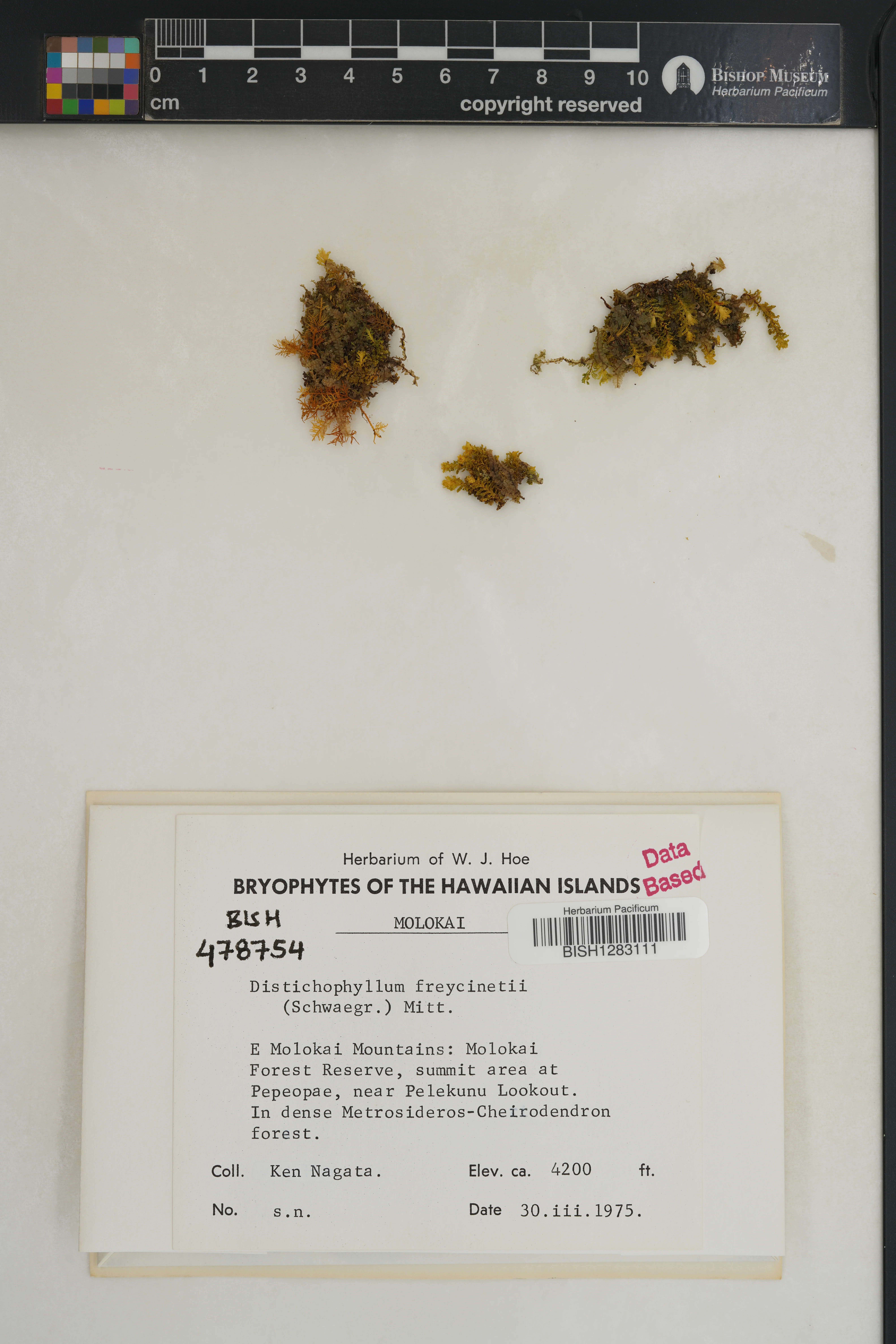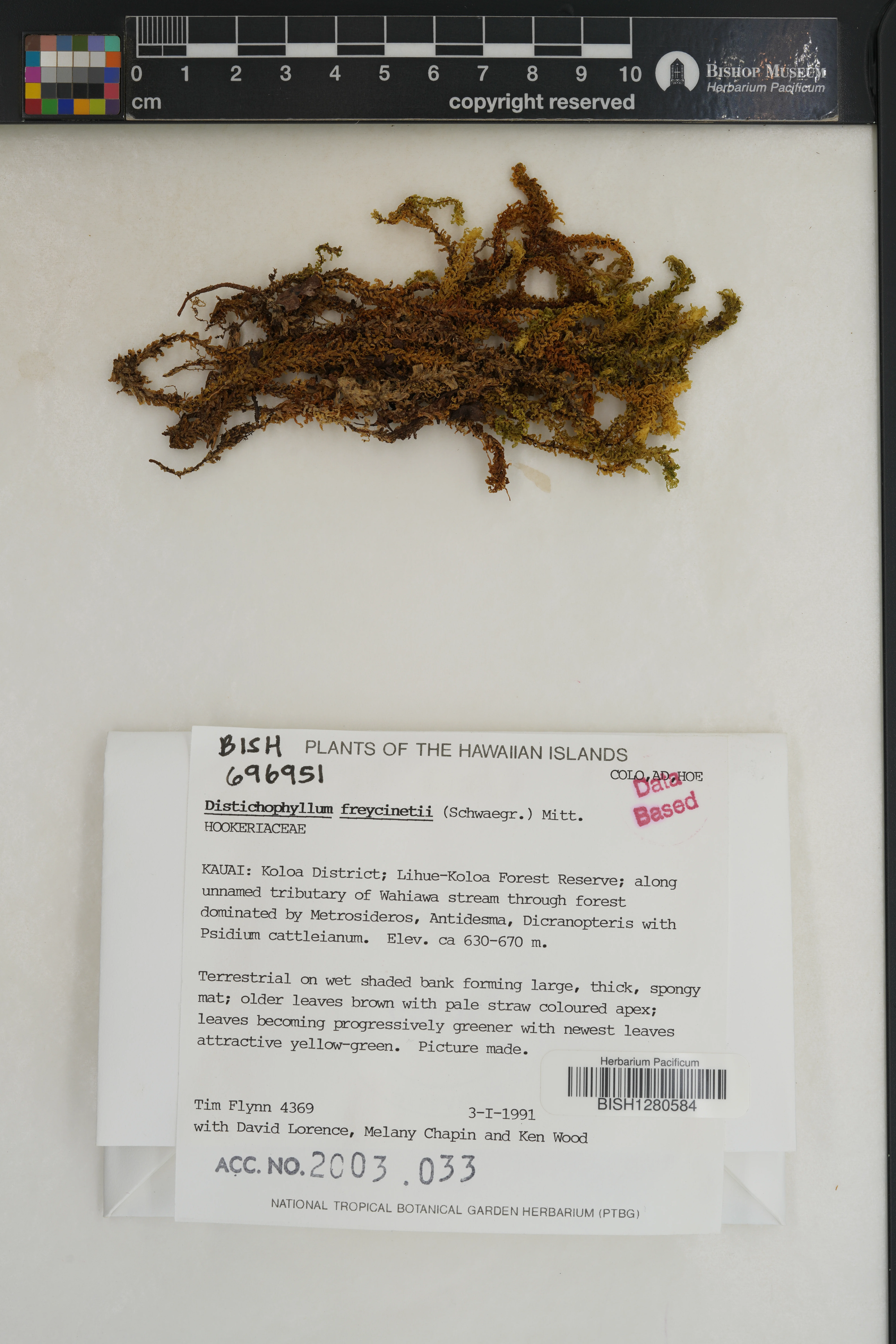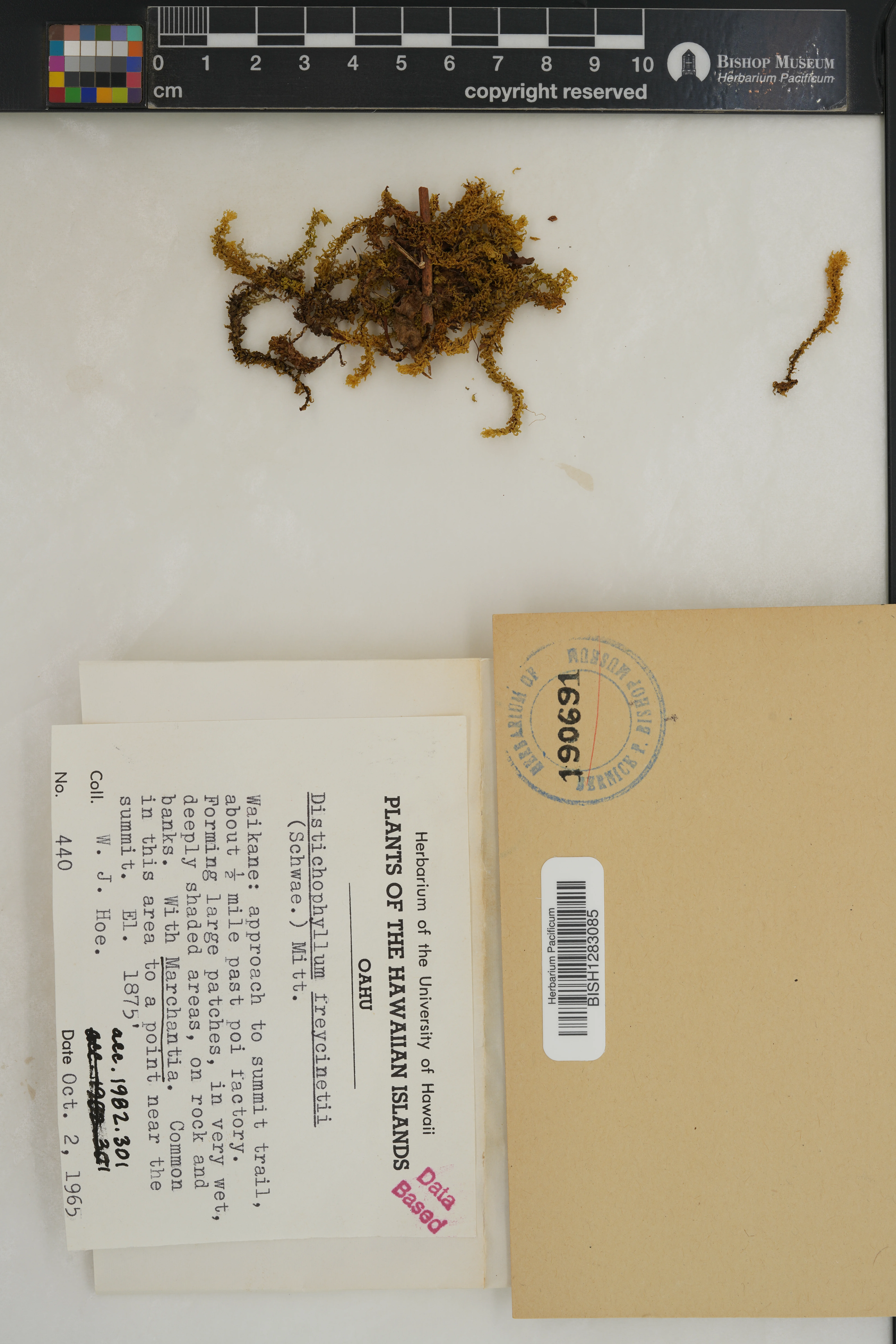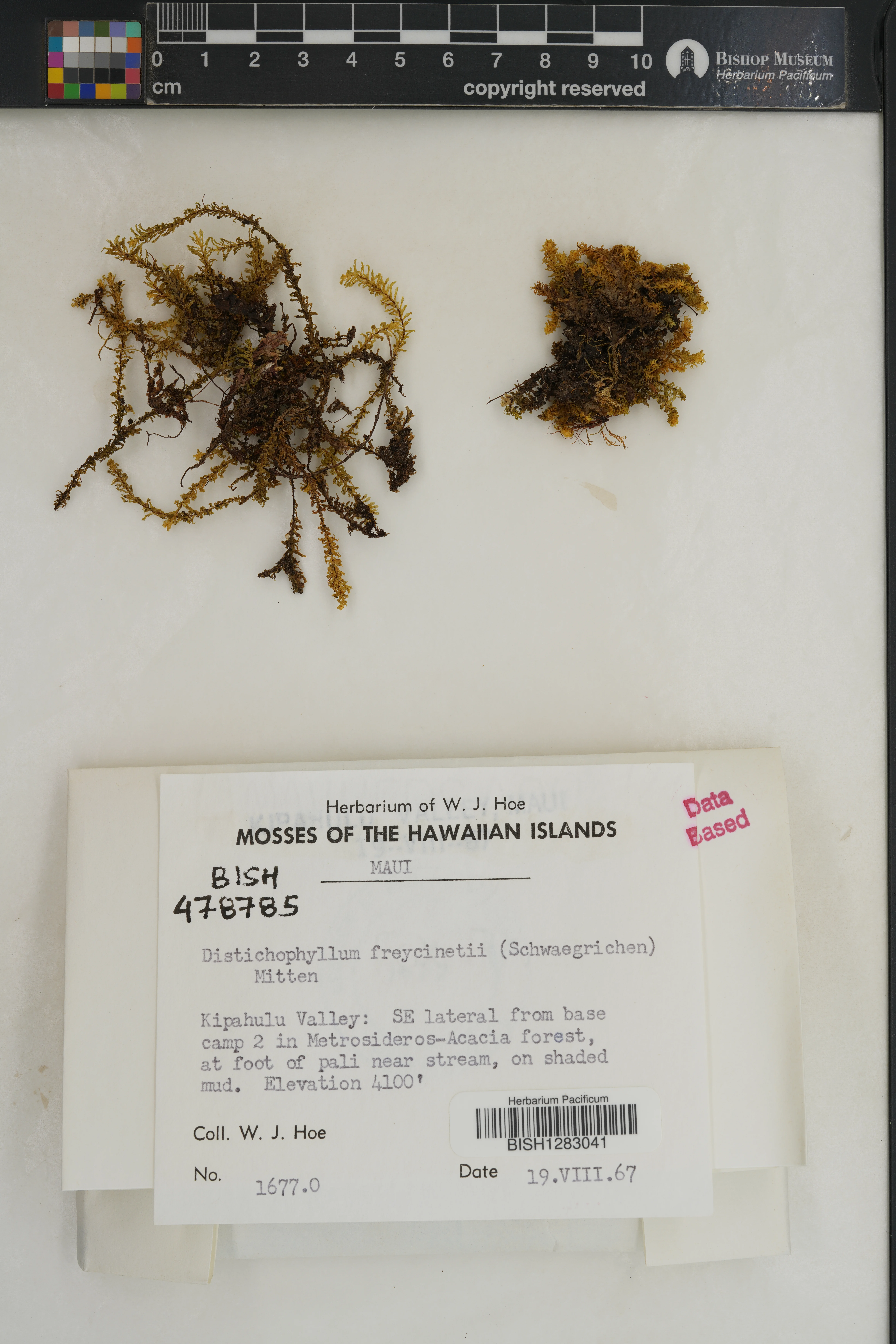 Kingdom: Viridiplantae Phylum: Bryophyta Class/Clade: Bryopsida Order: Hookeriales Family: Hookeriaceae Genus: Distichophyllum