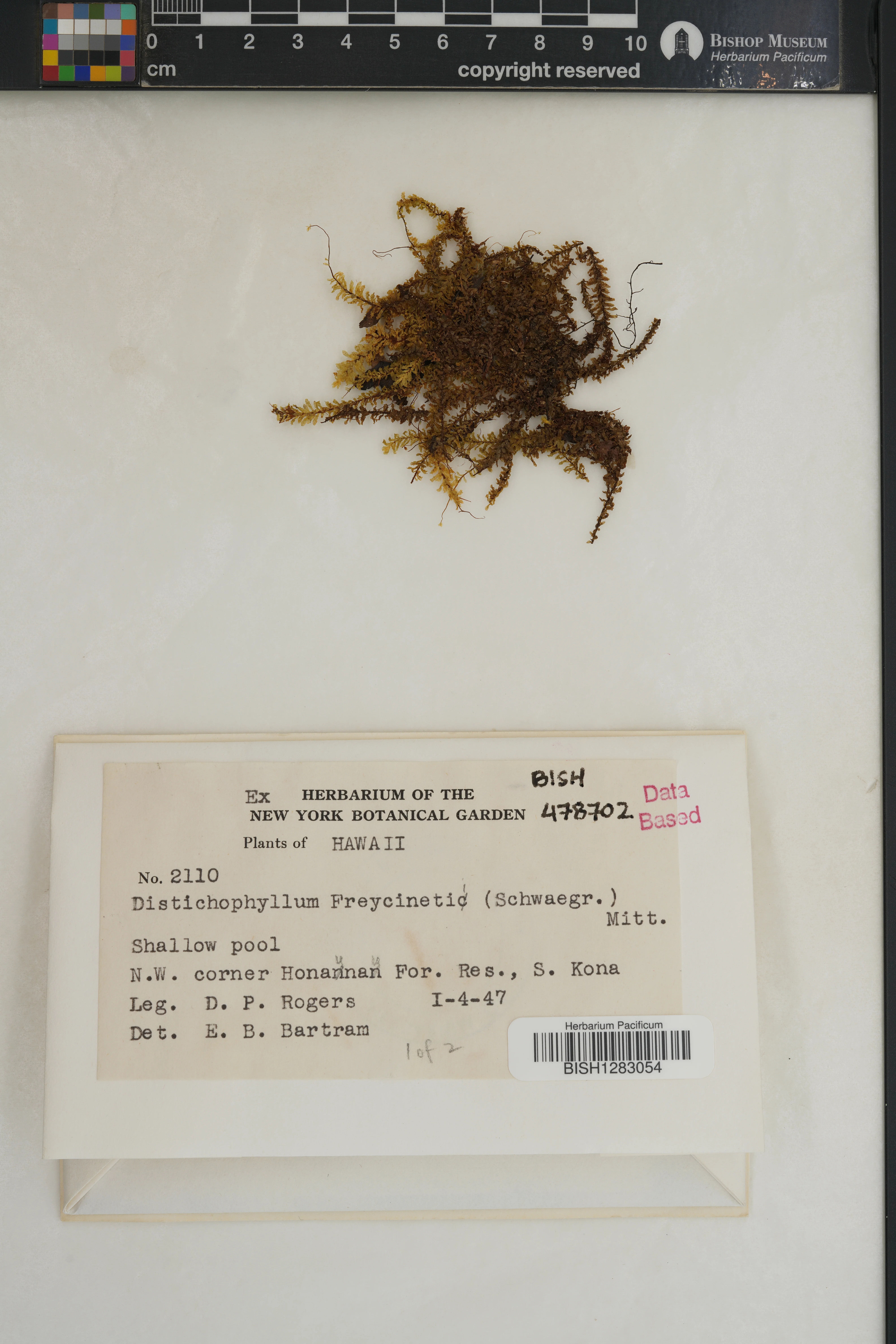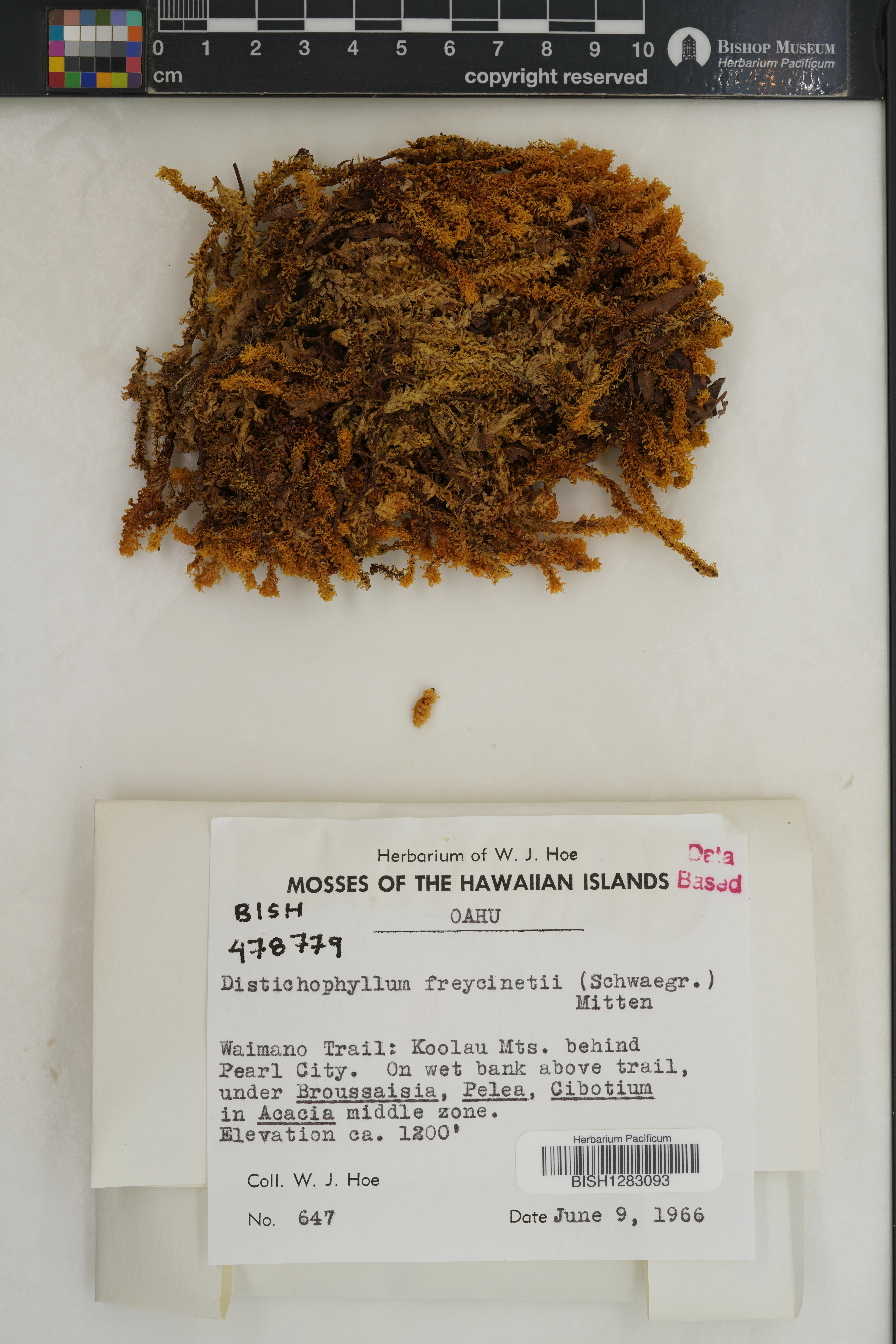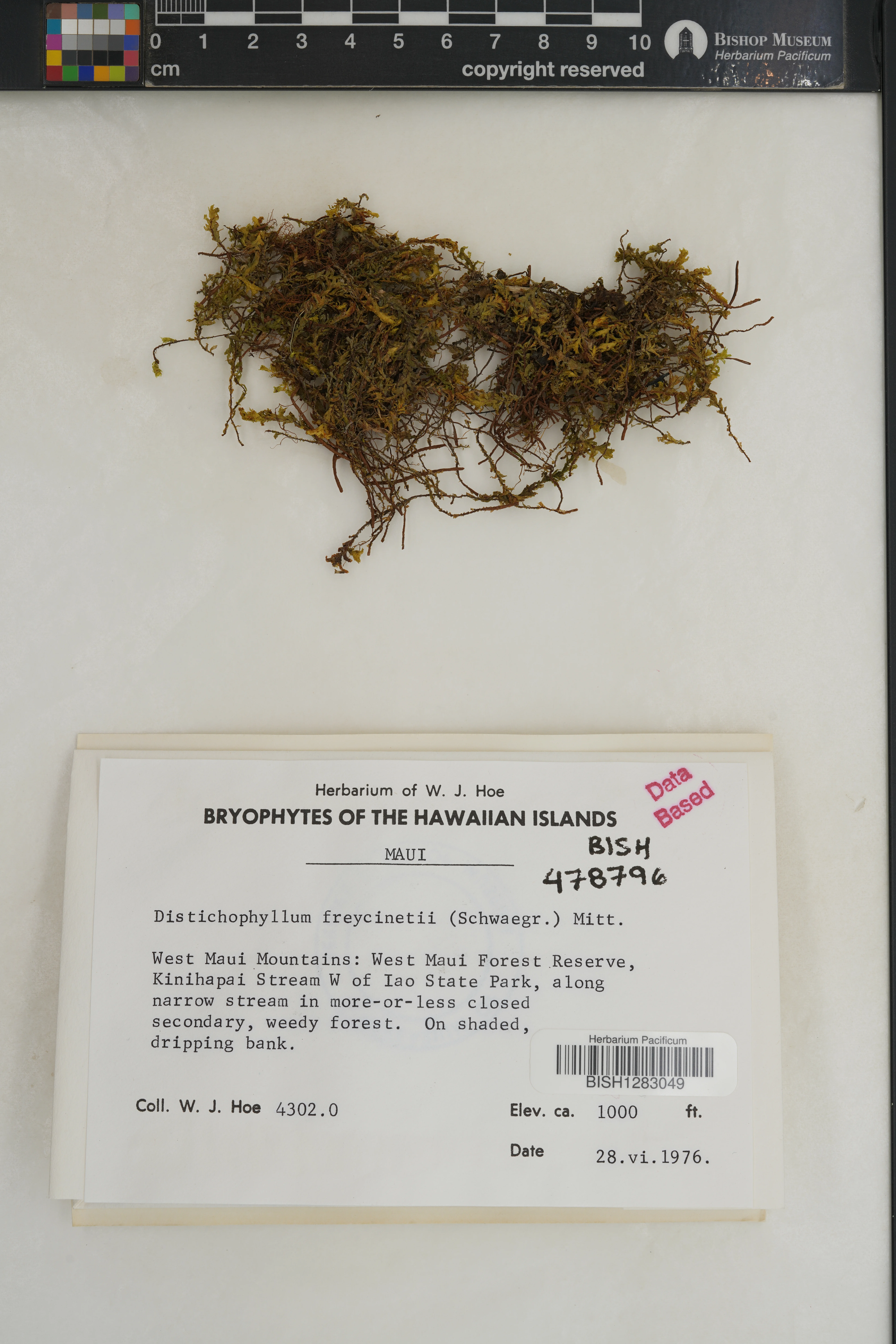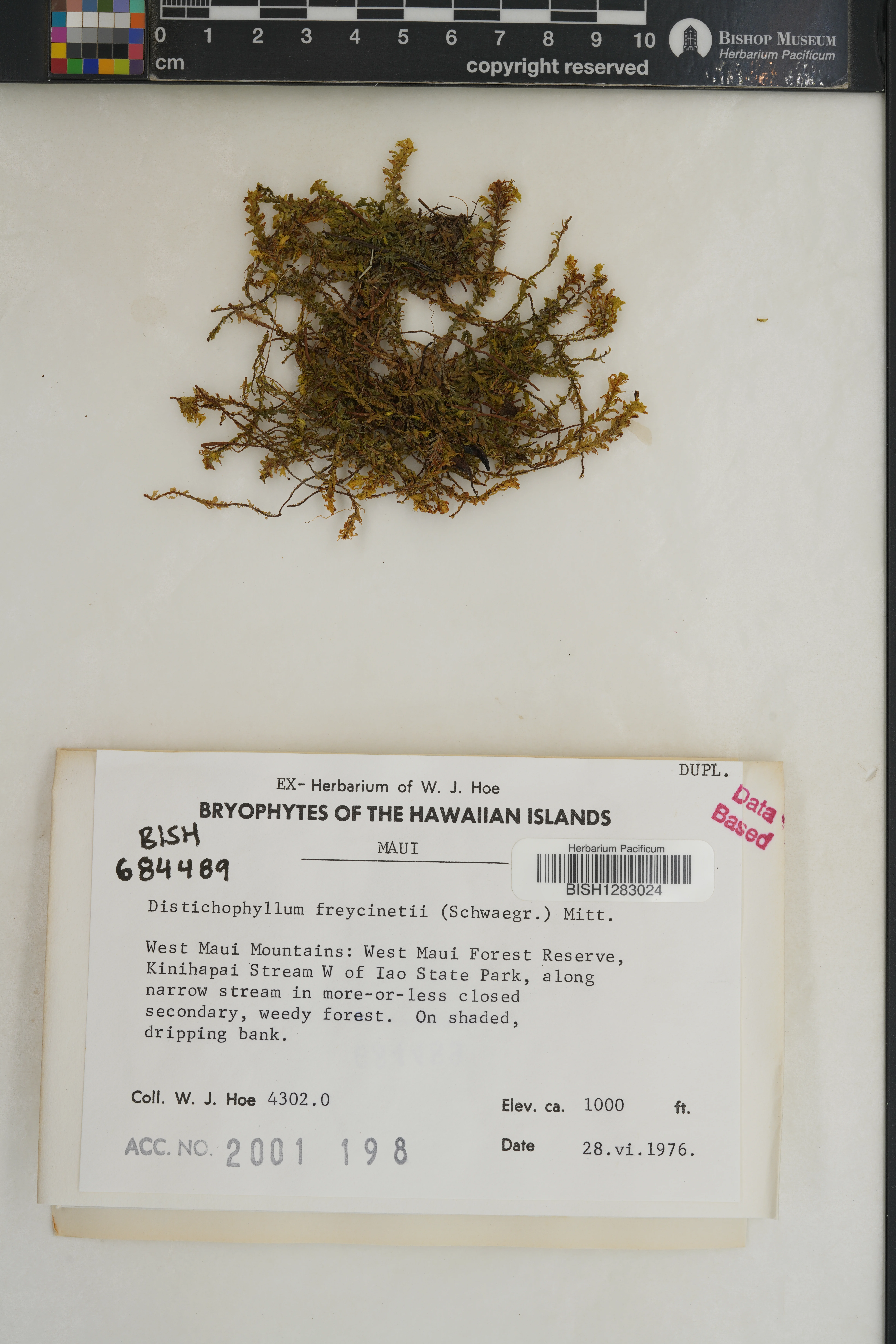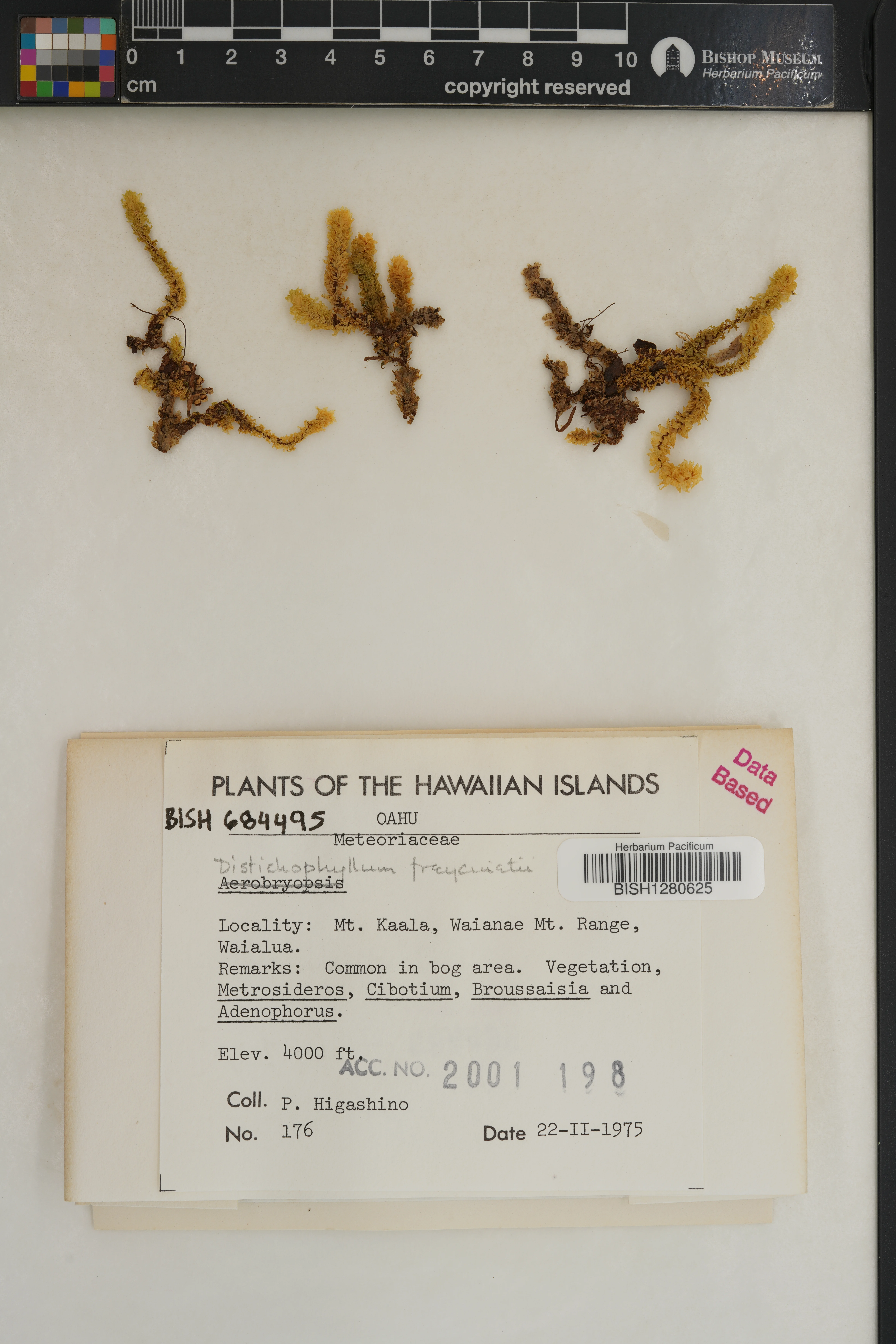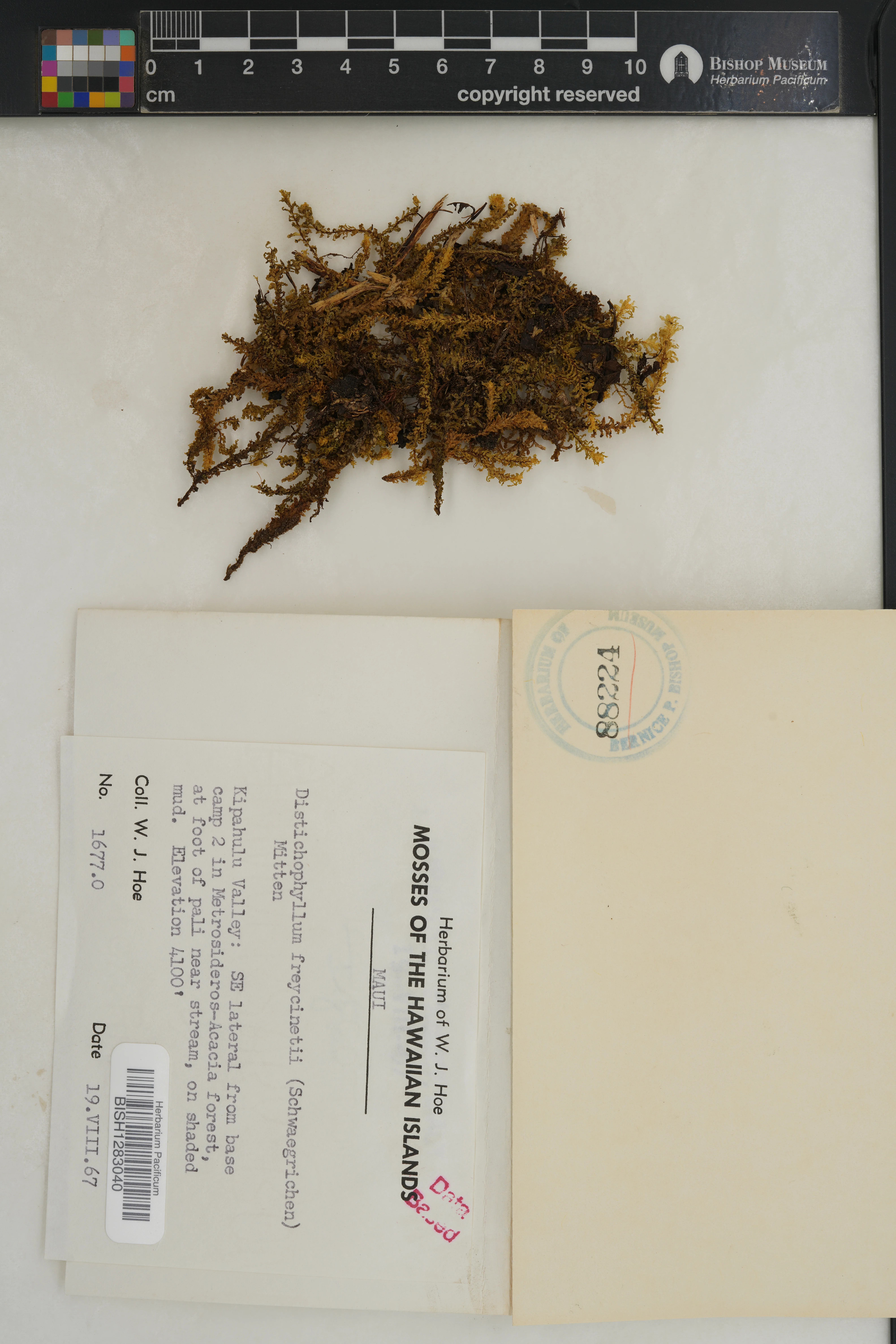 Kingdom: Viridiplantae Phylum: Bryophyta Class/Clade: Bryopsida Order: Hookeriales Family: Hookeriaceae Genus: Distichophyllum