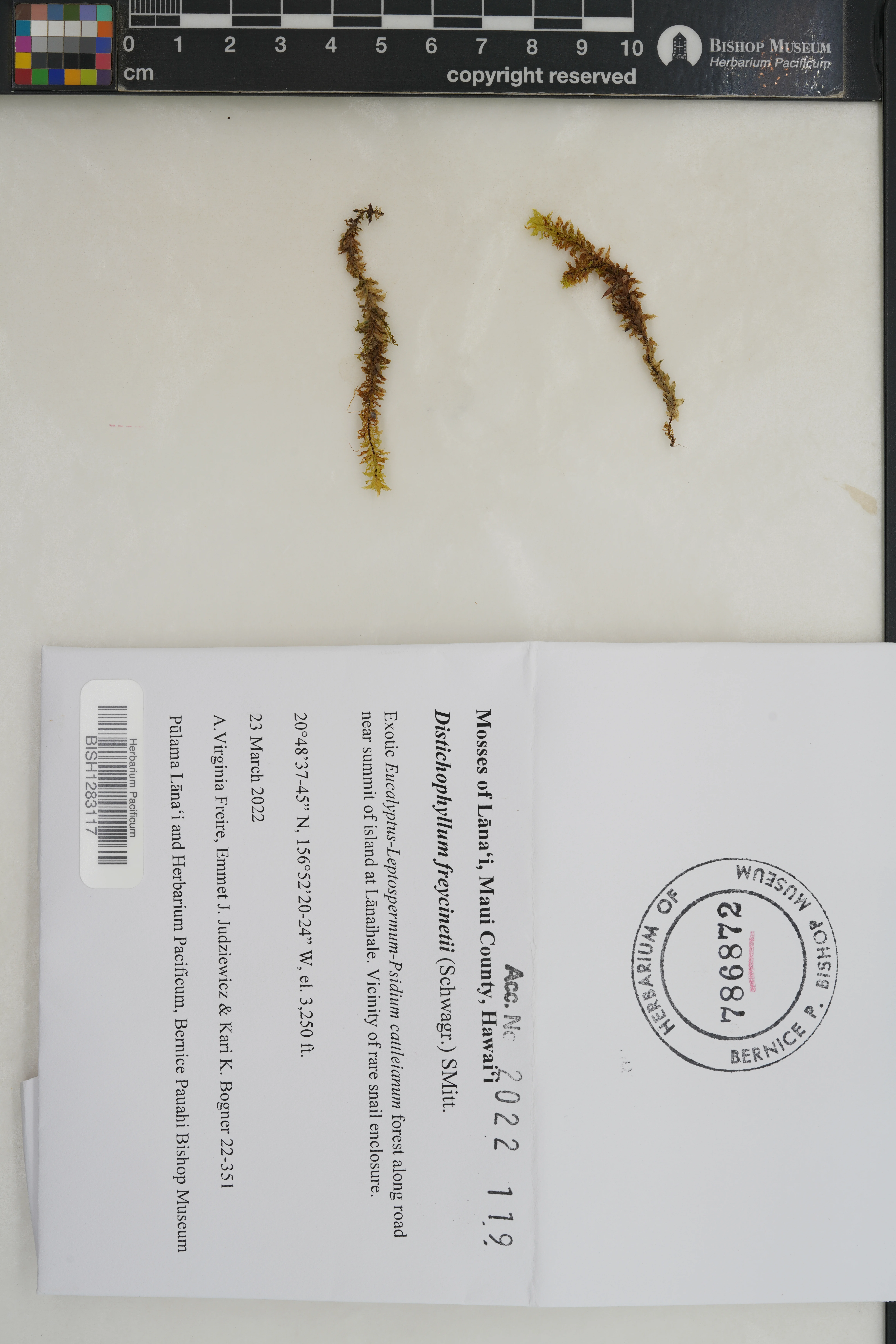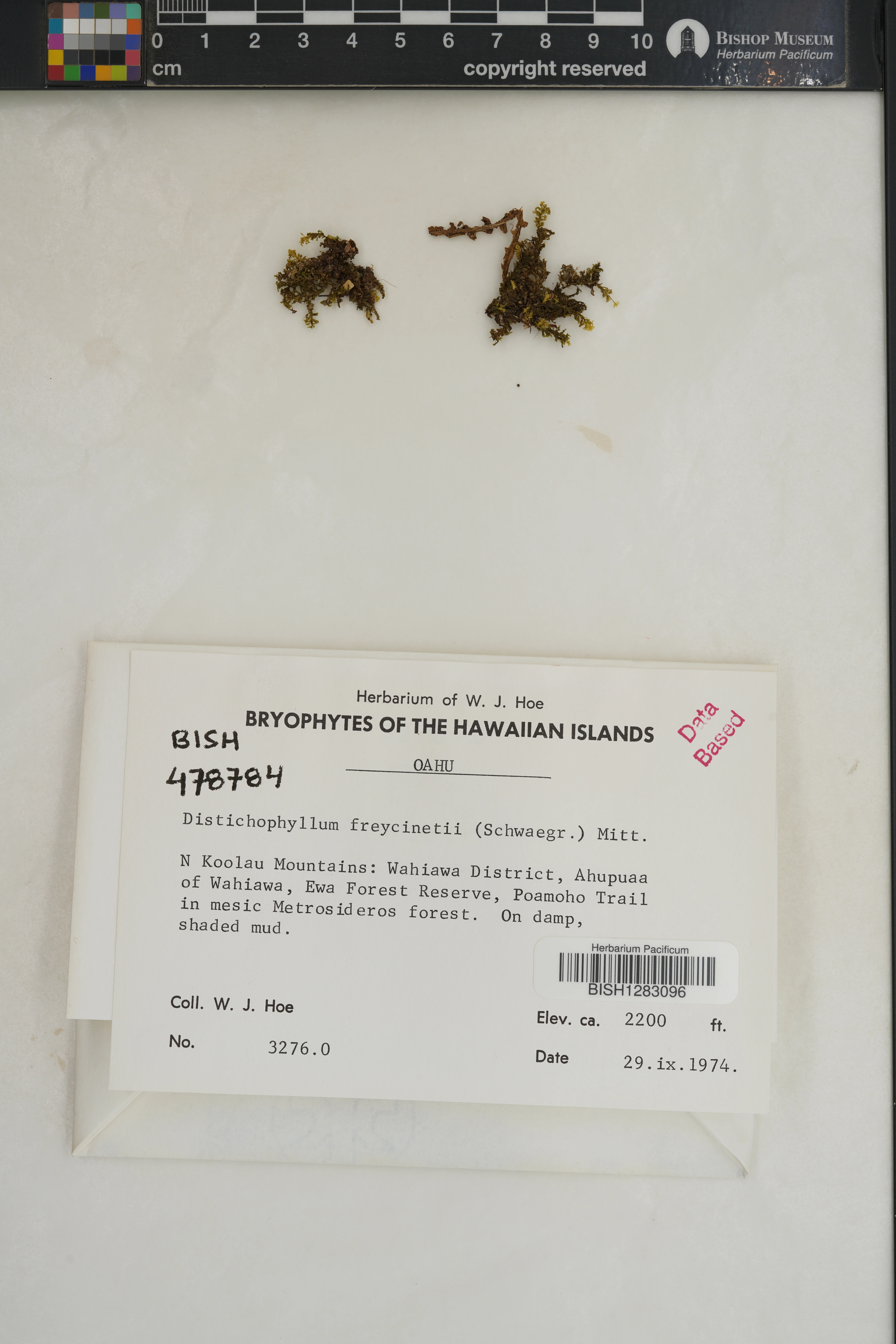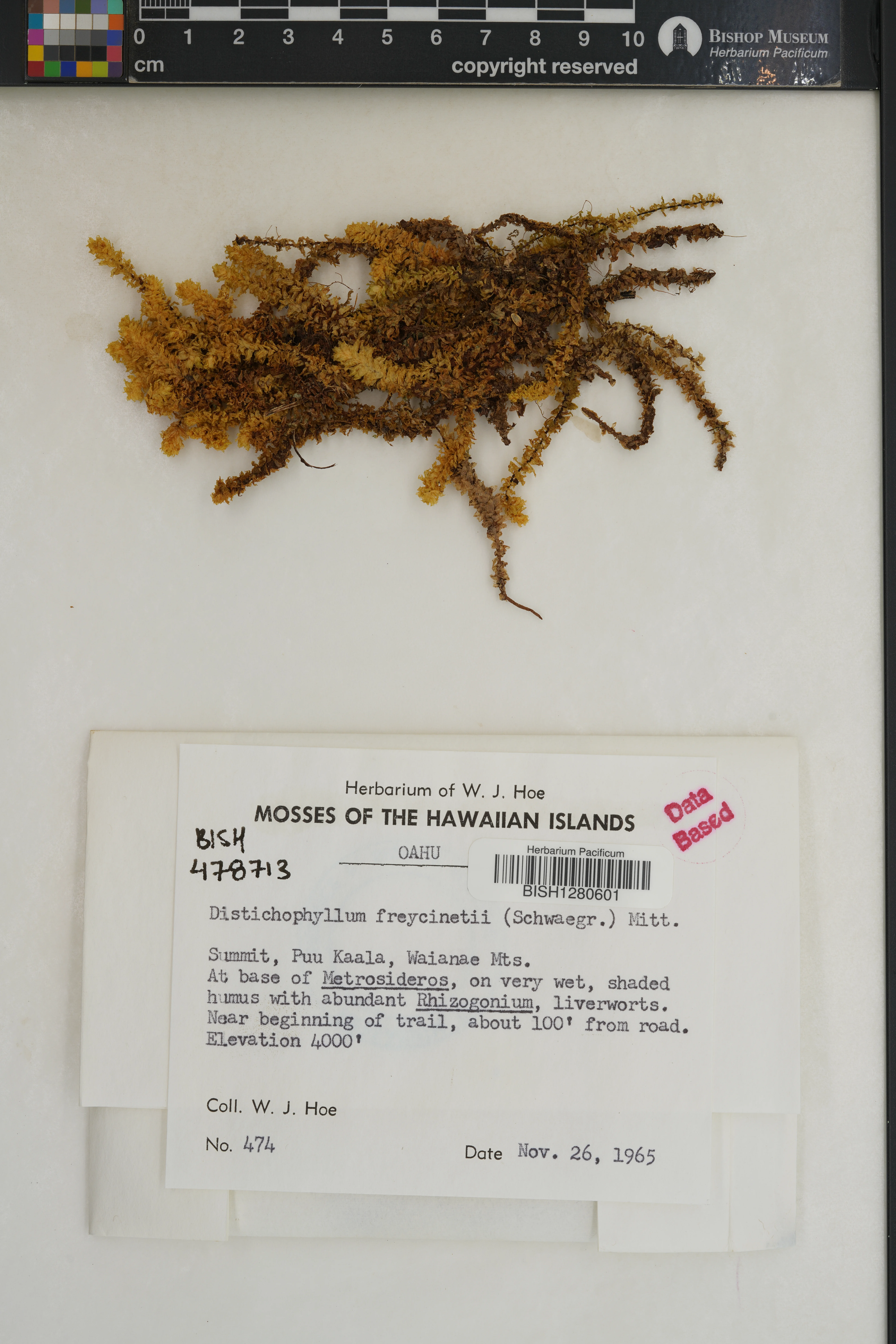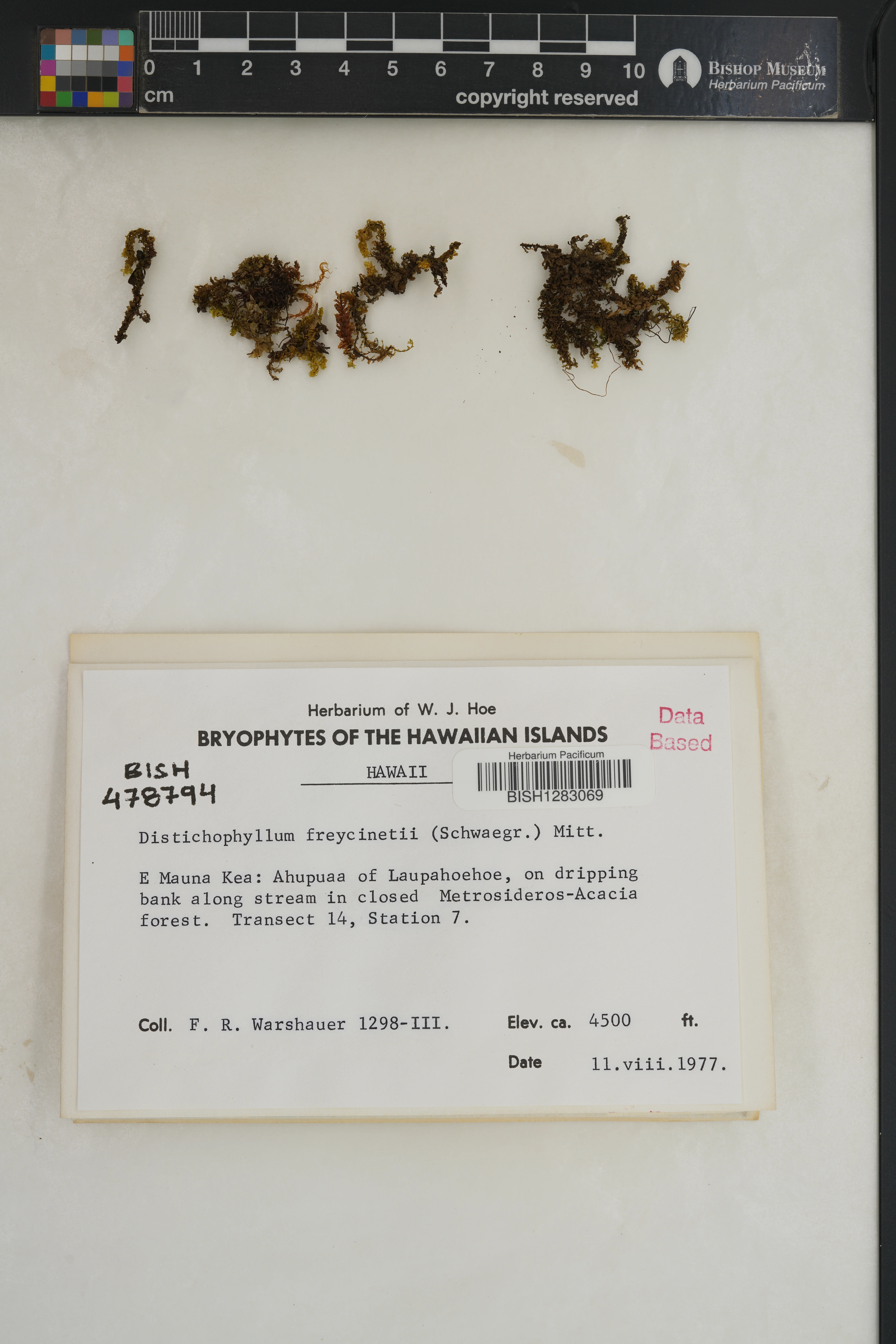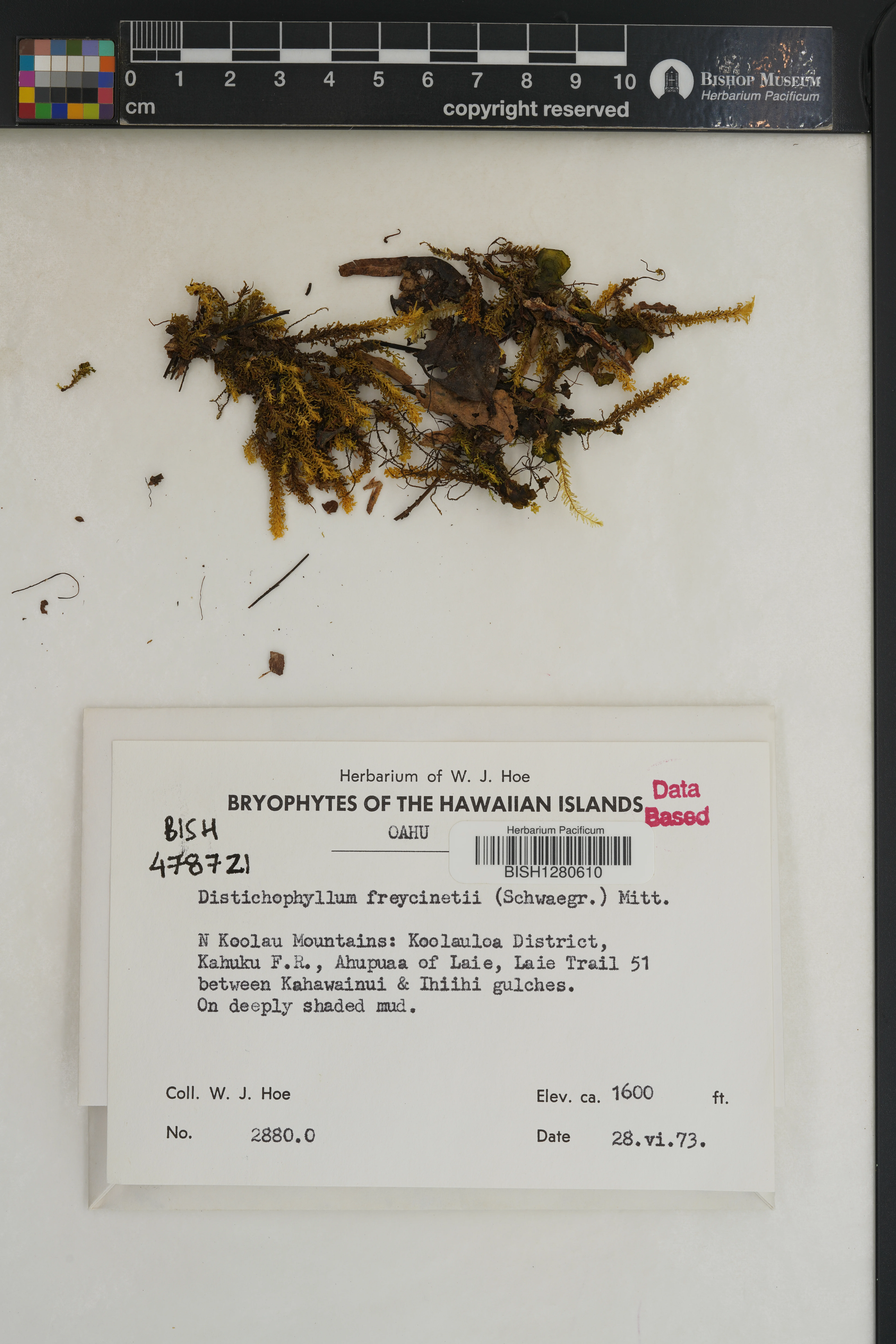 Kingdom: Viridiplantae Phylum: Bryophyta Class/Clade: Bryopsida Order: Hookeriales Family: Hookeriaceae Genus: Distichophyllum