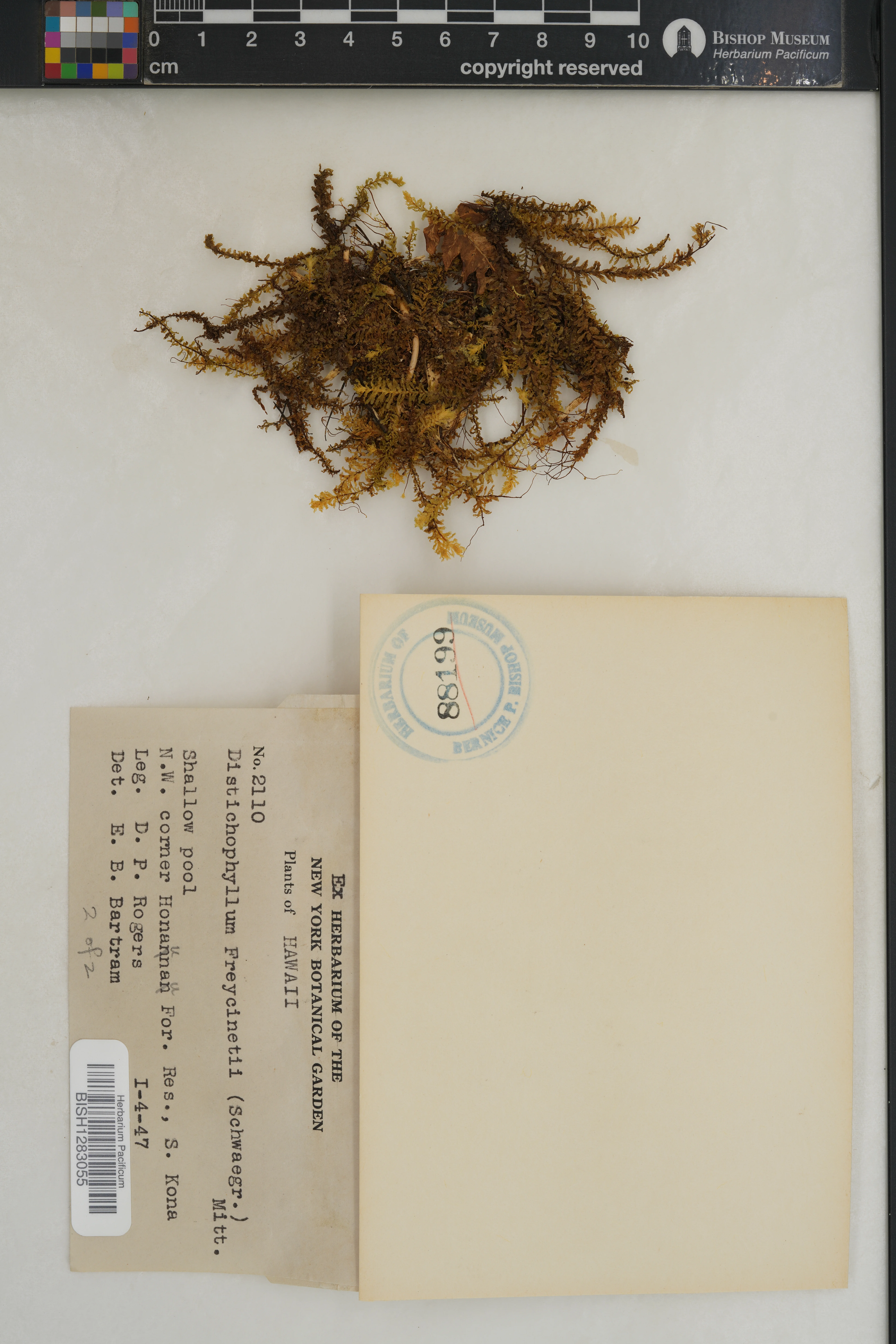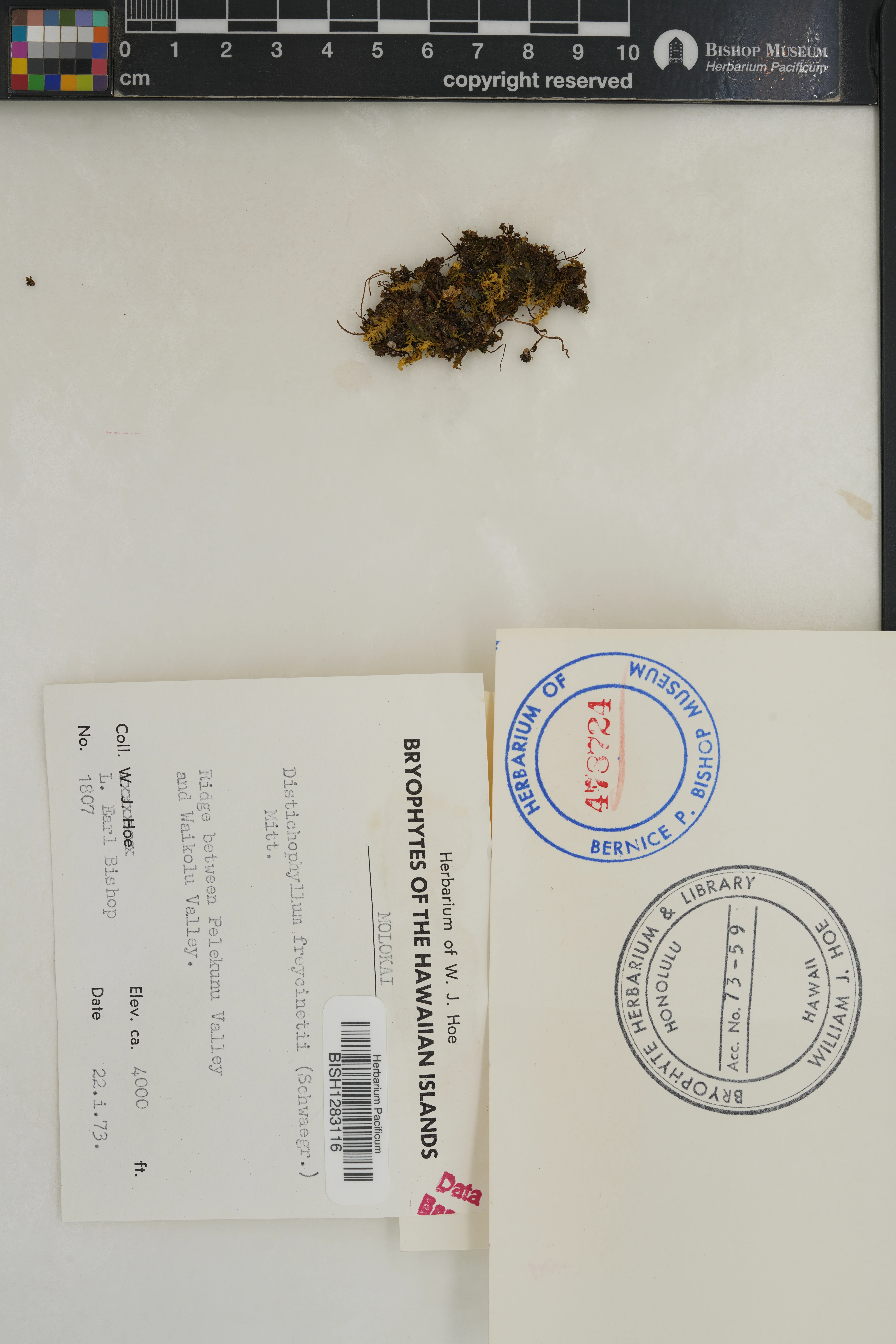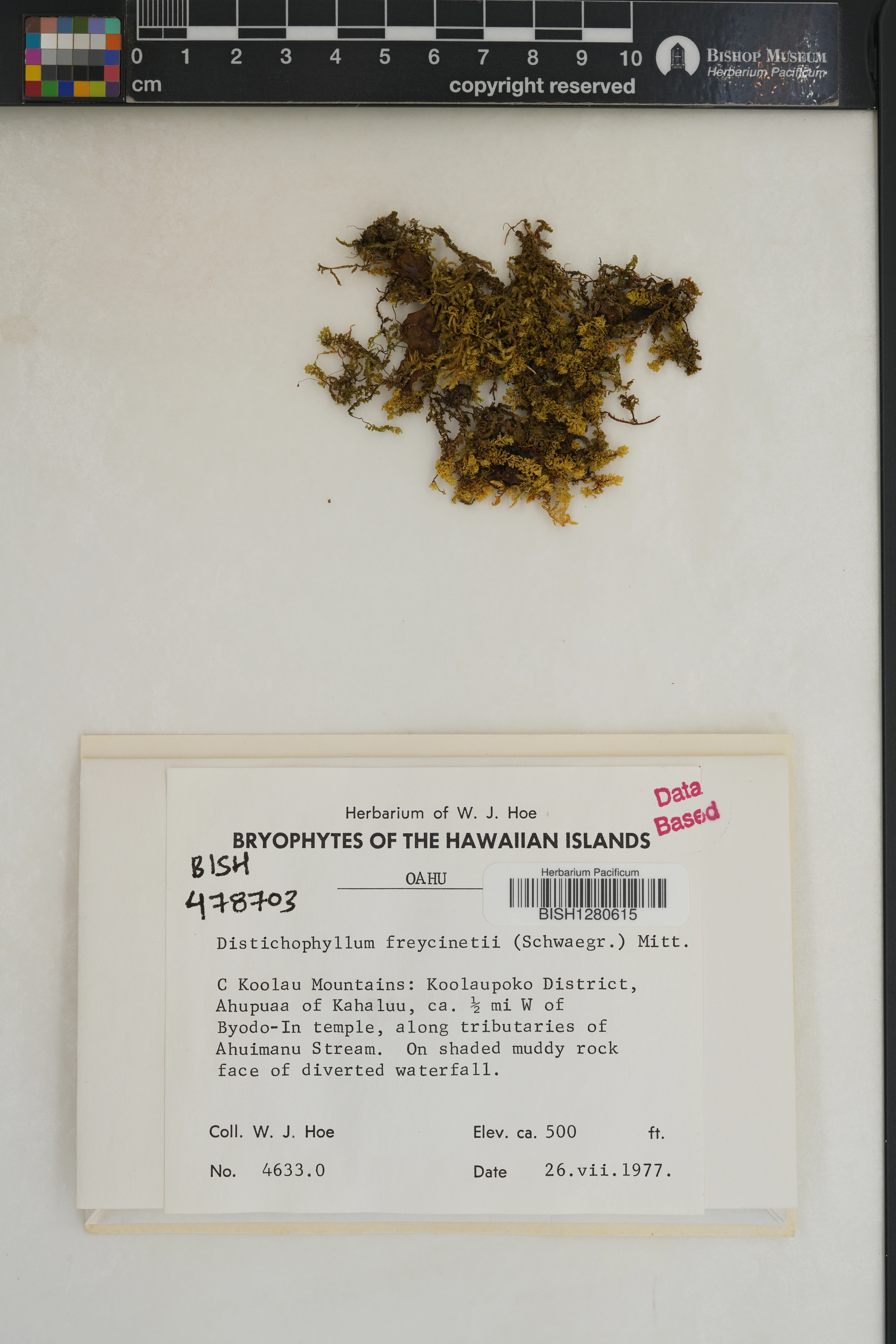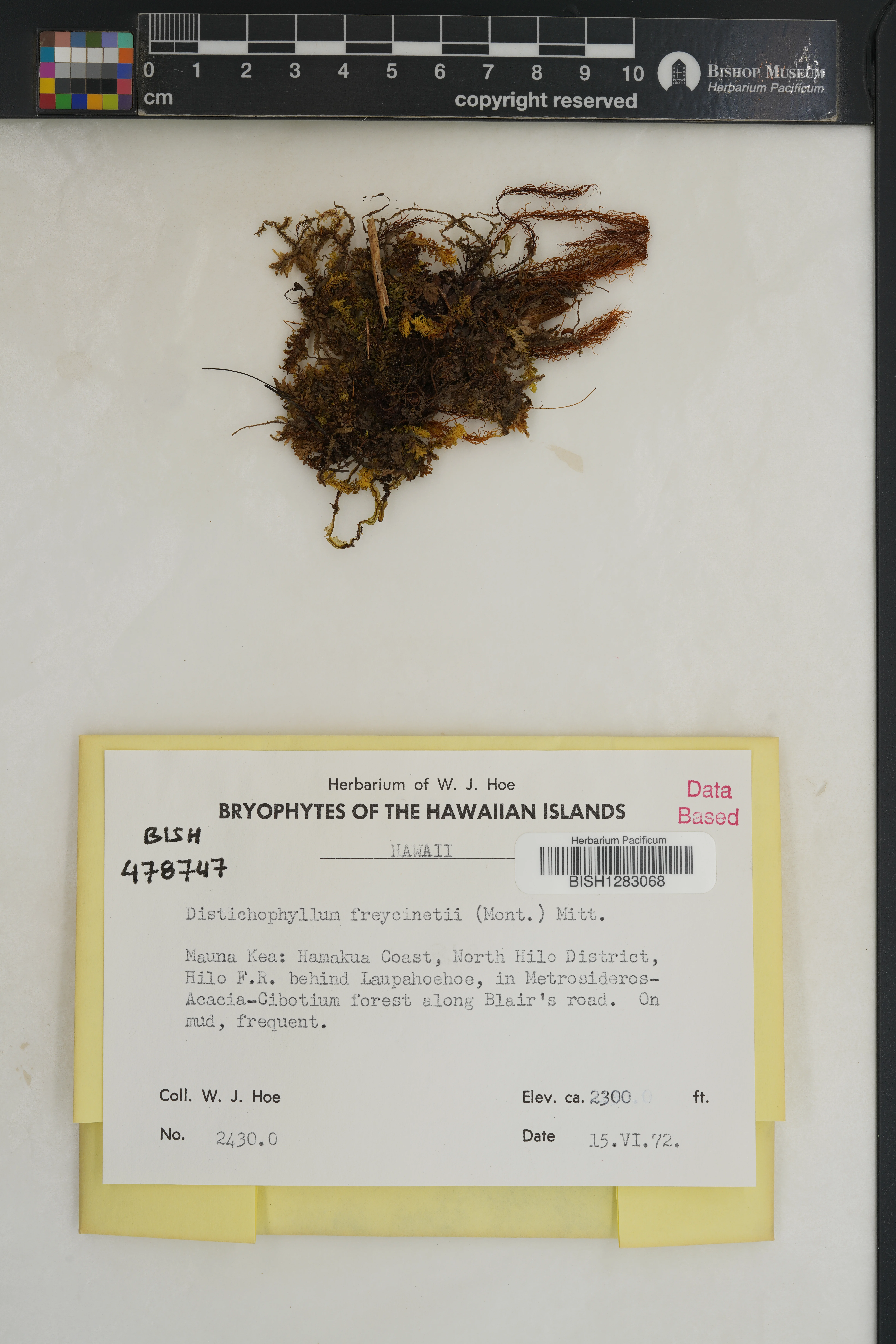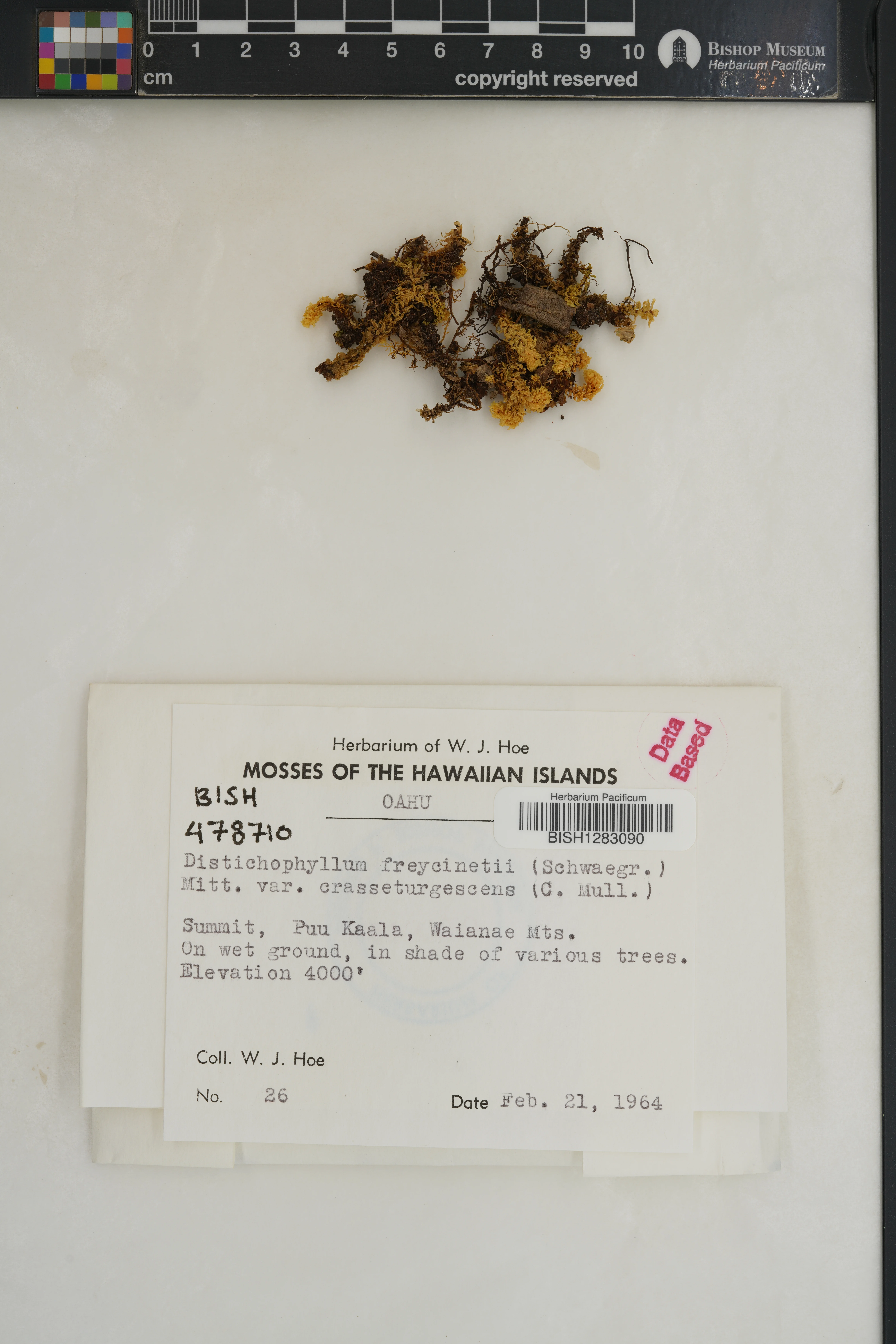 Kingdom: Viridiplantae Phylum: Bryophyta Class/Clade: Bryopsida Order: Hookeriales Family: Hookeriaceae Genus: Distichophyllum