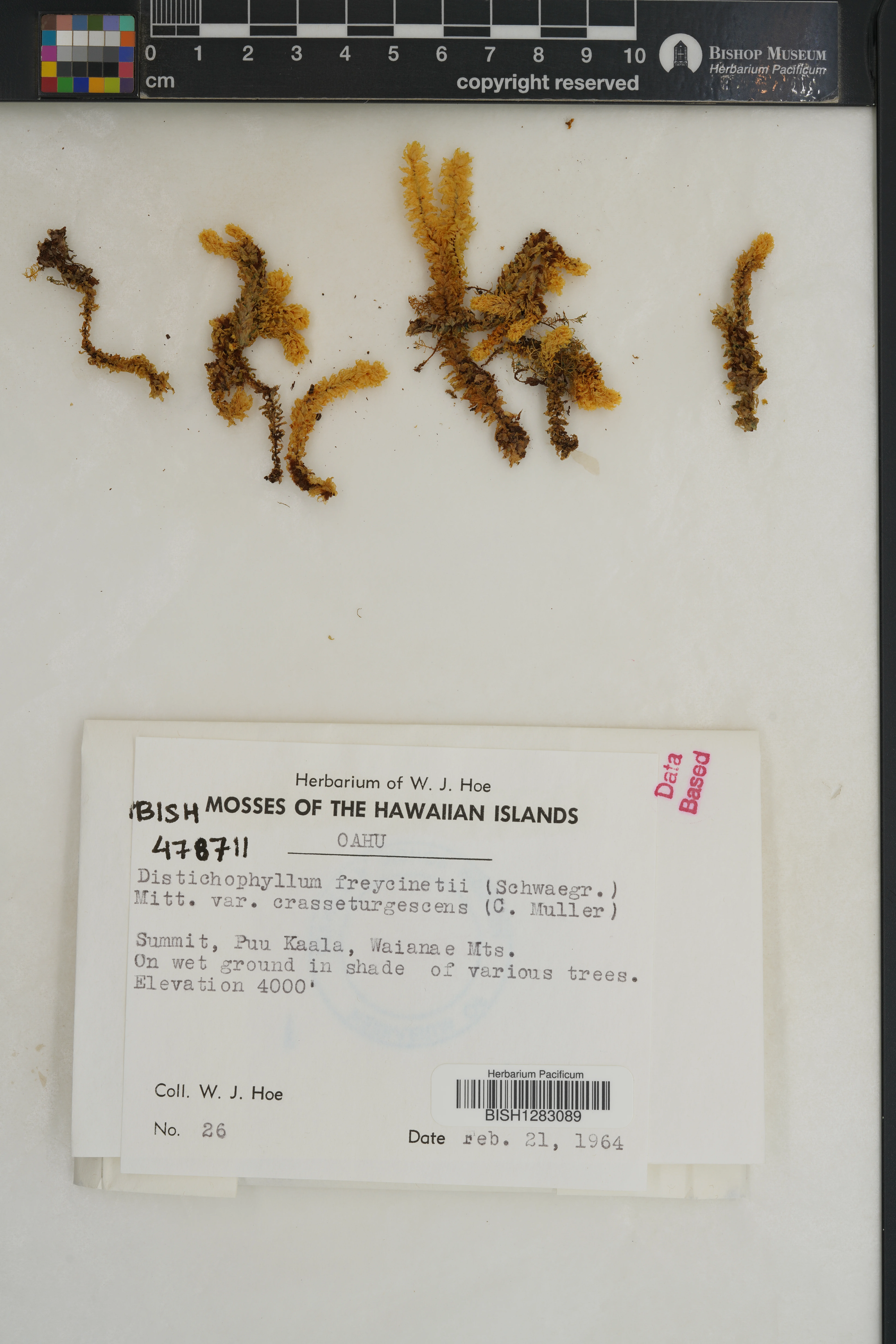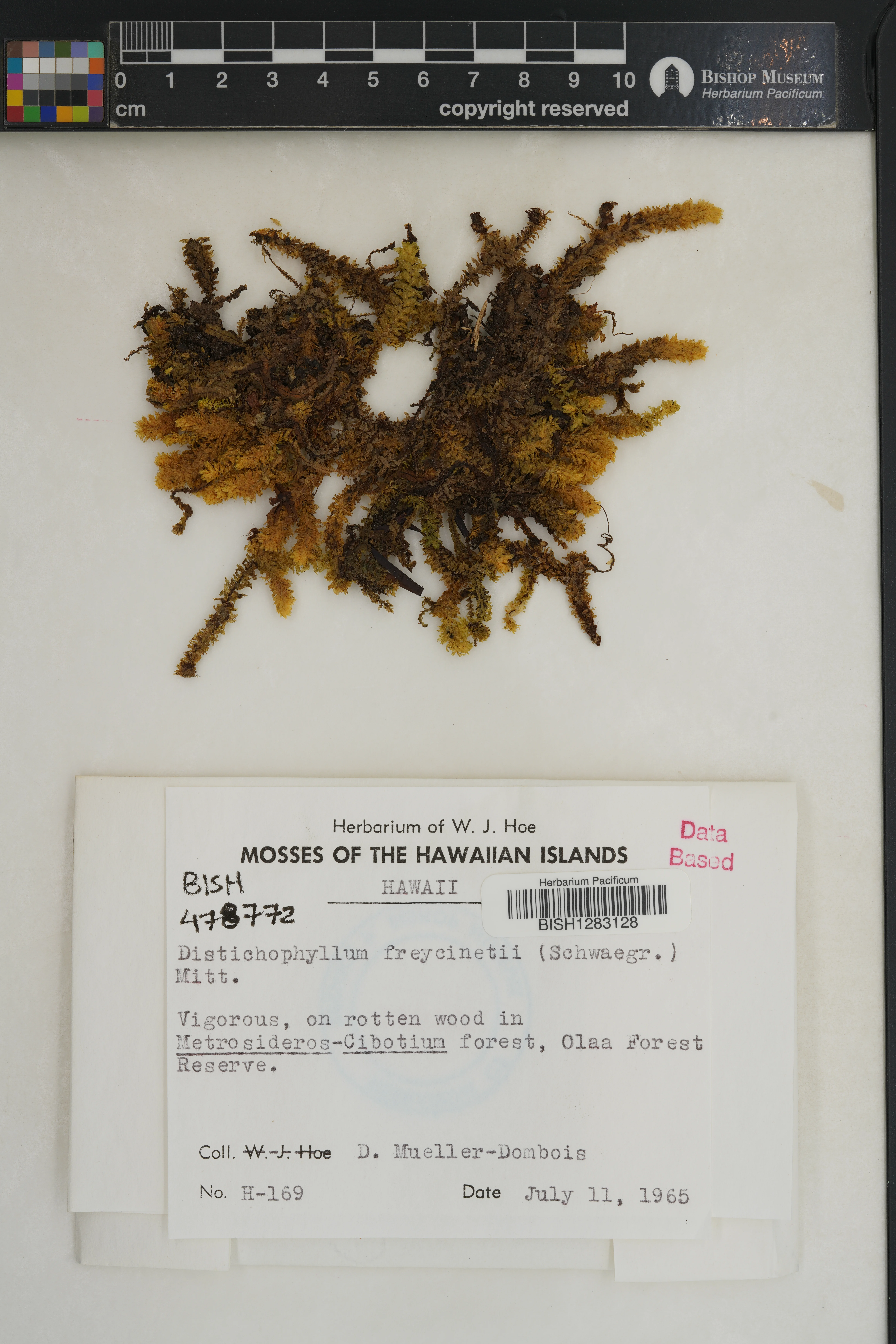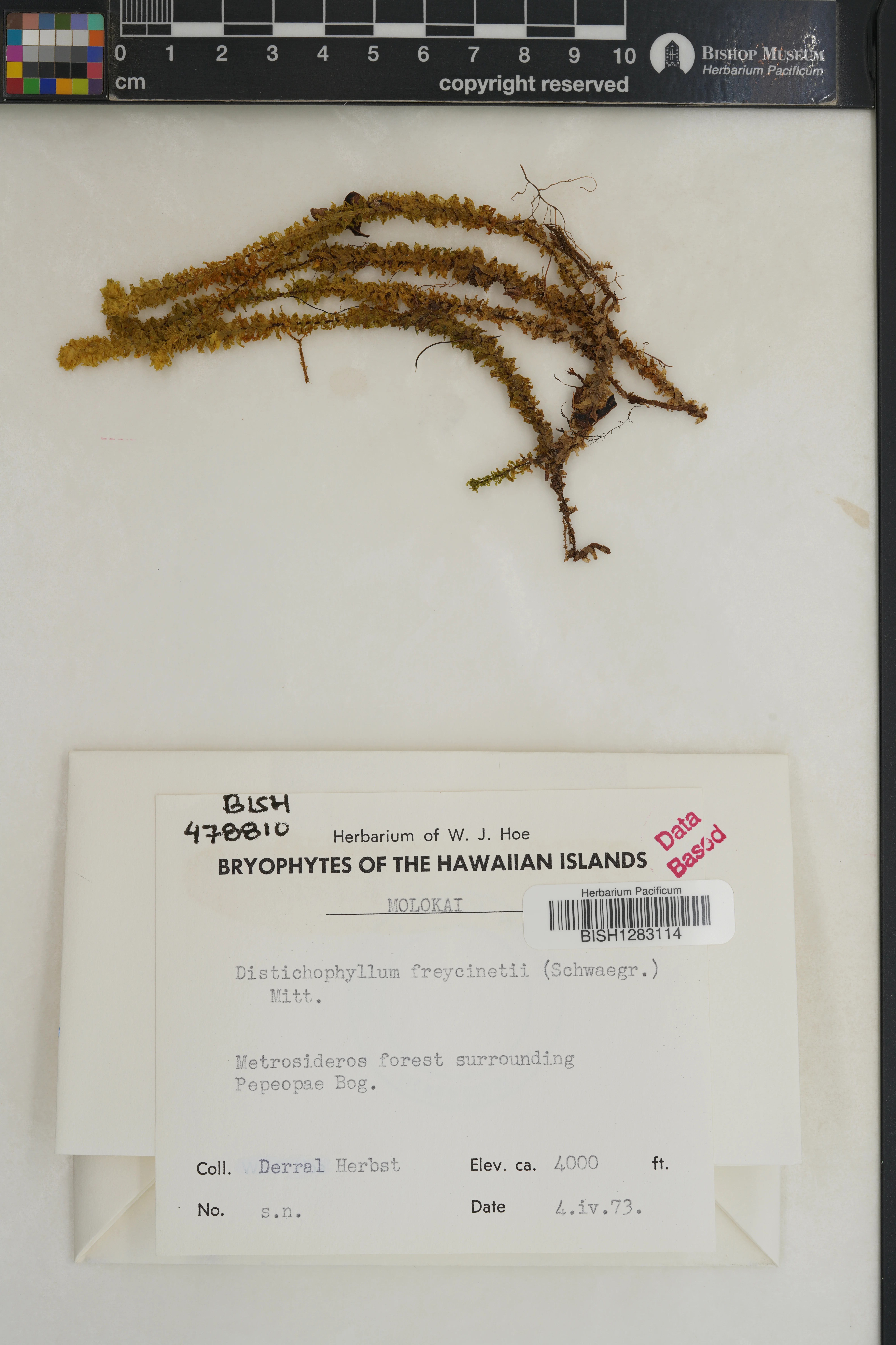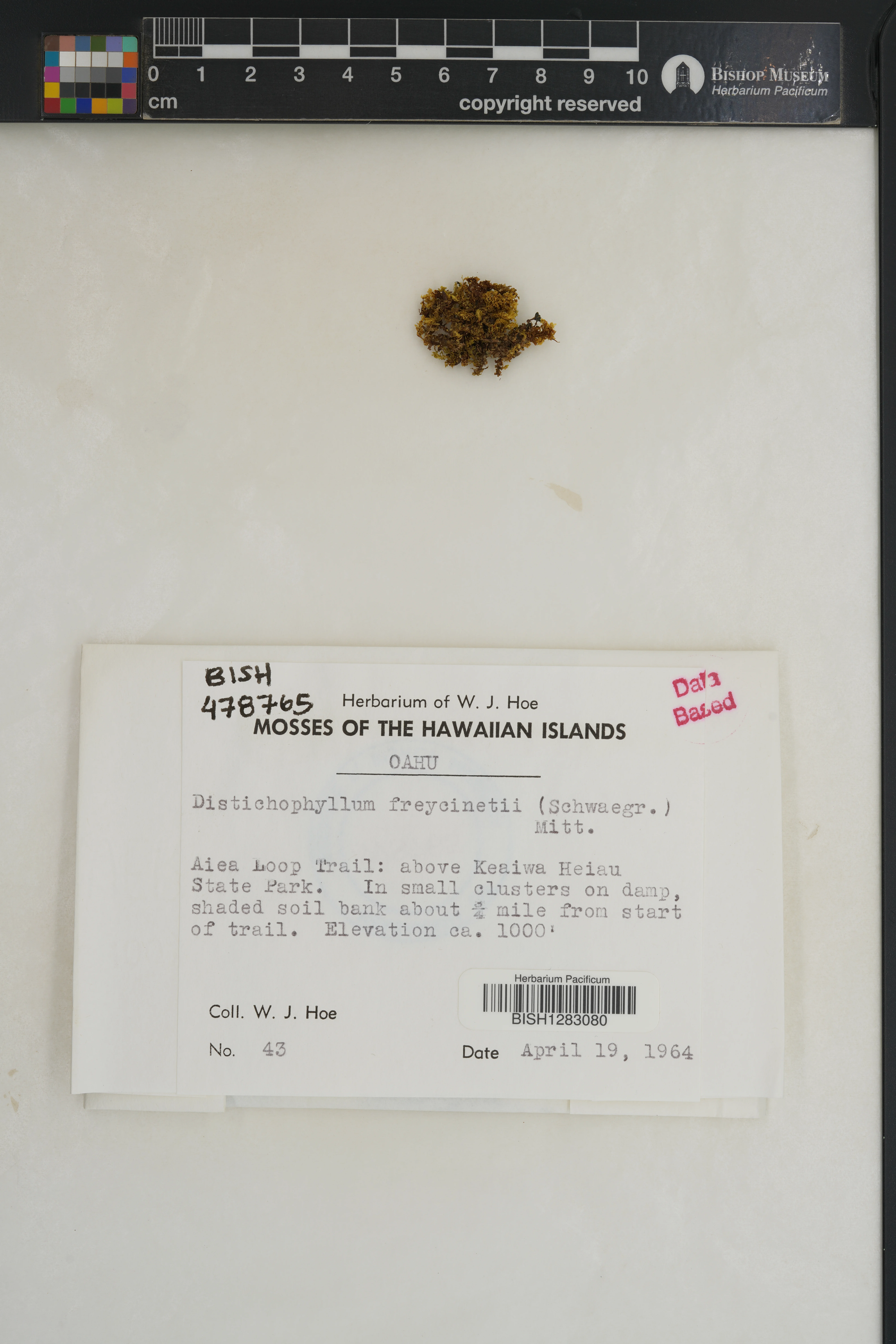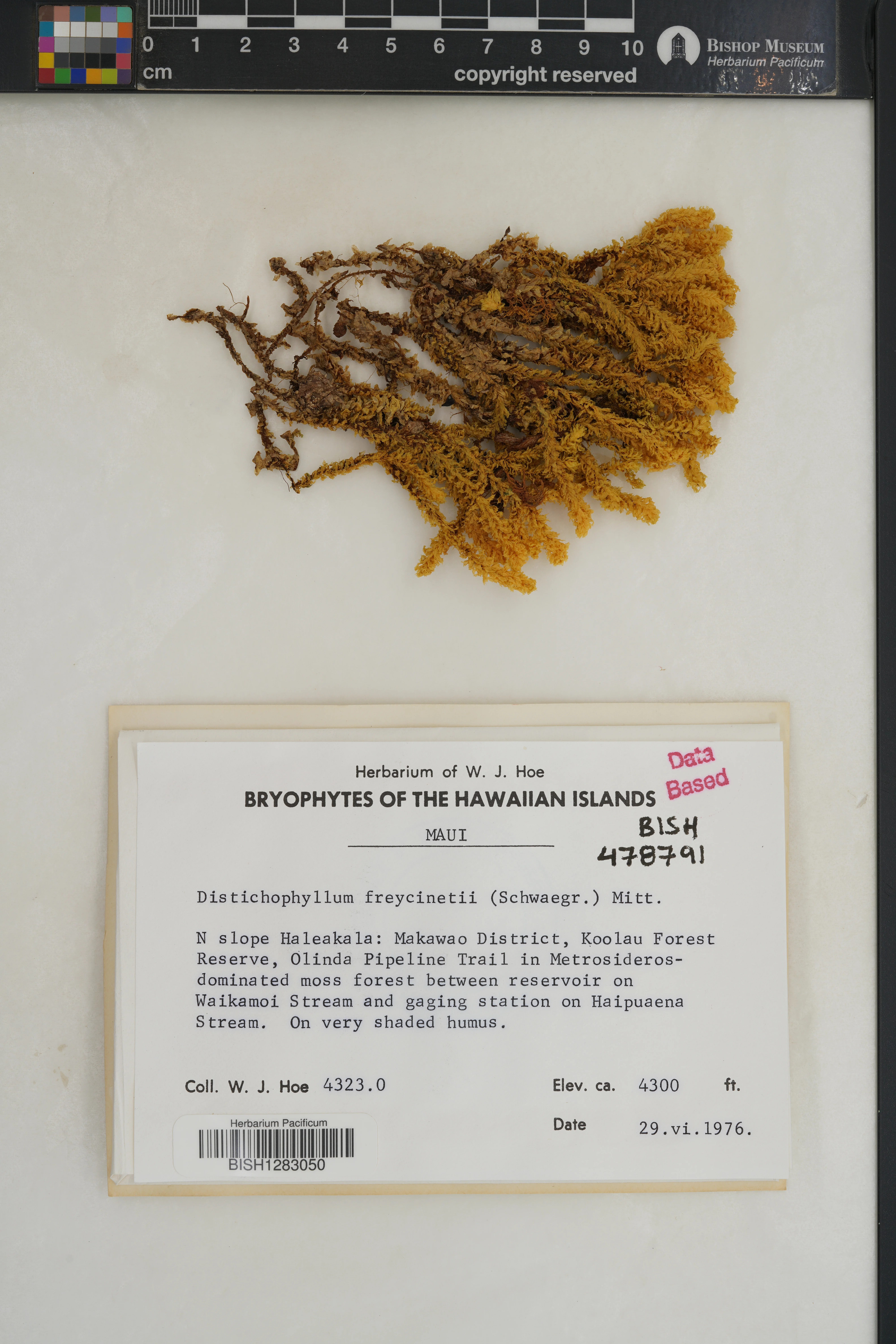 Kingdom: Viridiplantae Phylum: Bryophyta Class/Clade: Bryopsida Order: Hookeriales Family: Hookeriaceae Genus: Distichophyllum