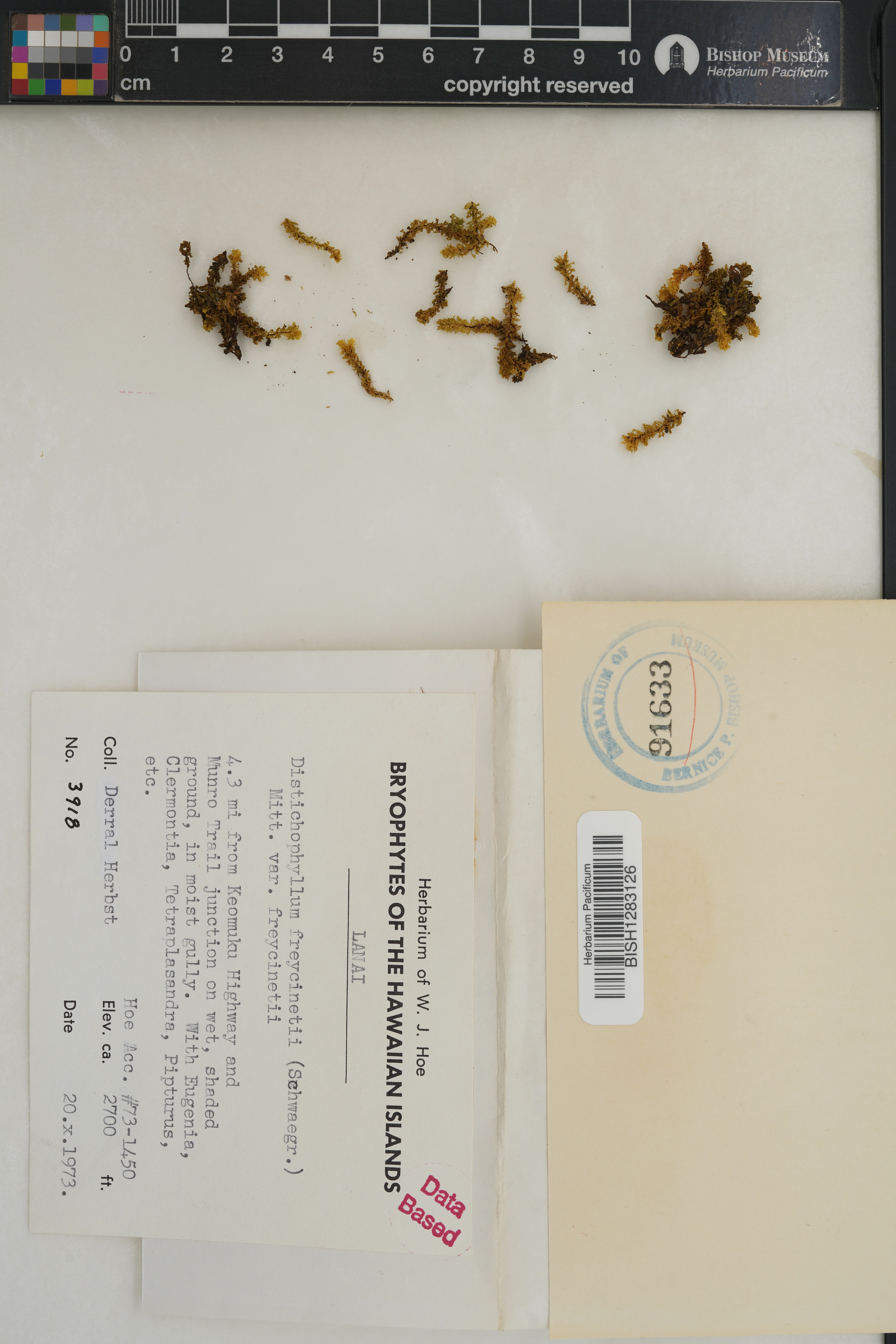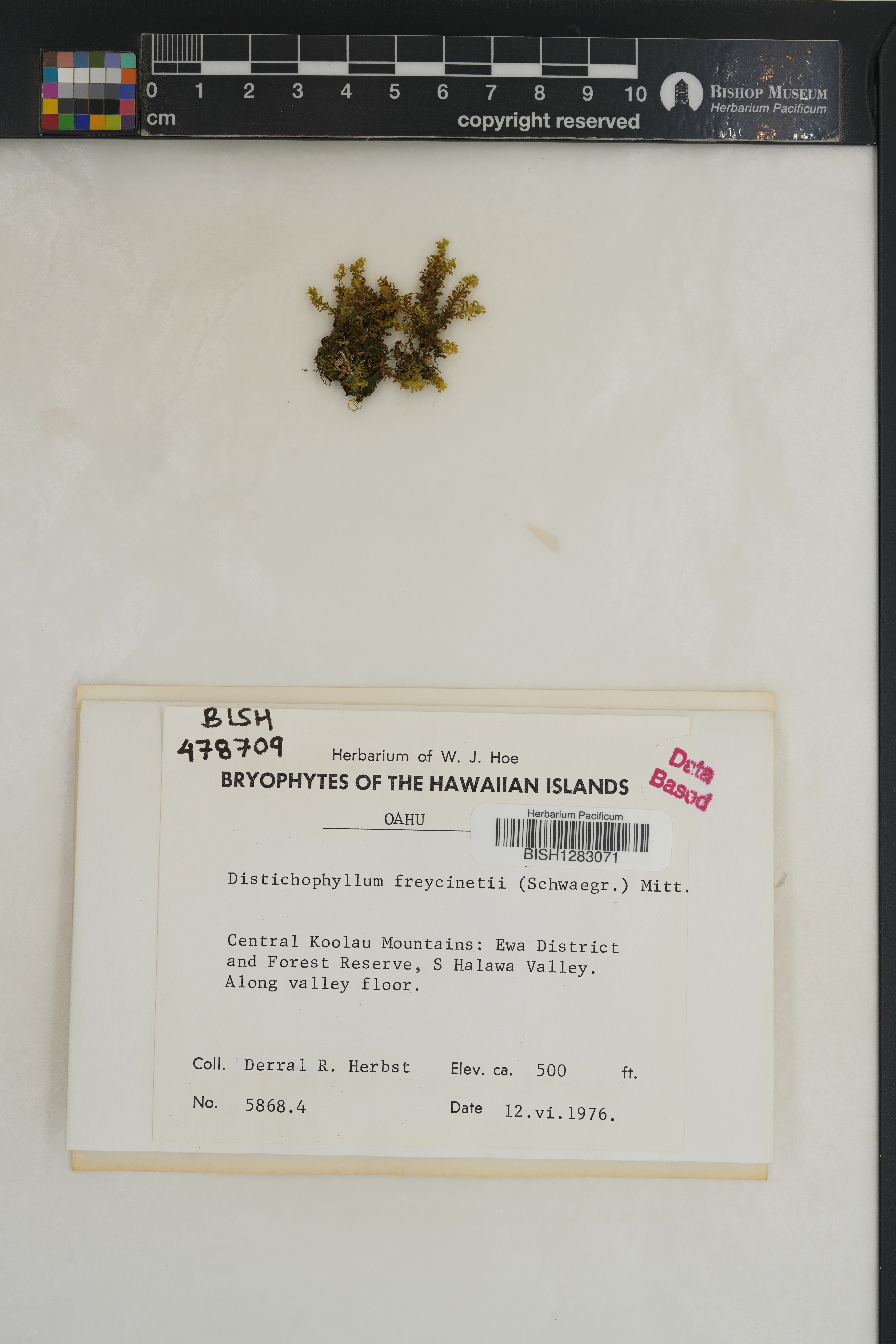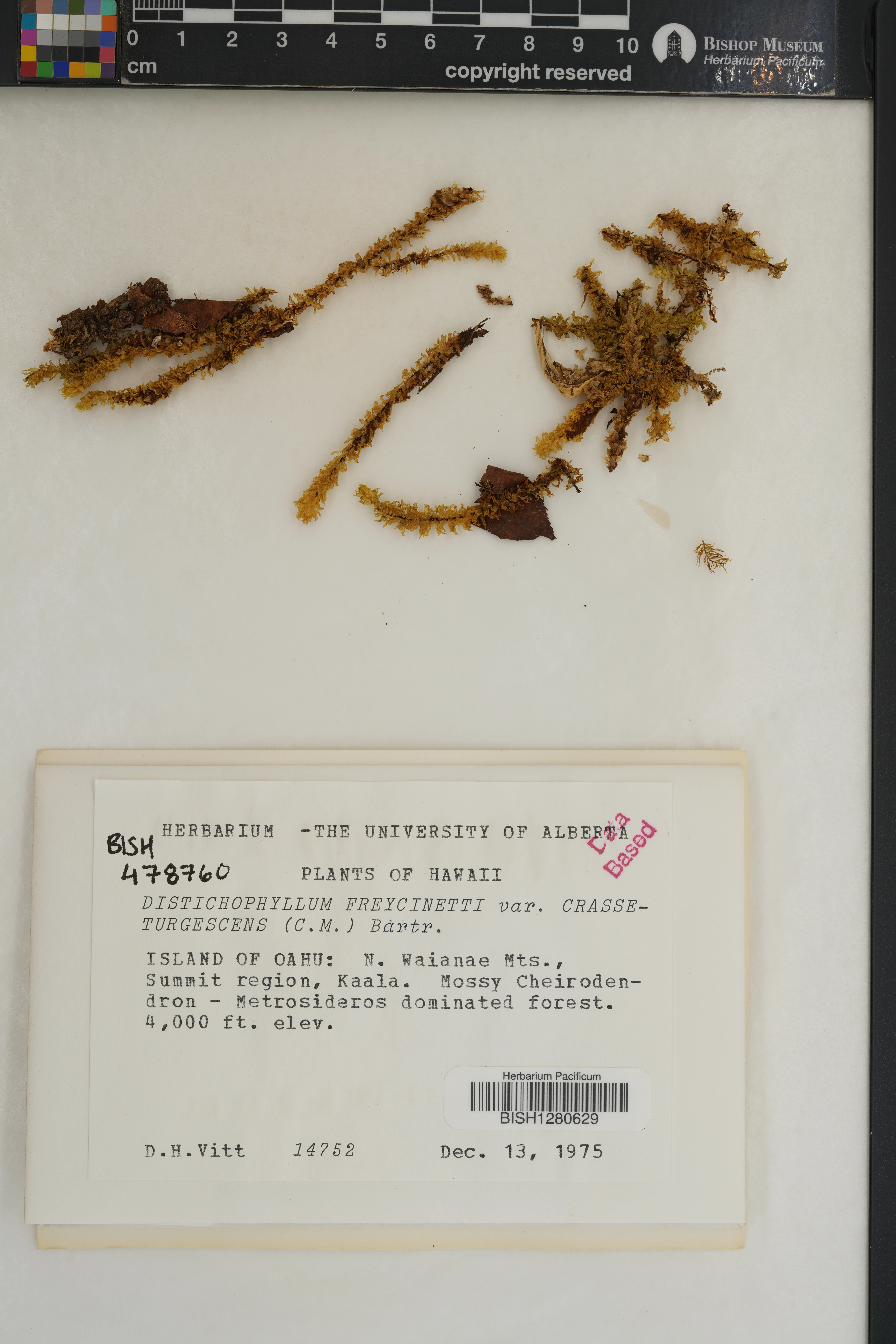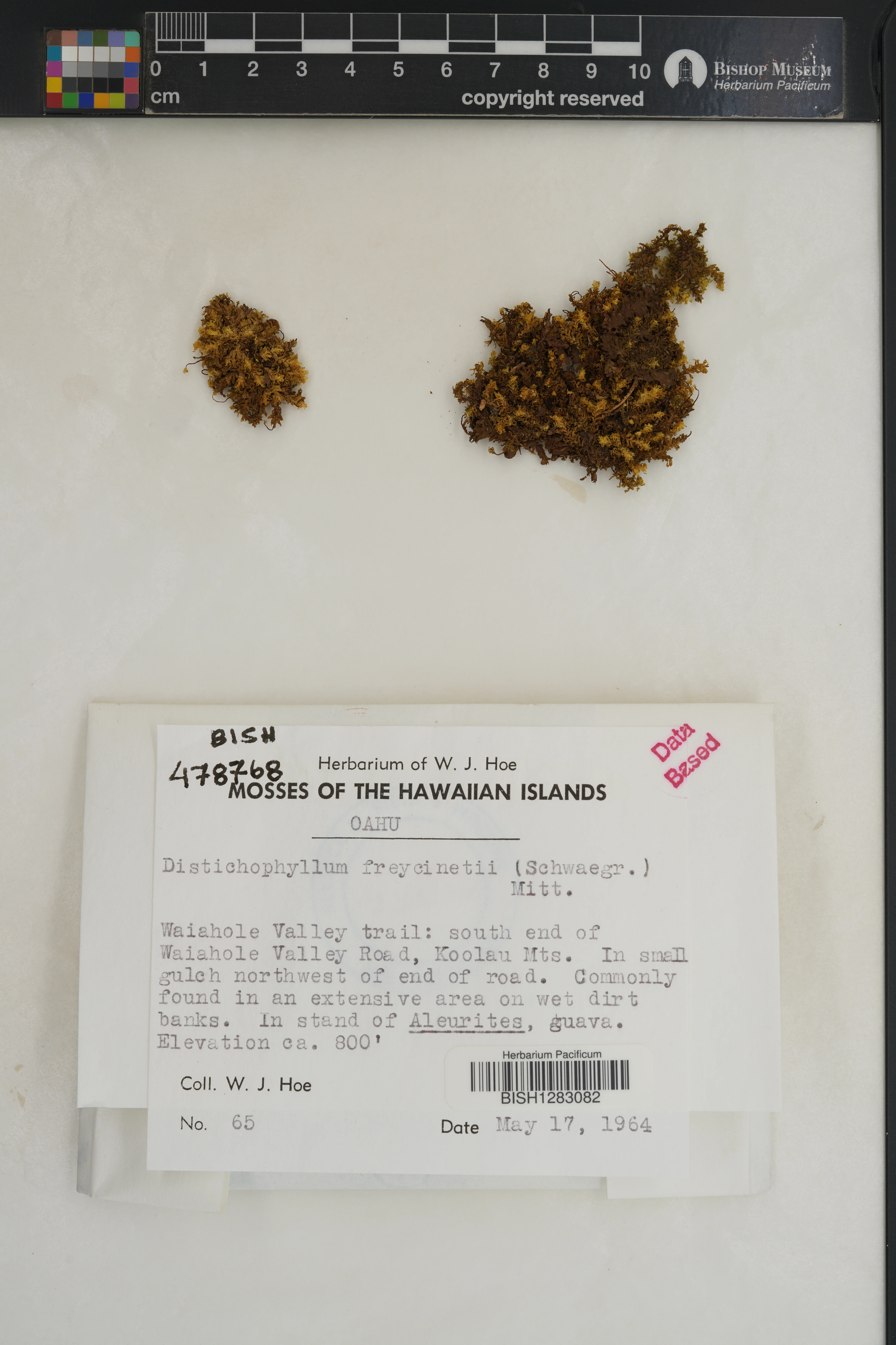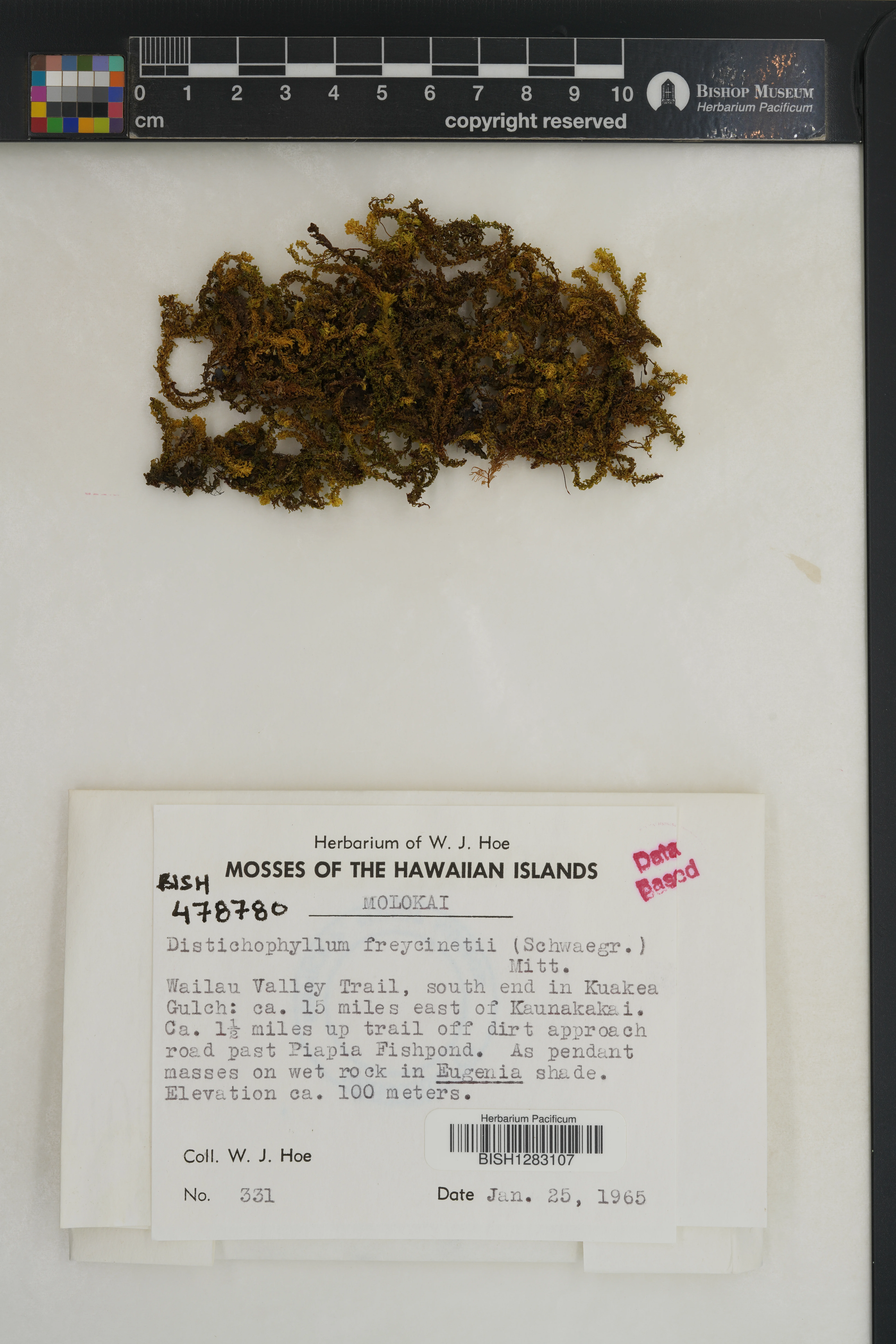 Kingdom: Viridiplantae Phylum: Bryophyta Class/Clade: Bryopsida Order: Hookeriales Family: Hookeriaceae Genus: Distichophyllum