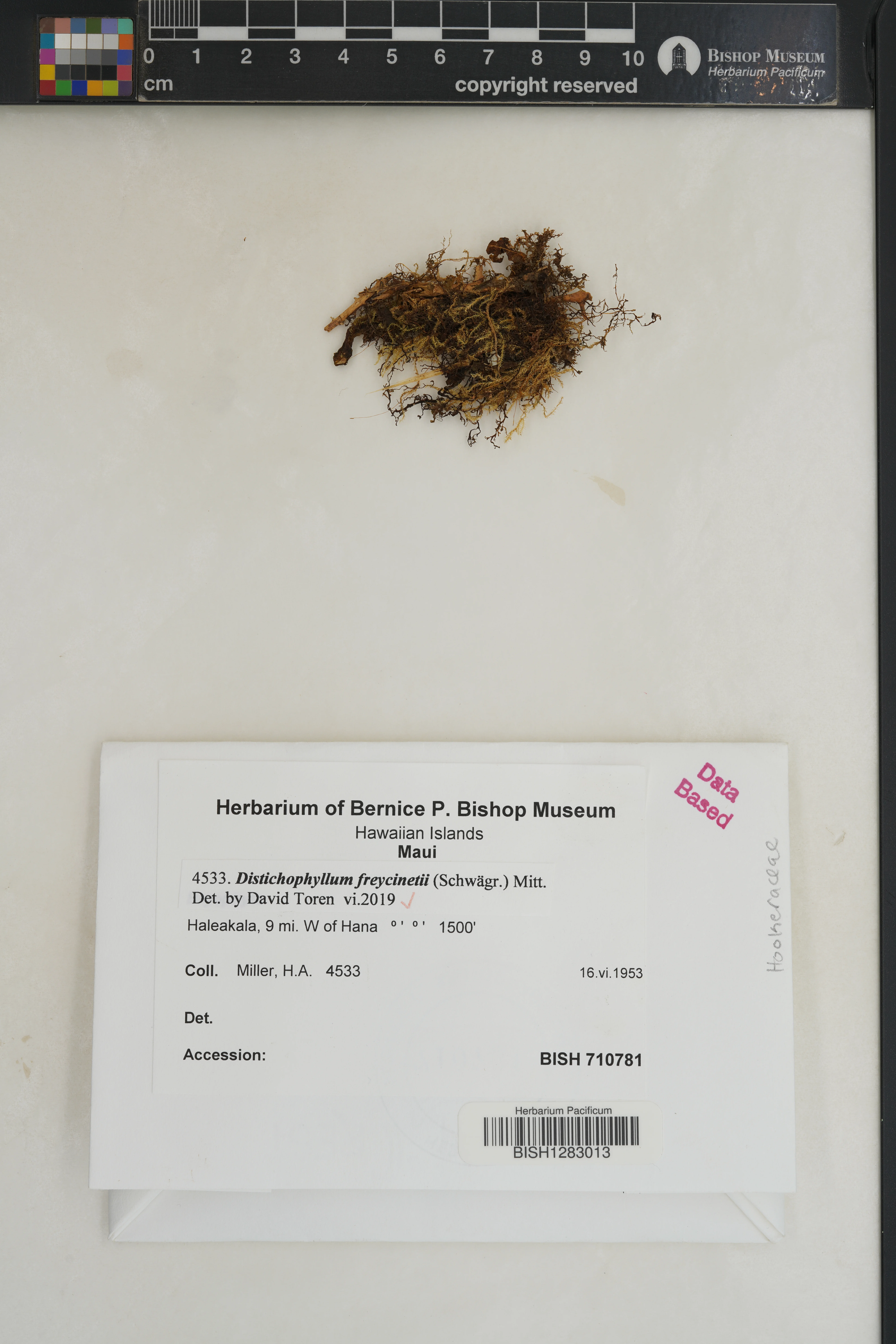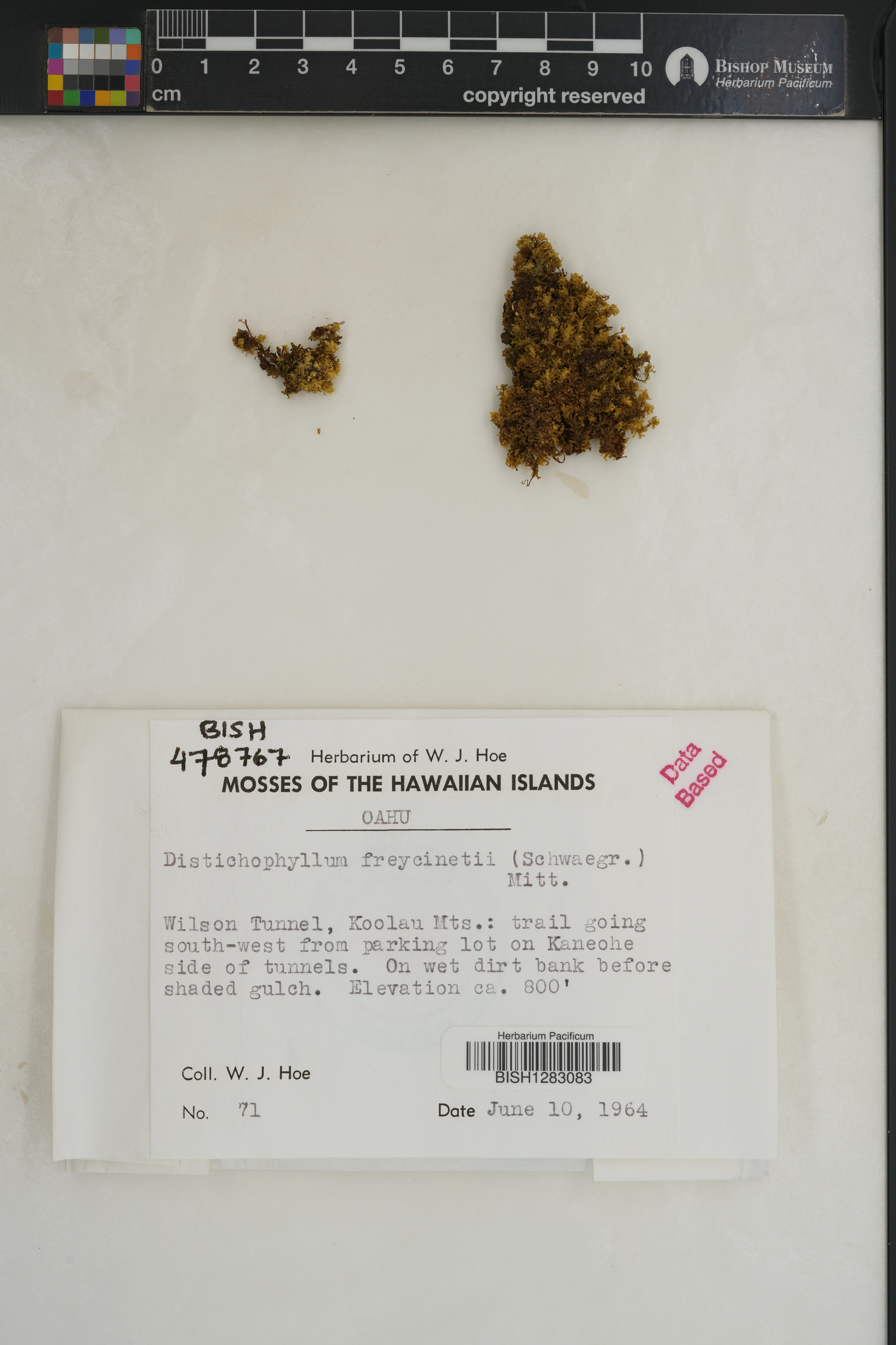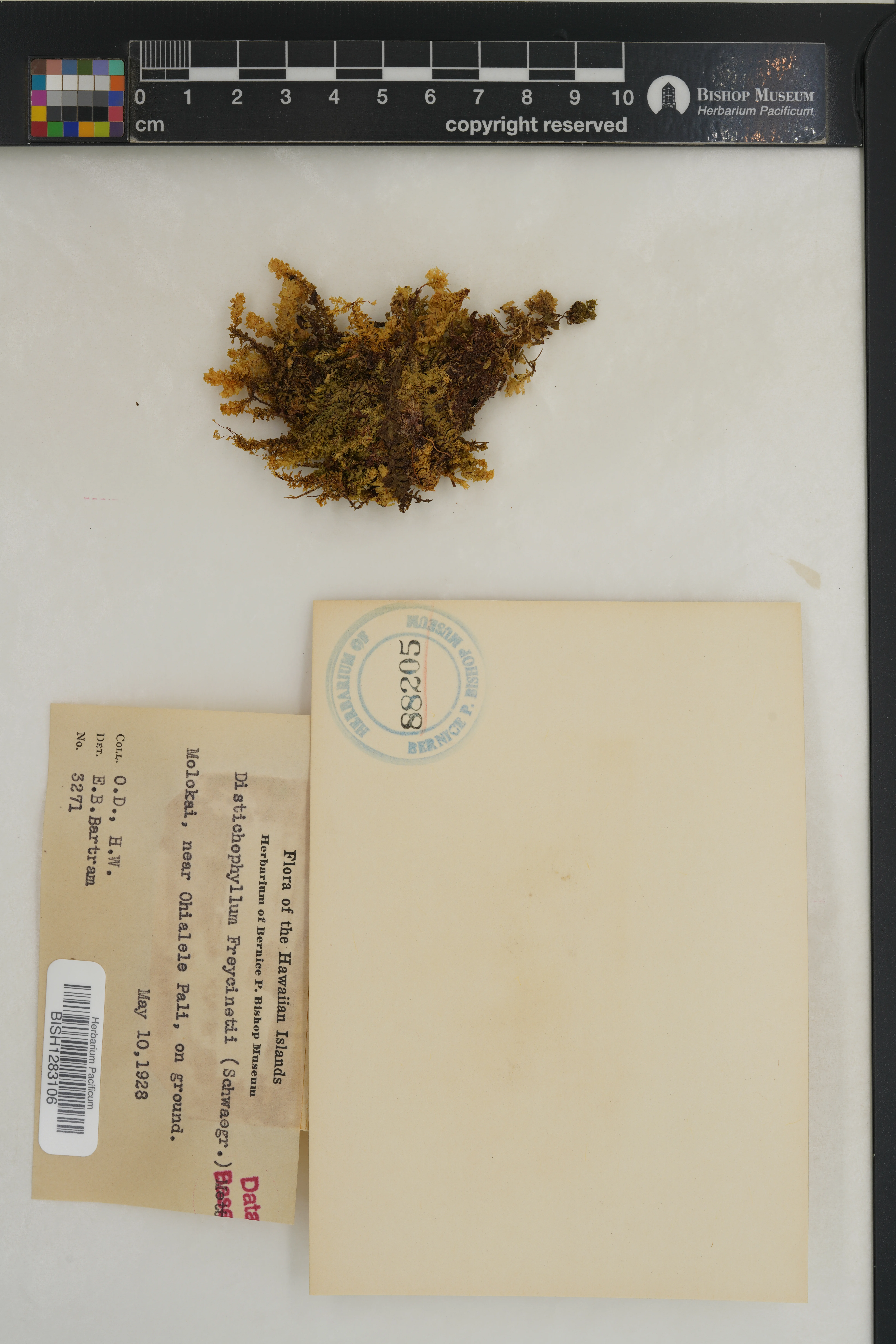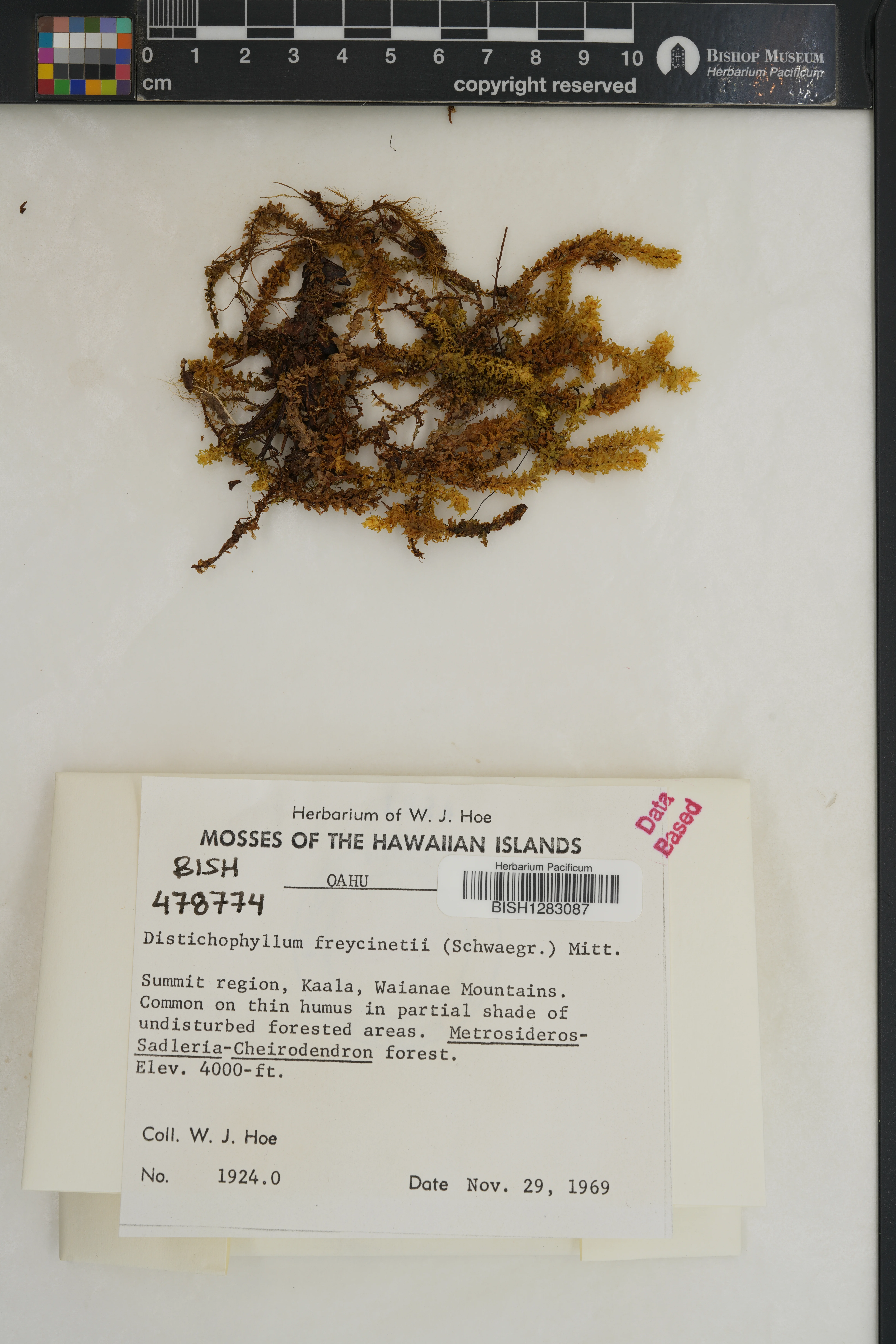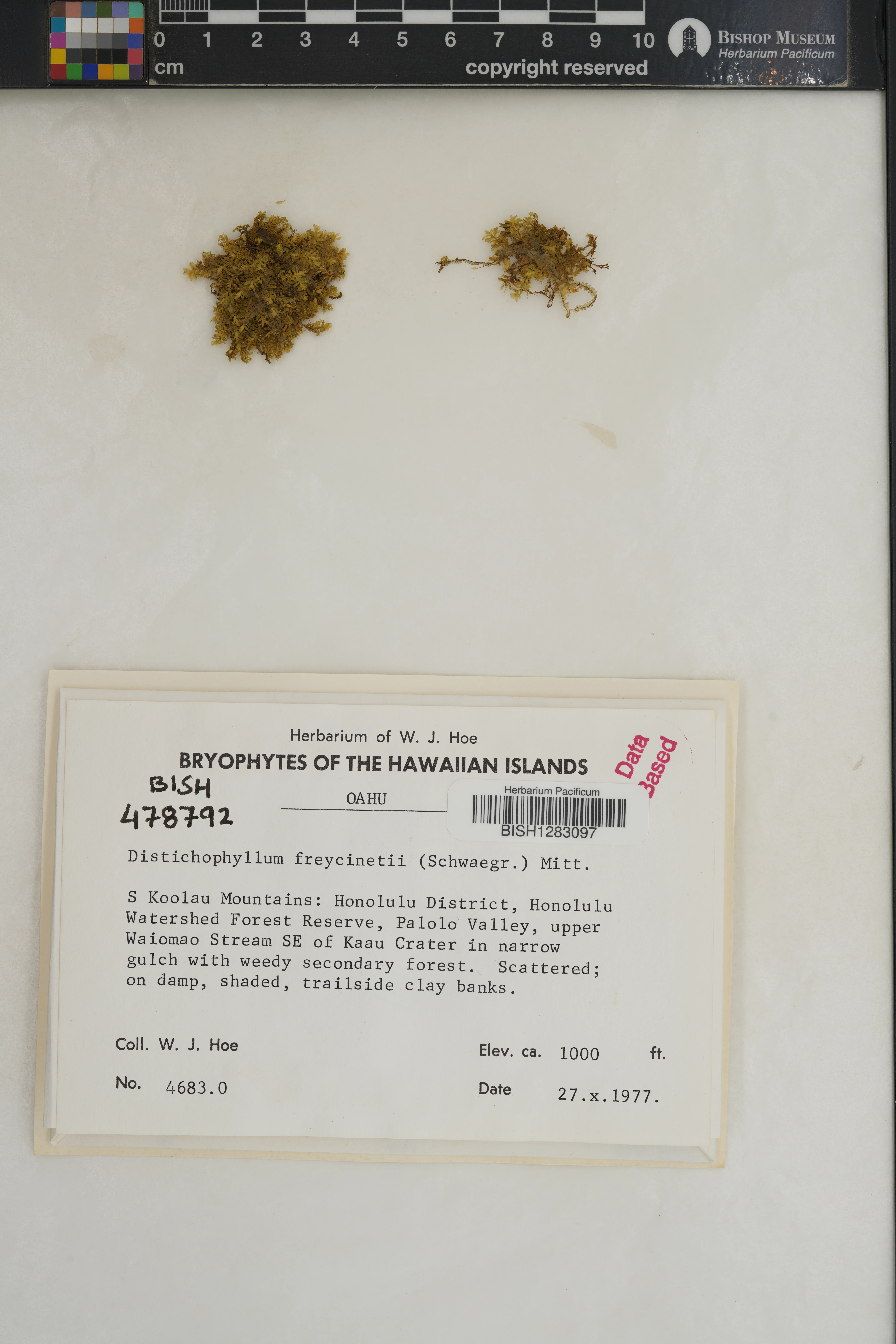 Kingdom: Viridiplantae Phylum: Bryophyta Class/Clade: Bryopsida Order: Hookeriales Family: Hookeriaceae Genus: Distichophyllum