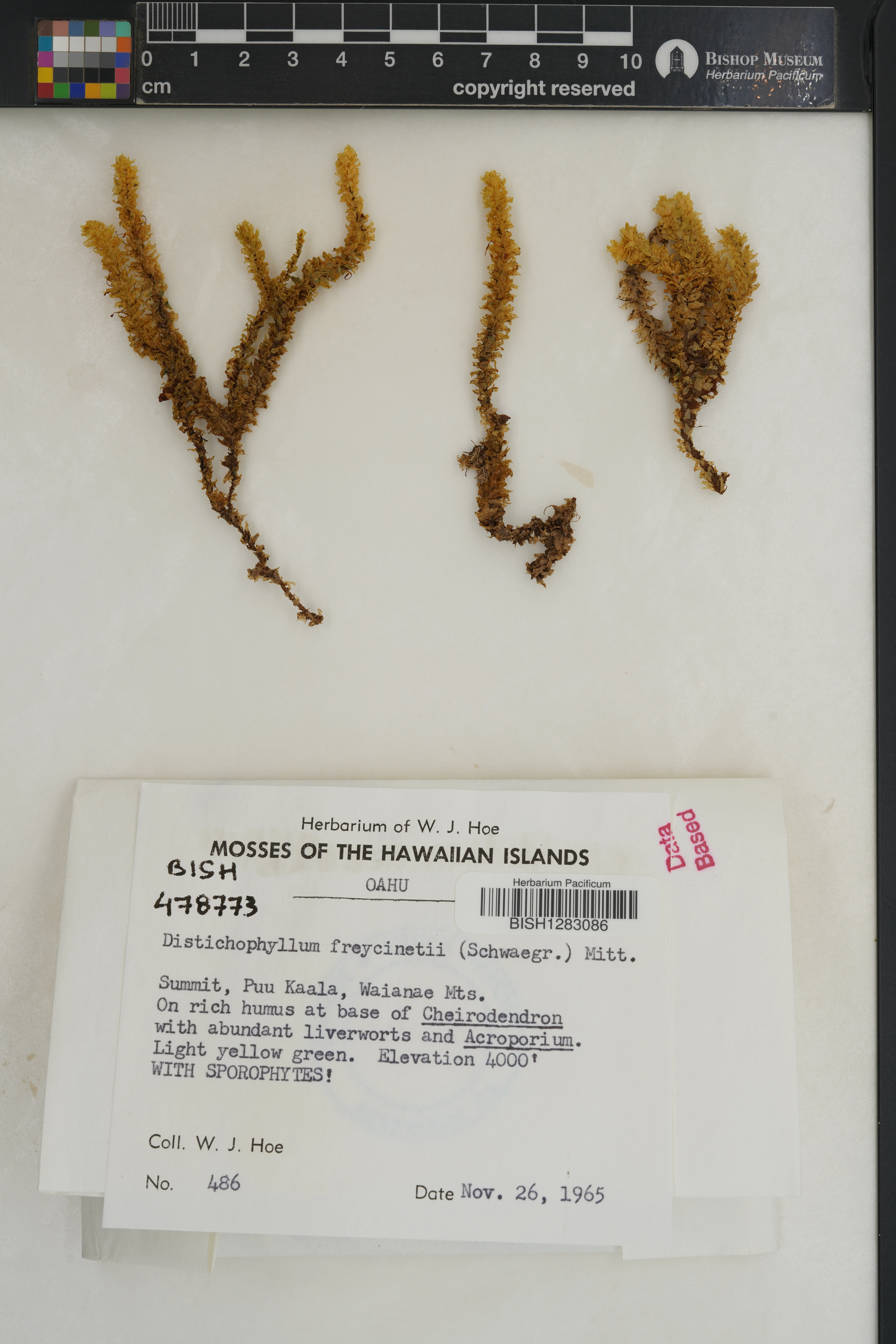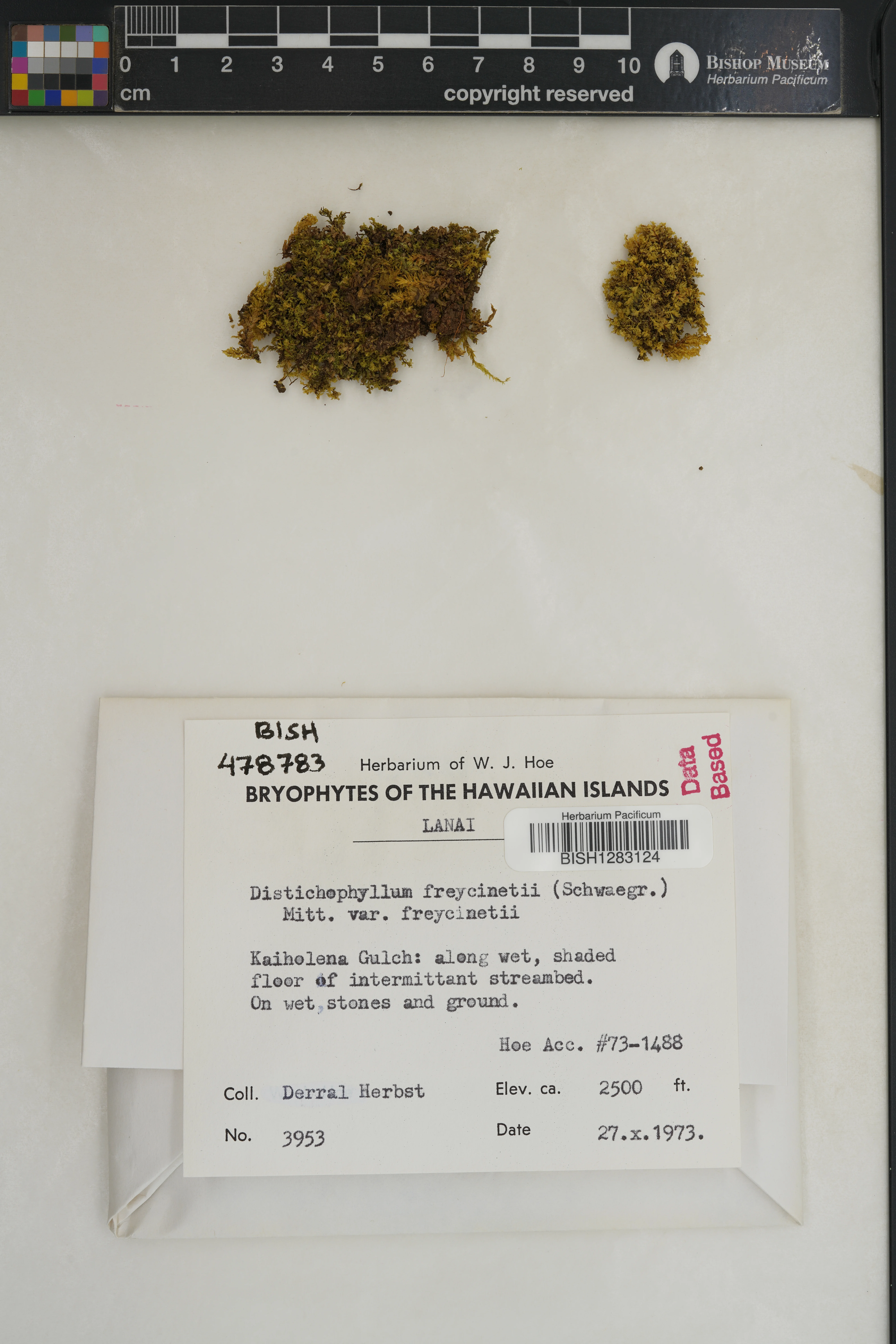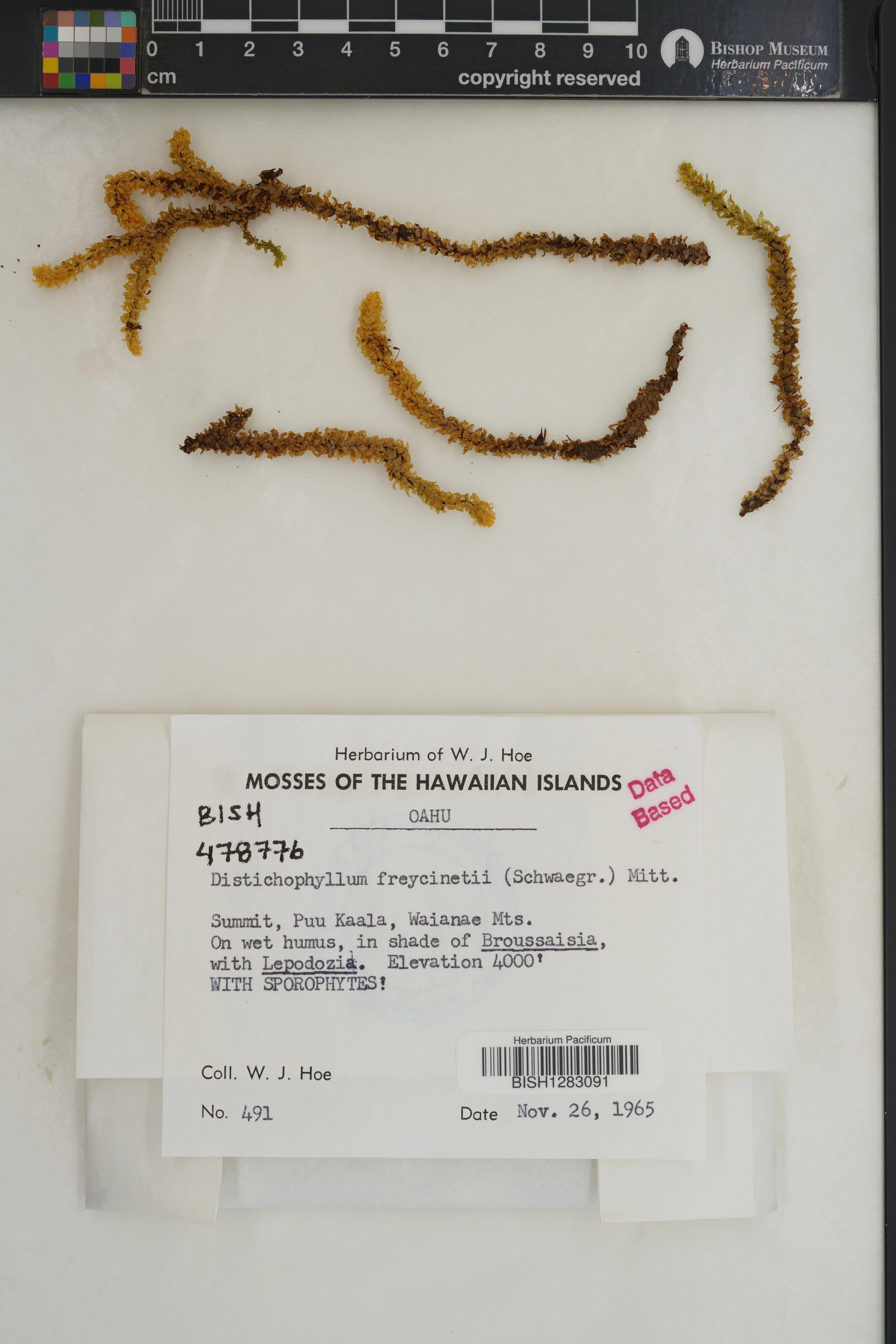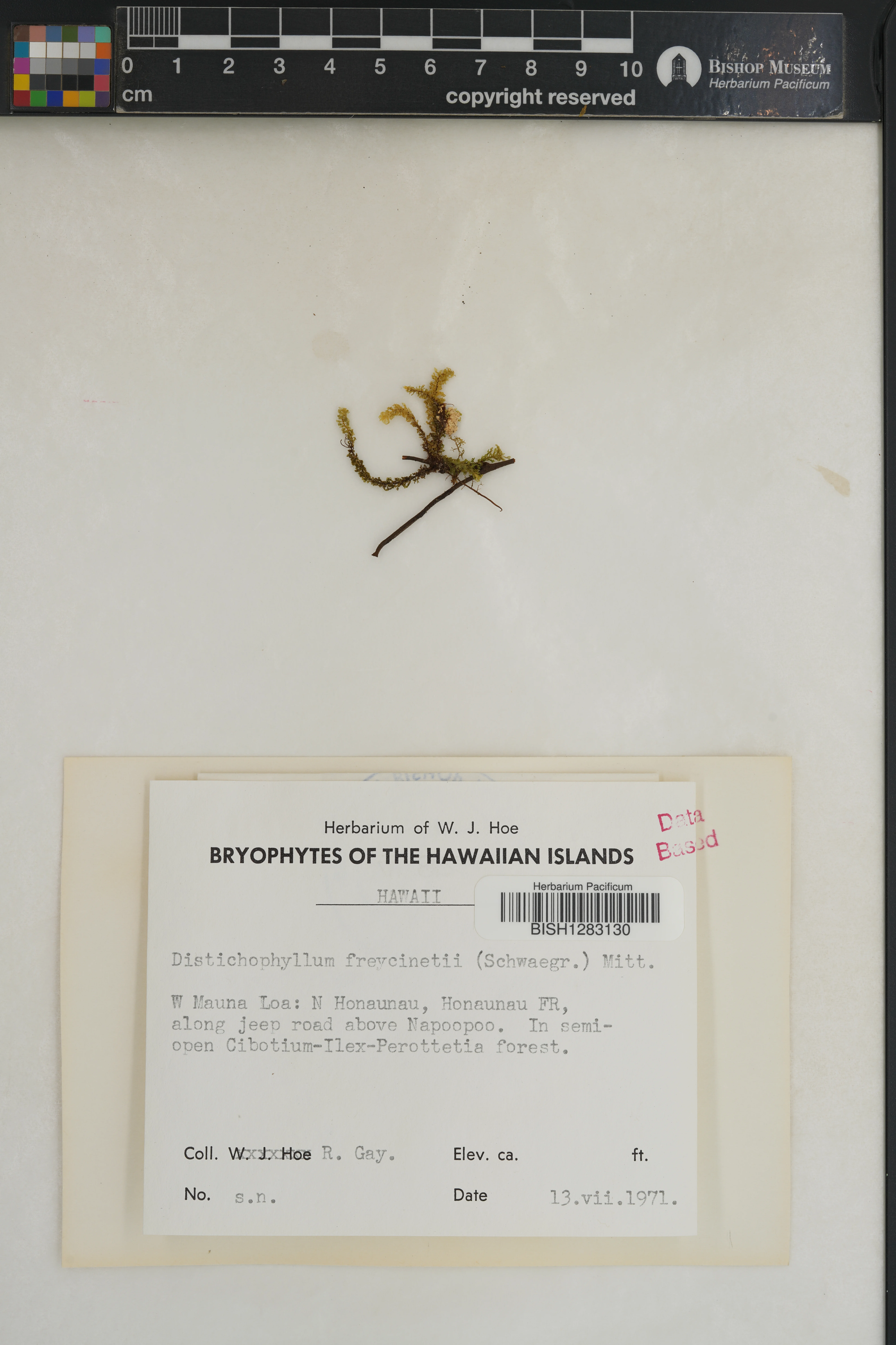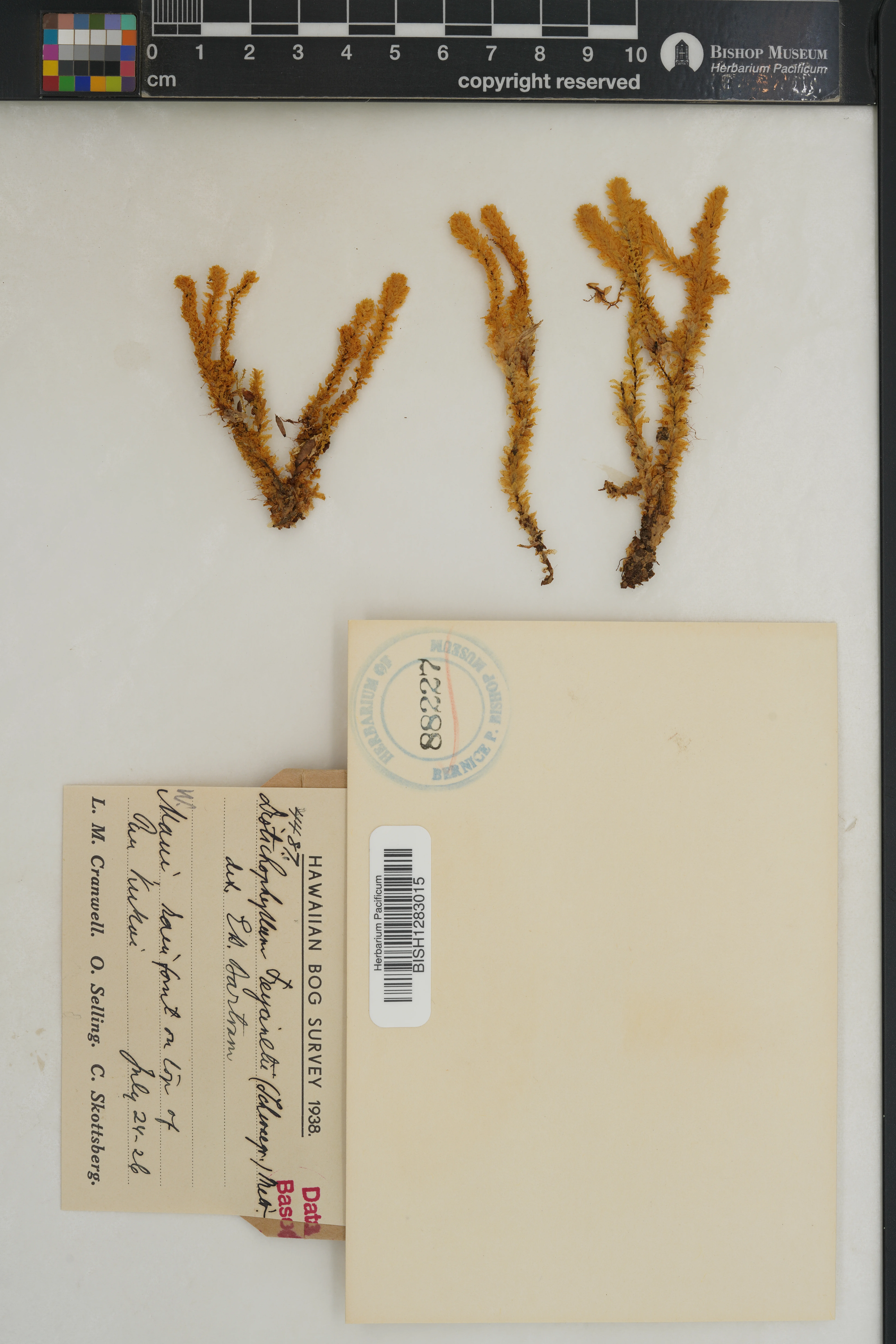 Kingdom: Viridiplantae Phylum: Bryophyta Class/Clade: Bryopsida Order: Hookeriales Family: Hookeriaceae Genus: Distichophyllum