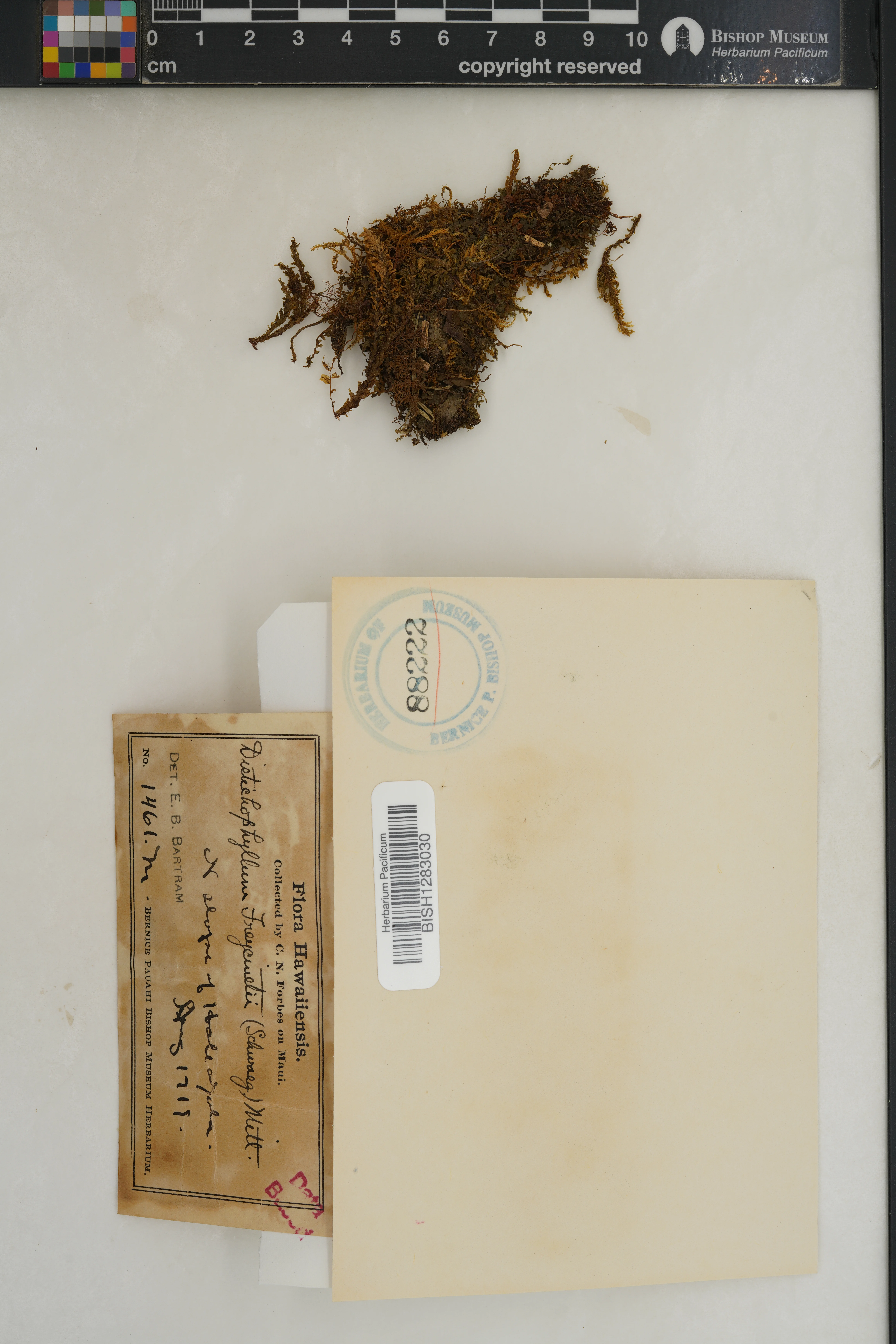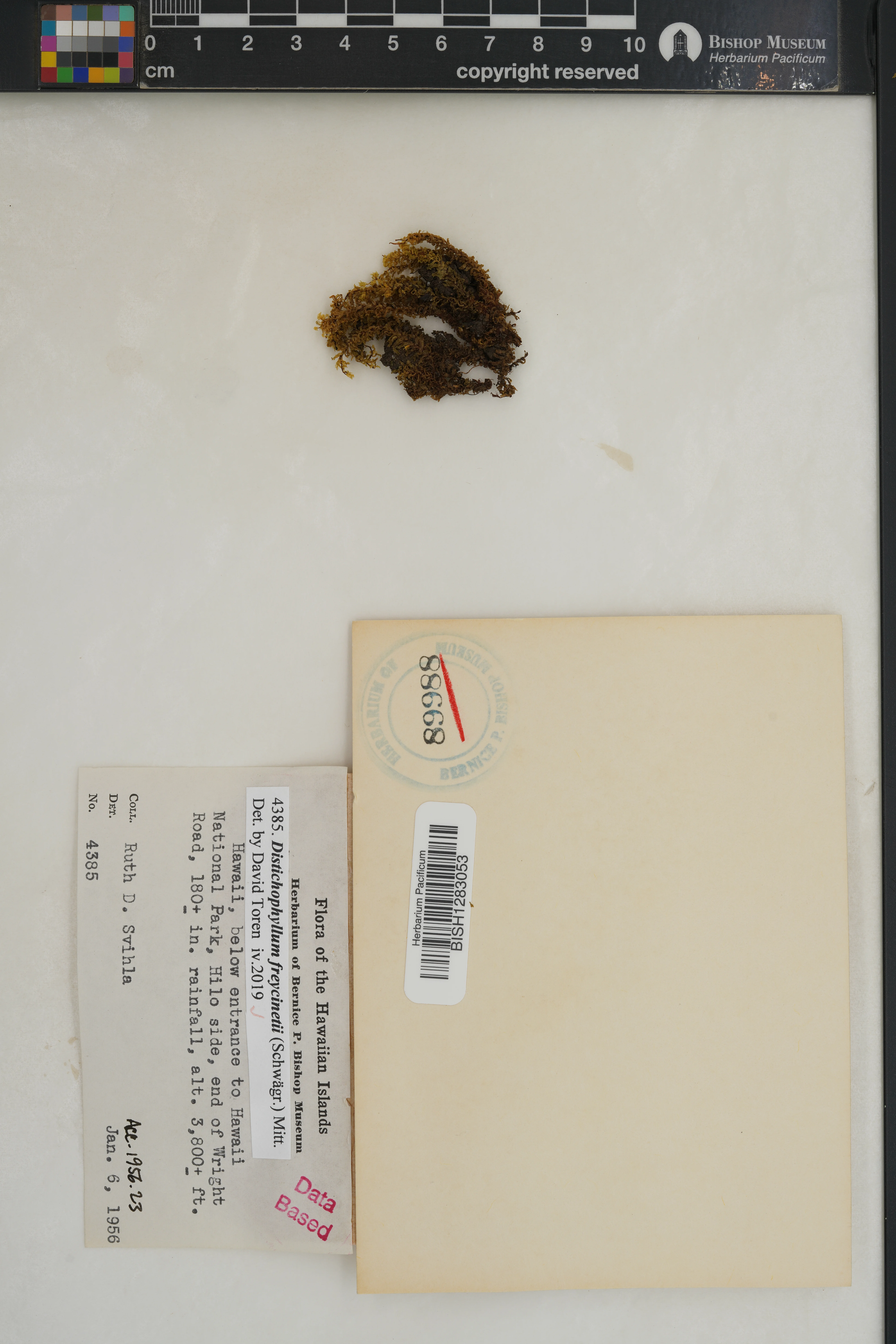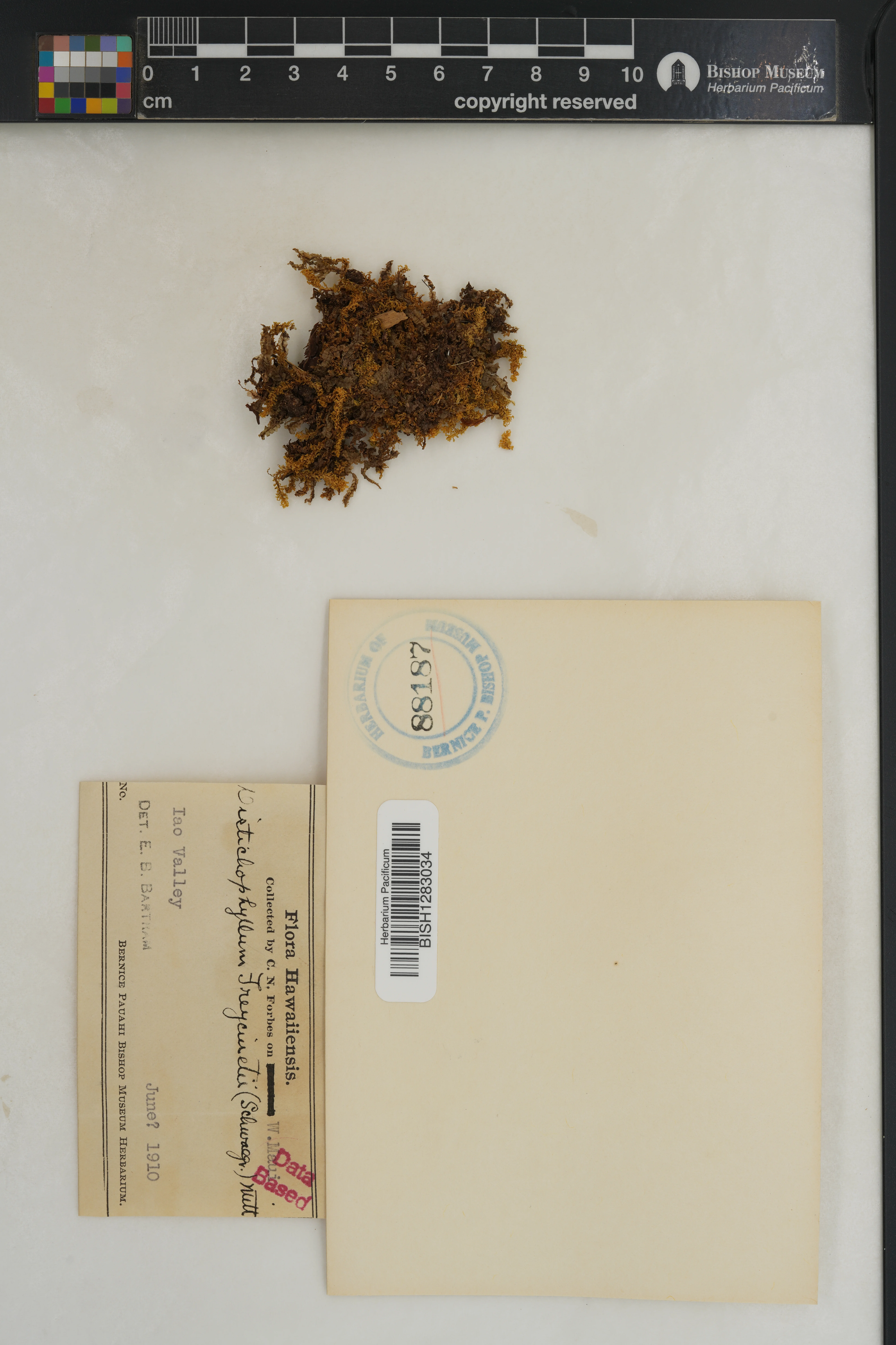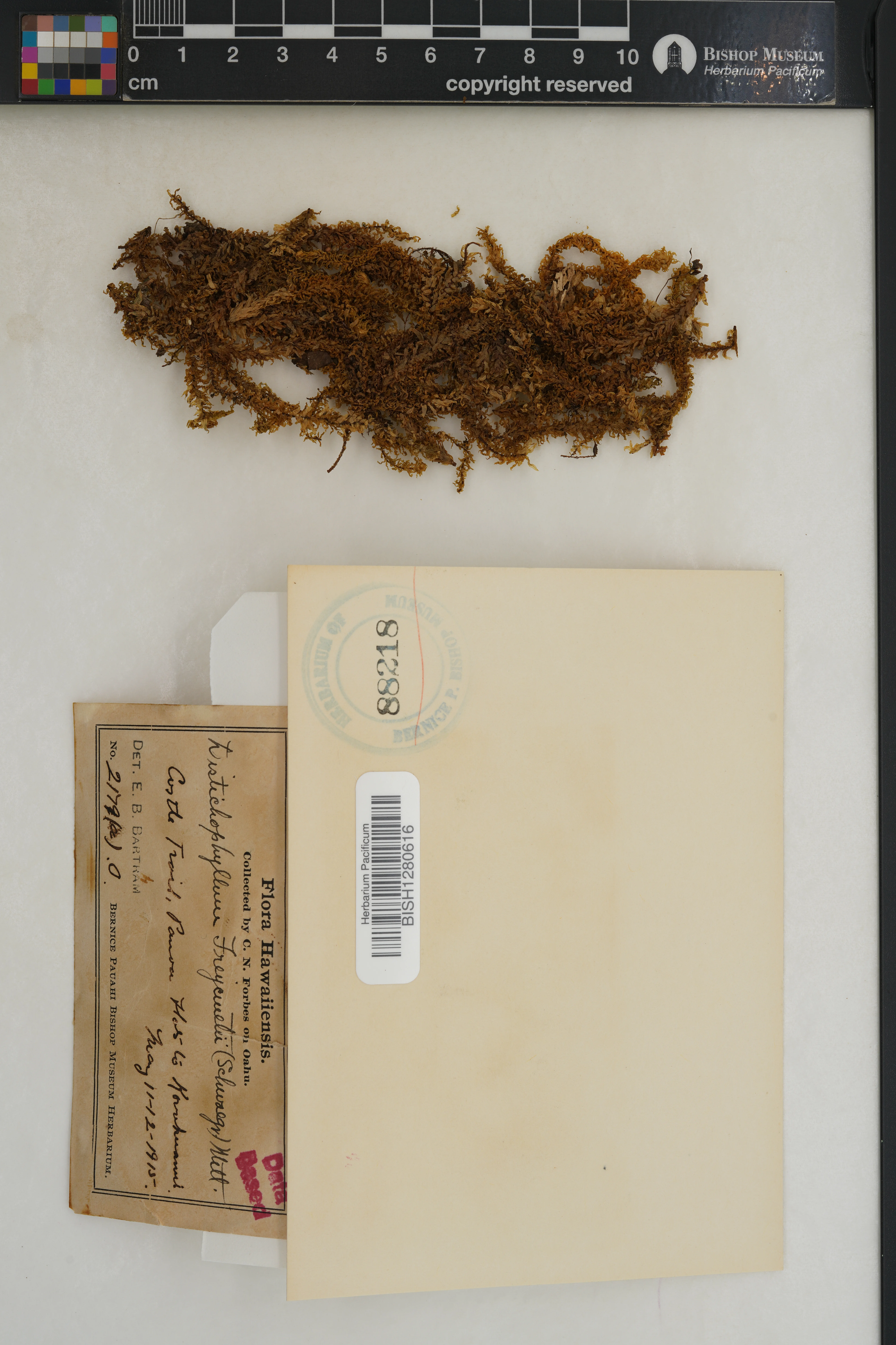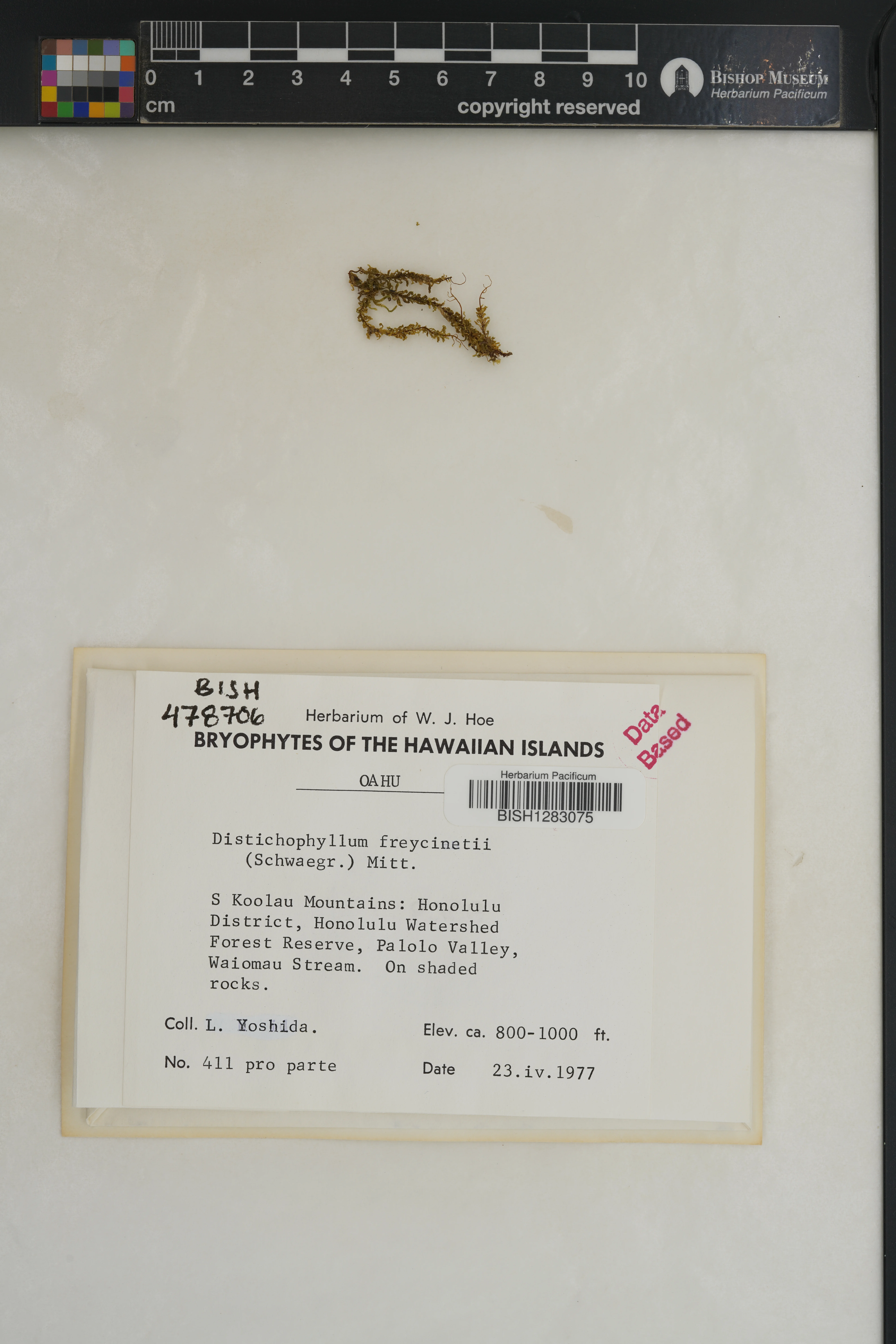Kingdom: Viridiplantae Phylum: Bryophyta Class/Clade: Bryopsida Order: Hookeriales Family: Hookeriaceae Genus: Distichophyllum