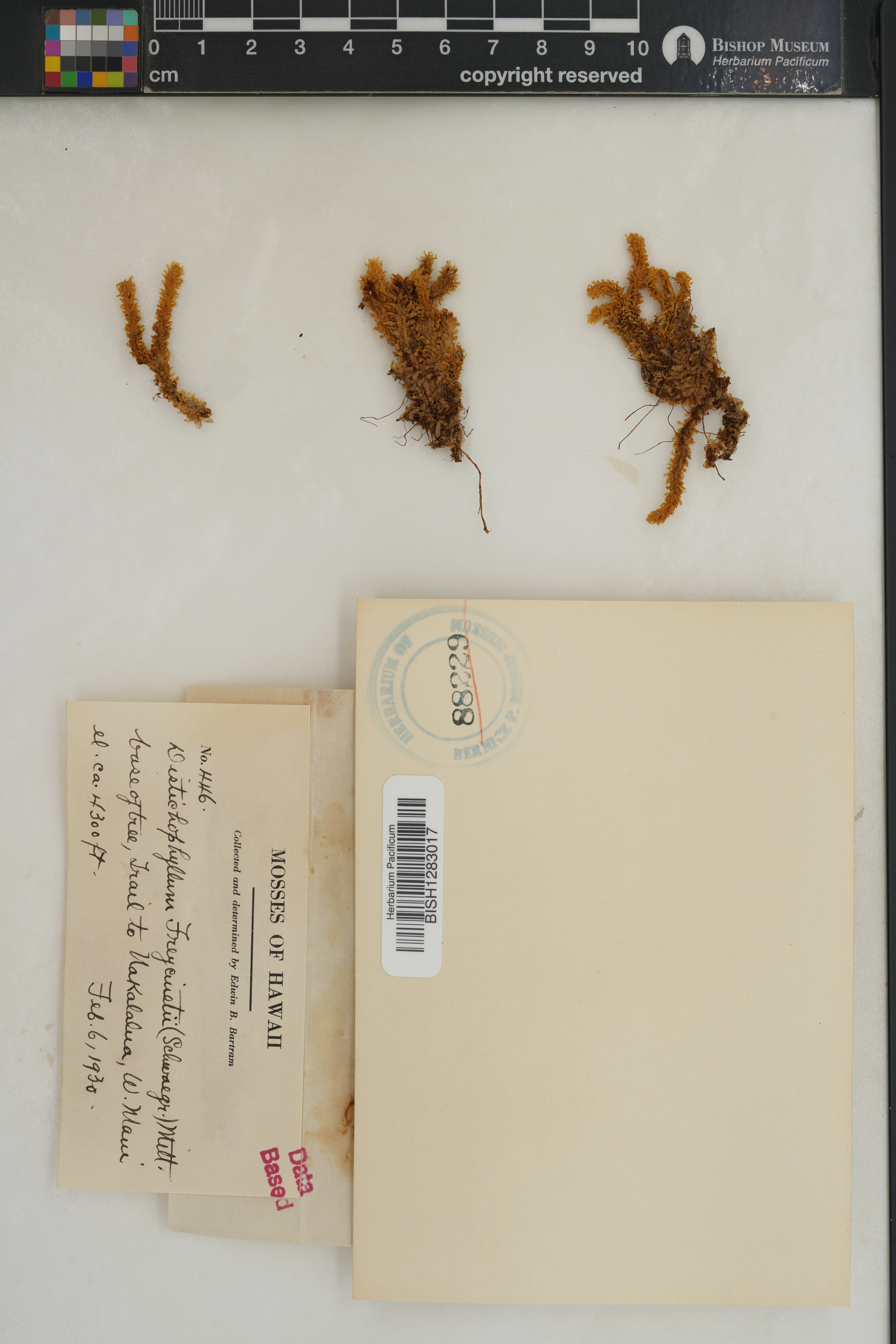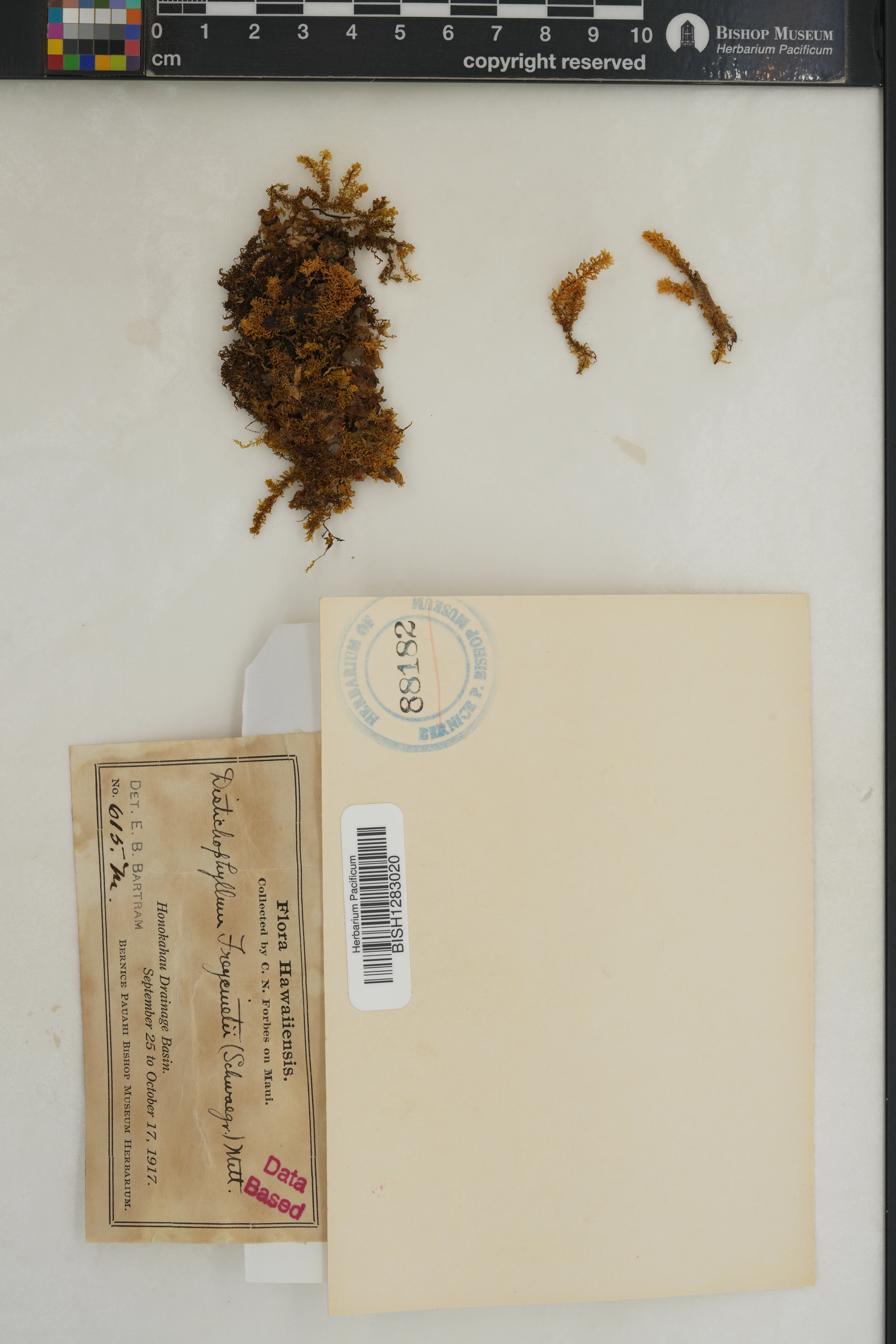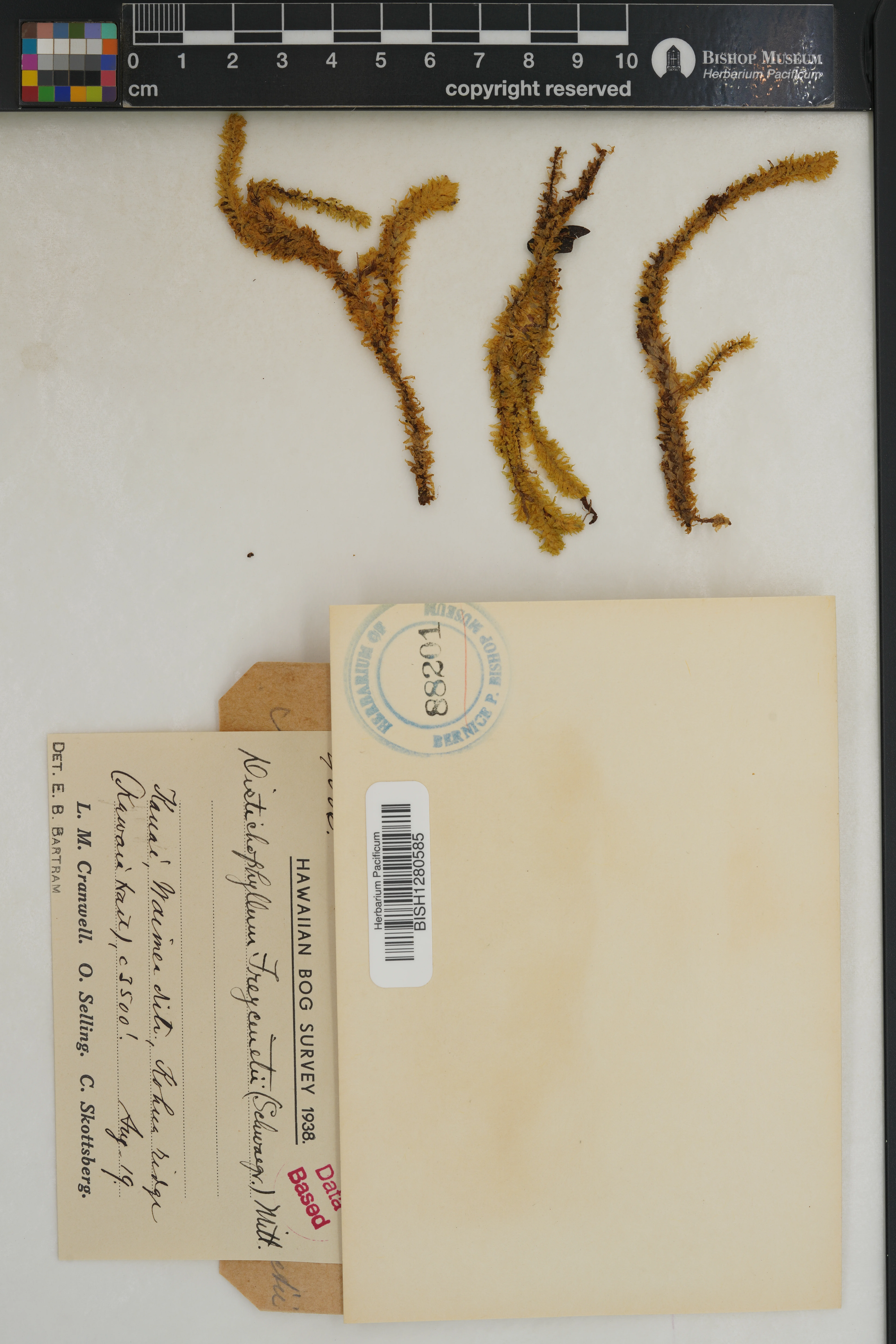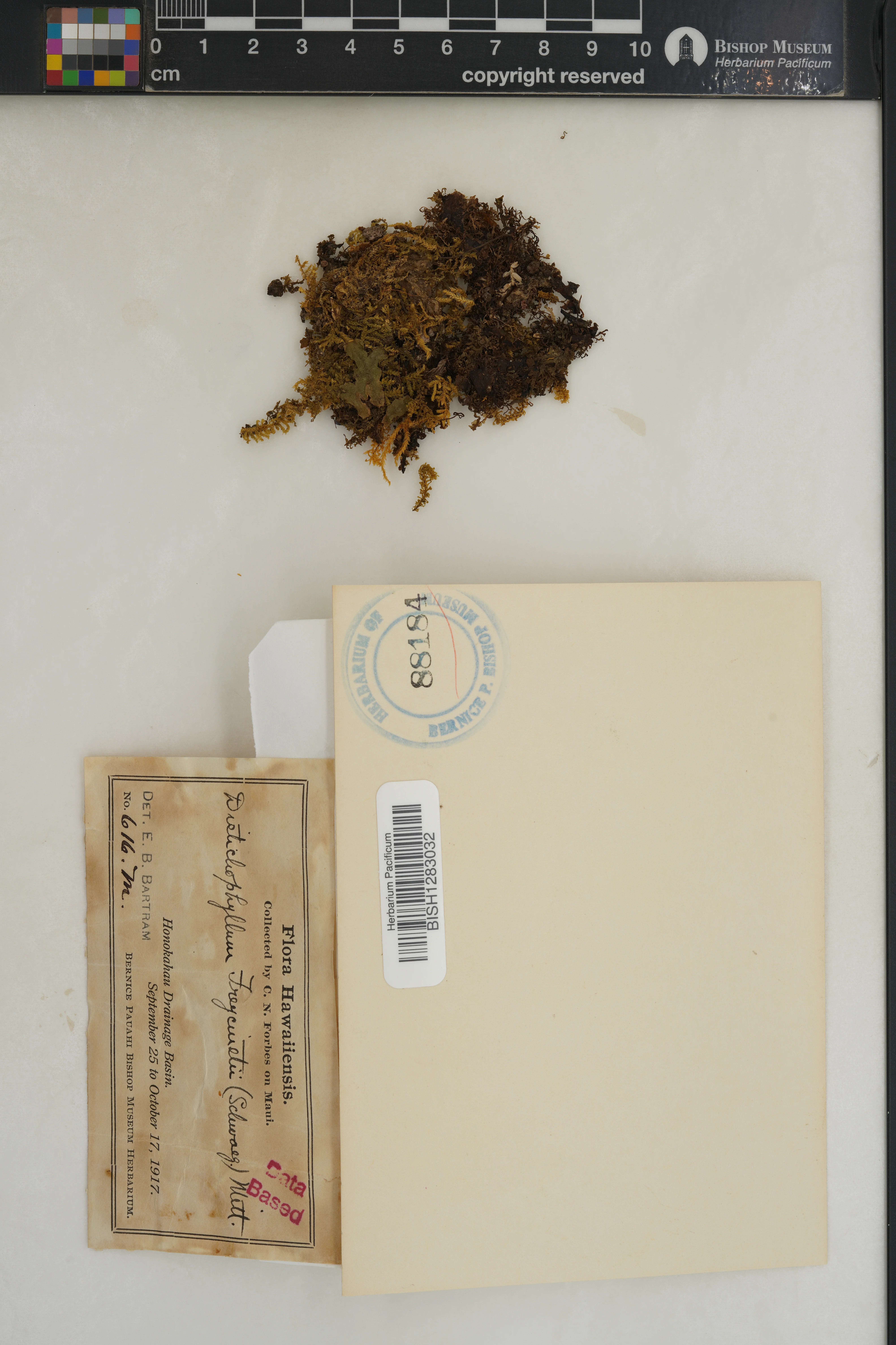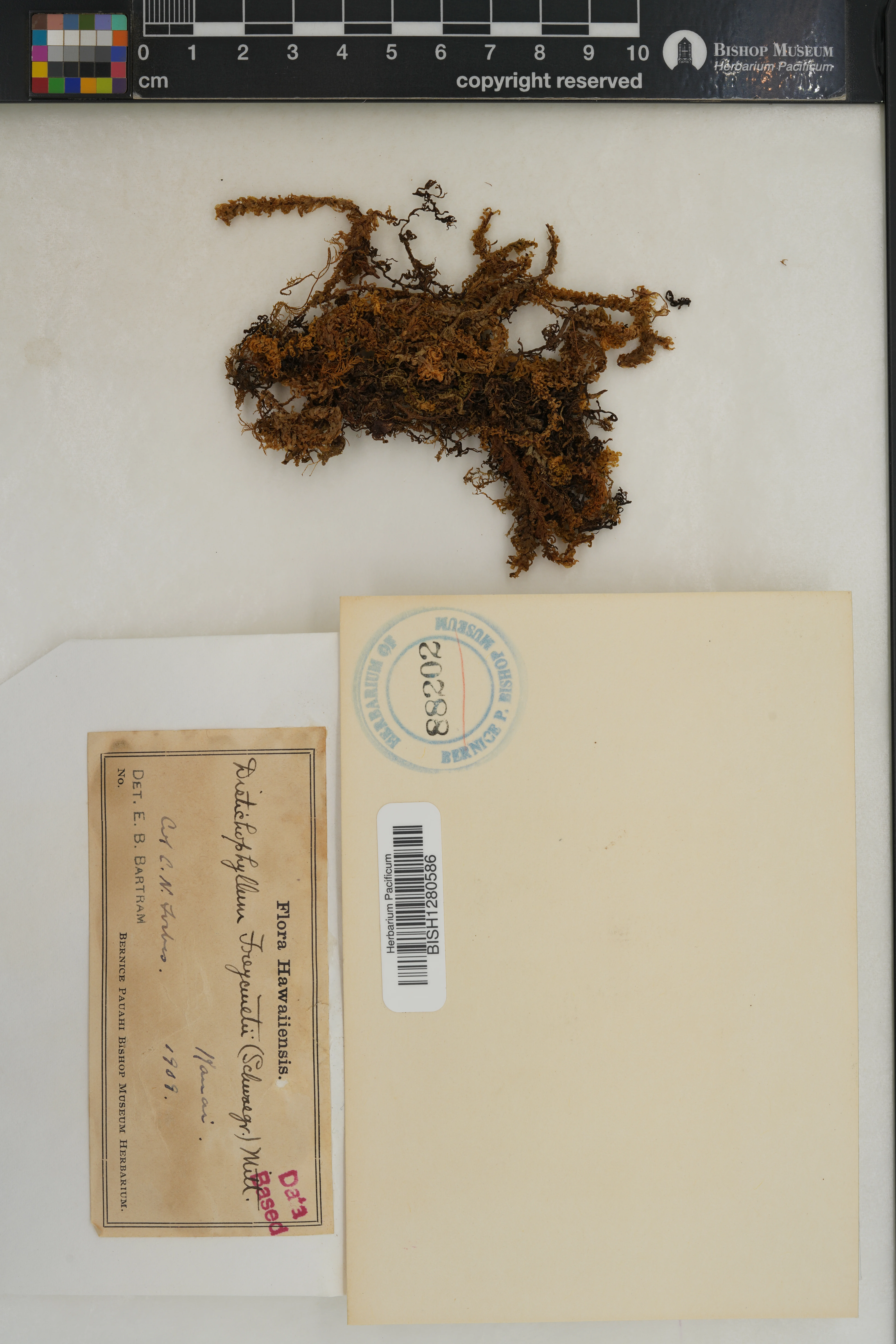 Kingdom: Viridiplantae Phylum: Bryophyta Class/Clade: Bryopsida Order: Hookeriales Family: Hookeriaceae Genus: Distichophyllum
