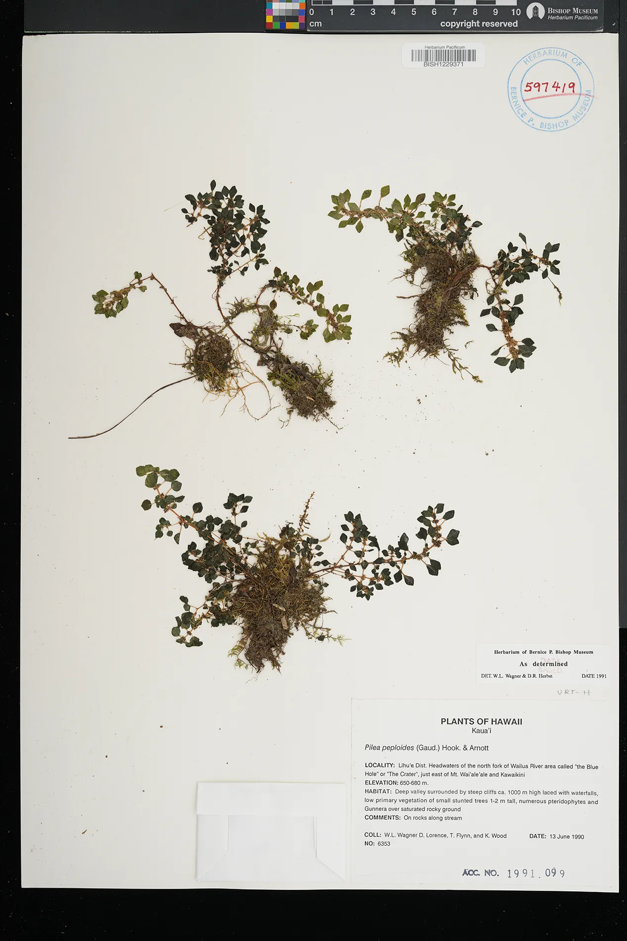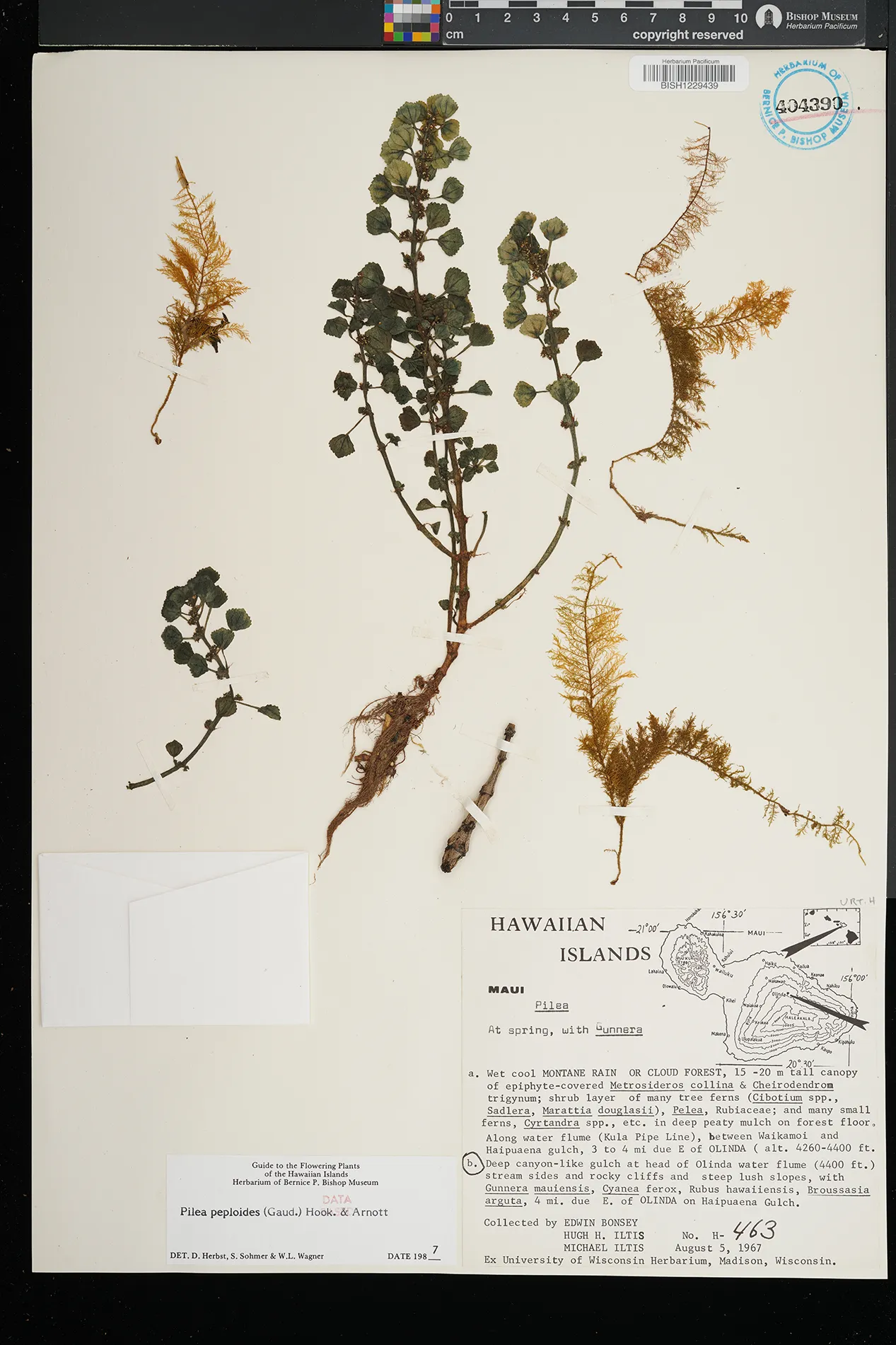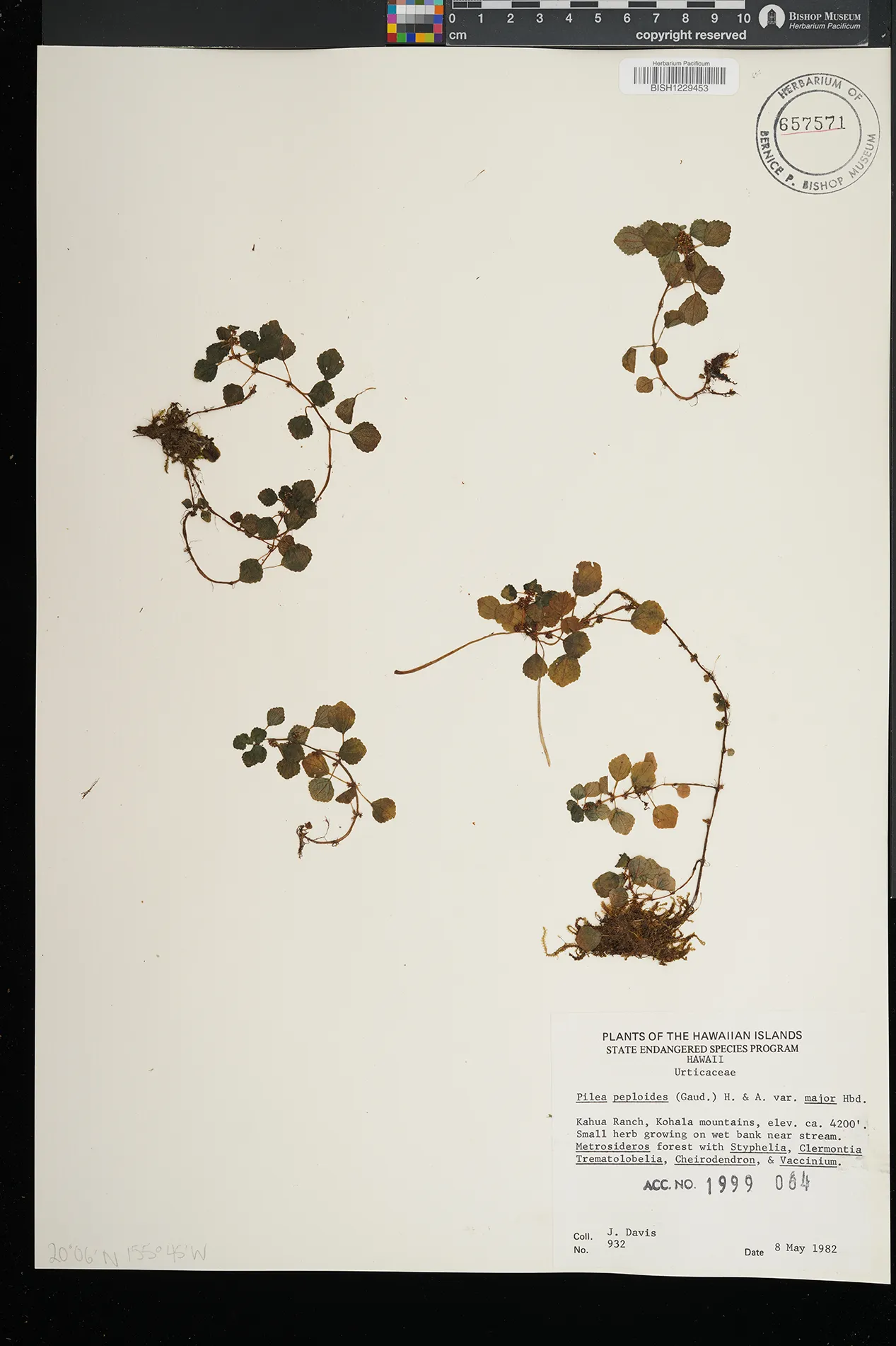 montane wet forest; Metrosideros, Cheirodendron, Perrottetia sandwicensis, Broussaisia arguta, Coprosma ochracea, Cibotium glaucum, Sadleria pallida, Freycinetia arborea, Astelia menziesiana, Hedyotis terminalis, Nertera granadensis, ferns, bryophytes |