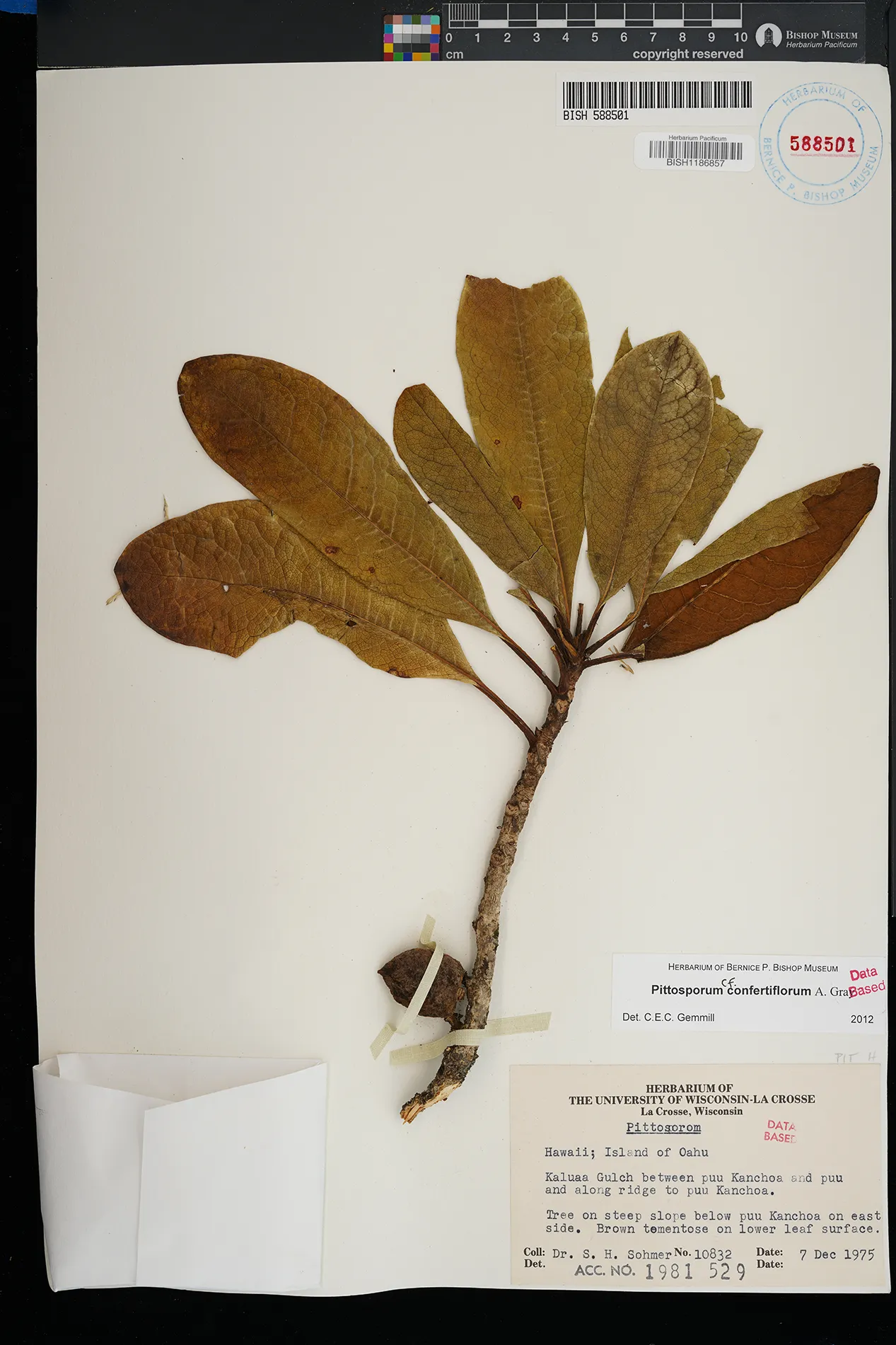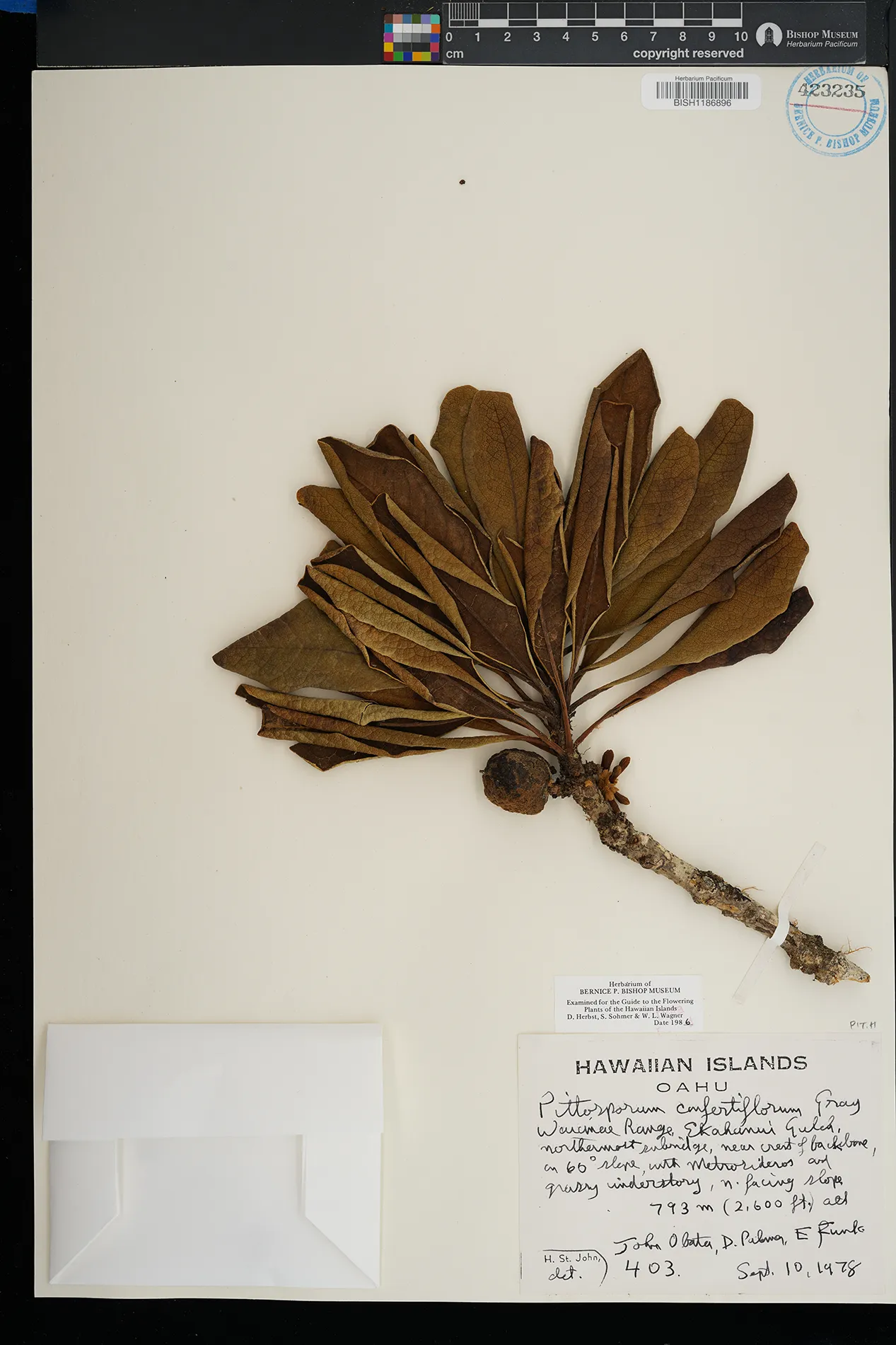 Growing on a steep rocky slope along a dry, intermittent stream bed. Associated Vegetation: Dodonaea viscosa, Achyranthes splendens var. splendens, Lipochaeta lavarum, Bidens menziesii ssp. menziesii, Leucaena leucocephala, Sida fallax, Plectranthus parviflorus, Doryopteris decipiens, Heteropogon contortus. |