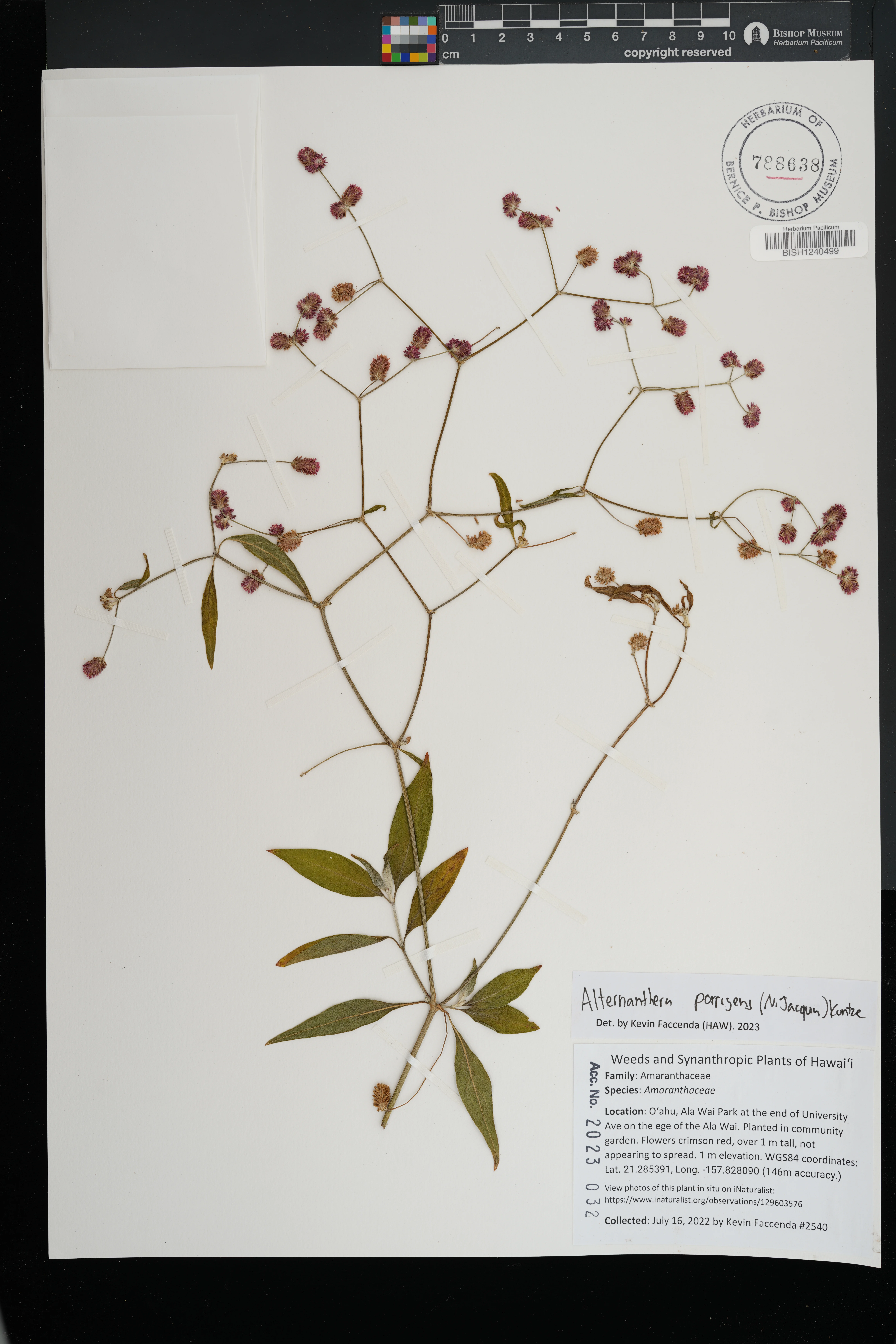 Kingdom: Viridiplantae Phylum: Magnoliophyta Class/Clade: Eudicot-CoreEudicot Order: Caryophyllales Family: Amaranthaceae Genus: Alternanthera
