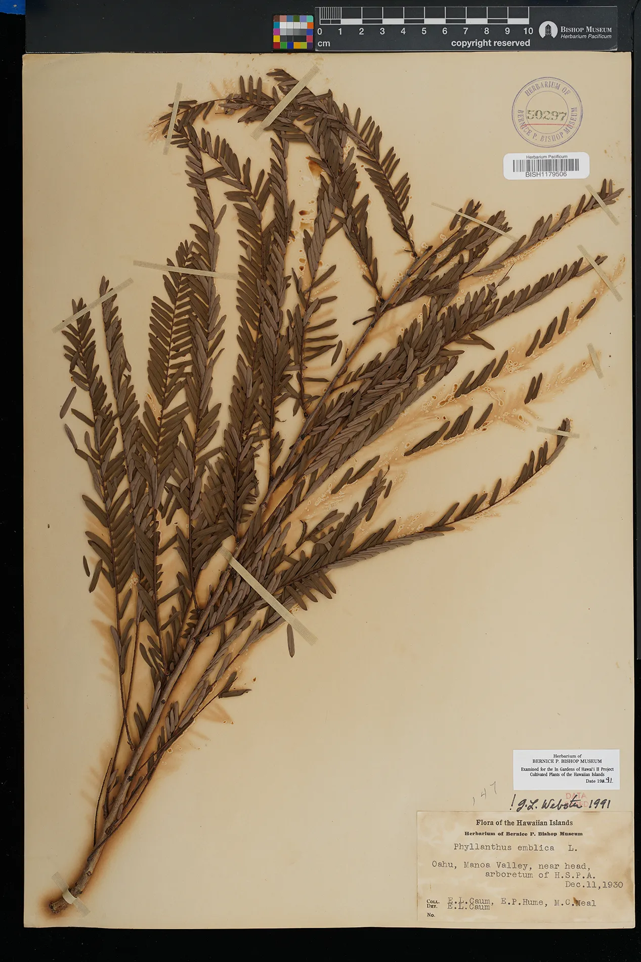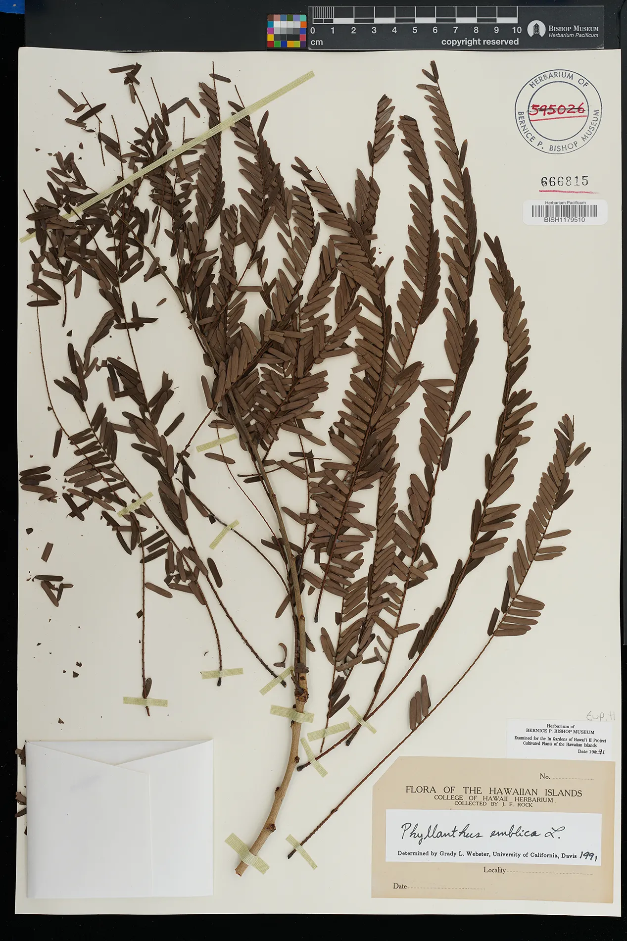 | 6 | Phyllanthus emblica | L. | Kauai | PRESERVED_SPECIMEN | Clay, H.F. | s.n. | Kauai | BISH | 7/16/1955 | |