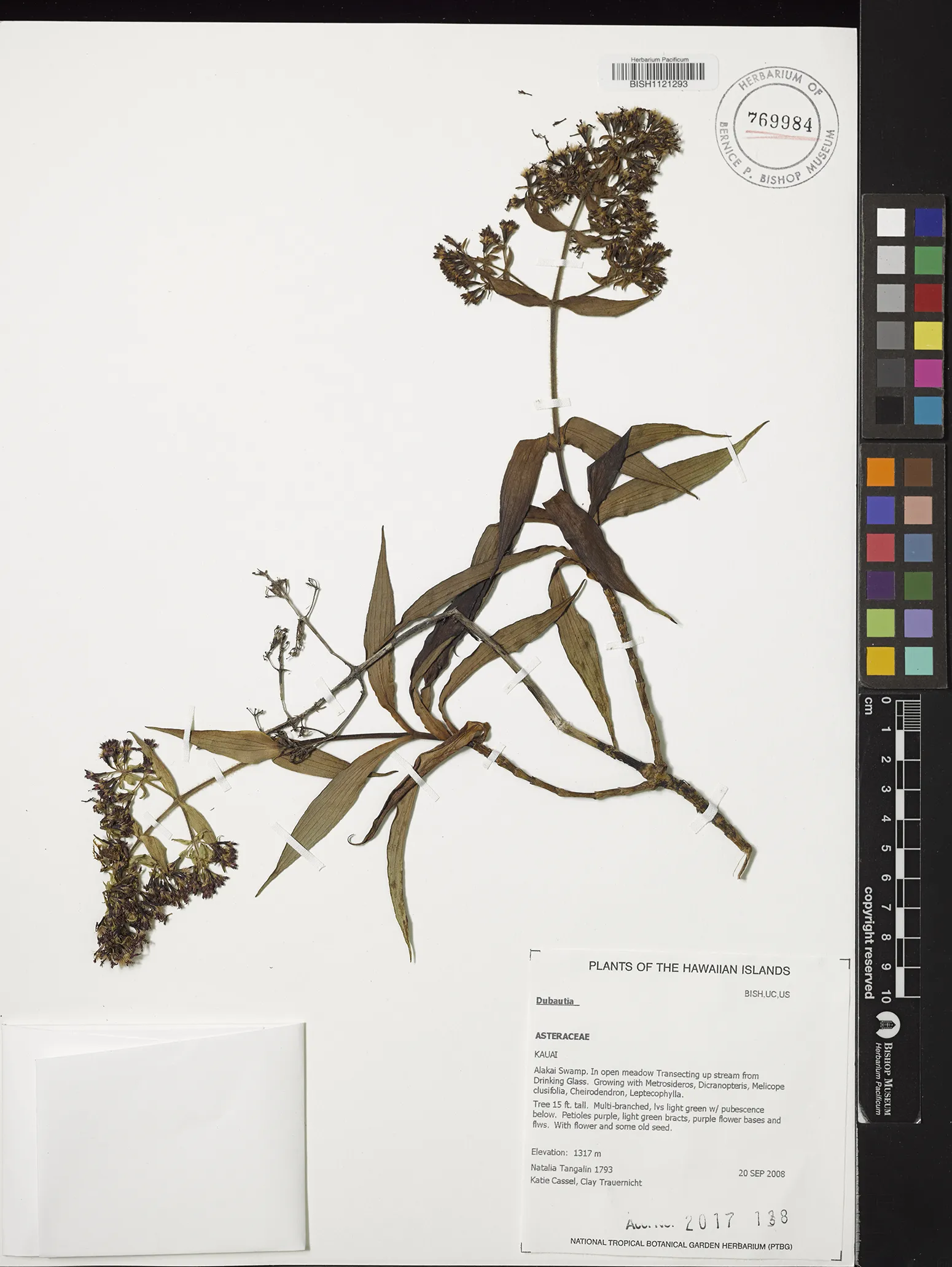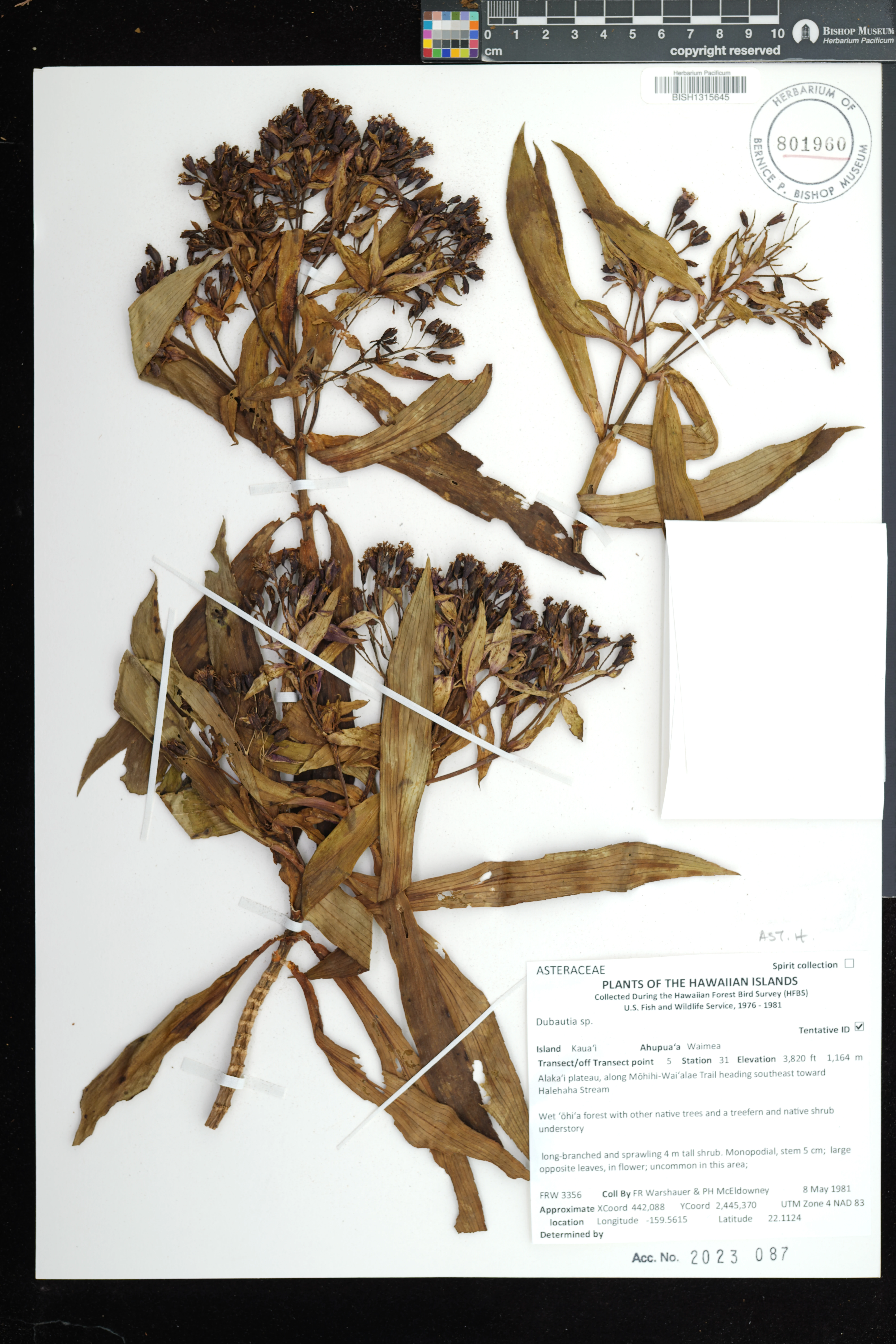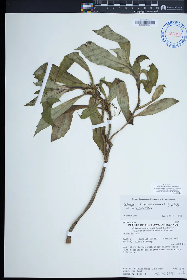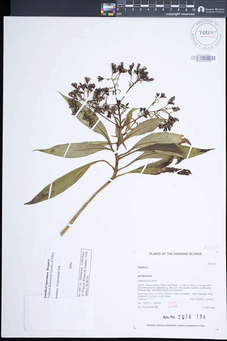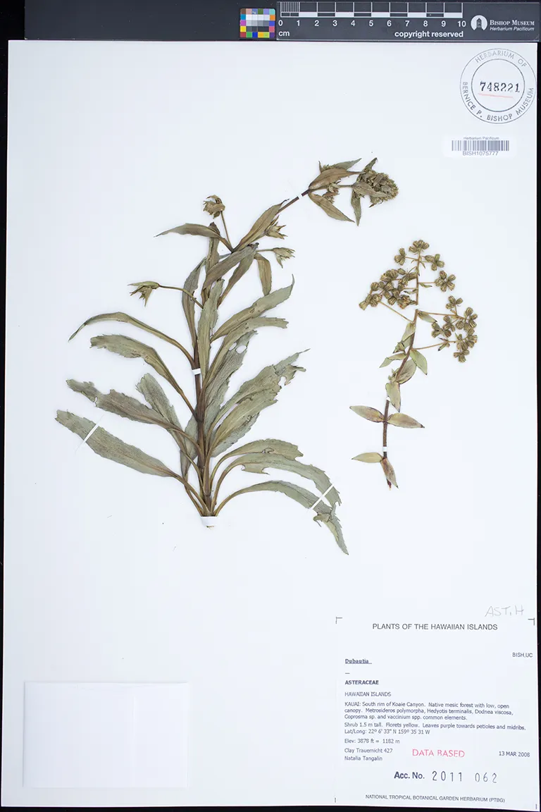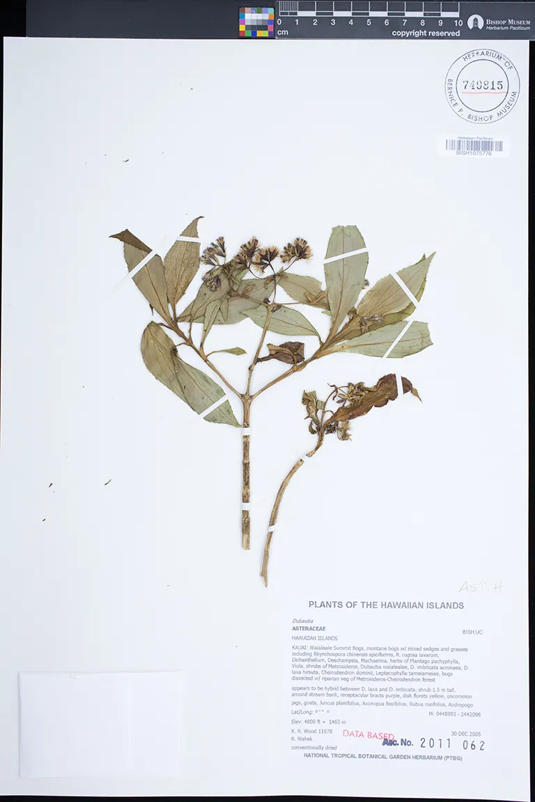 Kingdom: Viridiplantae Phylum: Magnoliophyta Class/Clade: Eudicot-Asterids Order: Asterales Family: Asteraceae Genus: Dubautia