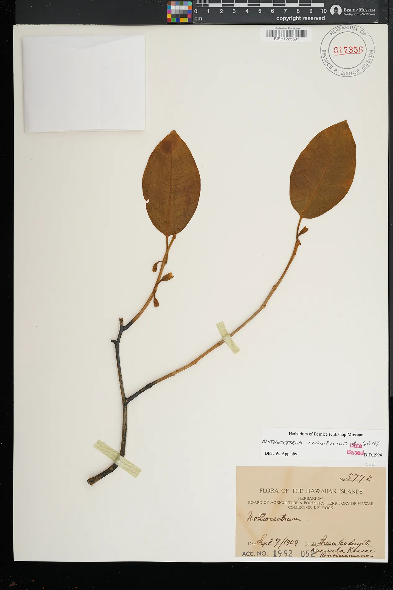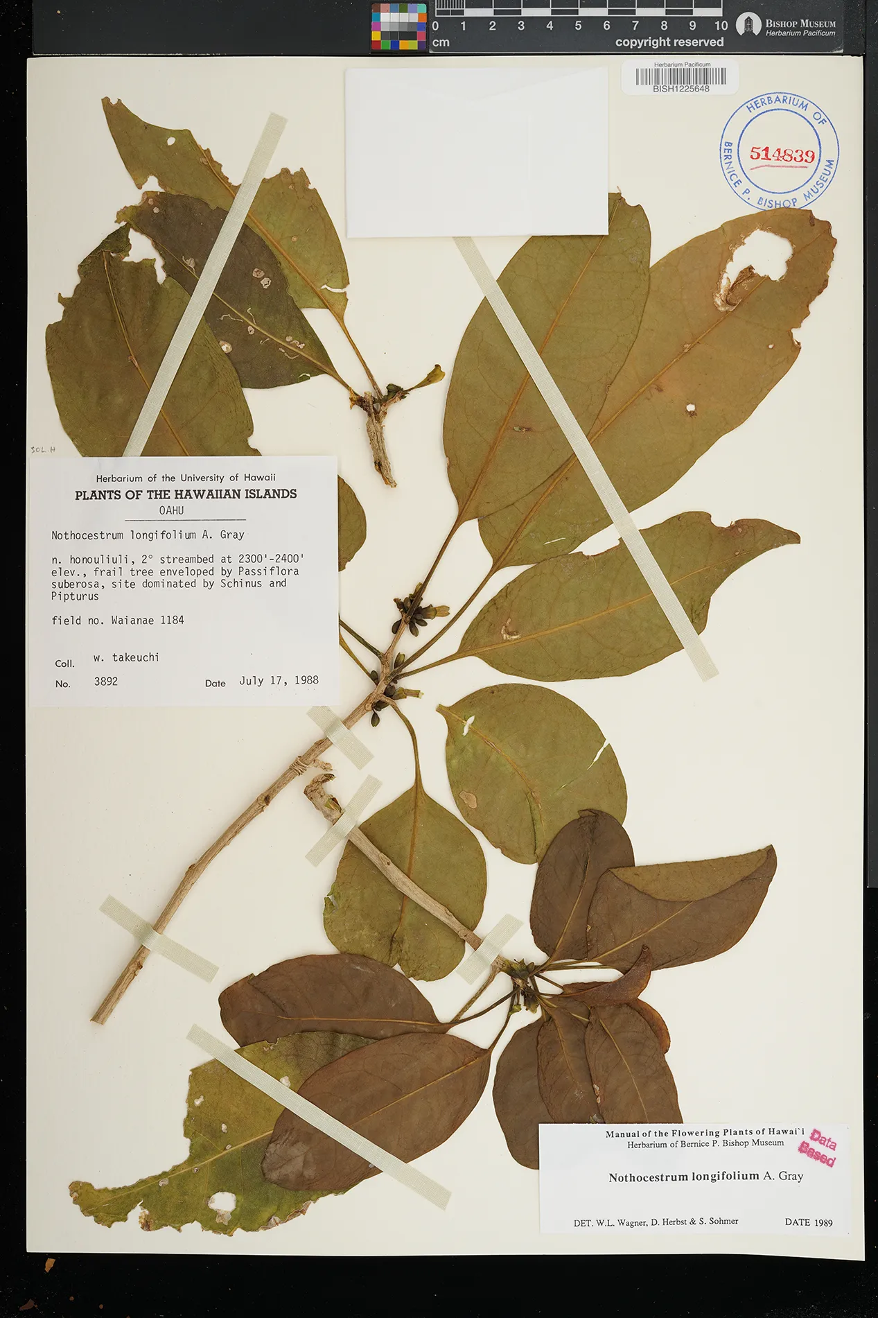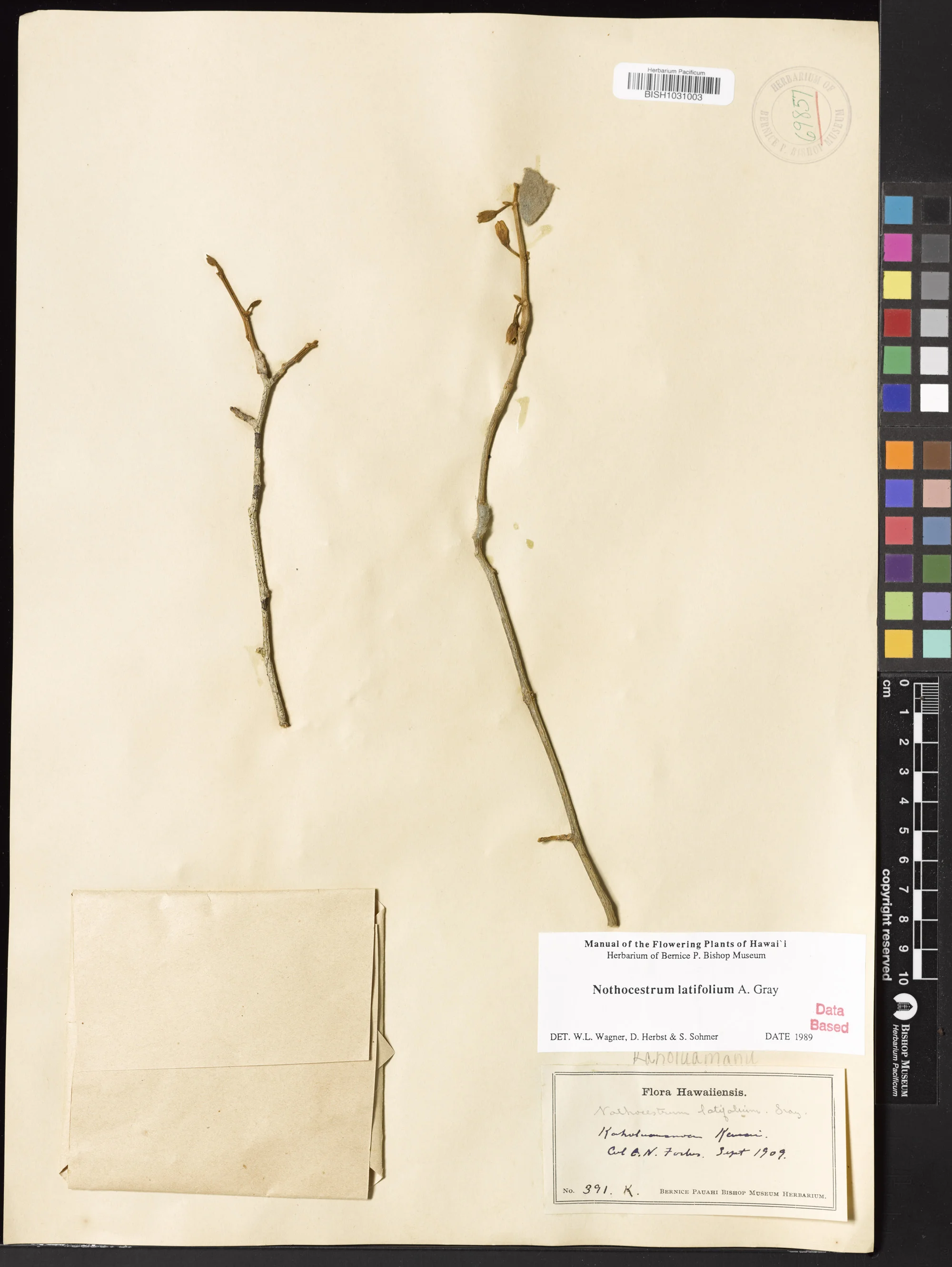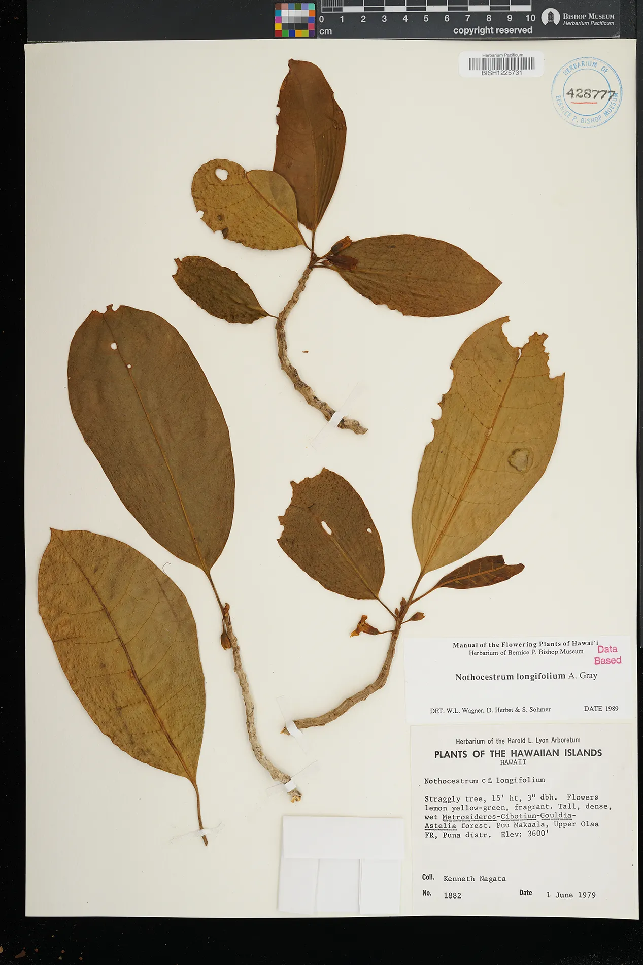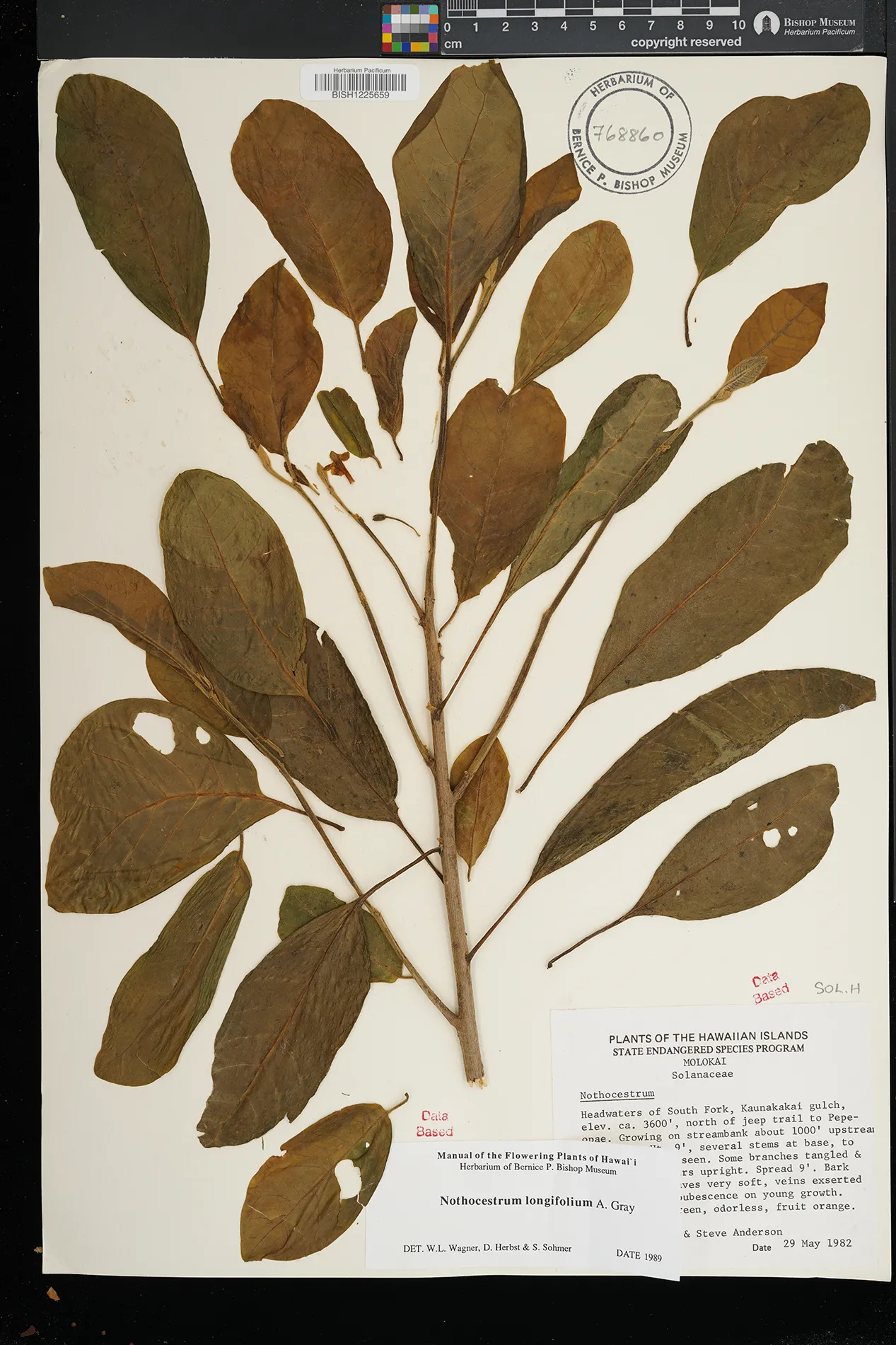 near Kumakalii, elev. approx 600 m, tree growing beside Nothocestrum 2834 |