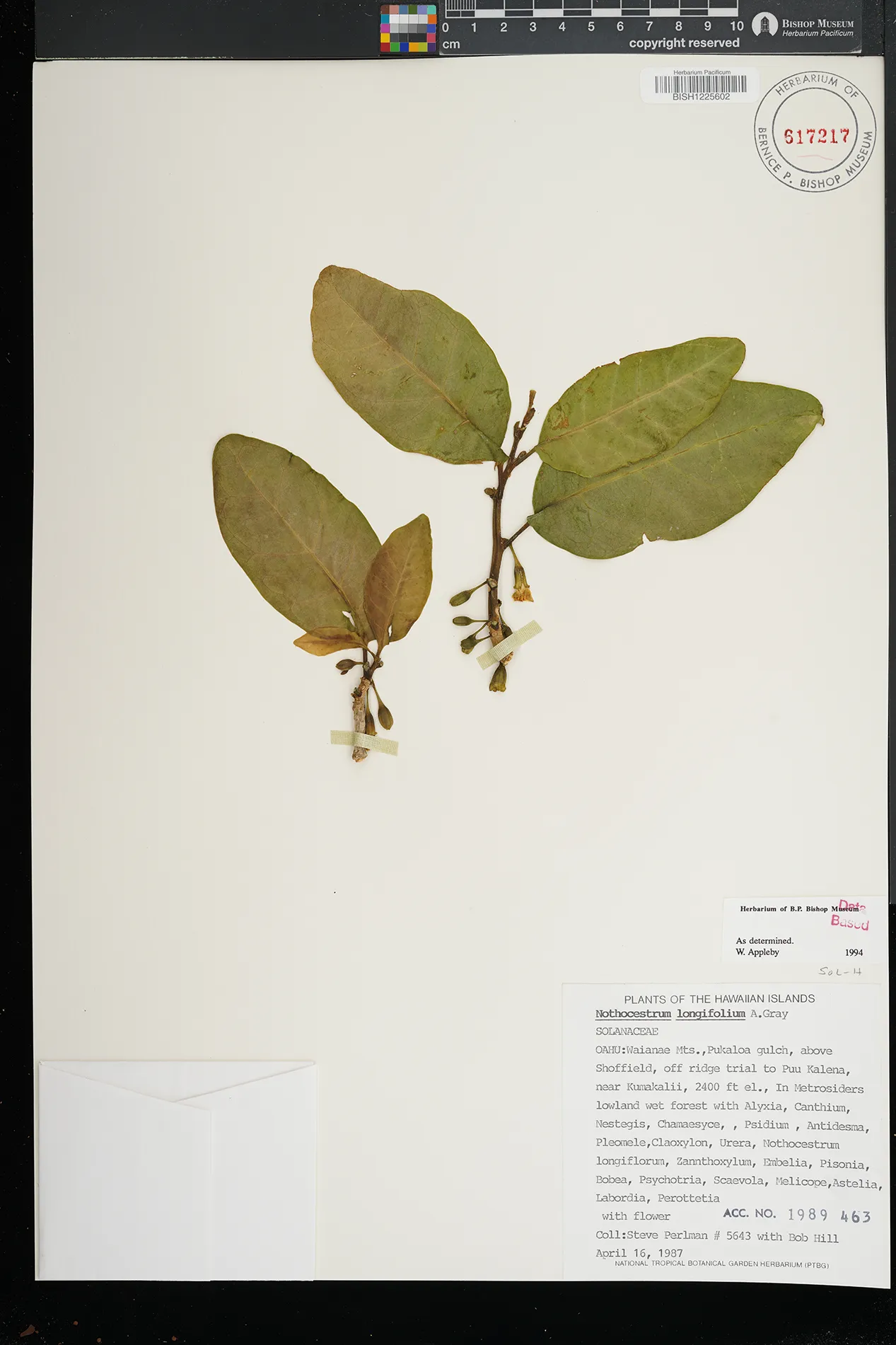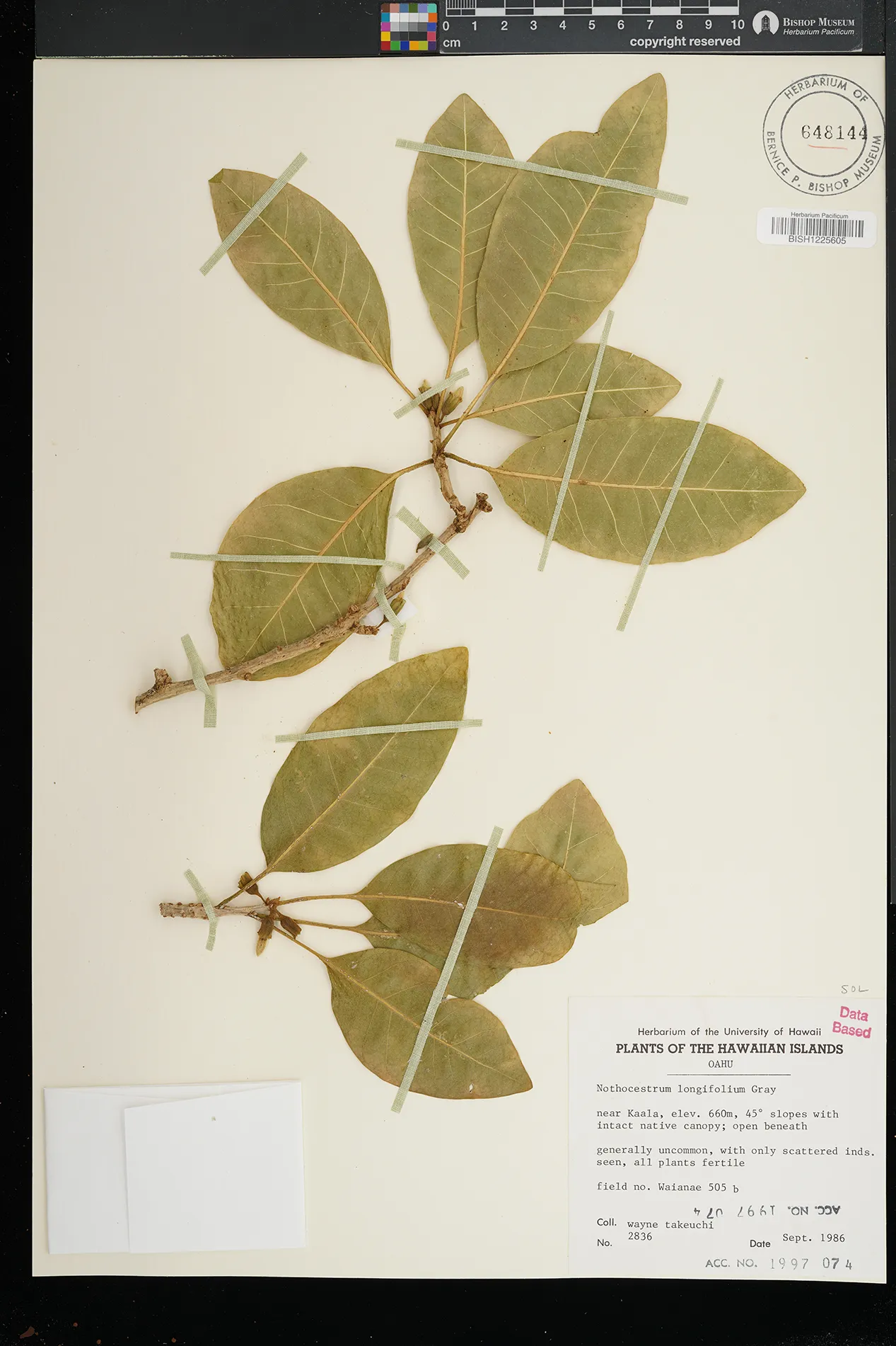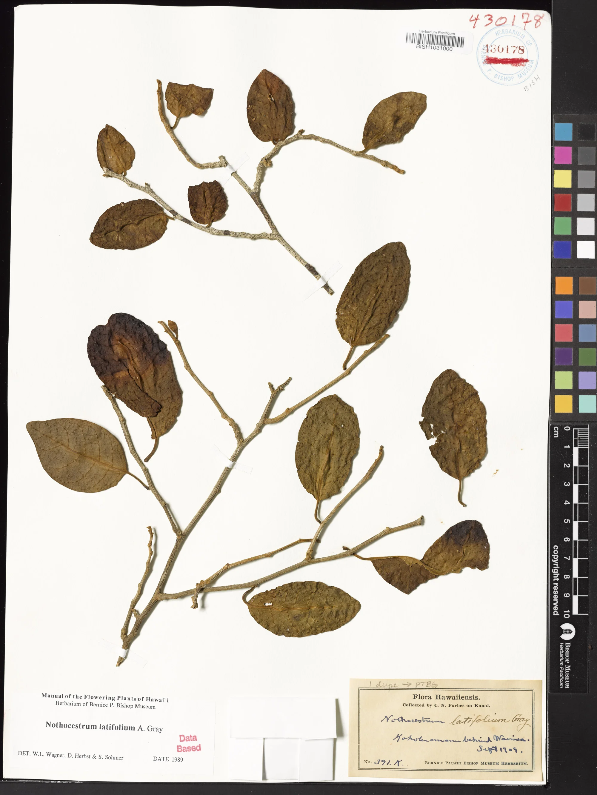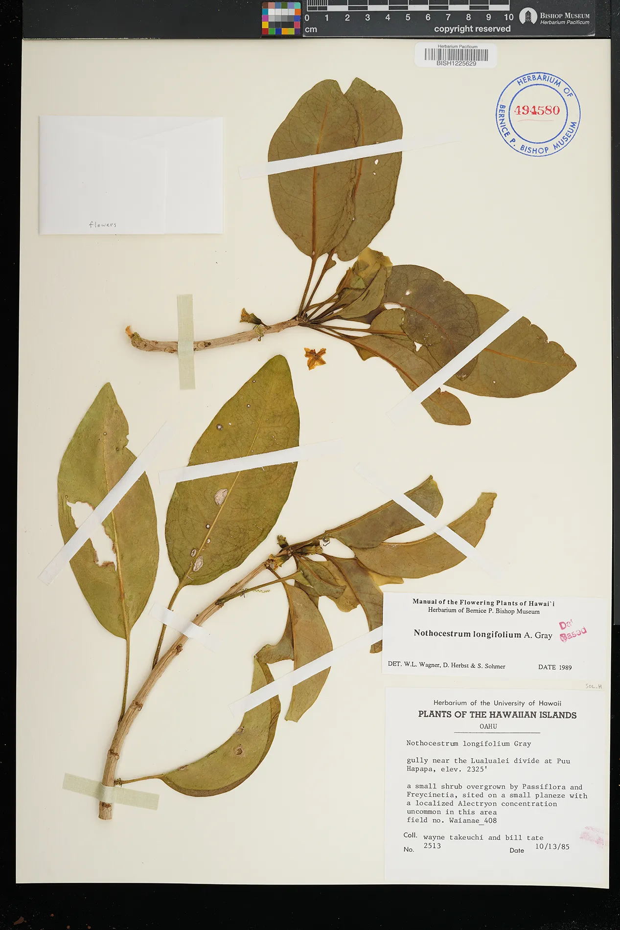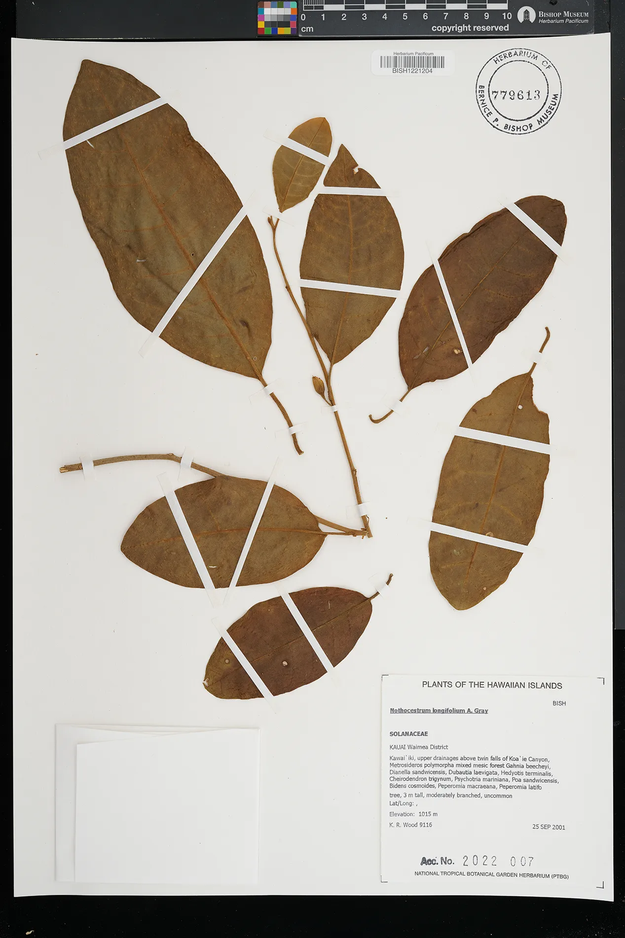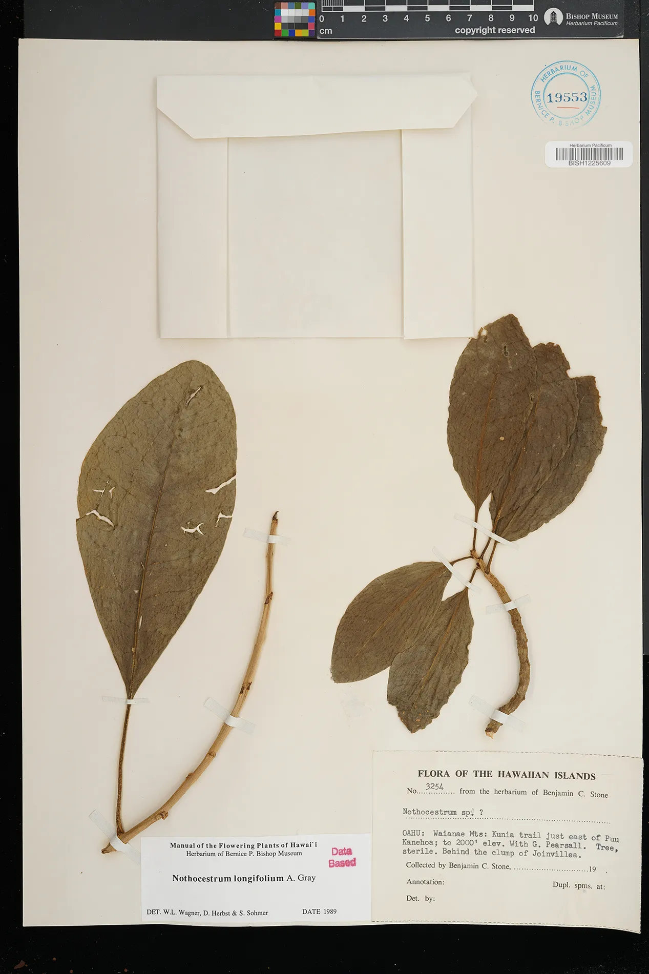 near Kumakalii, elev. approx 600 m, tree growing beside Nothocestrum 2834 |