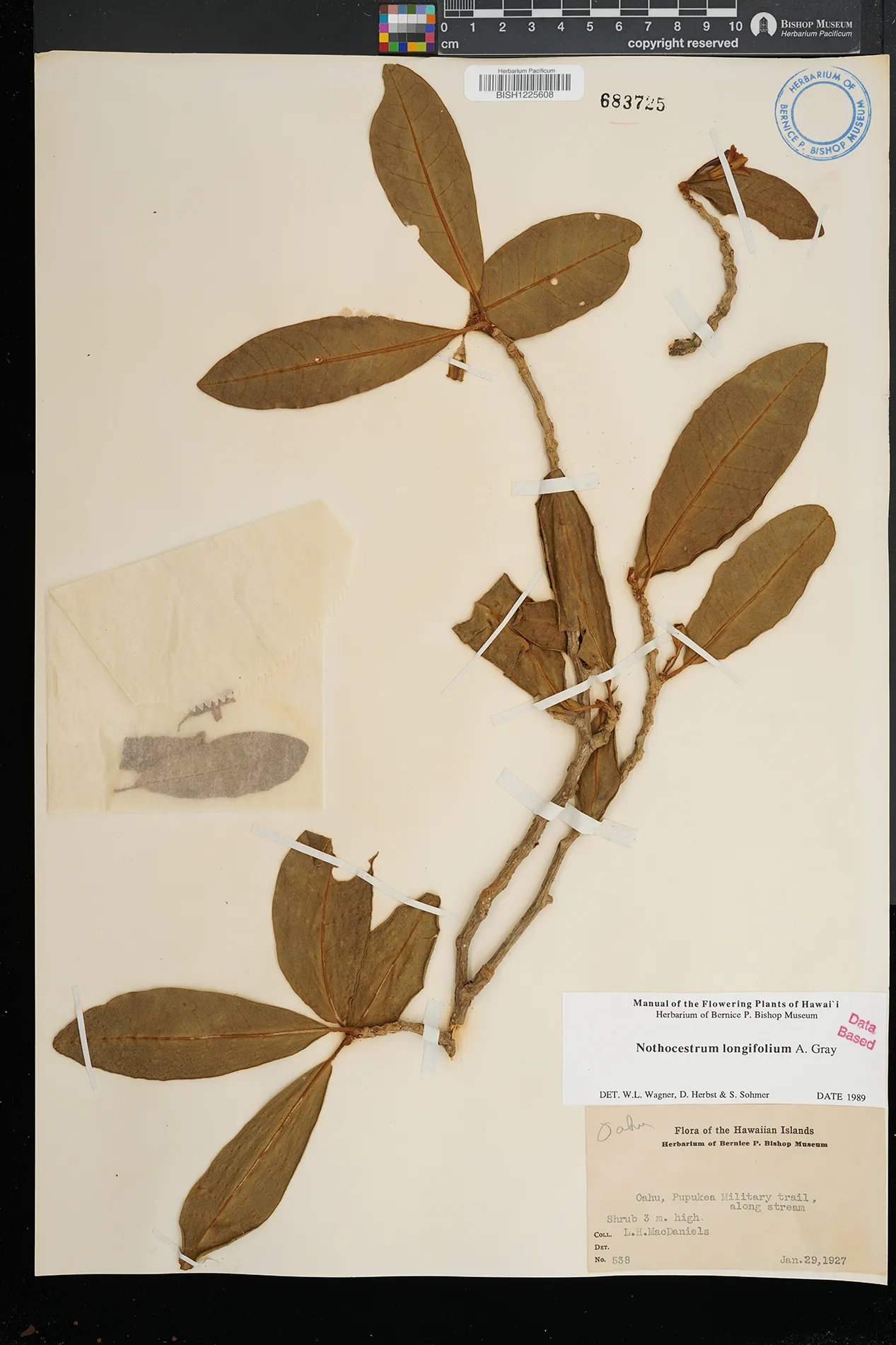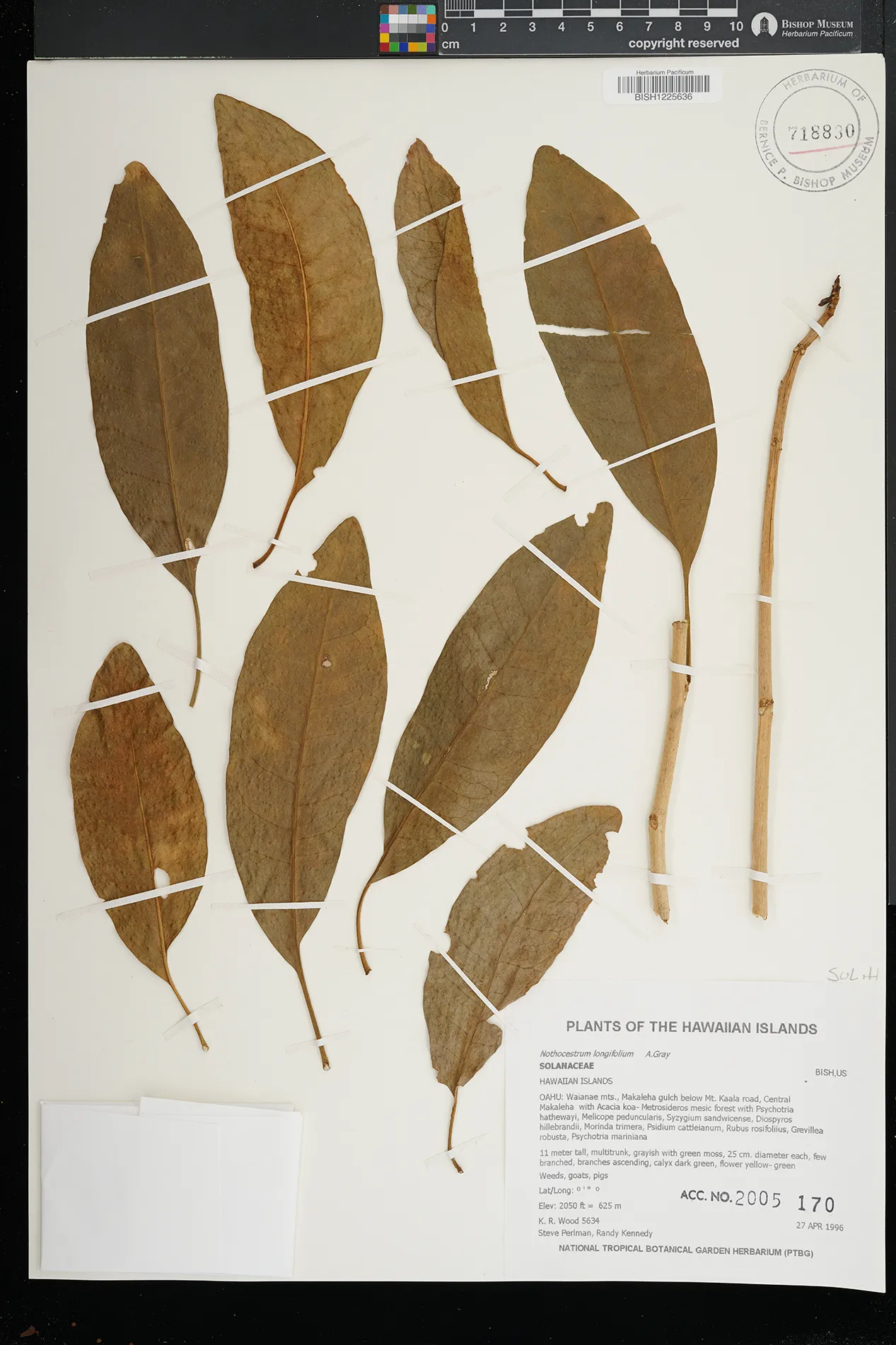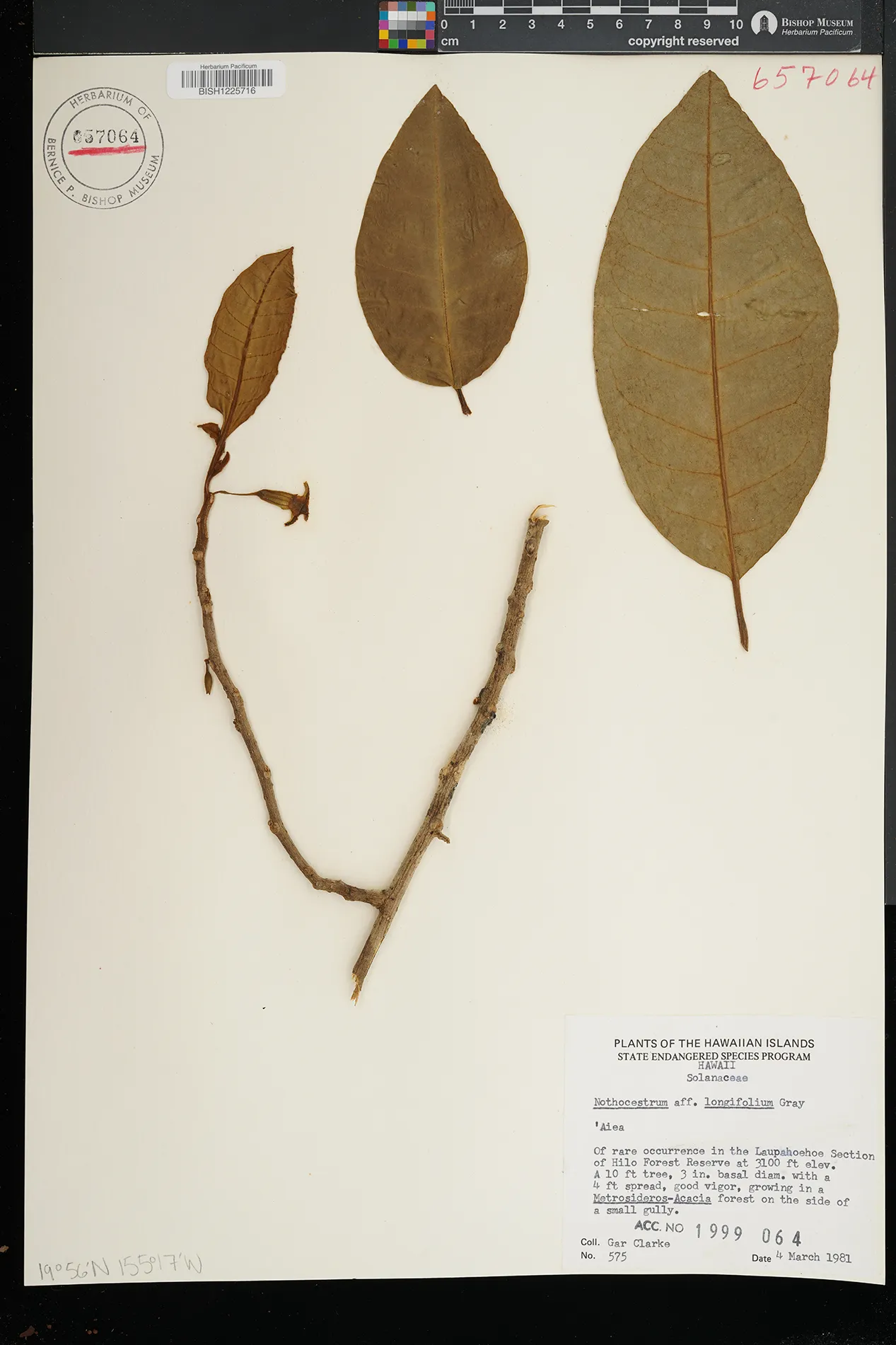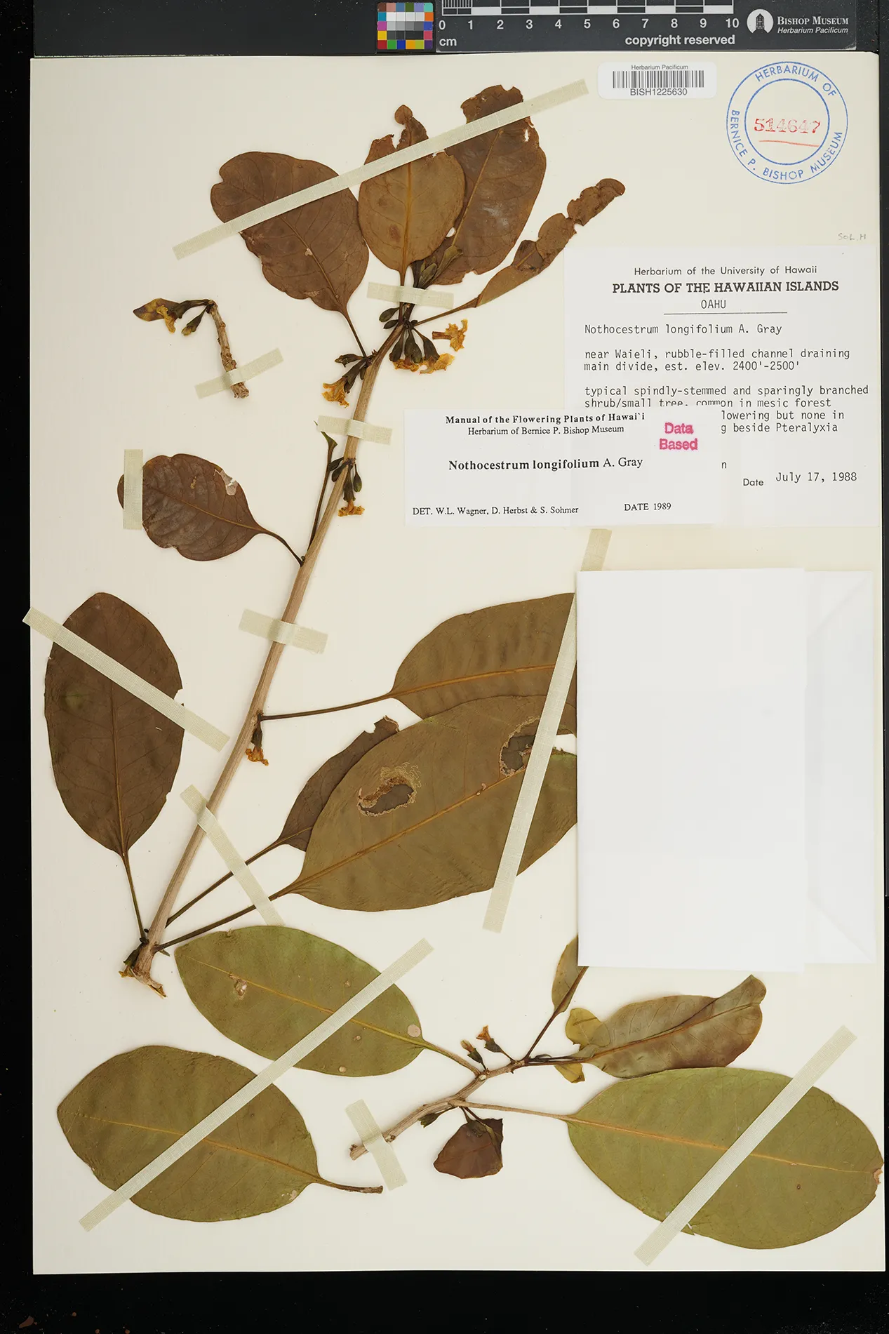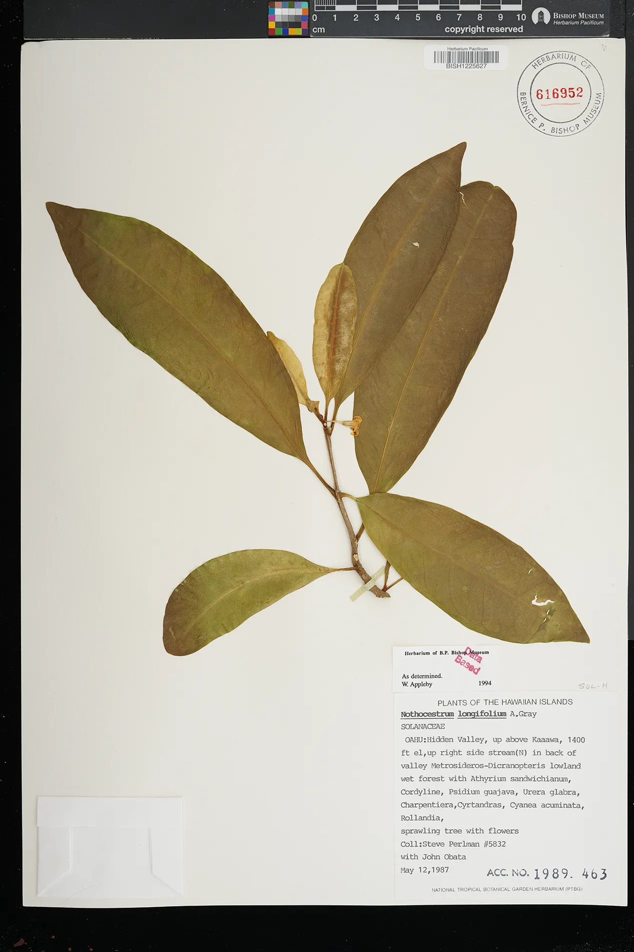 near Kumakalii, elev. approx 600 m, tree growing beside Nothocestrum 2834 |