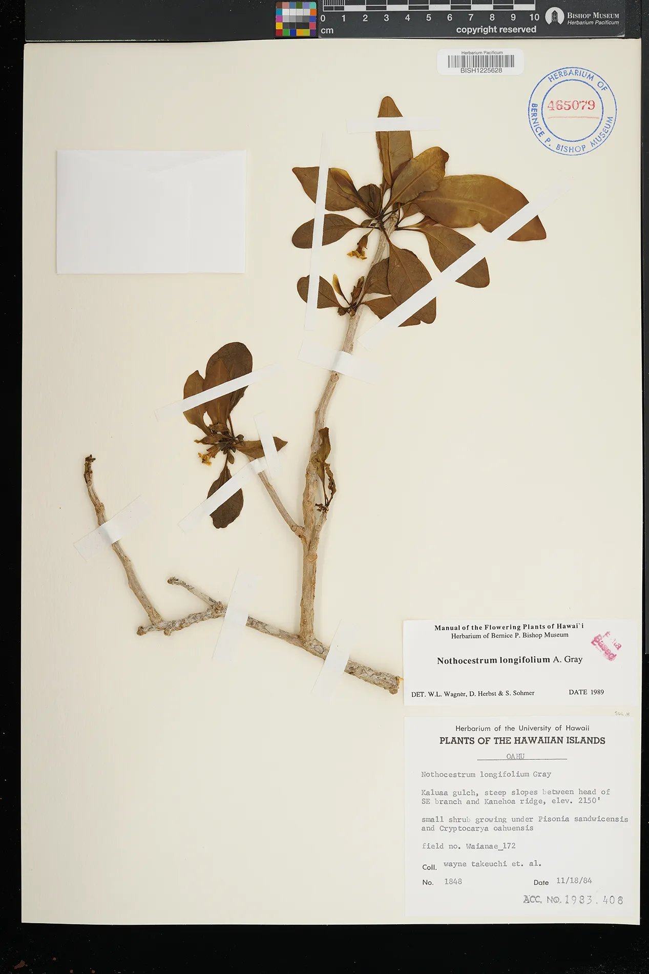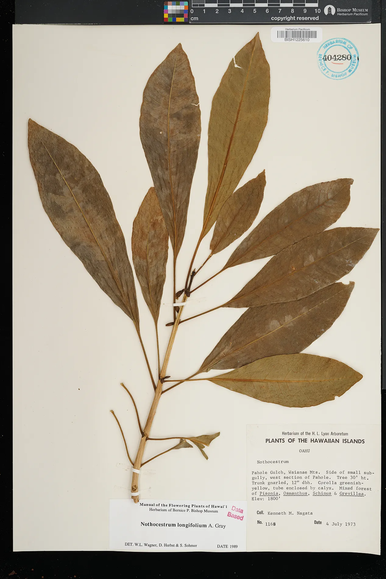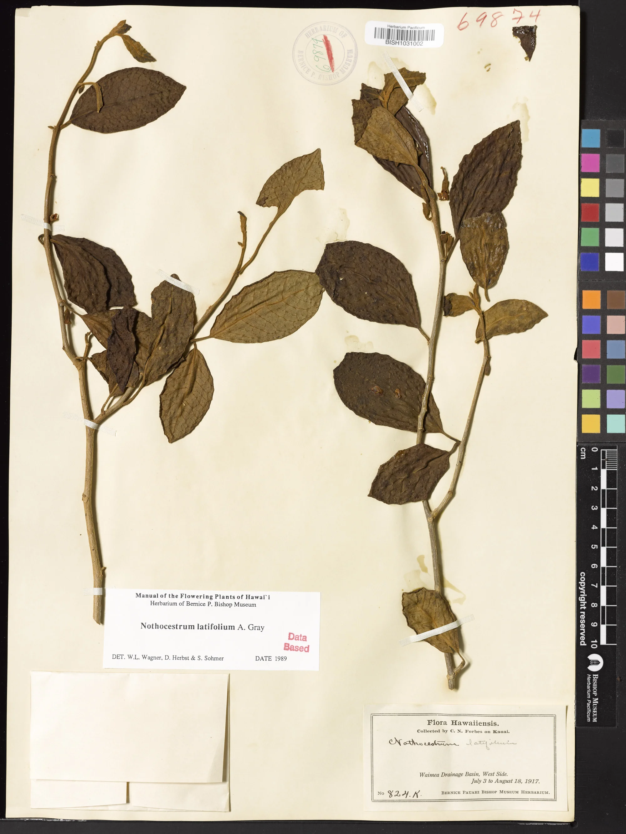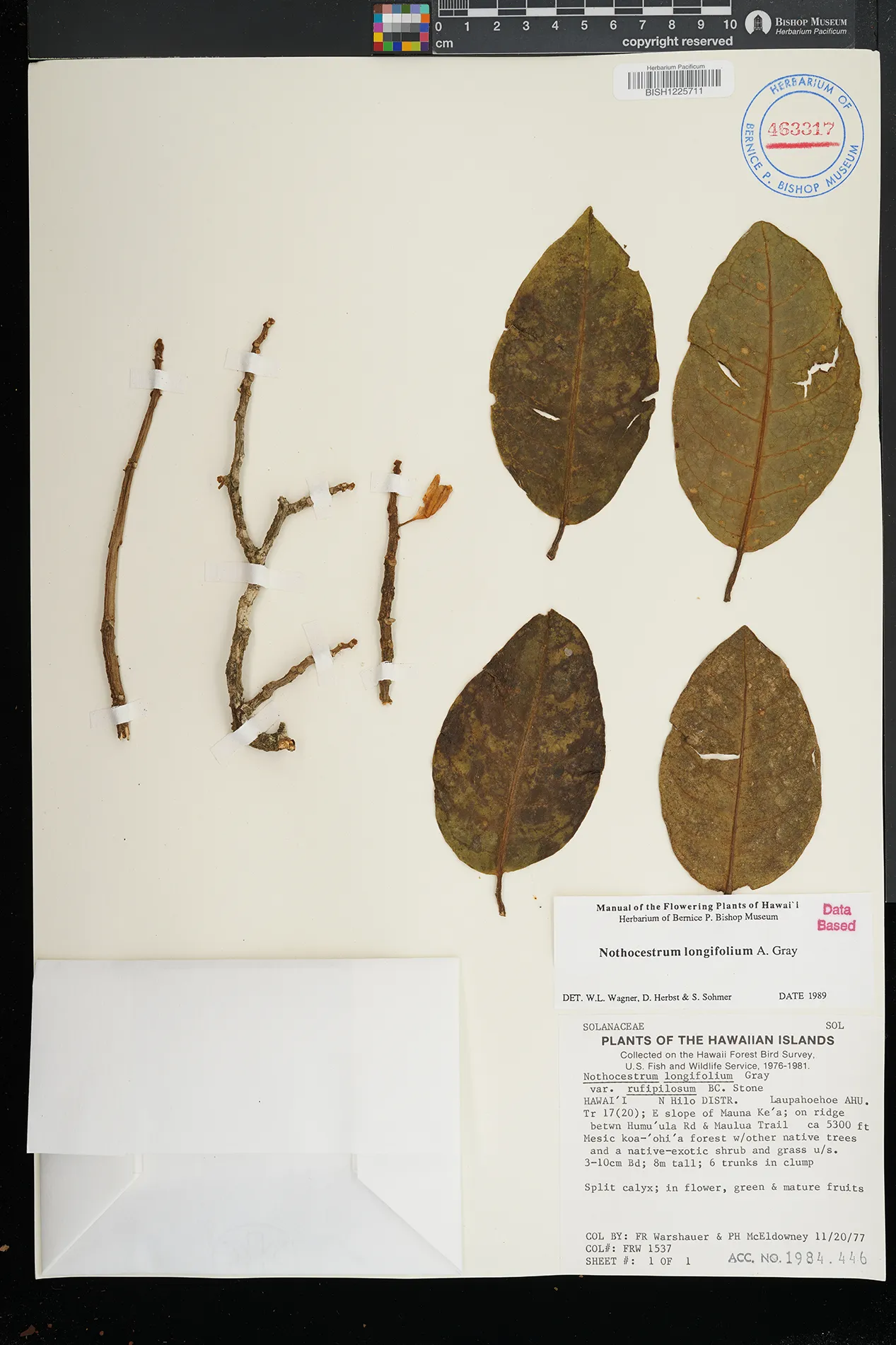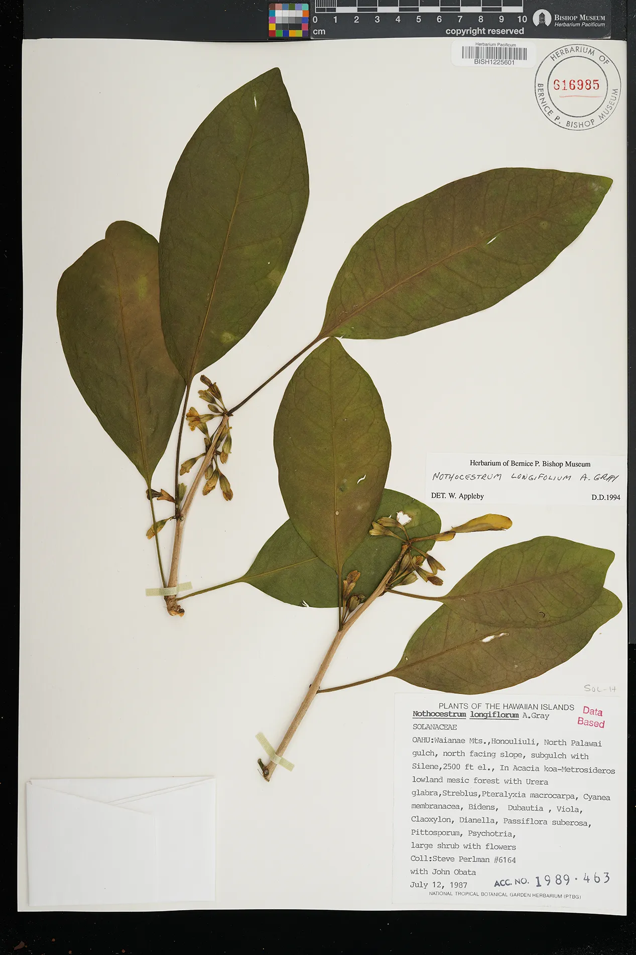 near Kumakalii, elev. approx 600 m, tree growing beside Nothocestrum 2834 |