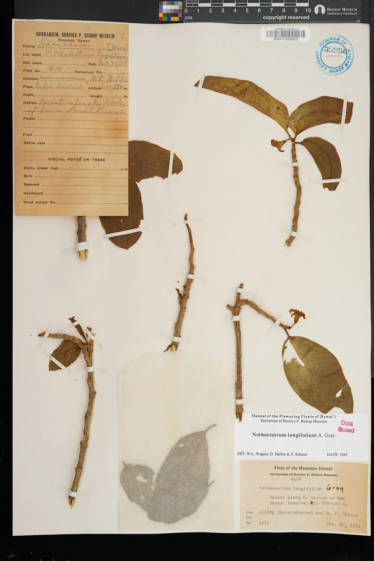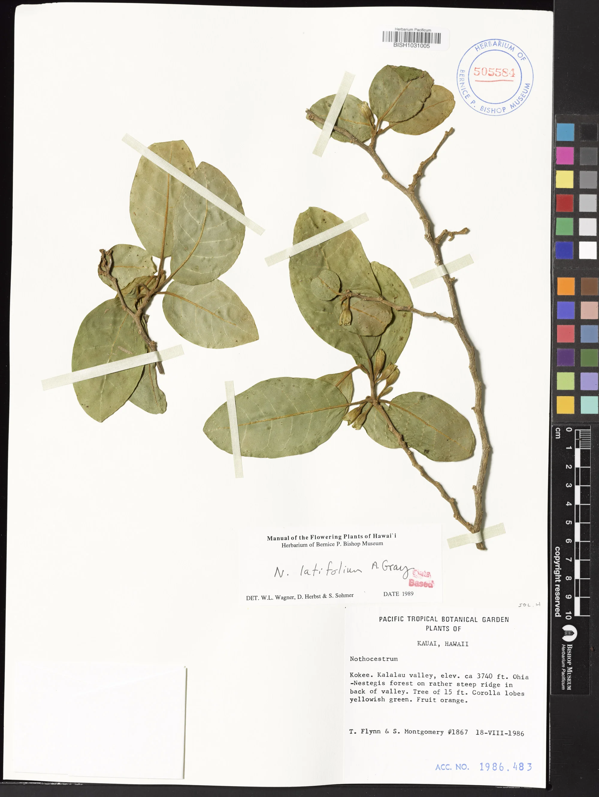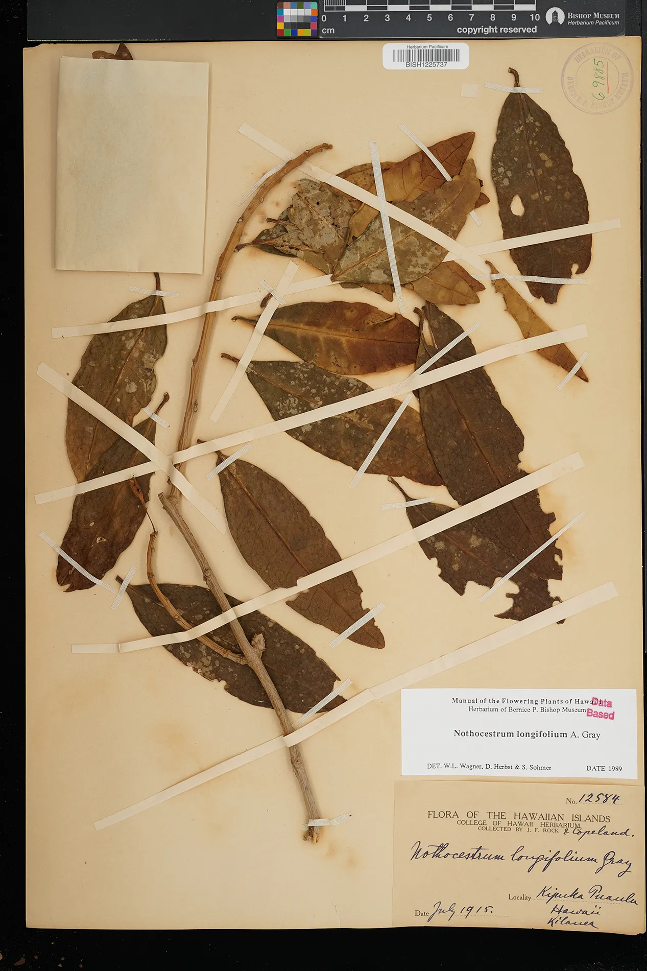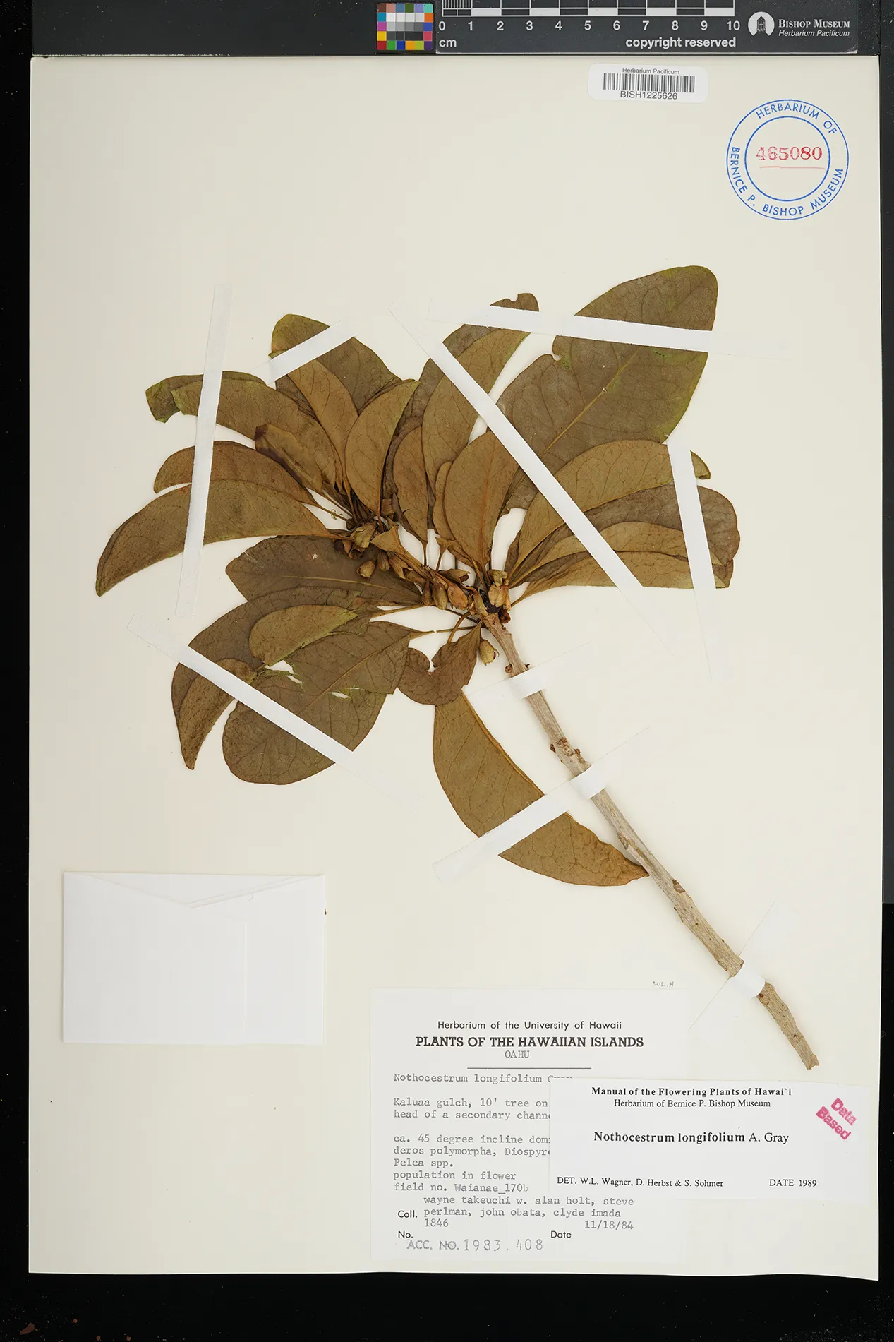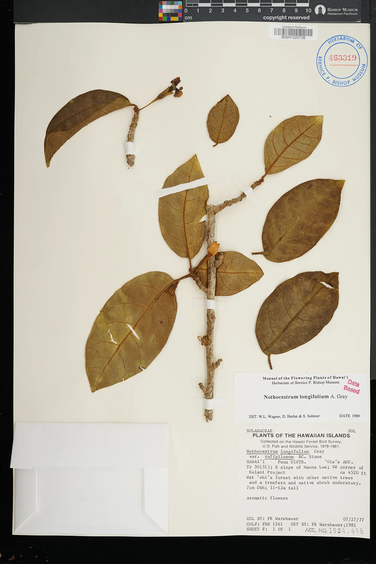 near Kumakalii, elev. approx 600 m, tree growing beside Nothocestrum 2834 |