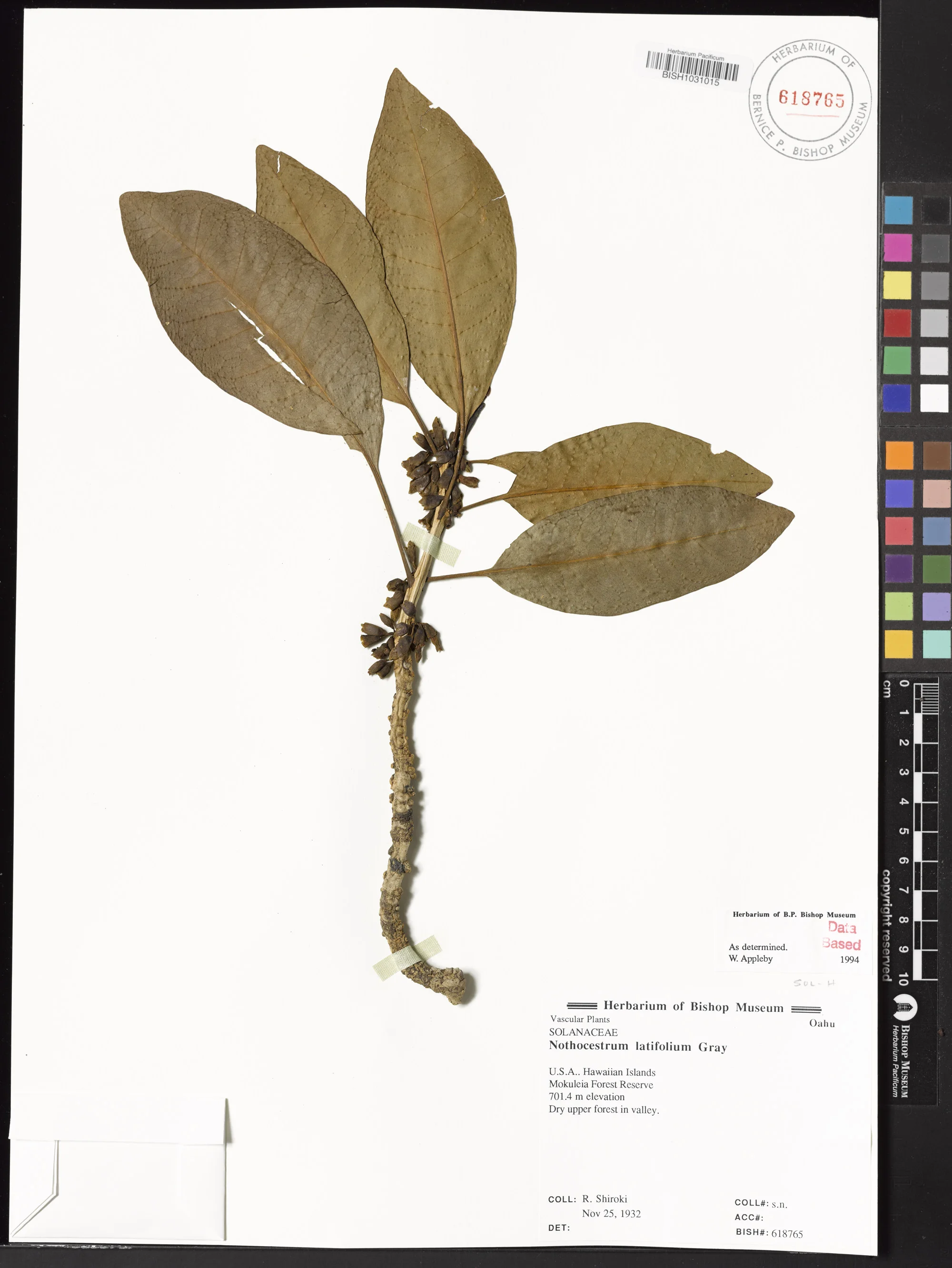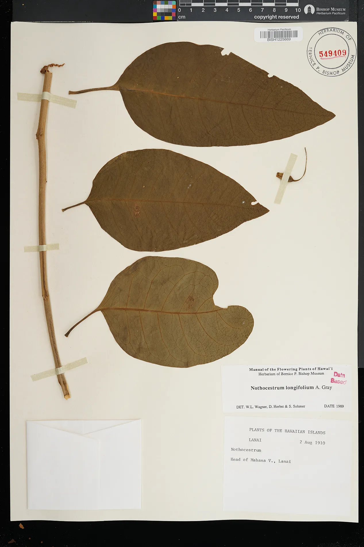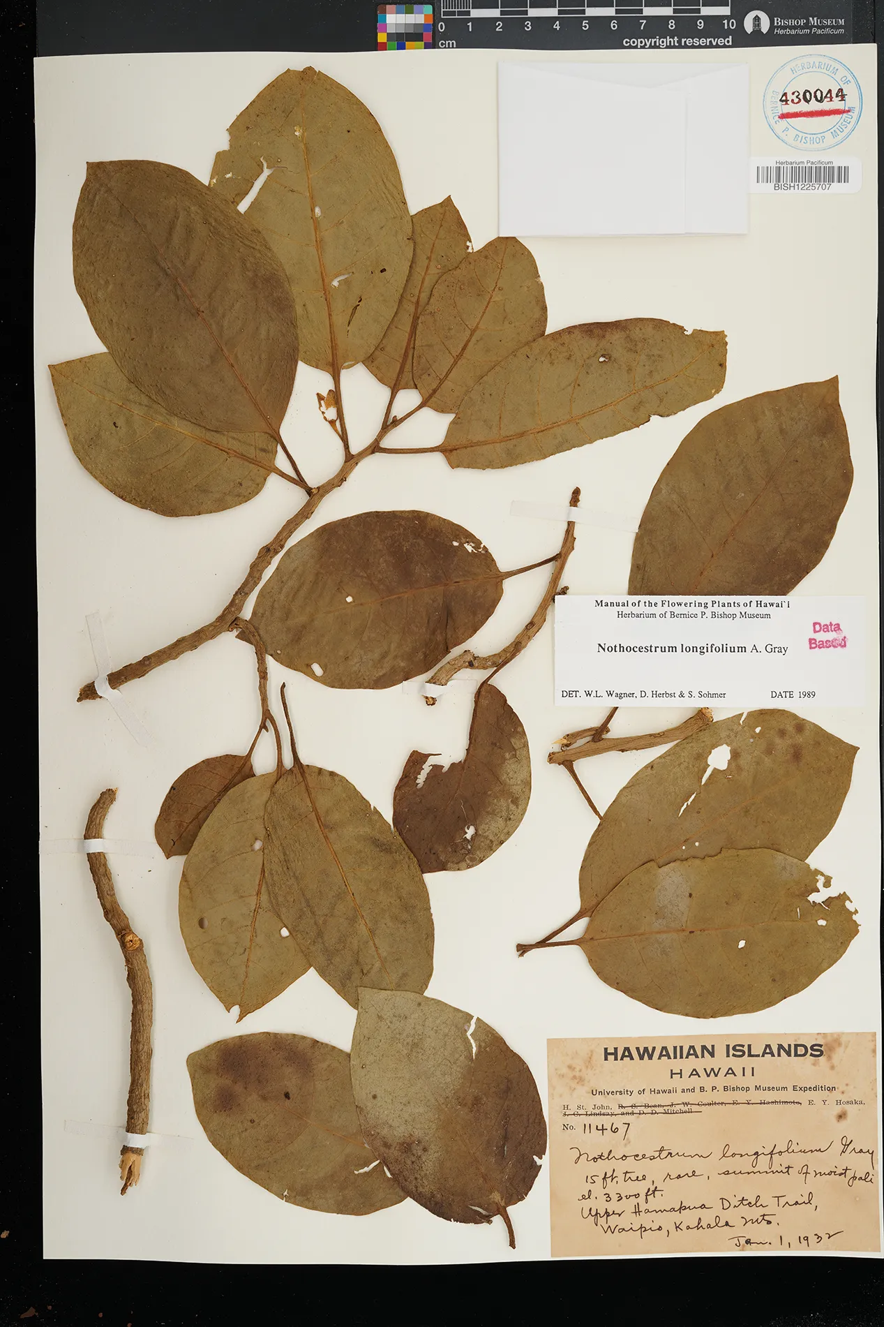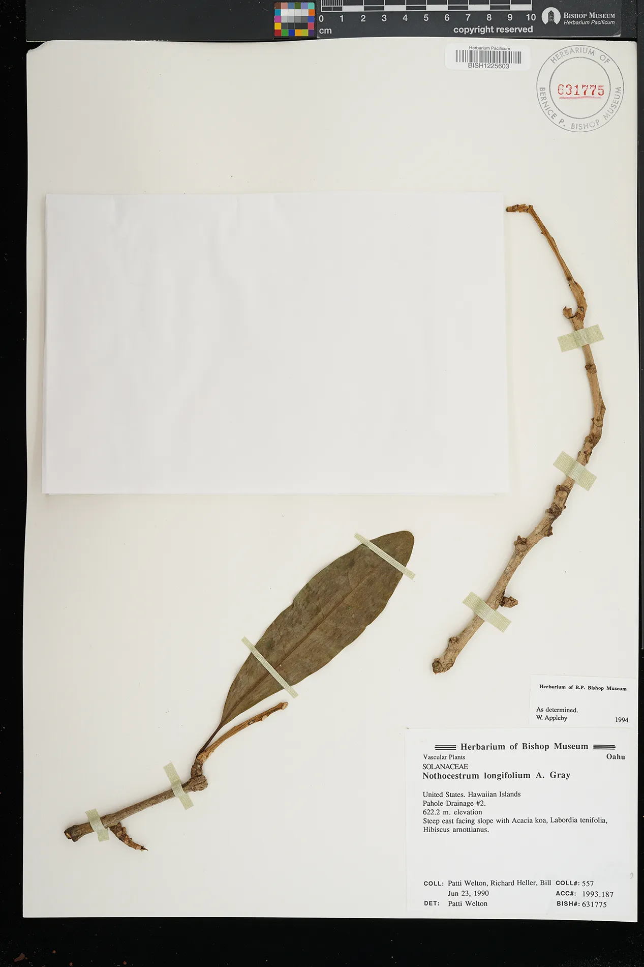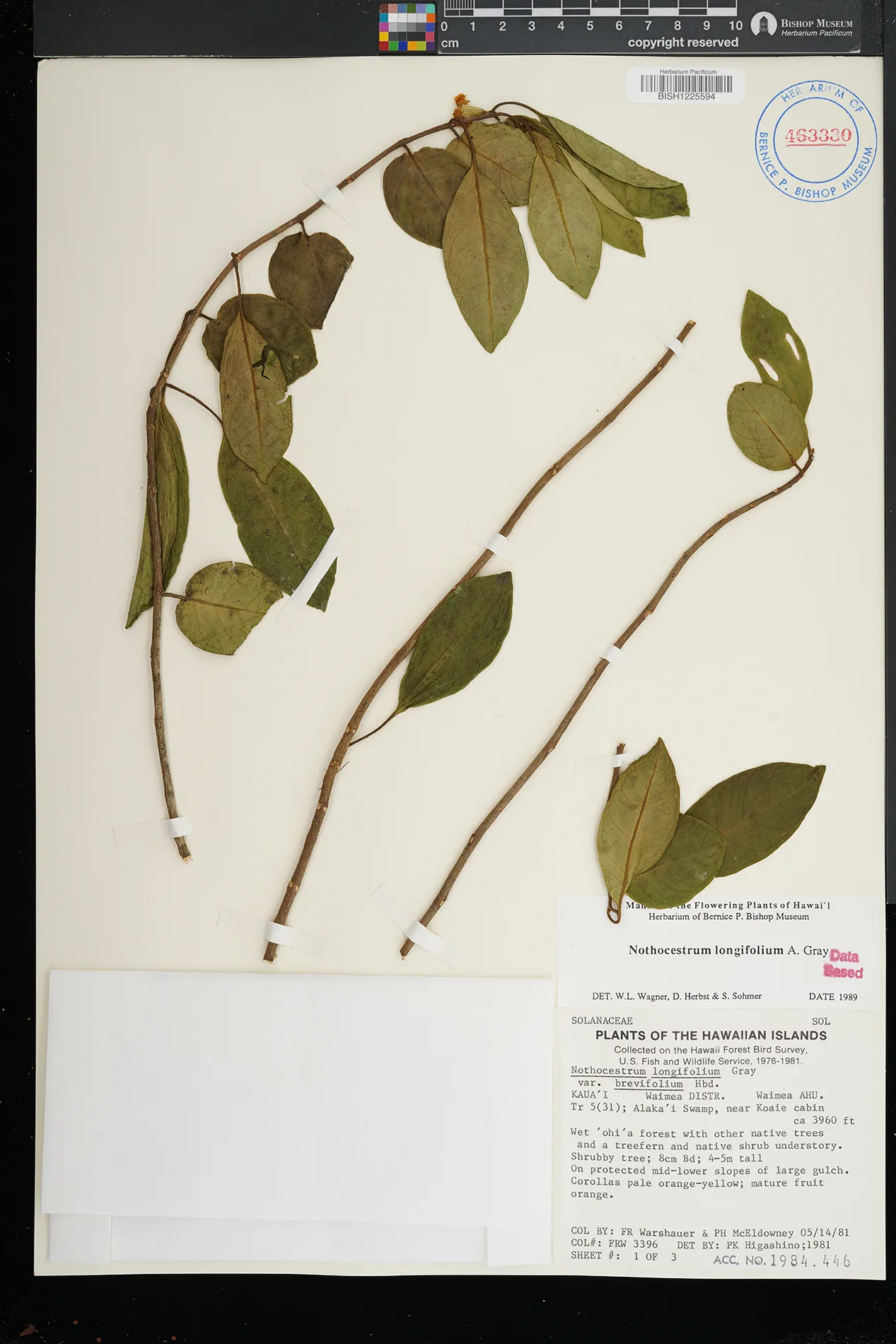 near Kumakalii, elev. approx 600 m, tree growing beside Nothocestrum 2834 |