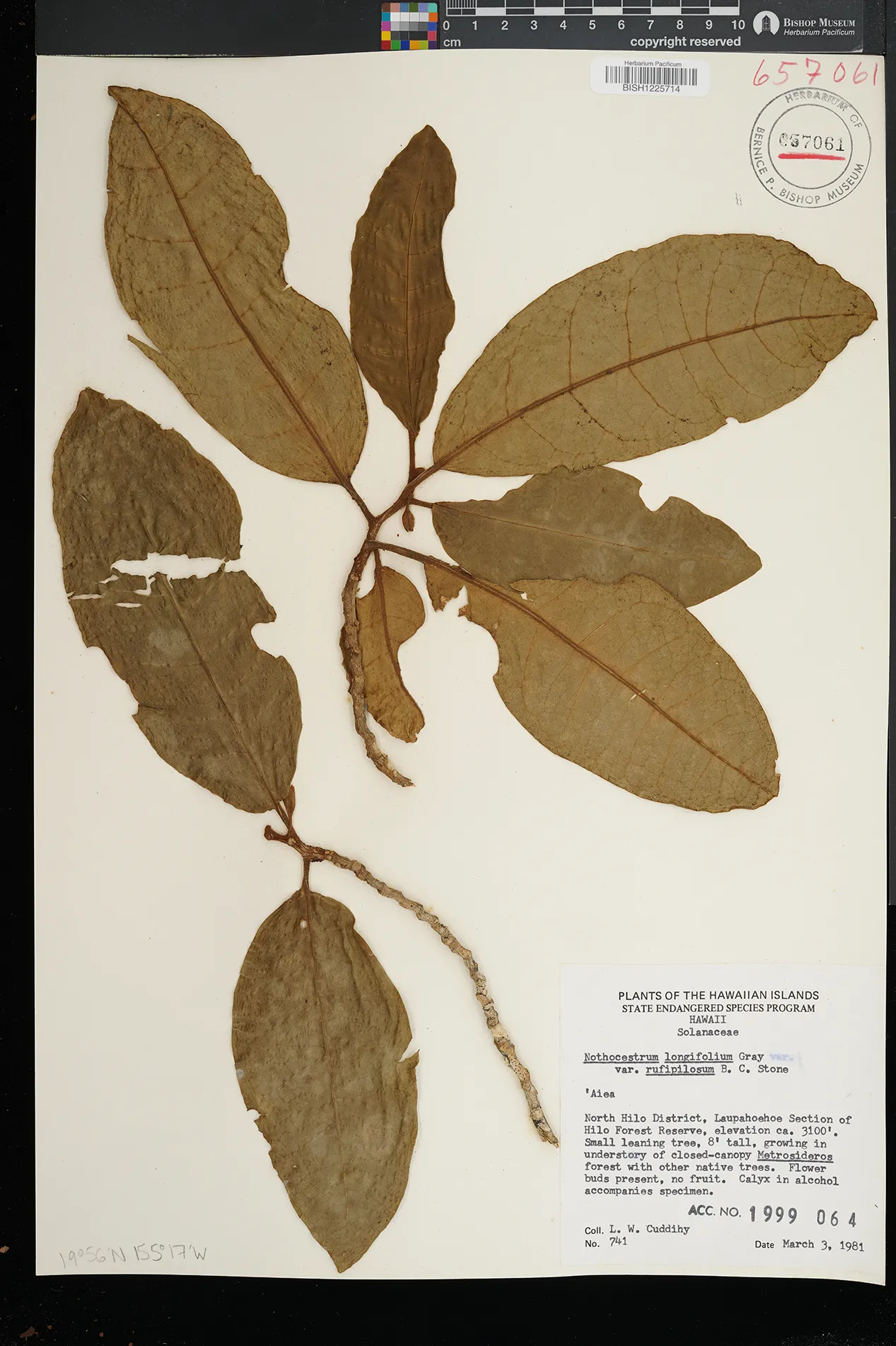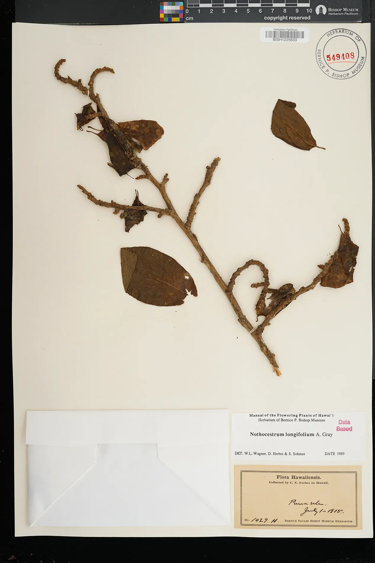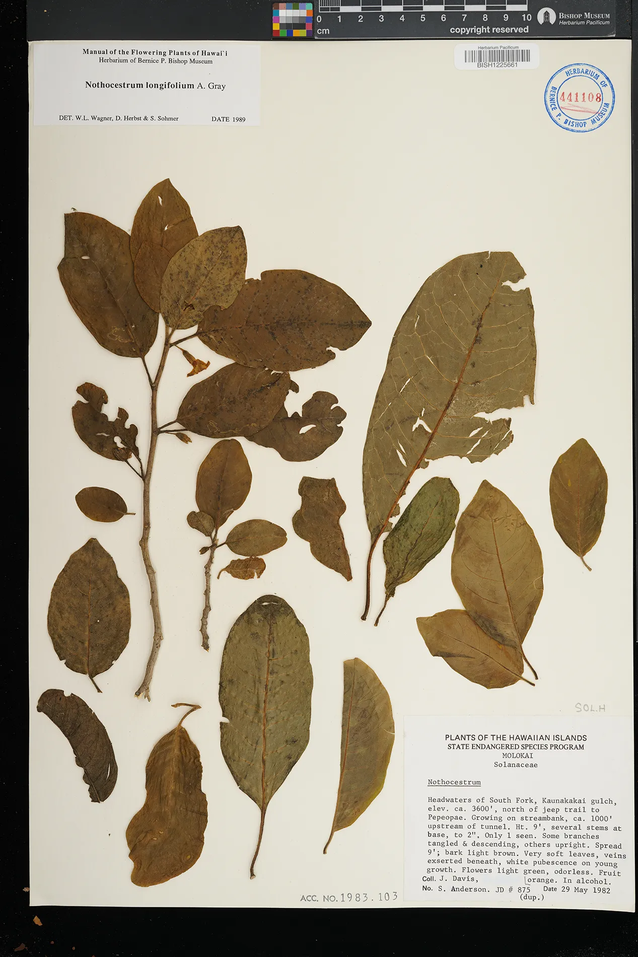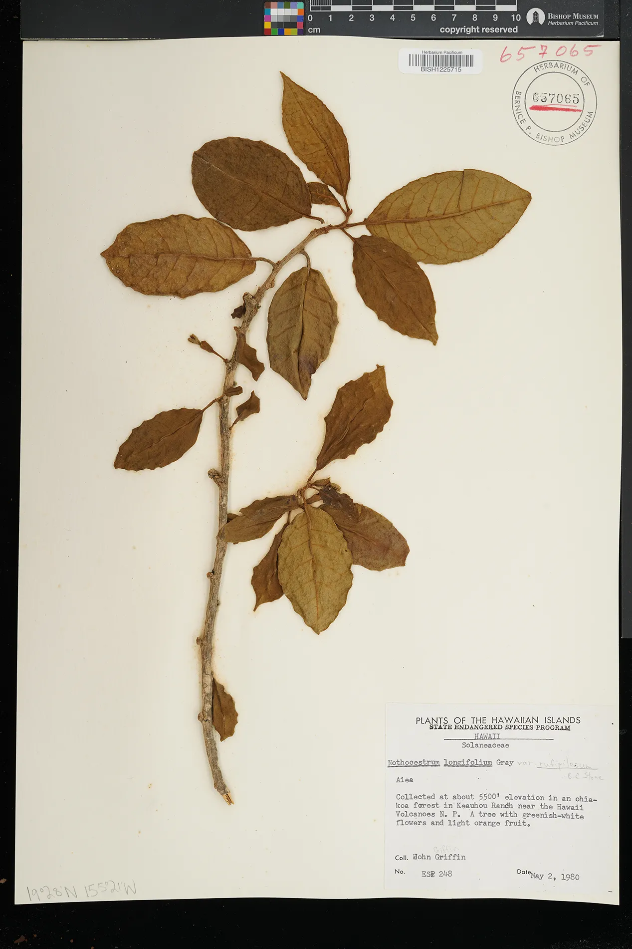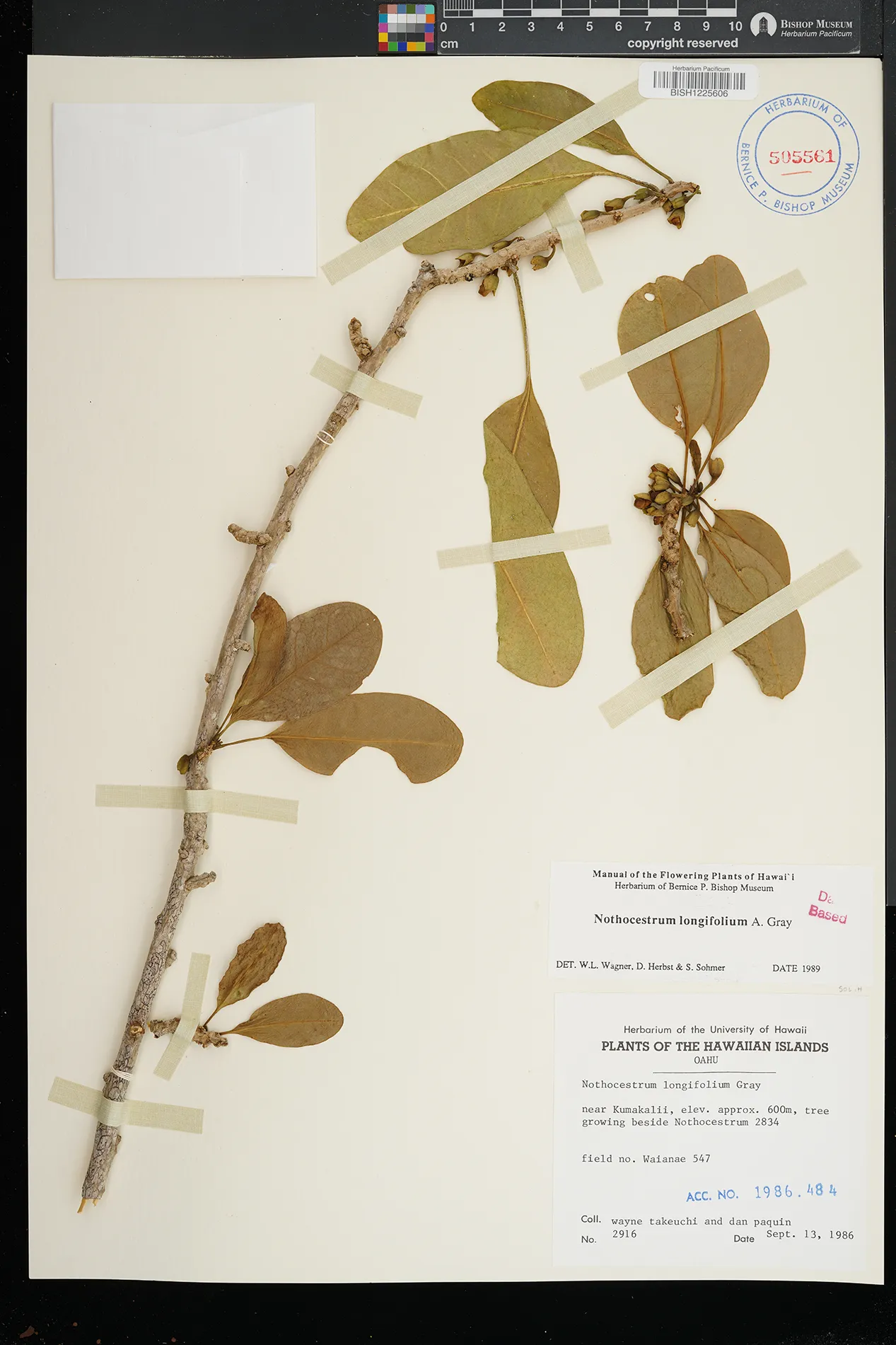 near Kumakalii, elev. approx 600 m, tree growing beside Nothocestrum 2834 |