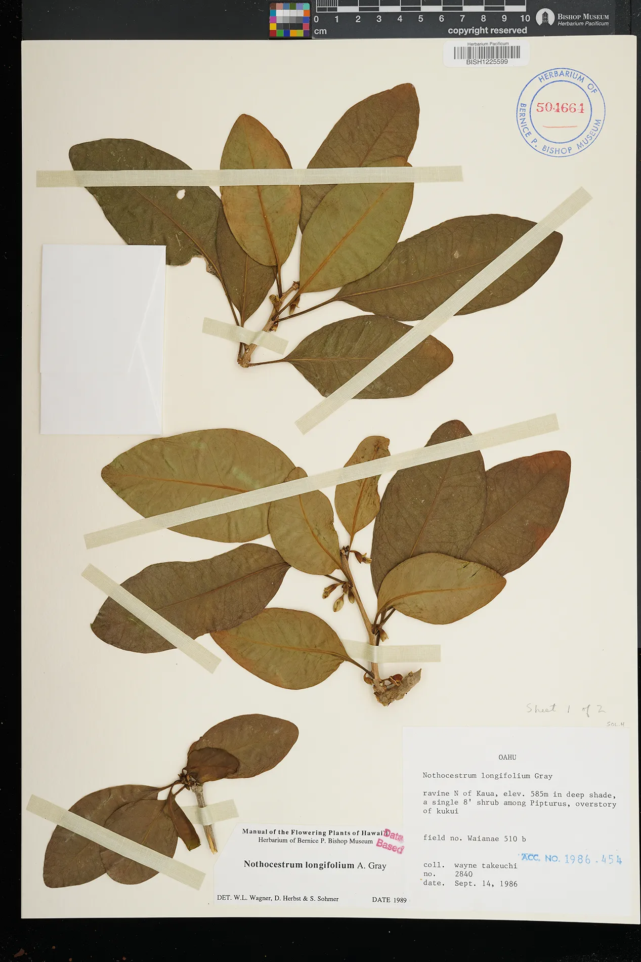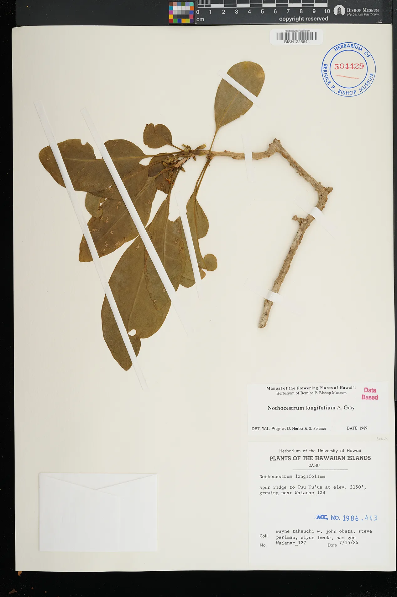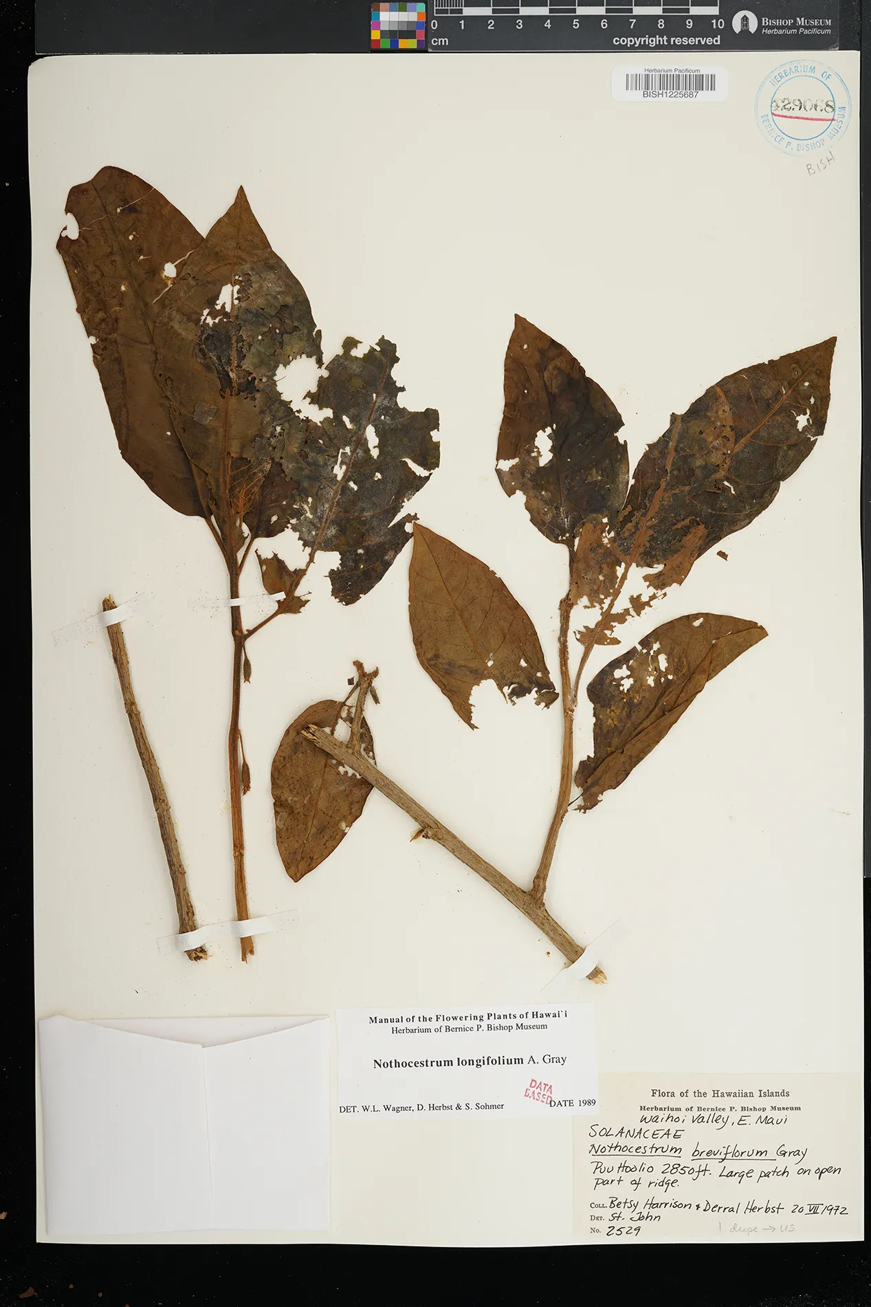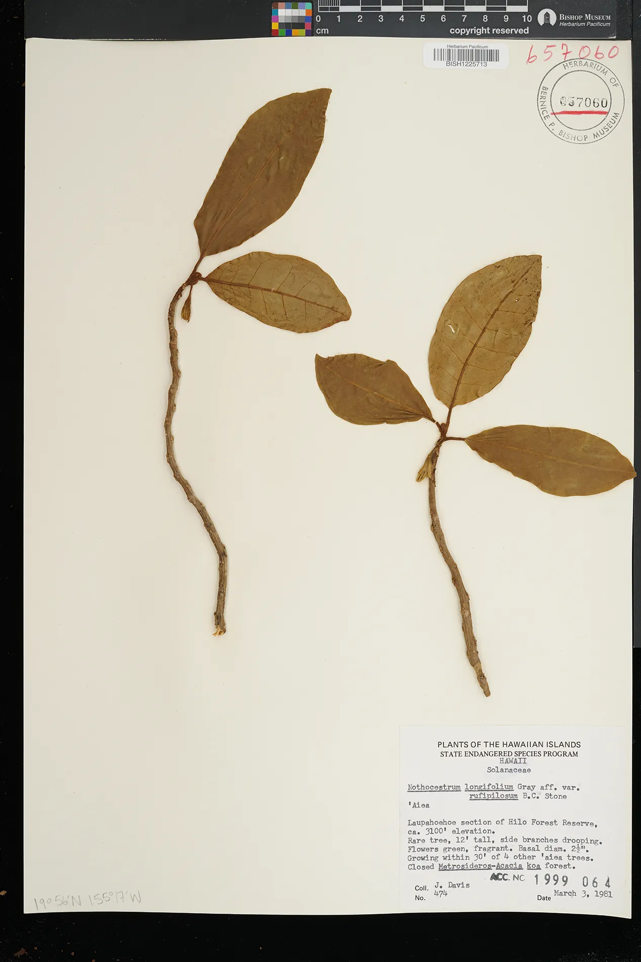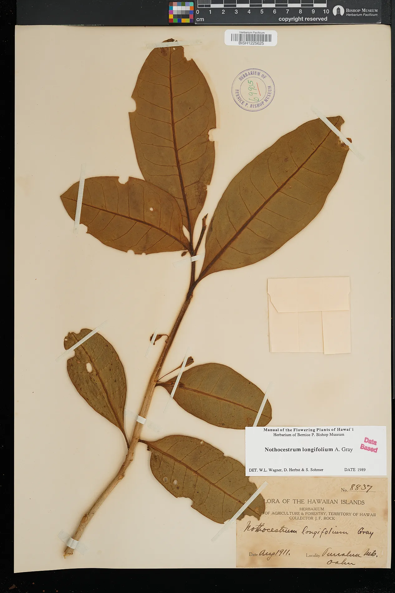 near Kumakalii, elev. approx 600 m, tree growing beside Nothocestrum 2834 |