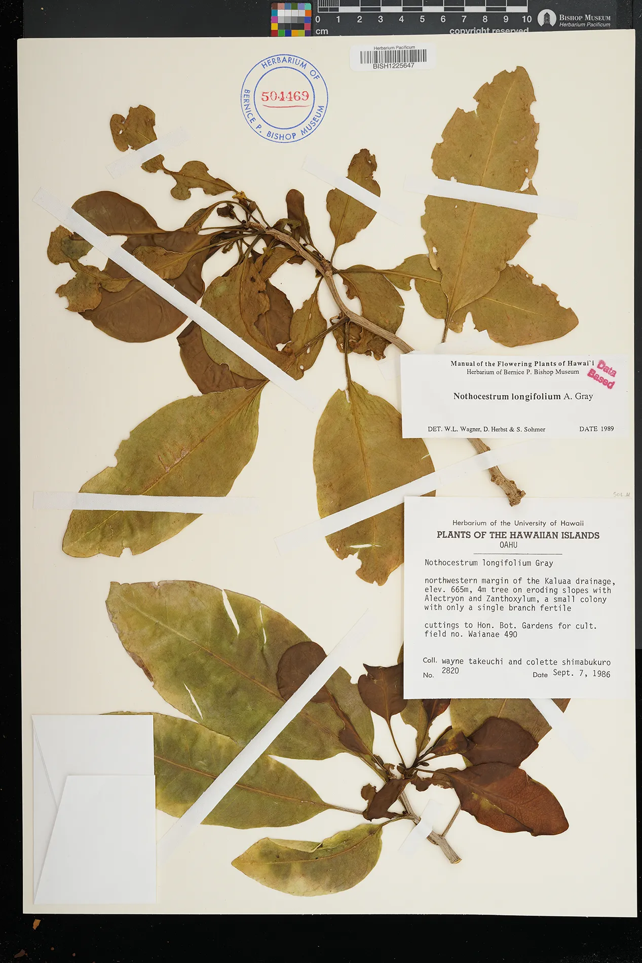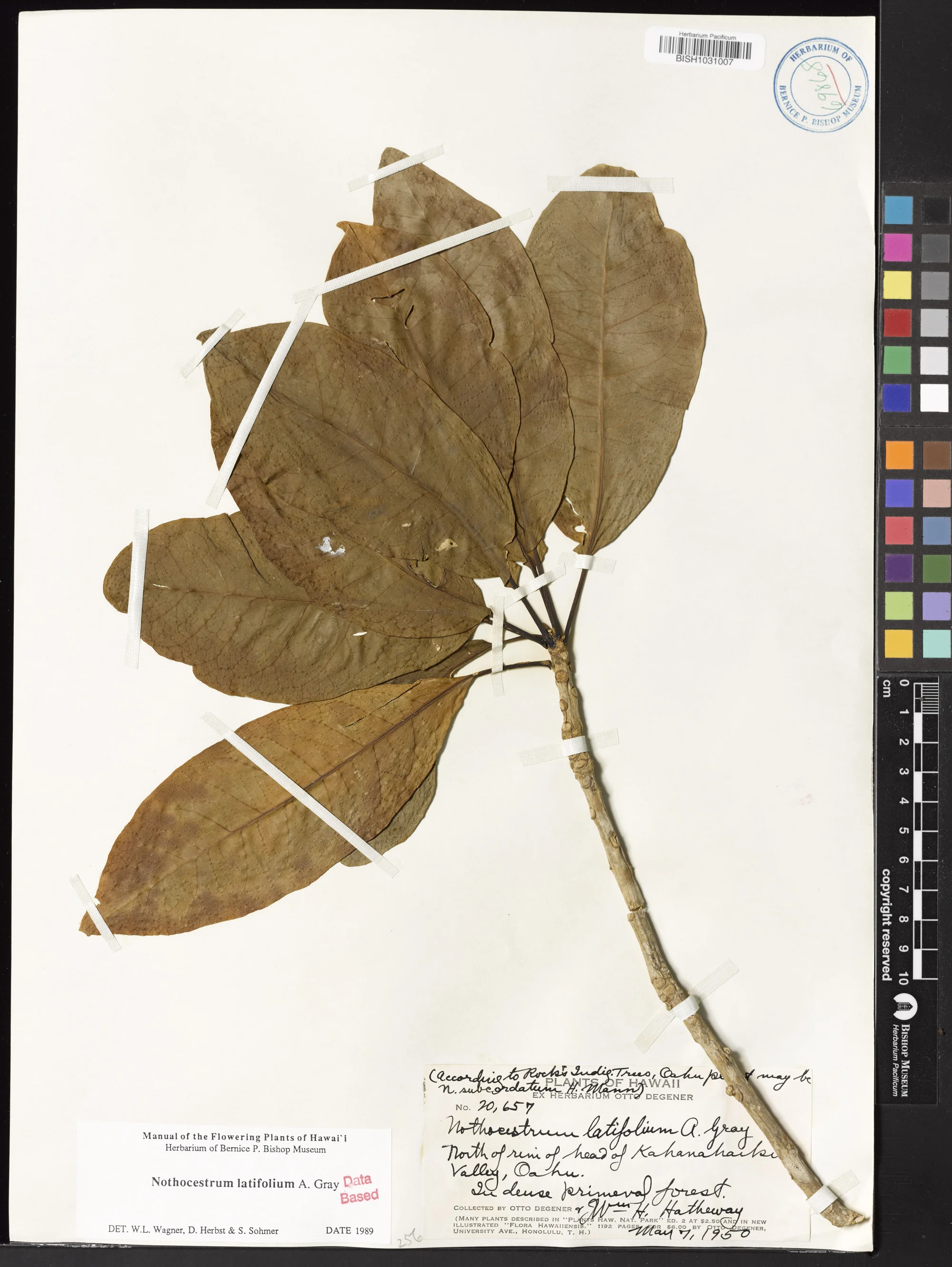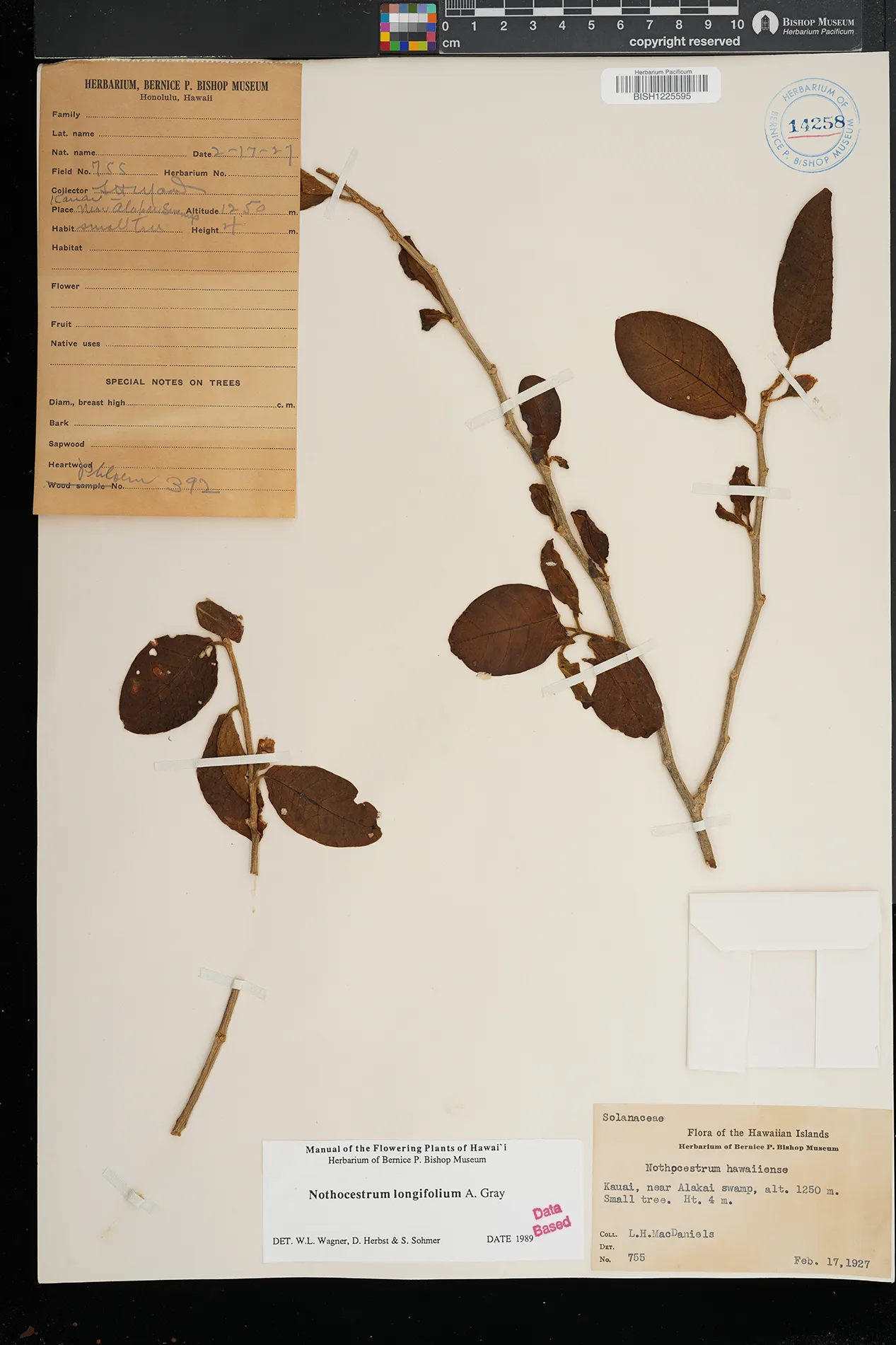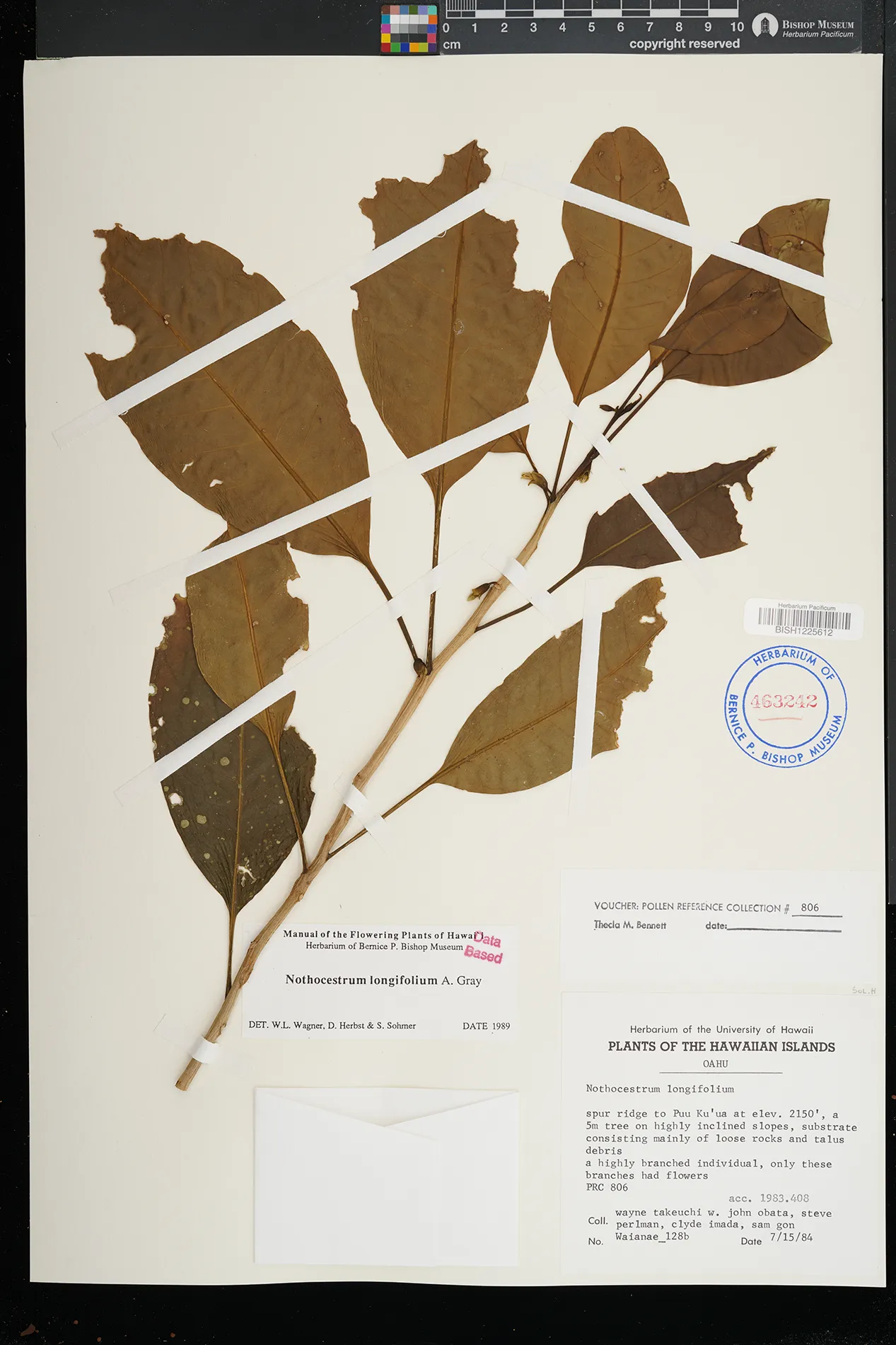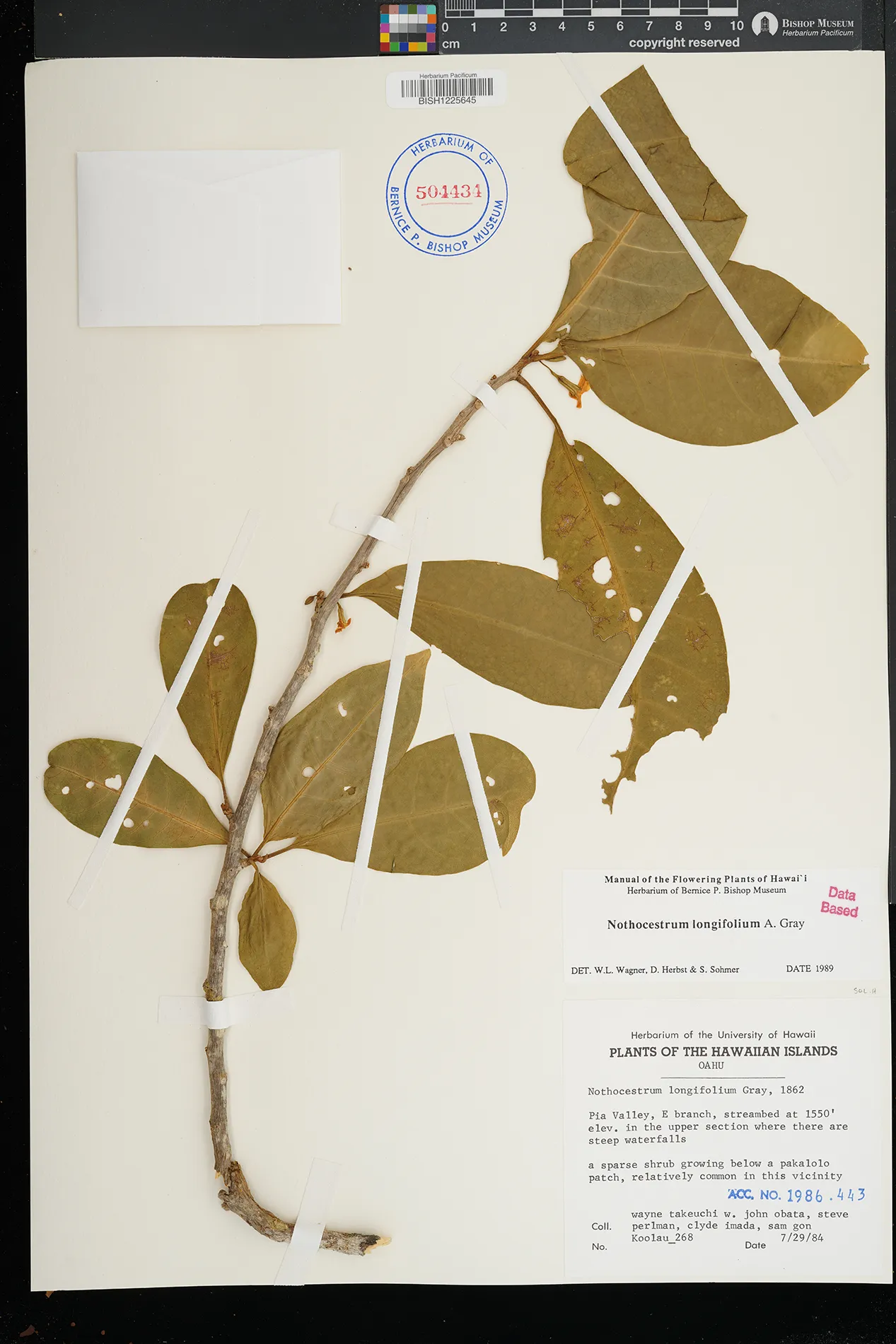 near Kumakalii, elev. approx 600 m, tree growing beside Nothocestrum 2834 |