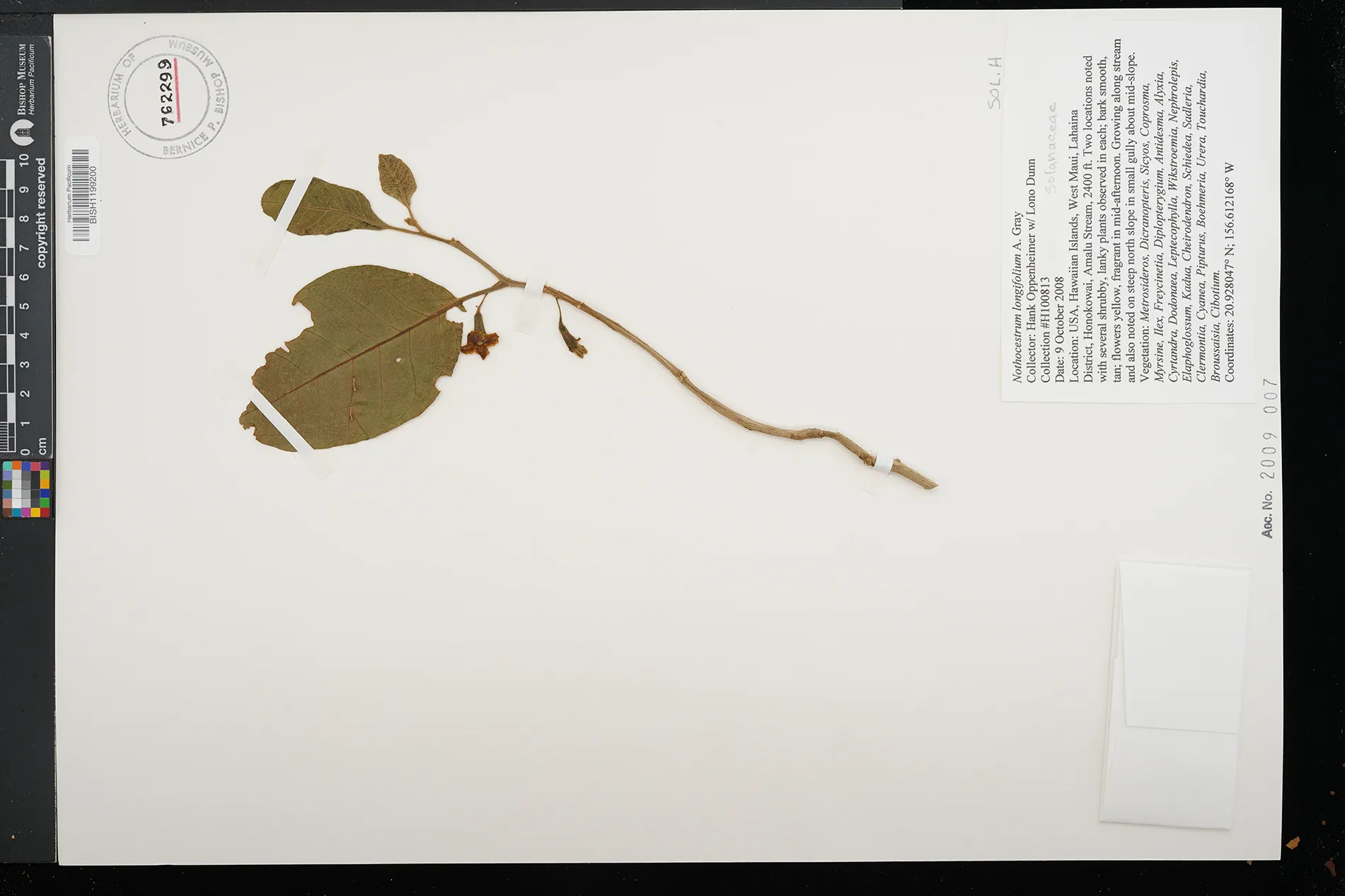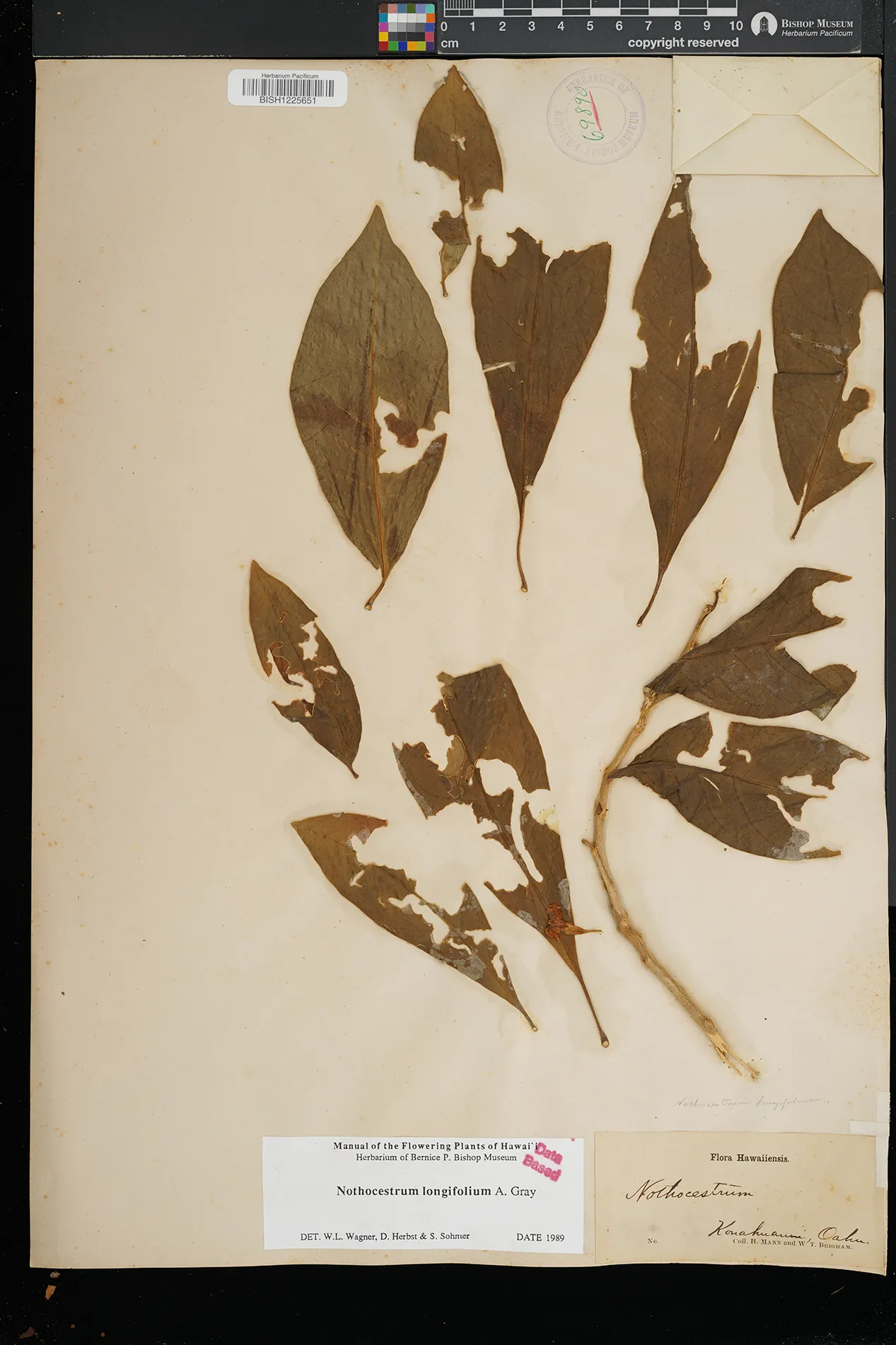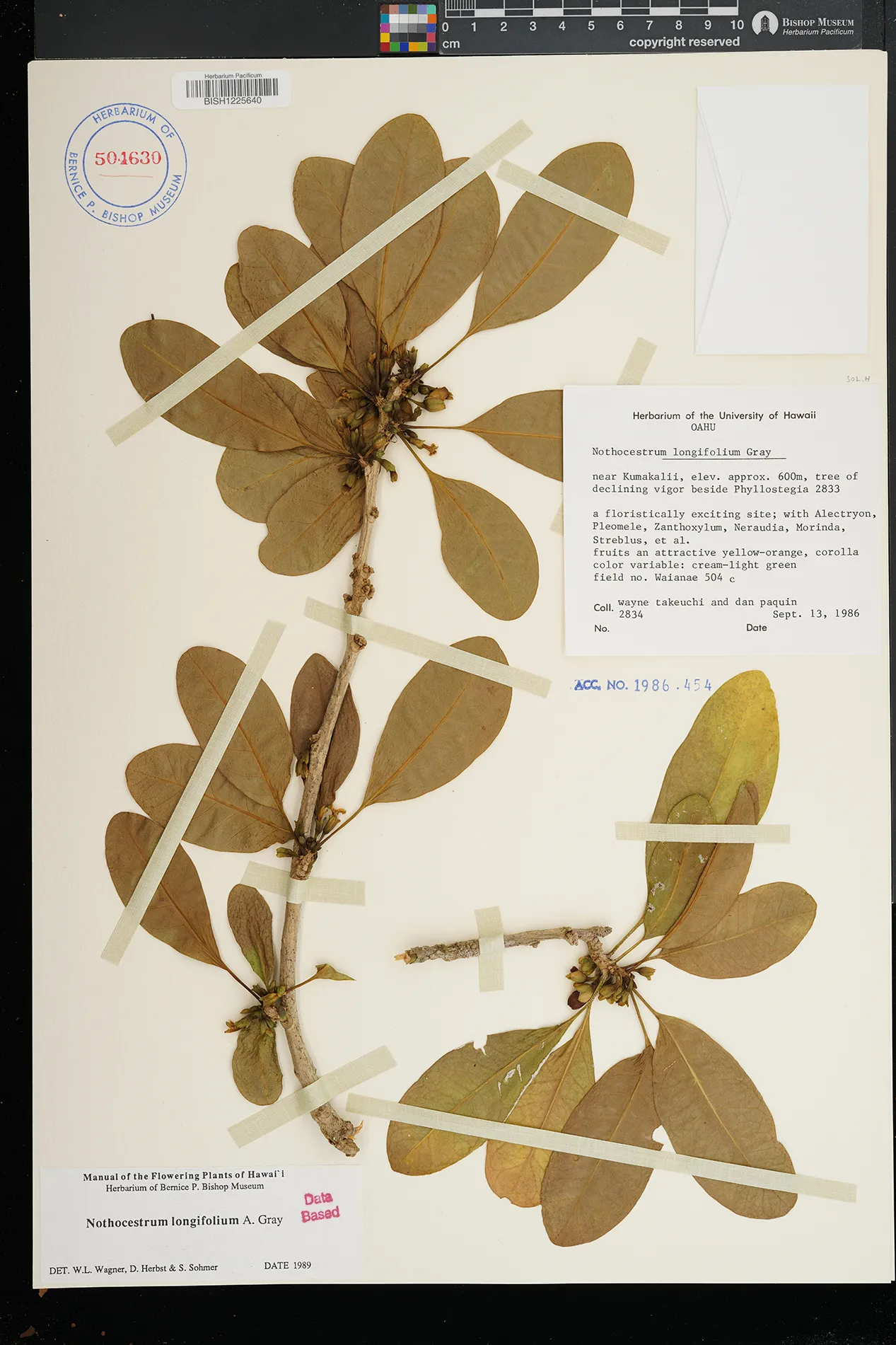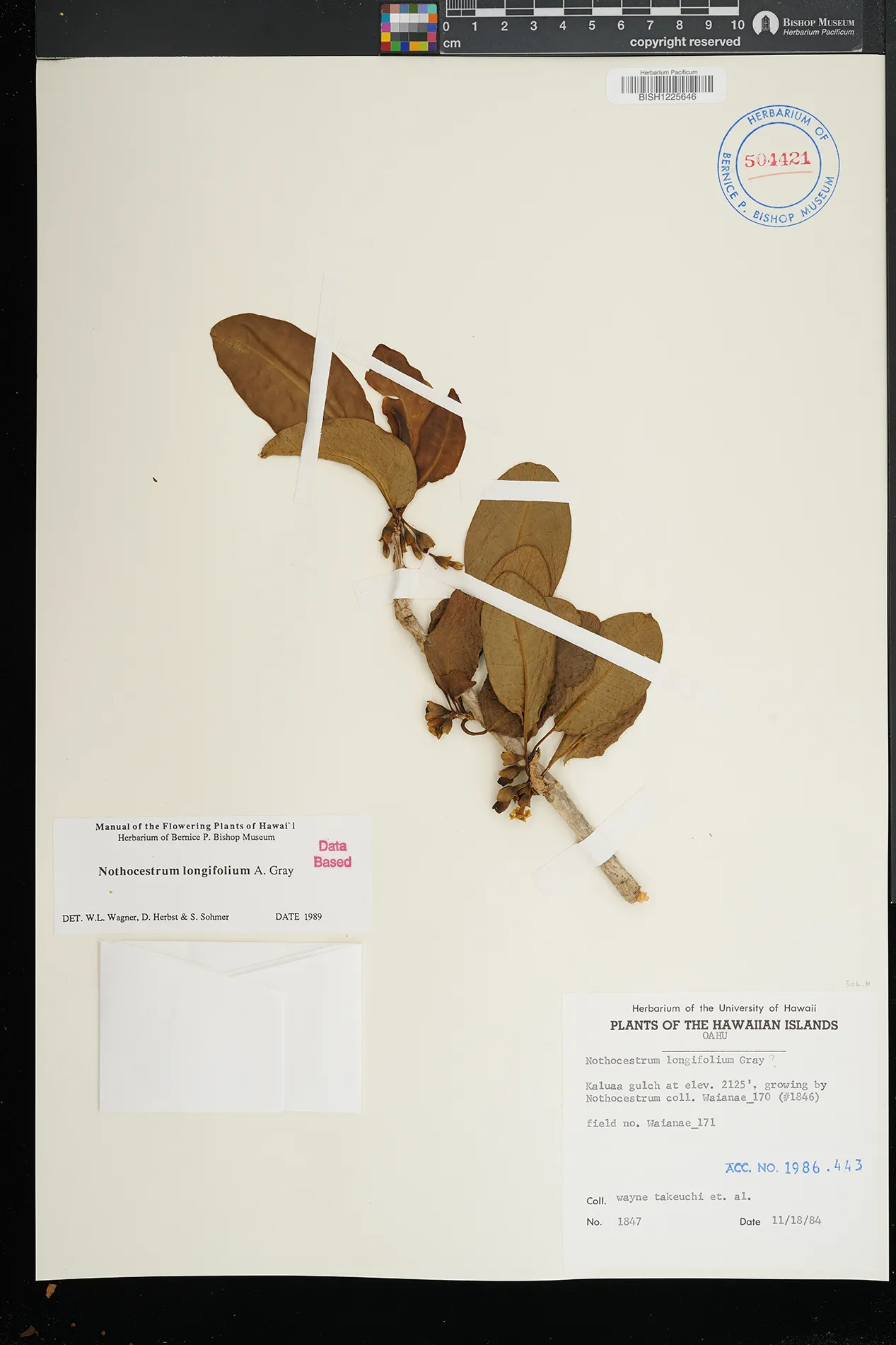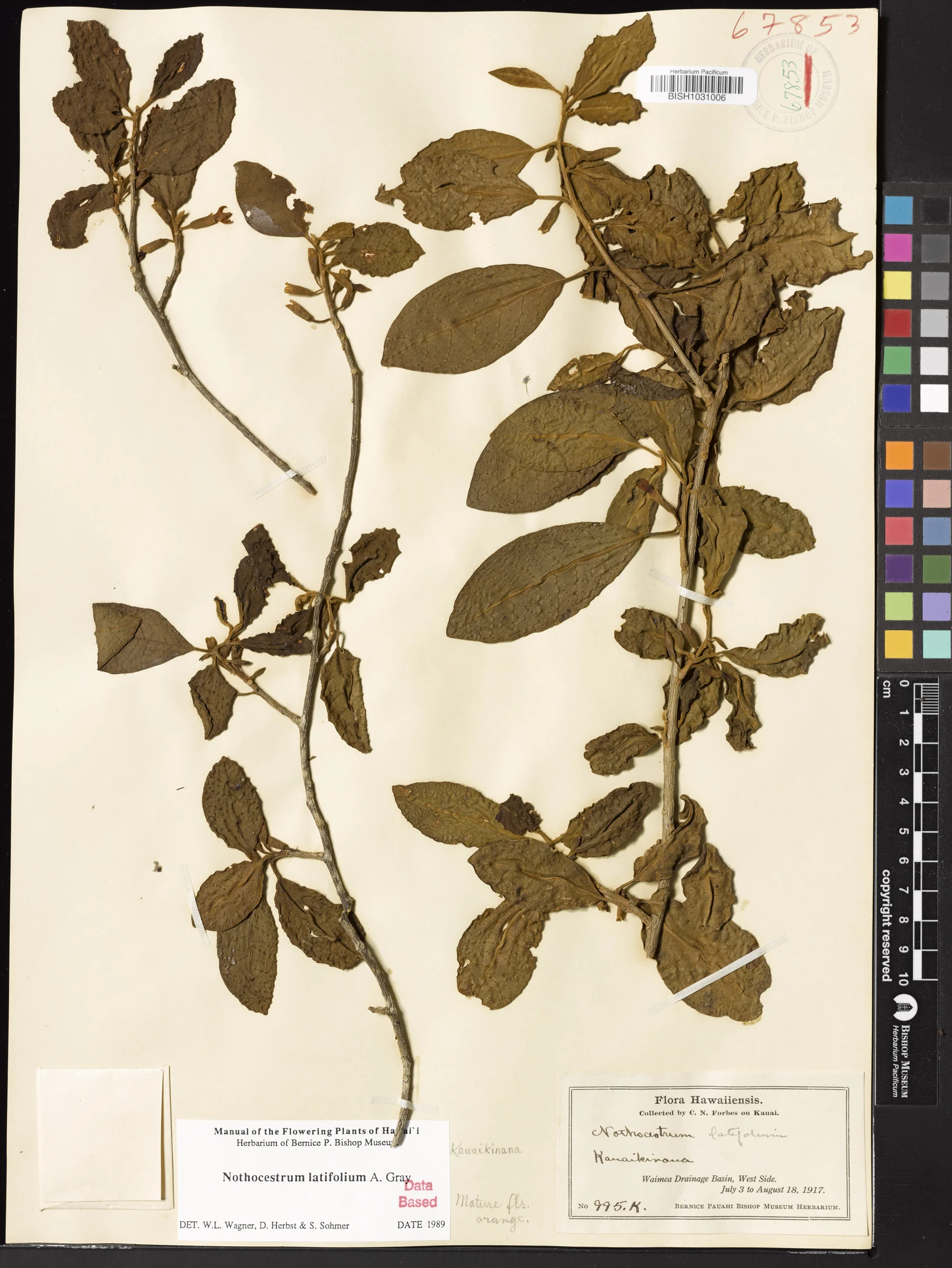 near Kumakalii, elev. approx 600 m, tree growing beside Nothocestrum 2834 |