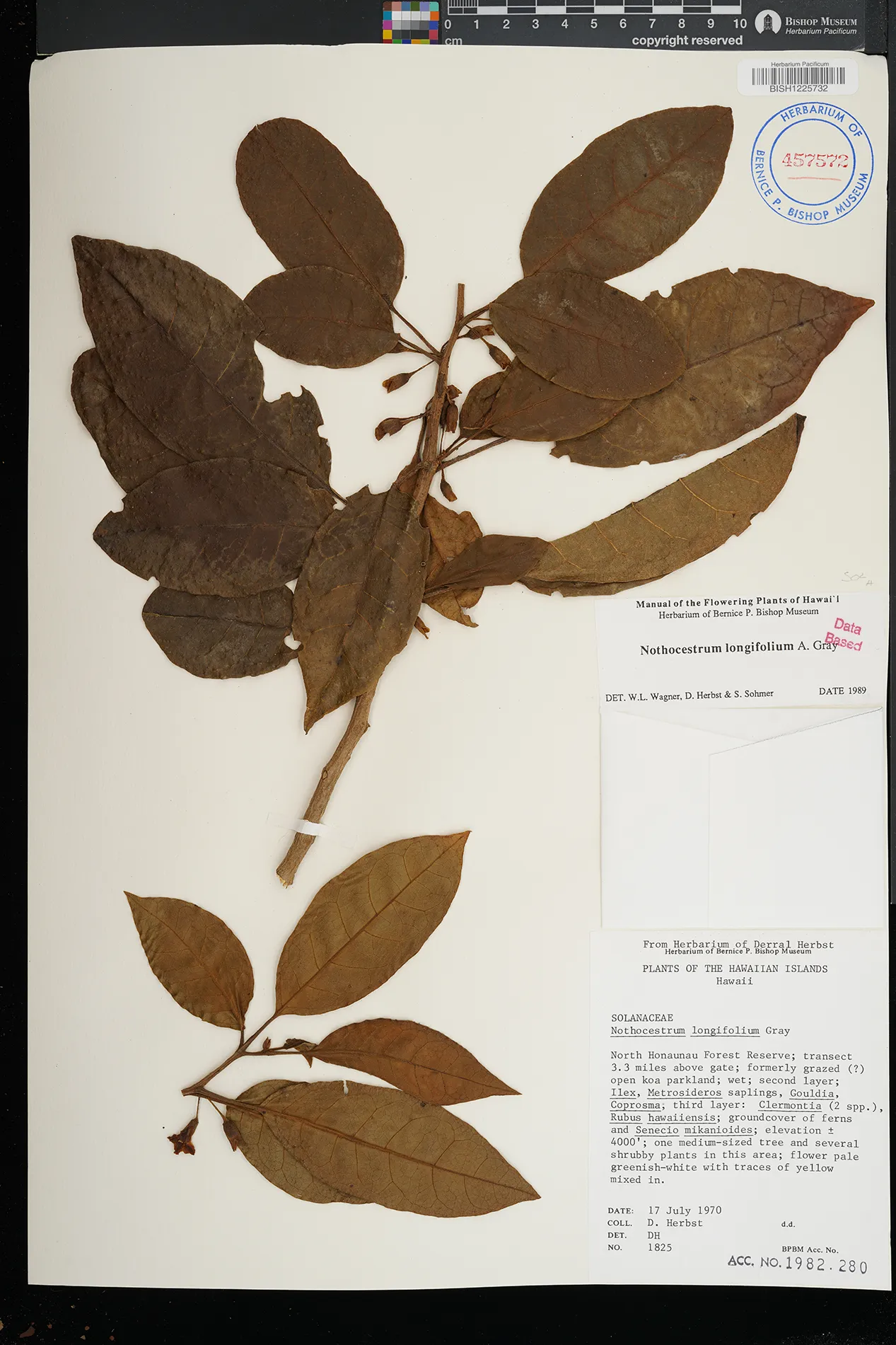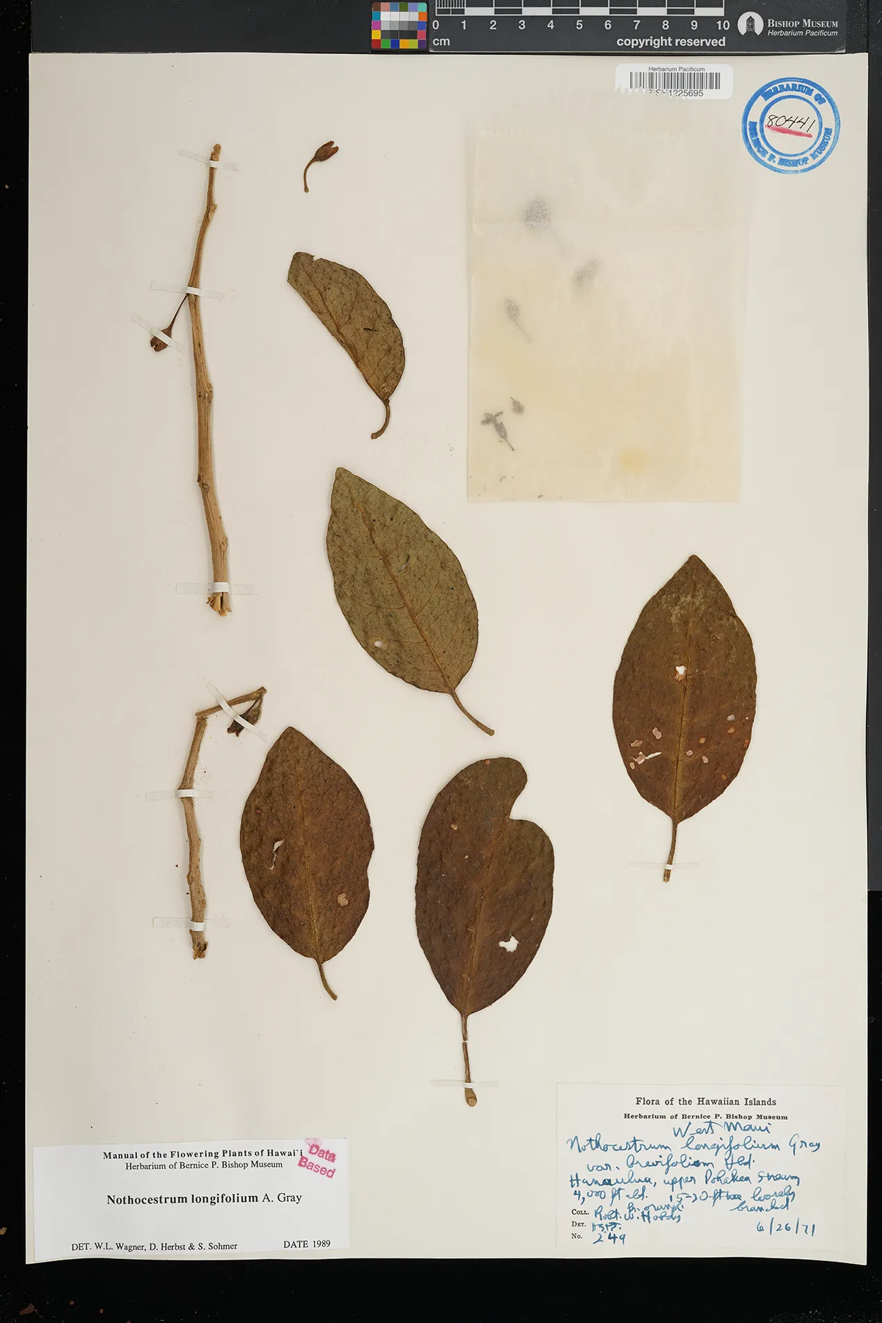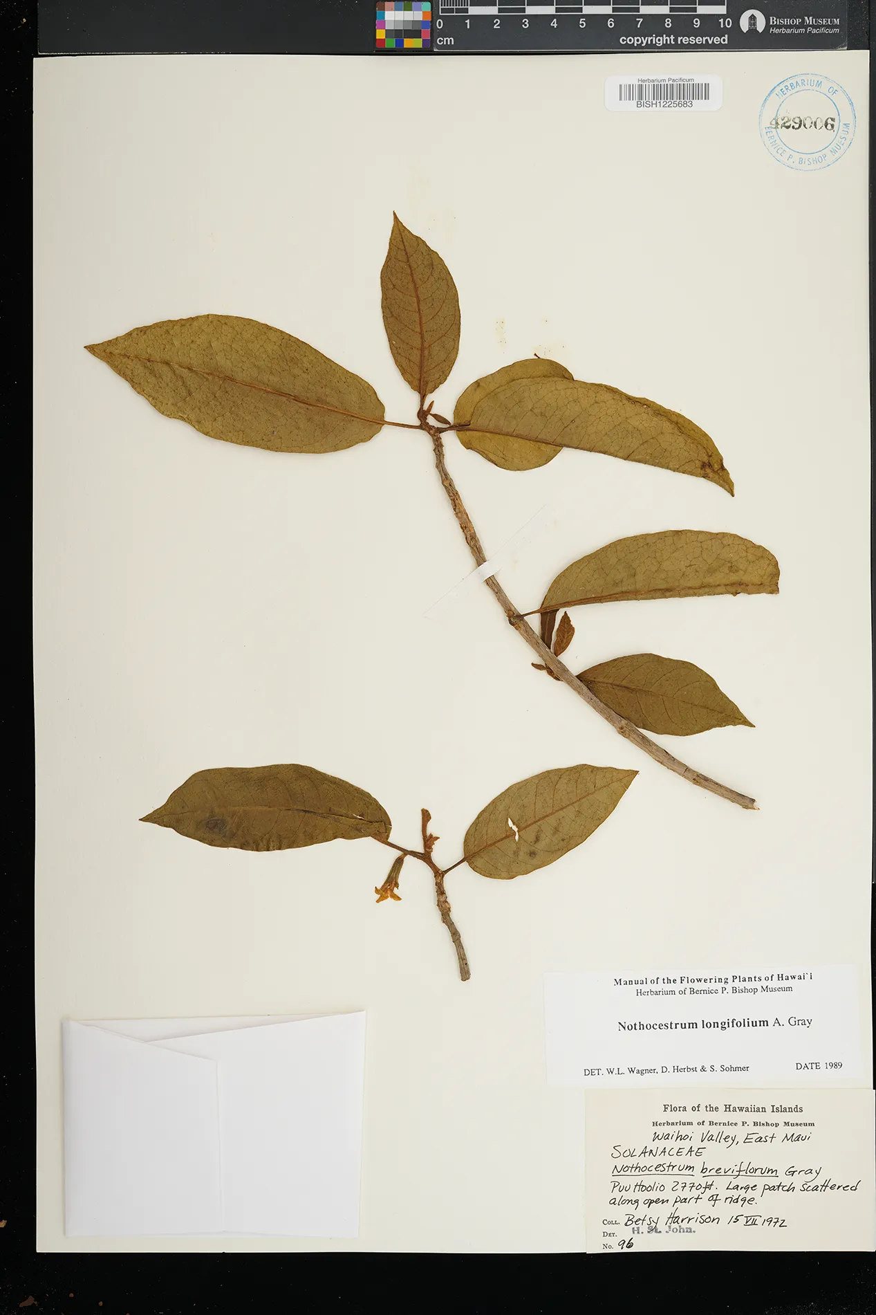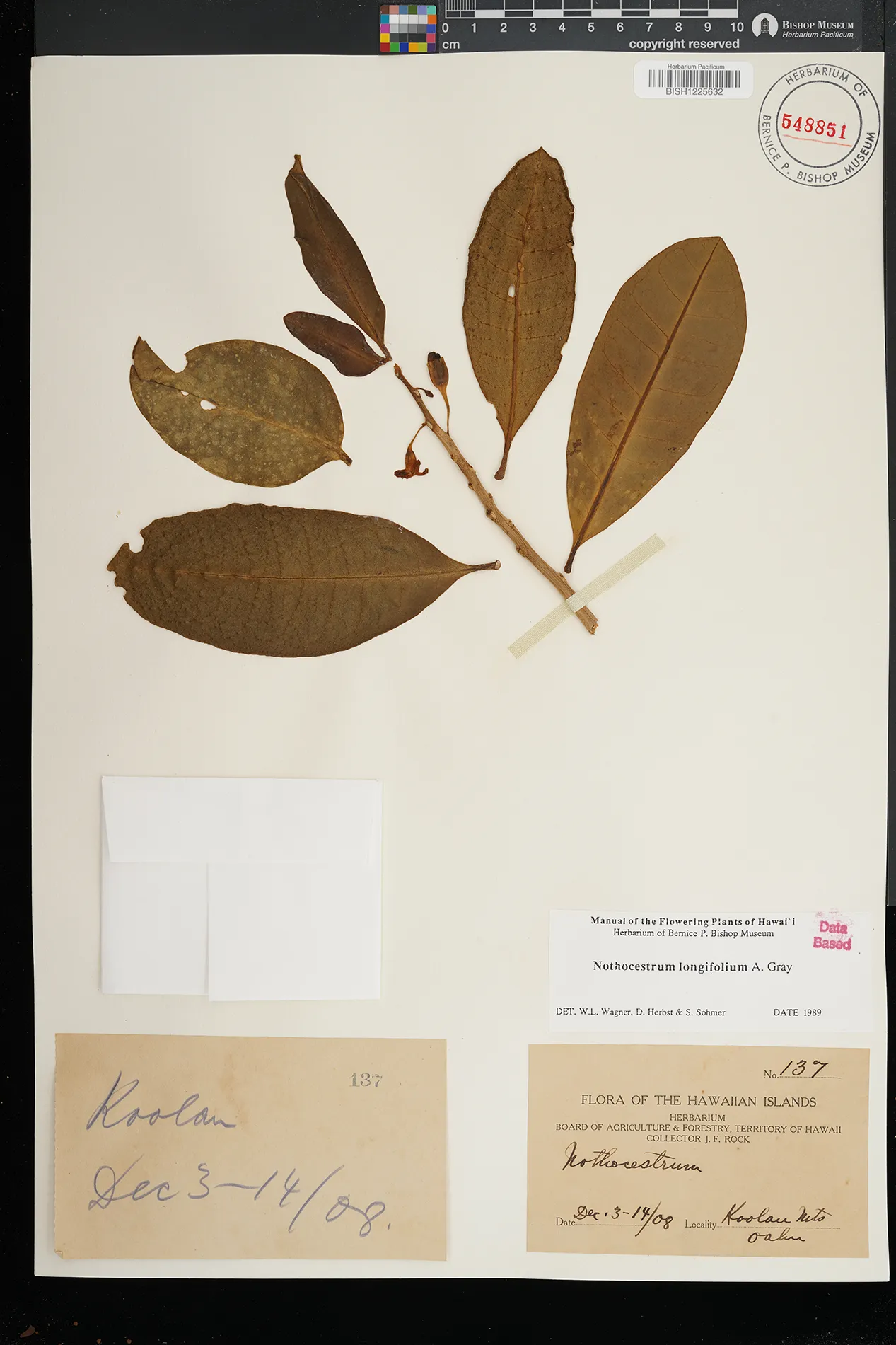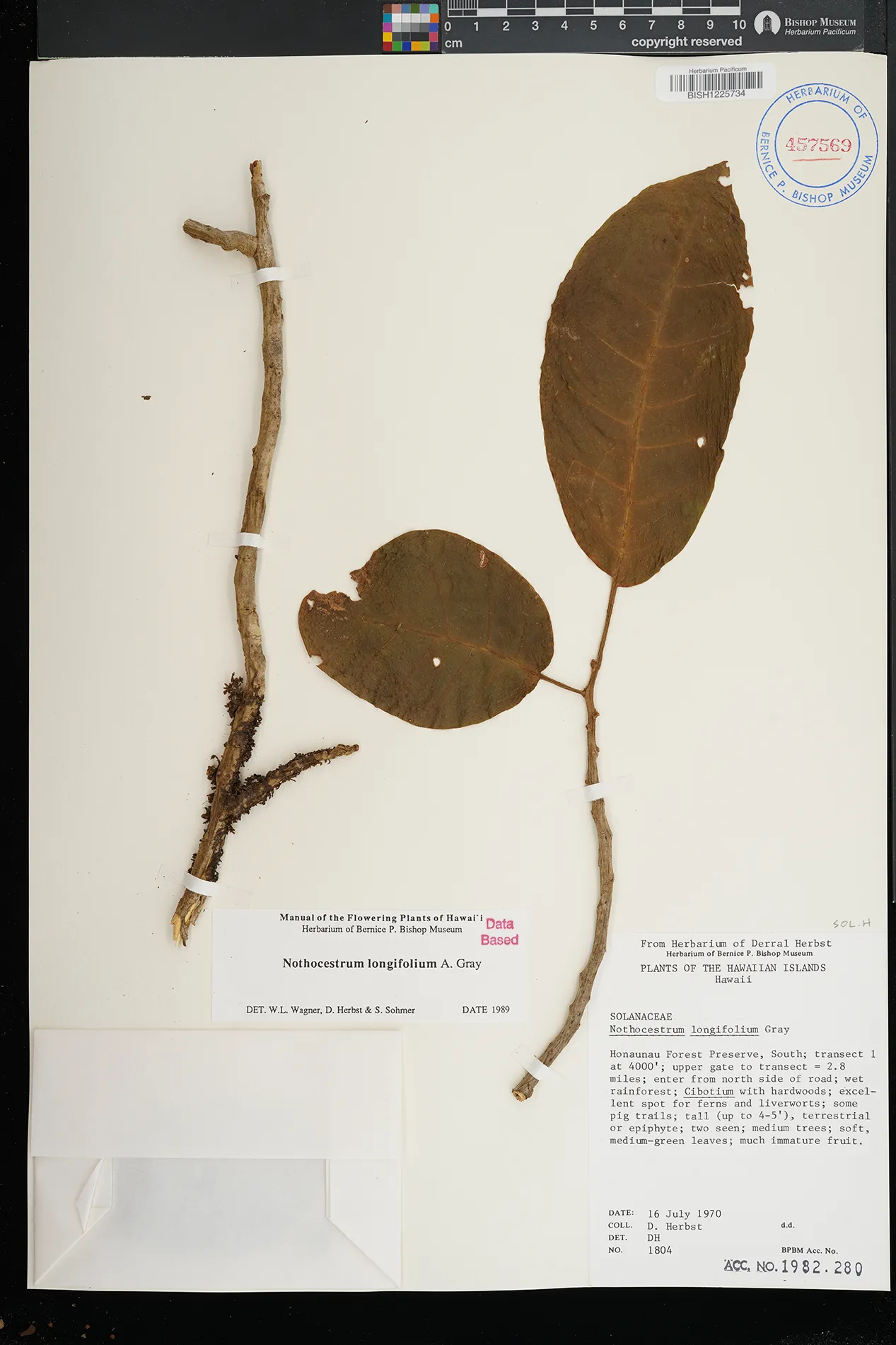 near Kumakalii, elev. approx 600 m, tree growing beside Nothocestrum 2834 |