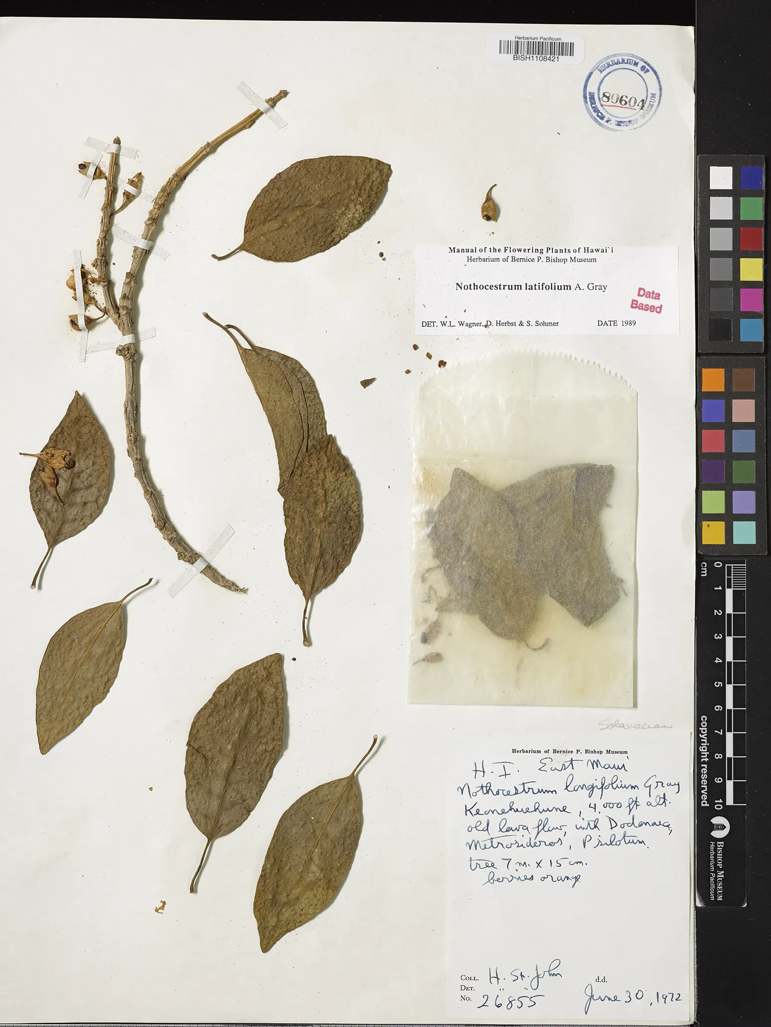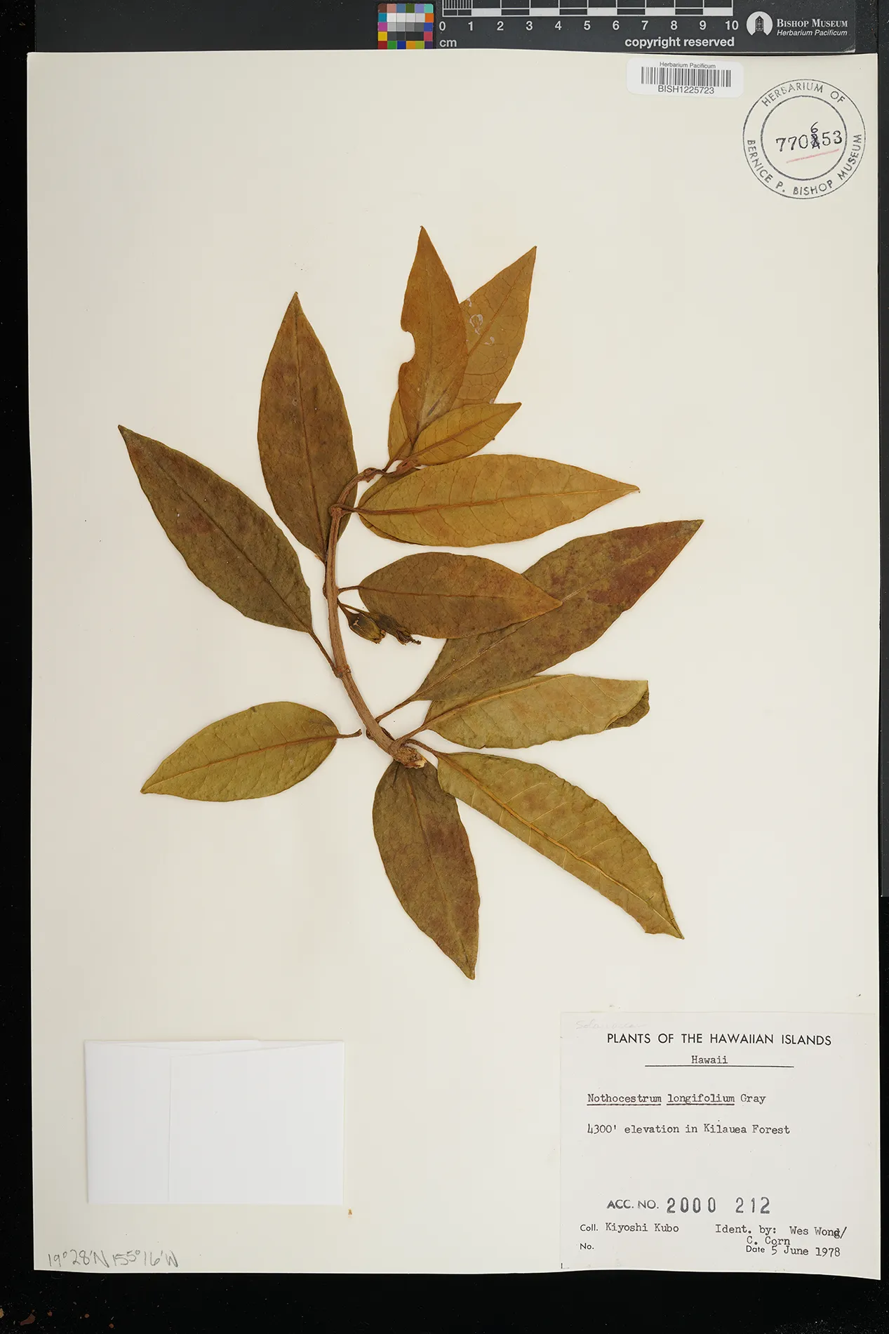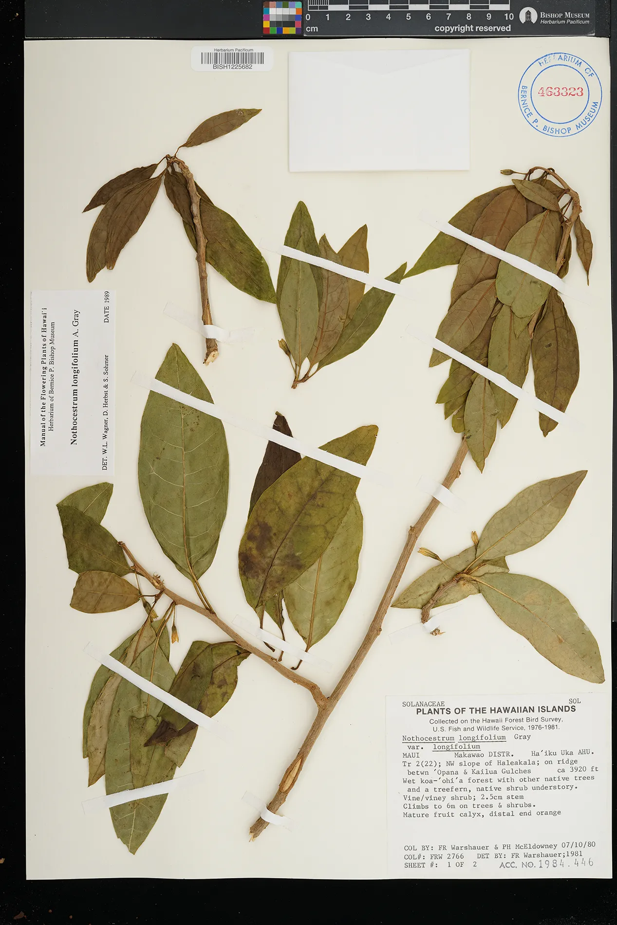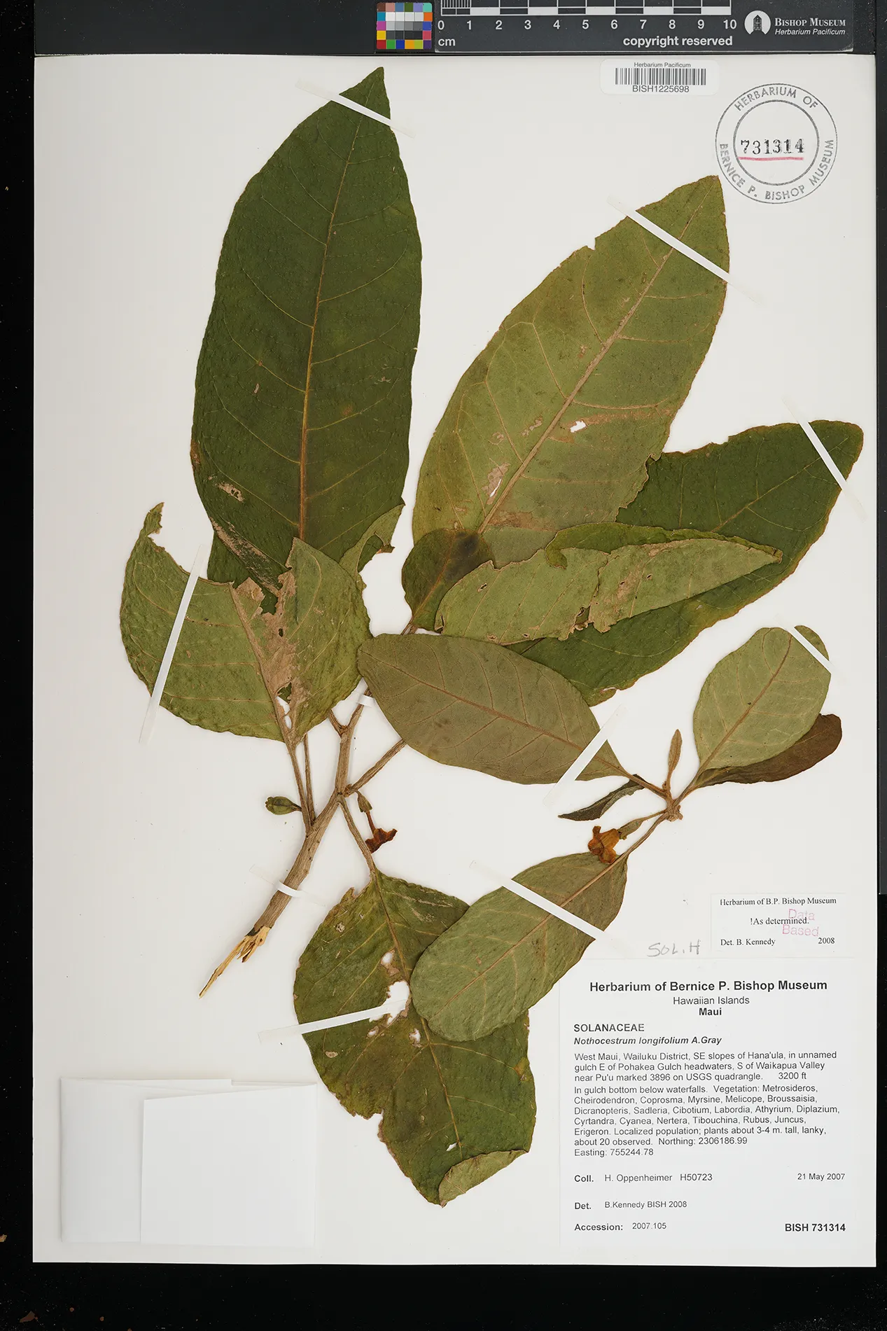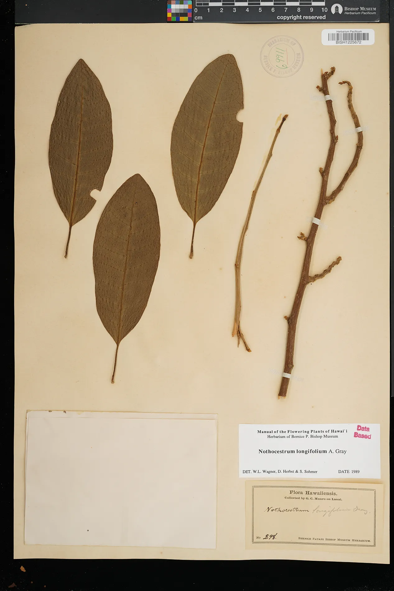 near Kumakalii, elev. approx 600 m, tree growing beside Nothocestrum 2834 |