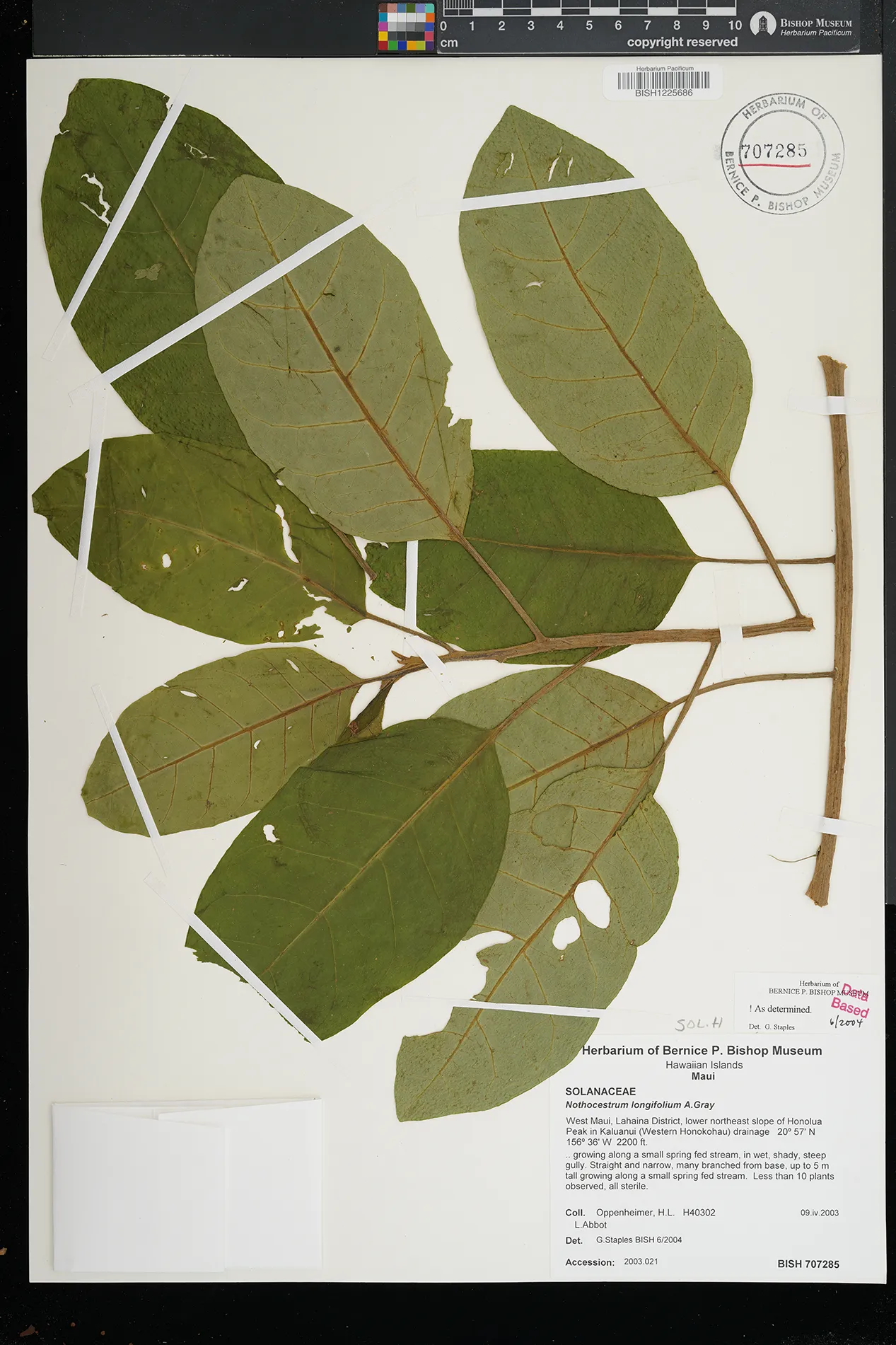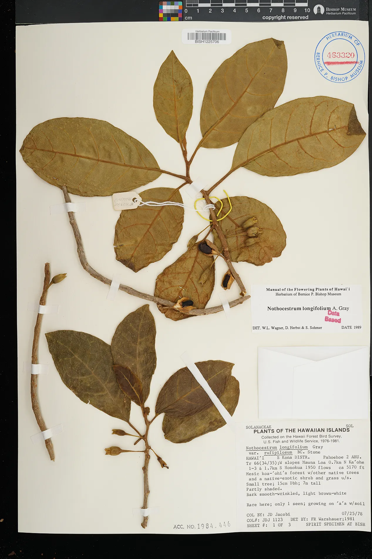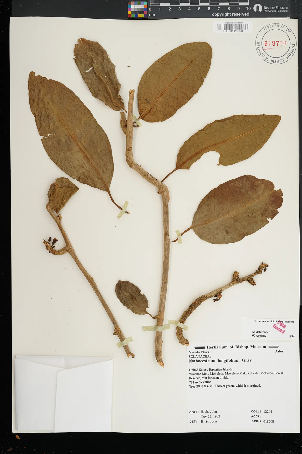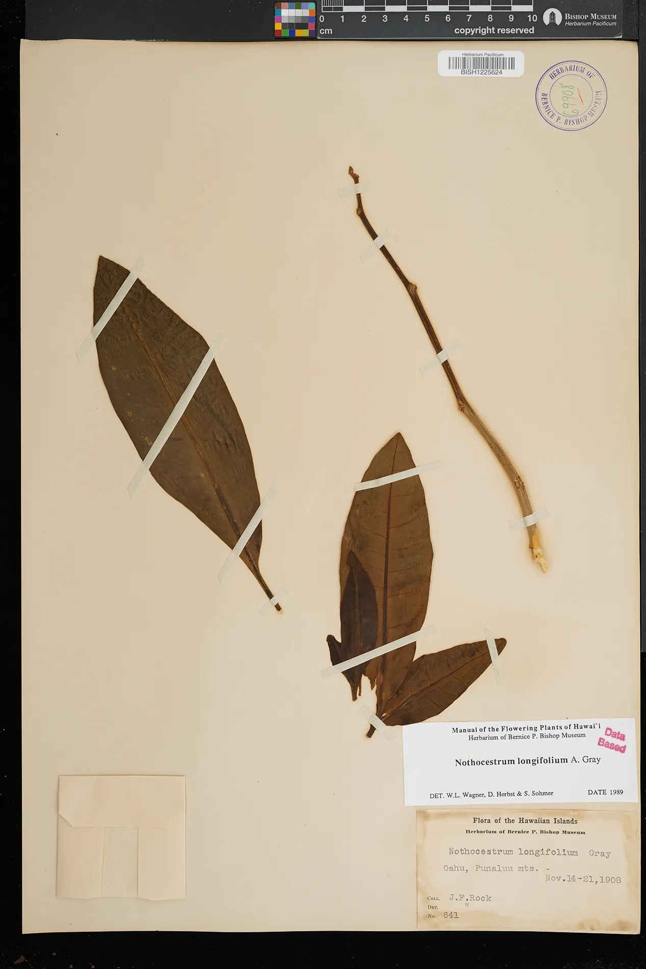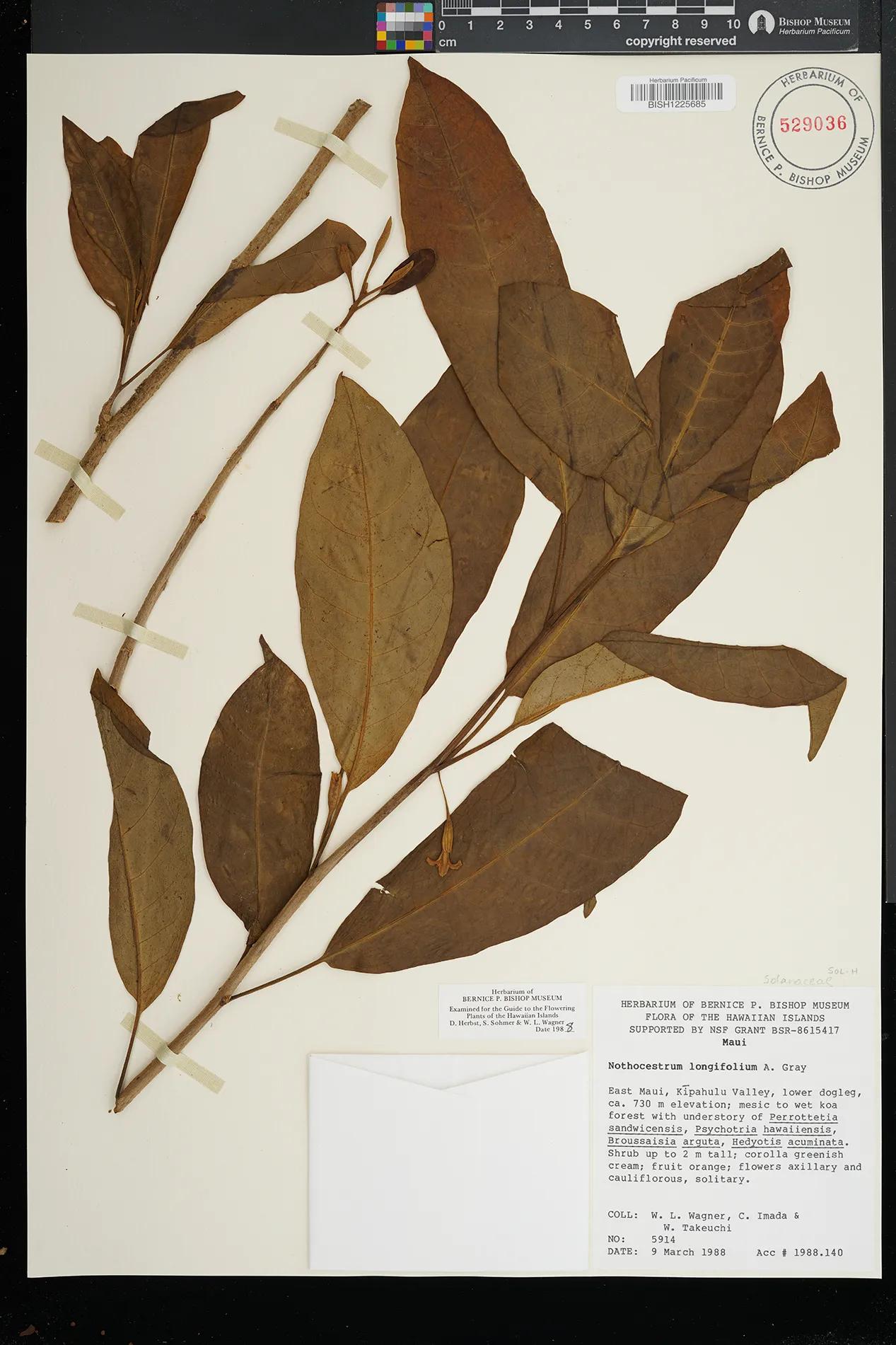 near Kumakalii, elev. approx 600 m, tree growing beside Nothocestrum 2834 |