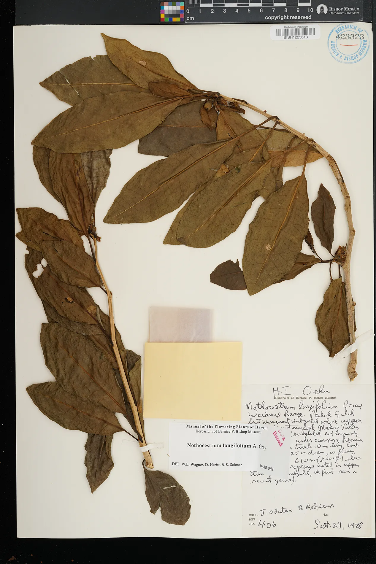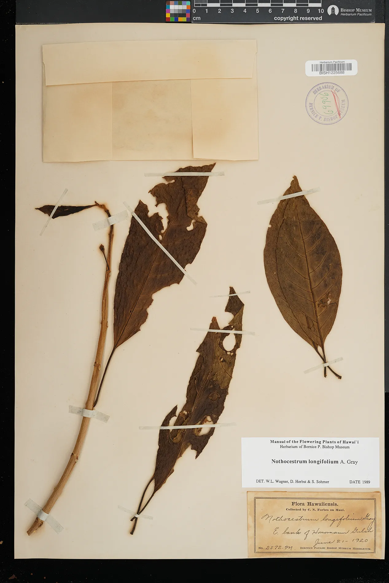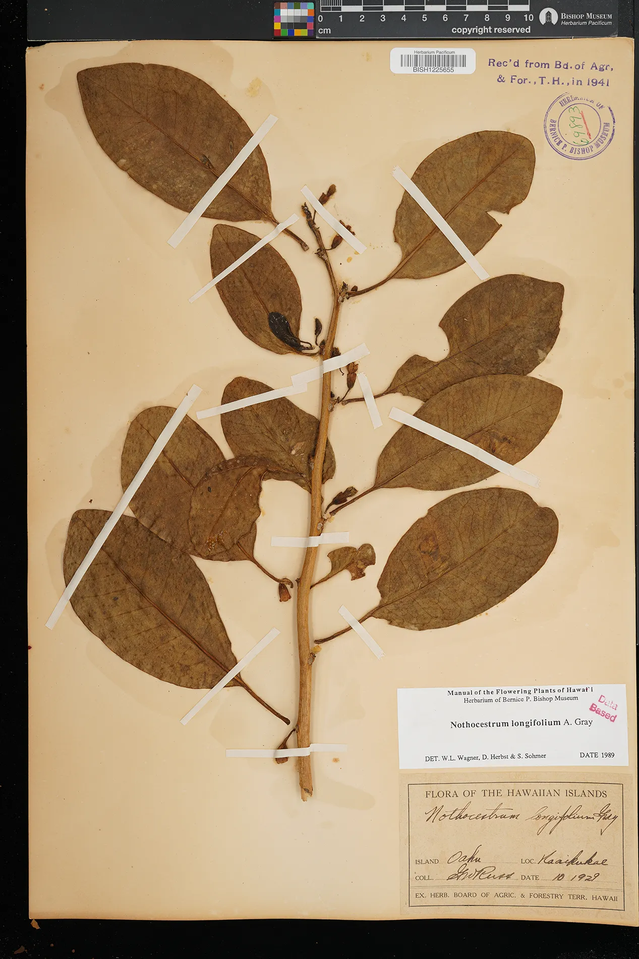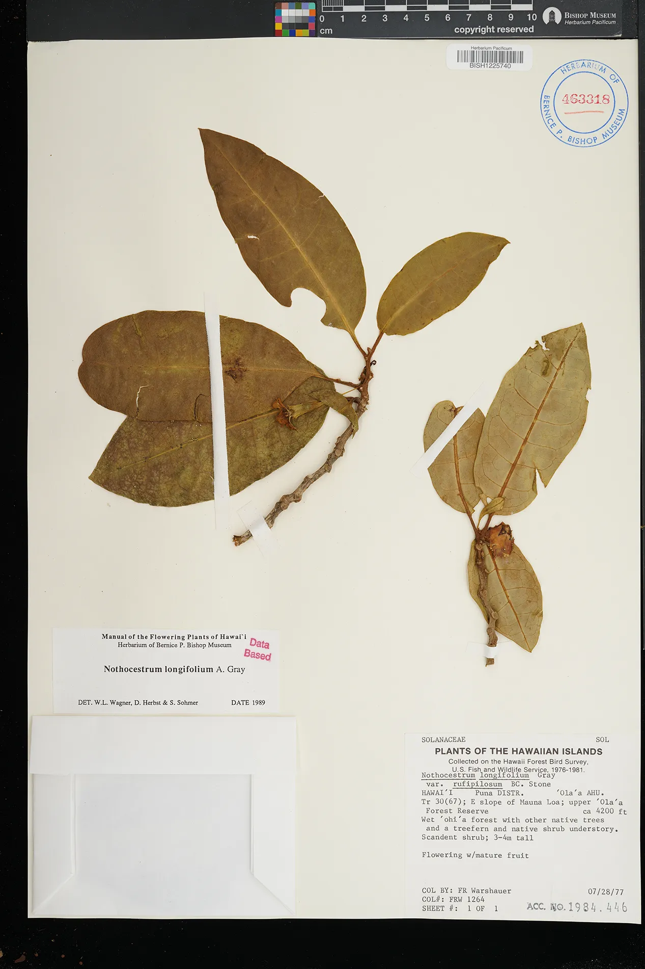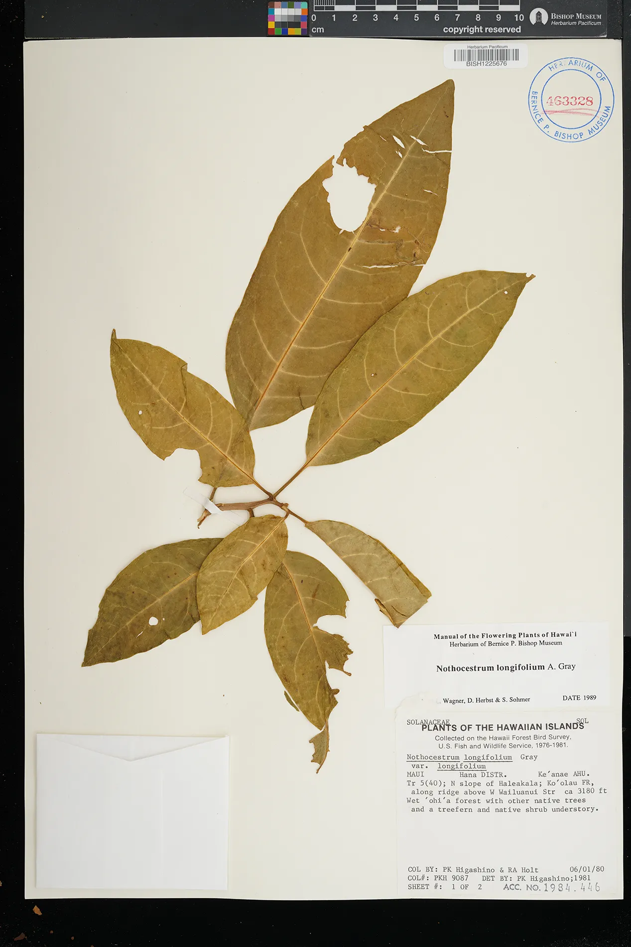 near Kumakalii, elev. approx 600 m, tree growing beside Nothocestrum 2834 |