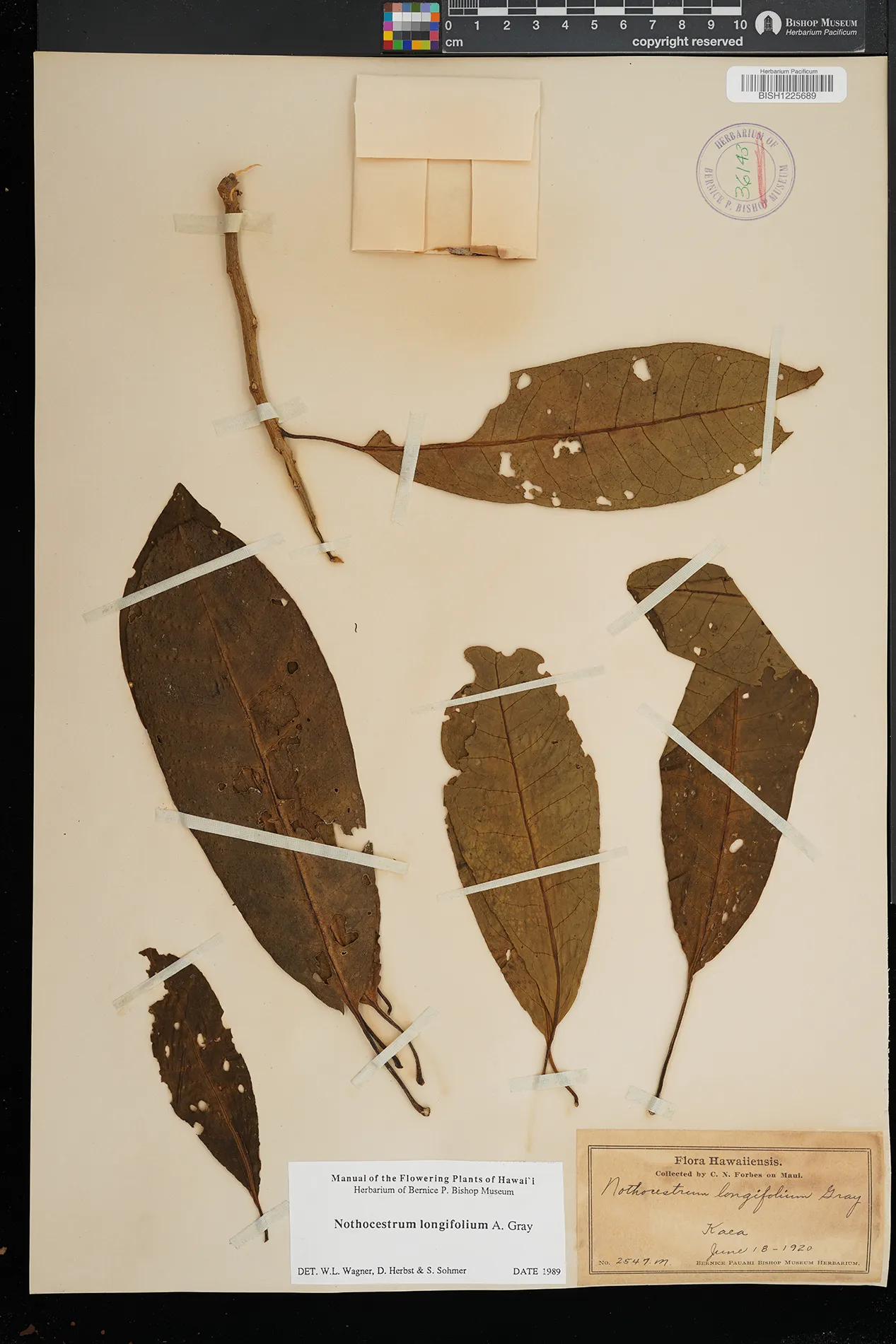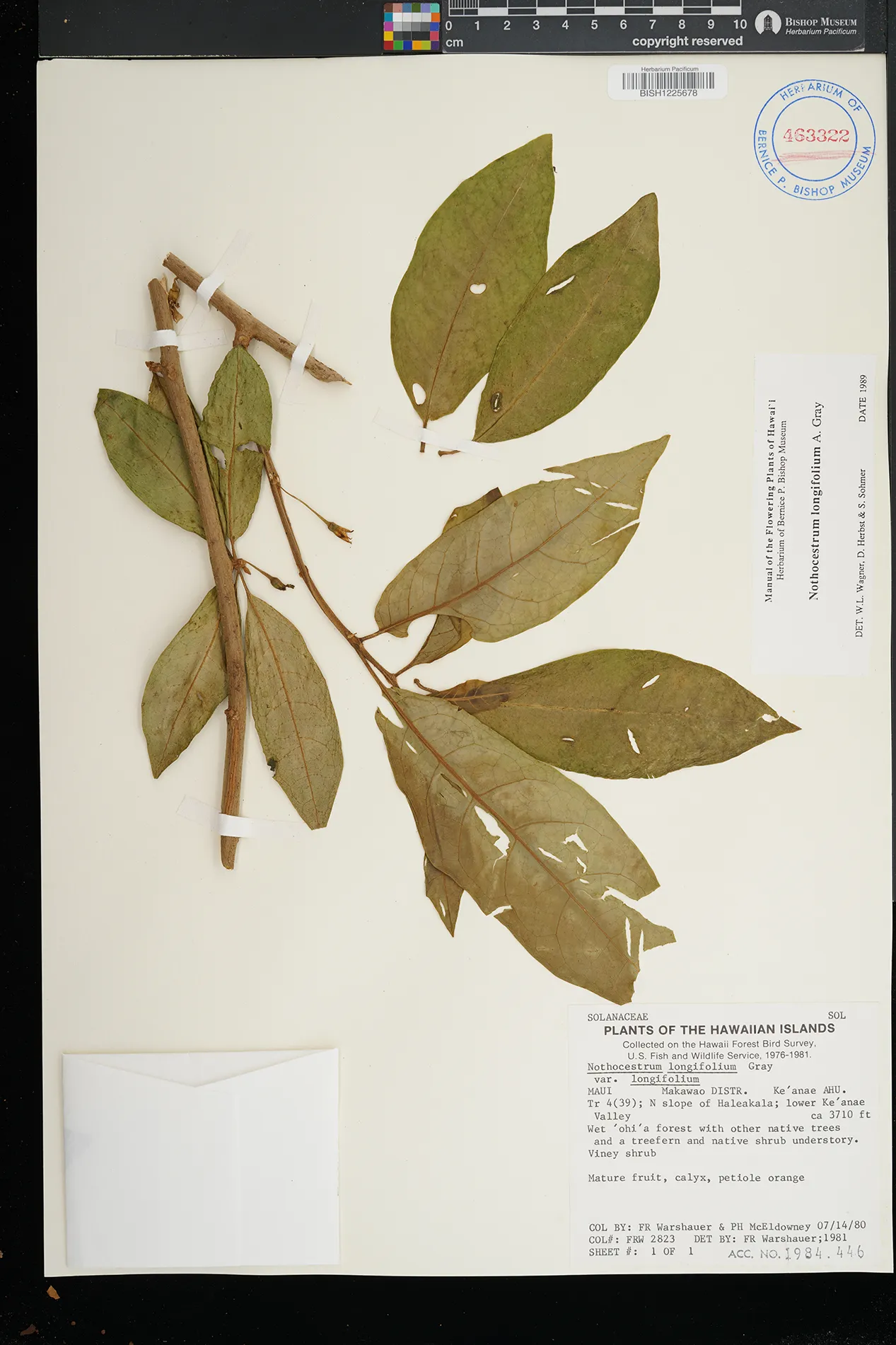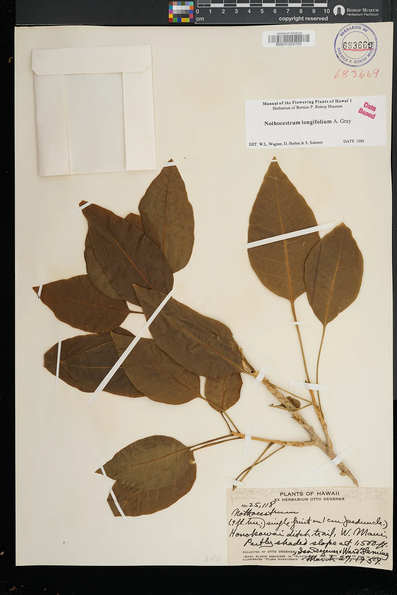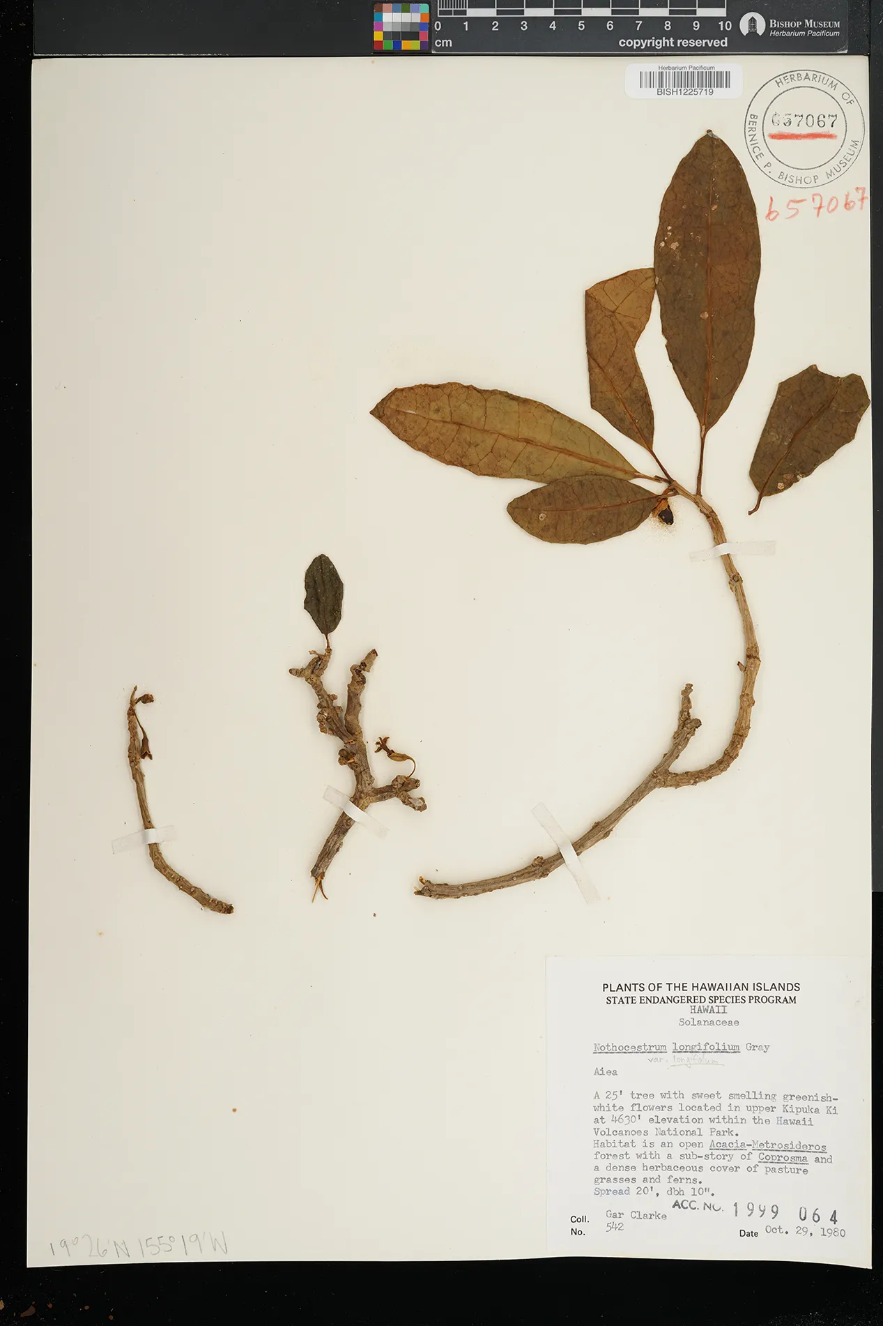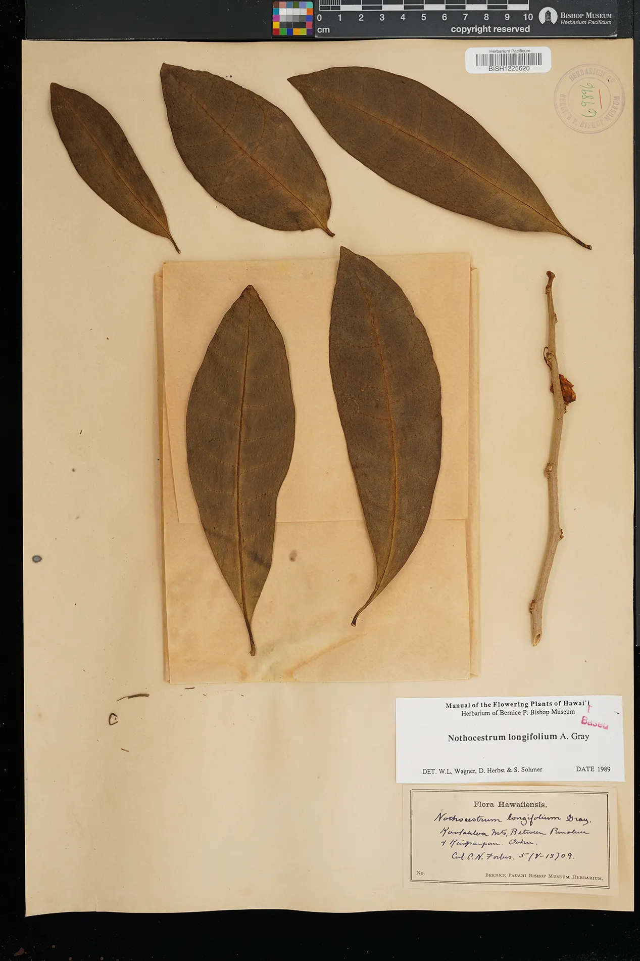 near Kumakalii, elev. approx 600 m, tree growing beside Nothocestrum 2834 |