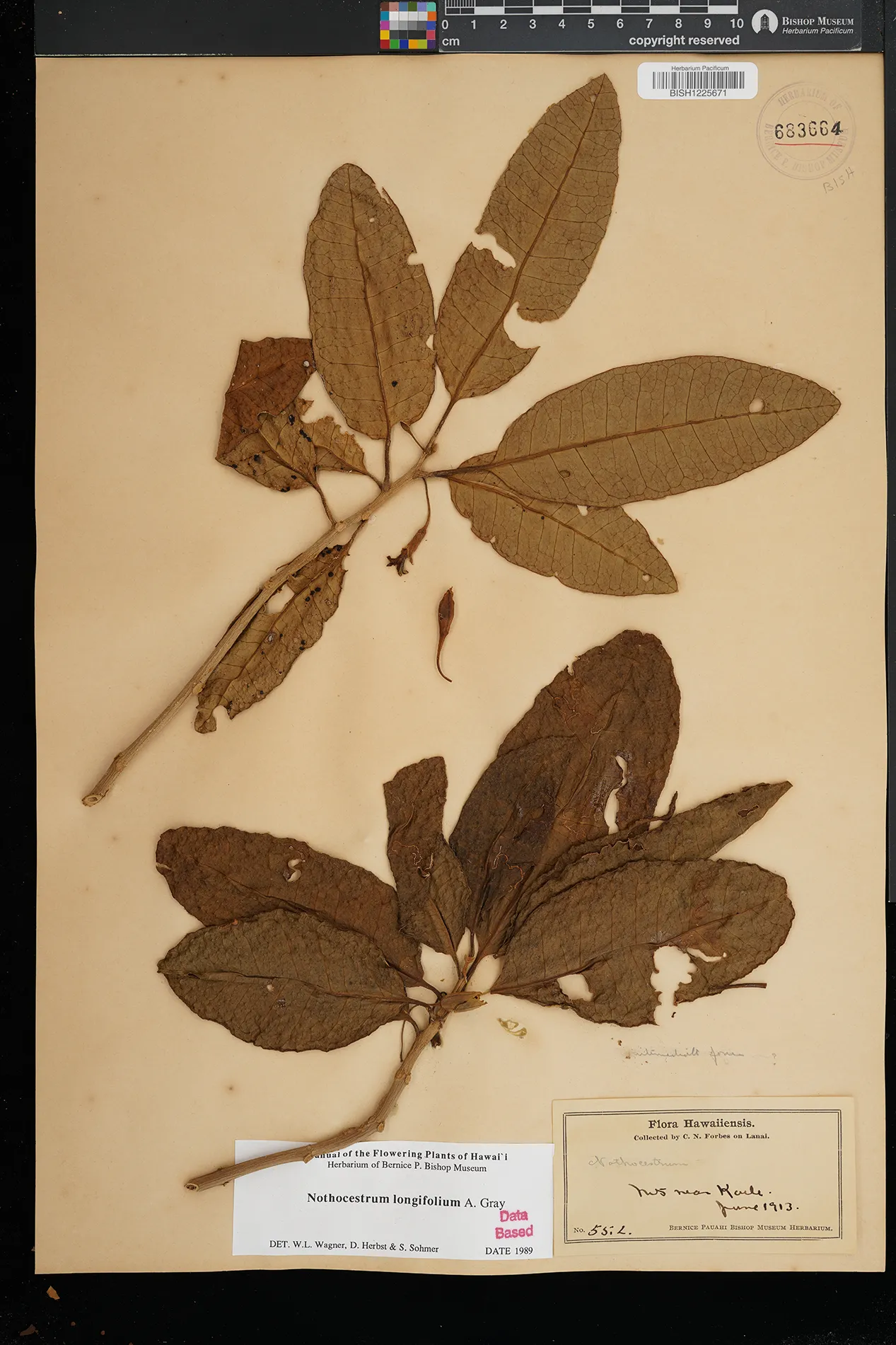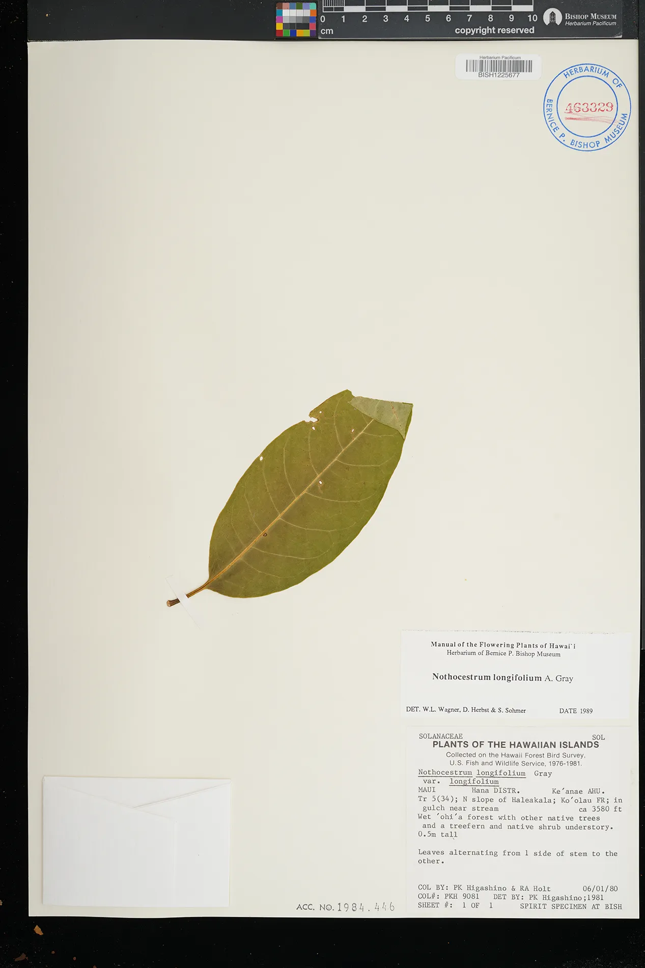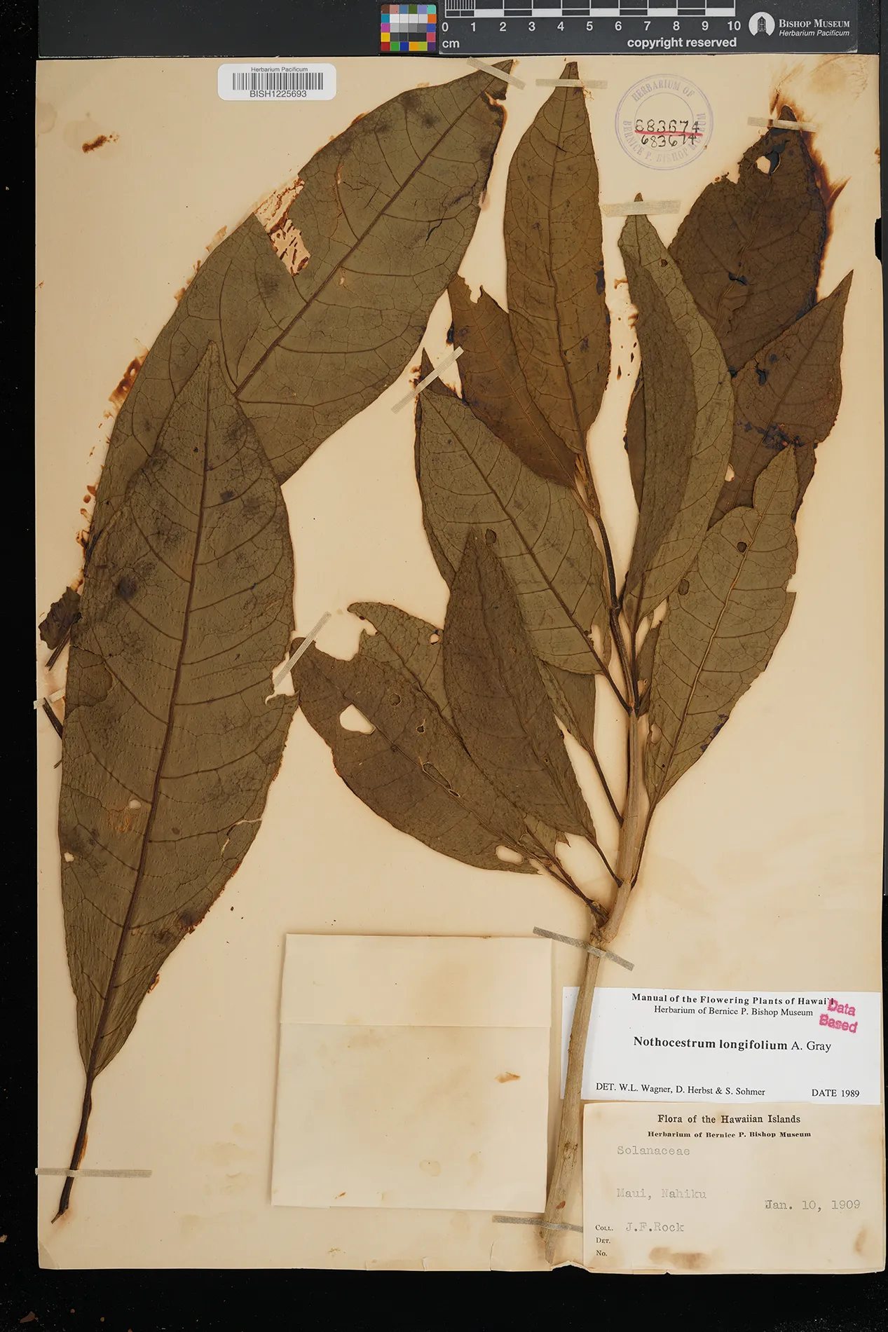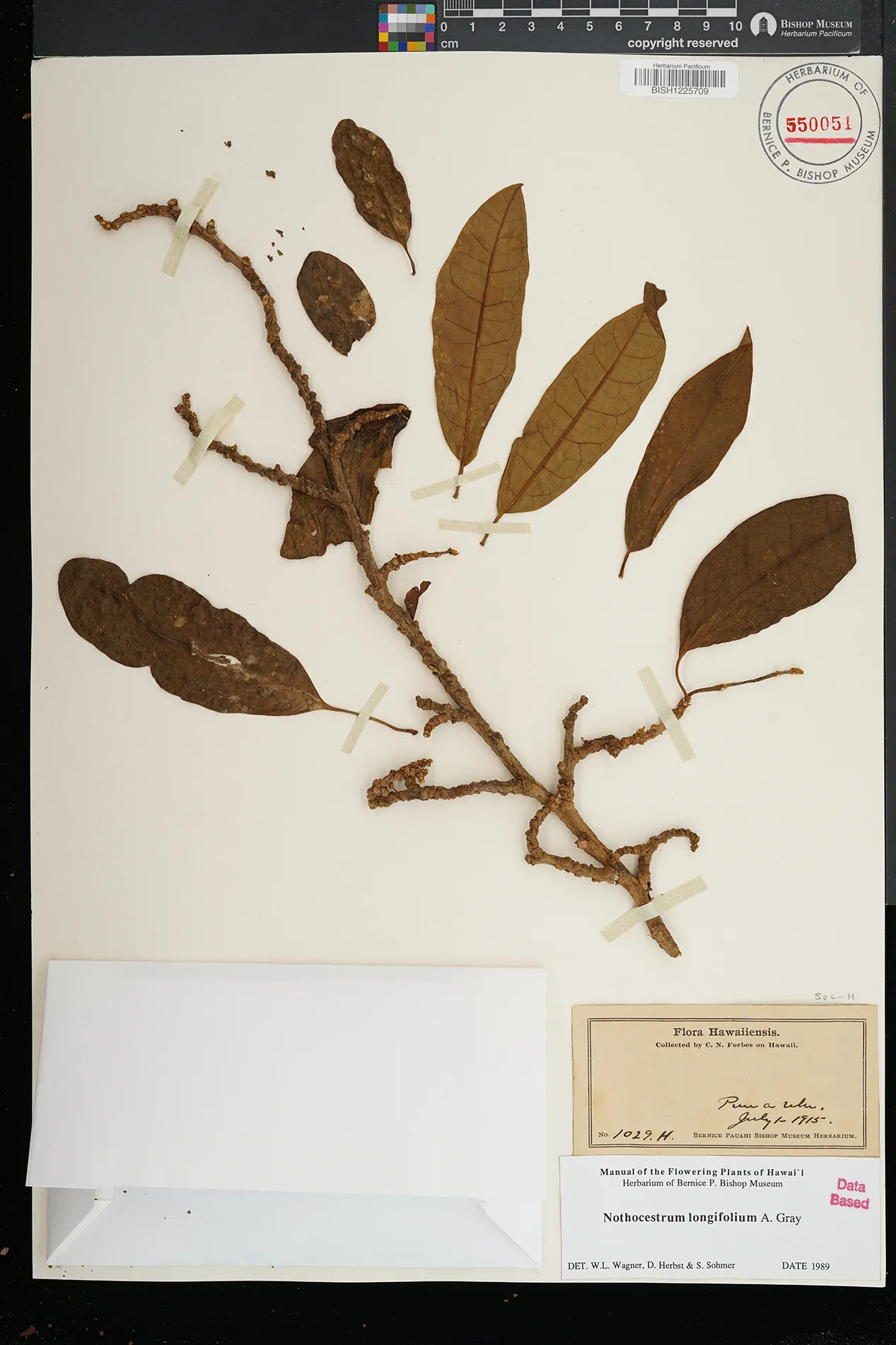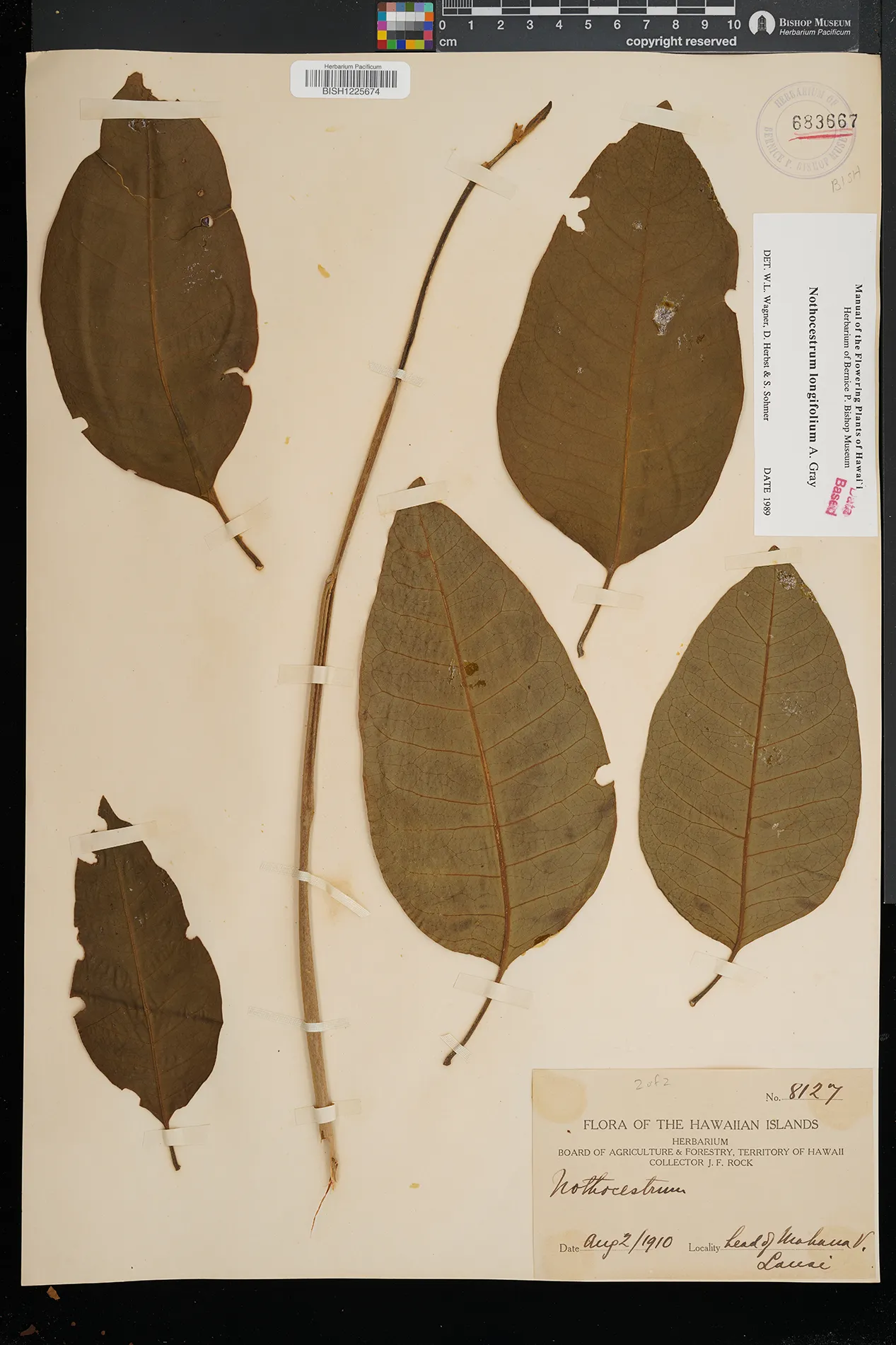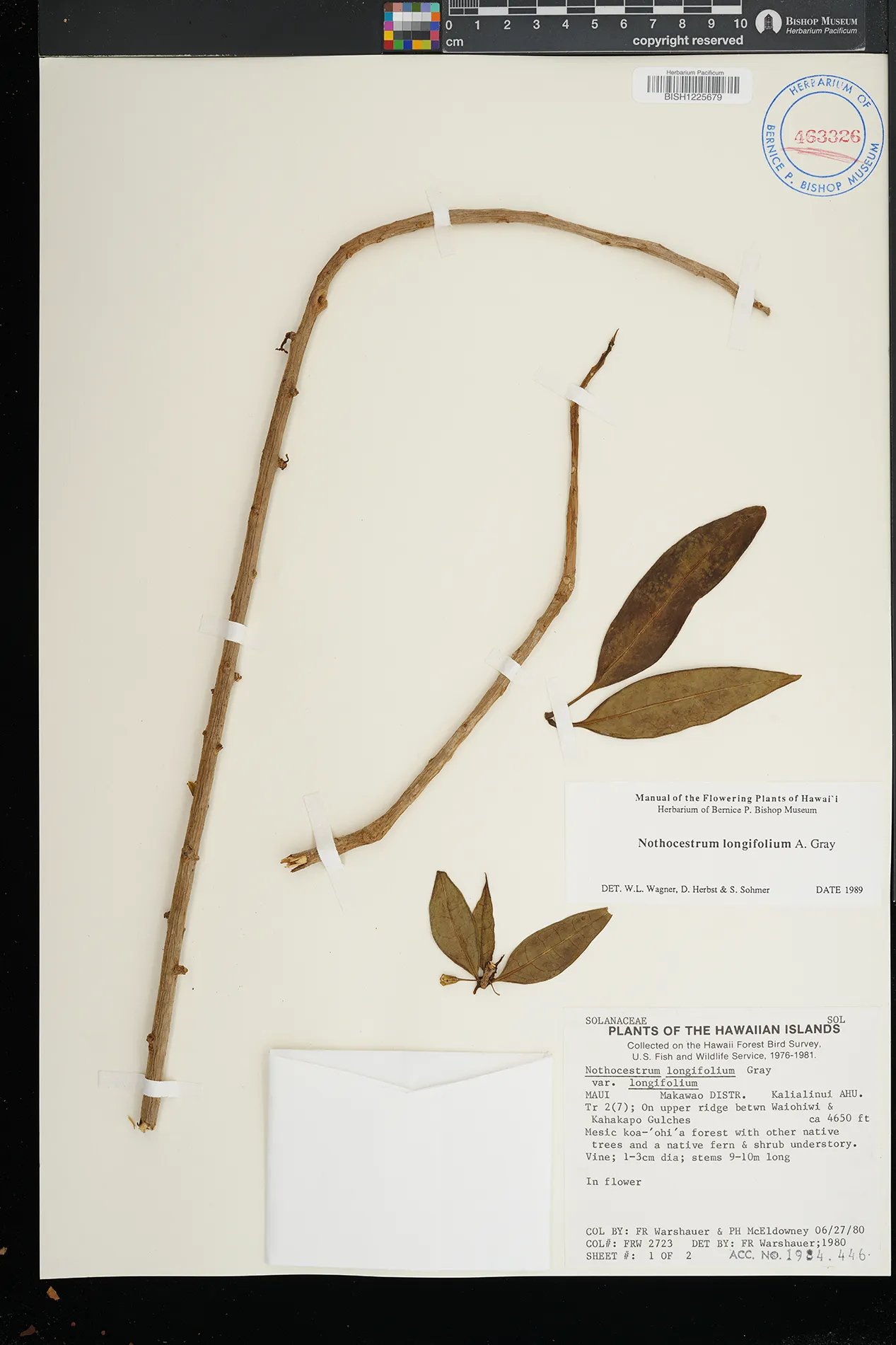 near Kumakalii, elev. approx 600 m, tree growing beside Nothocestrum 2834 |