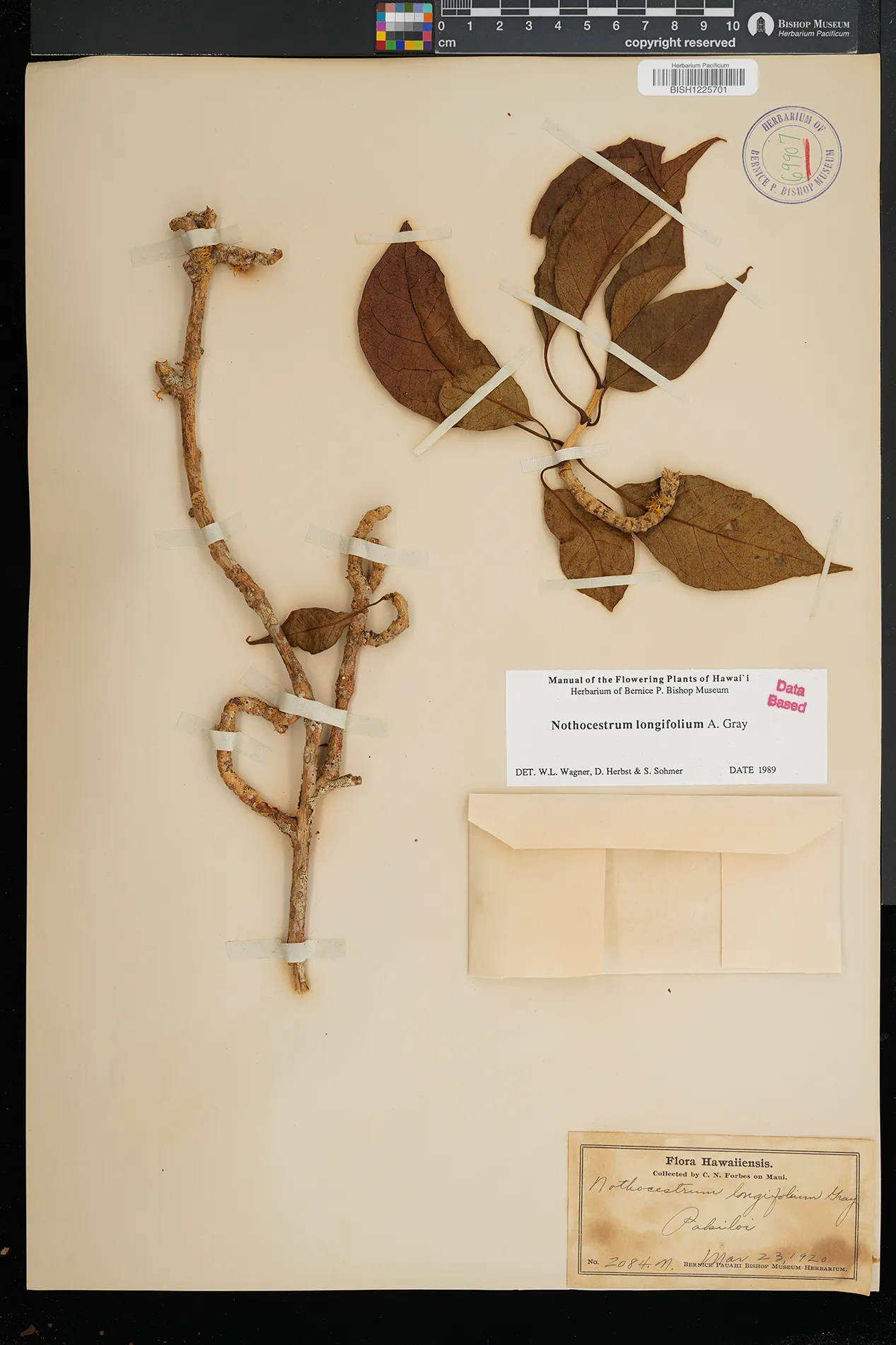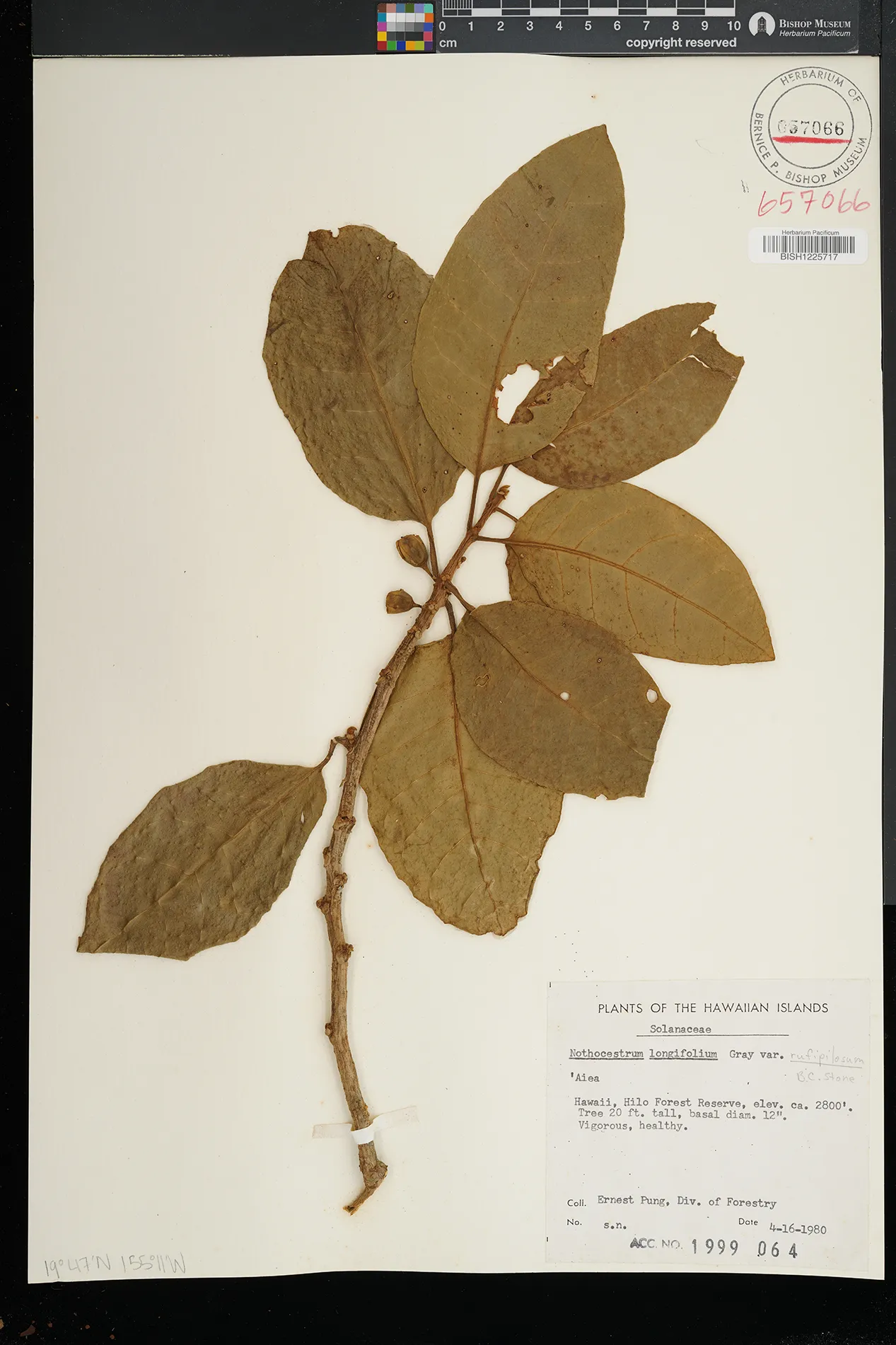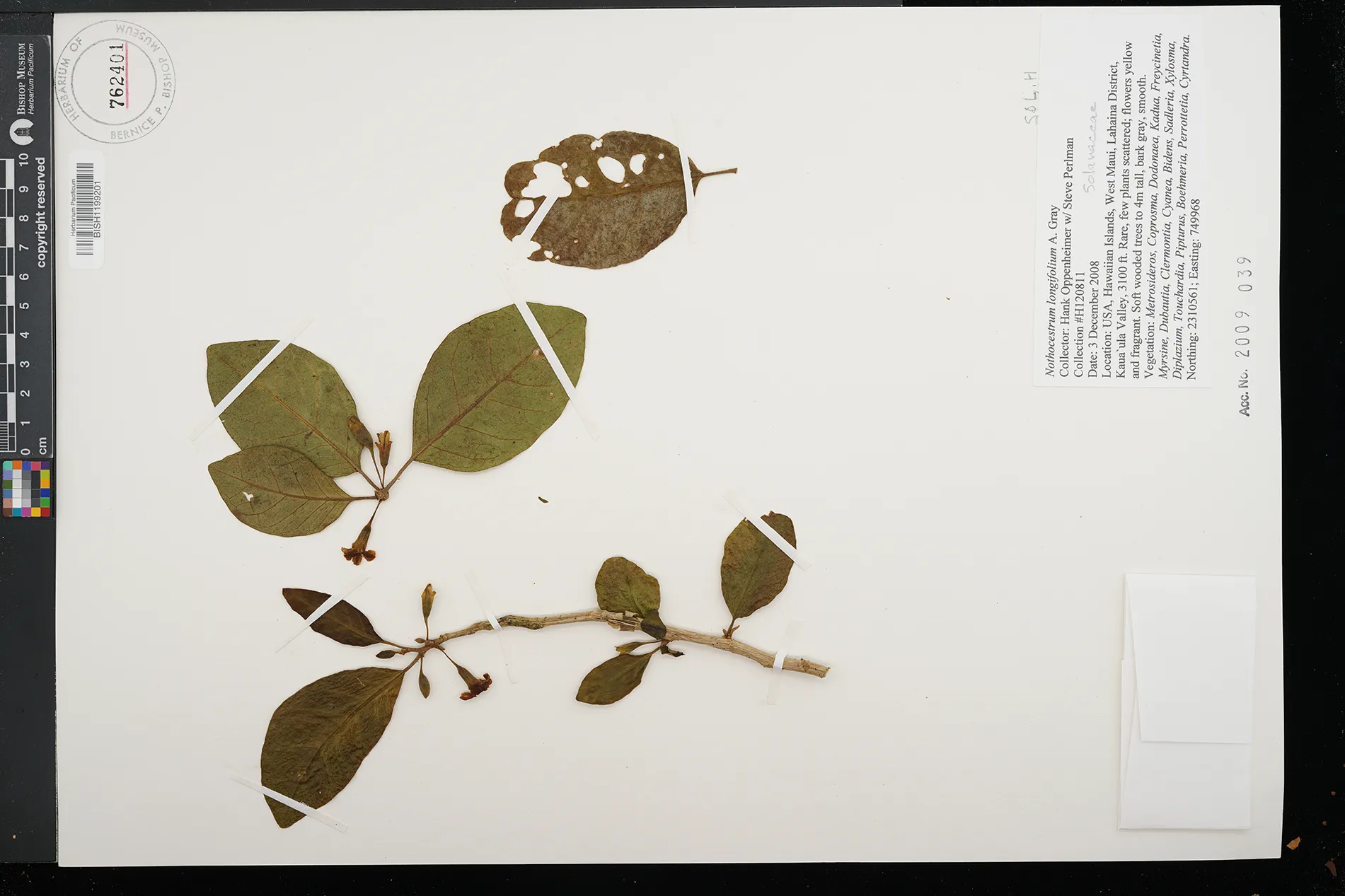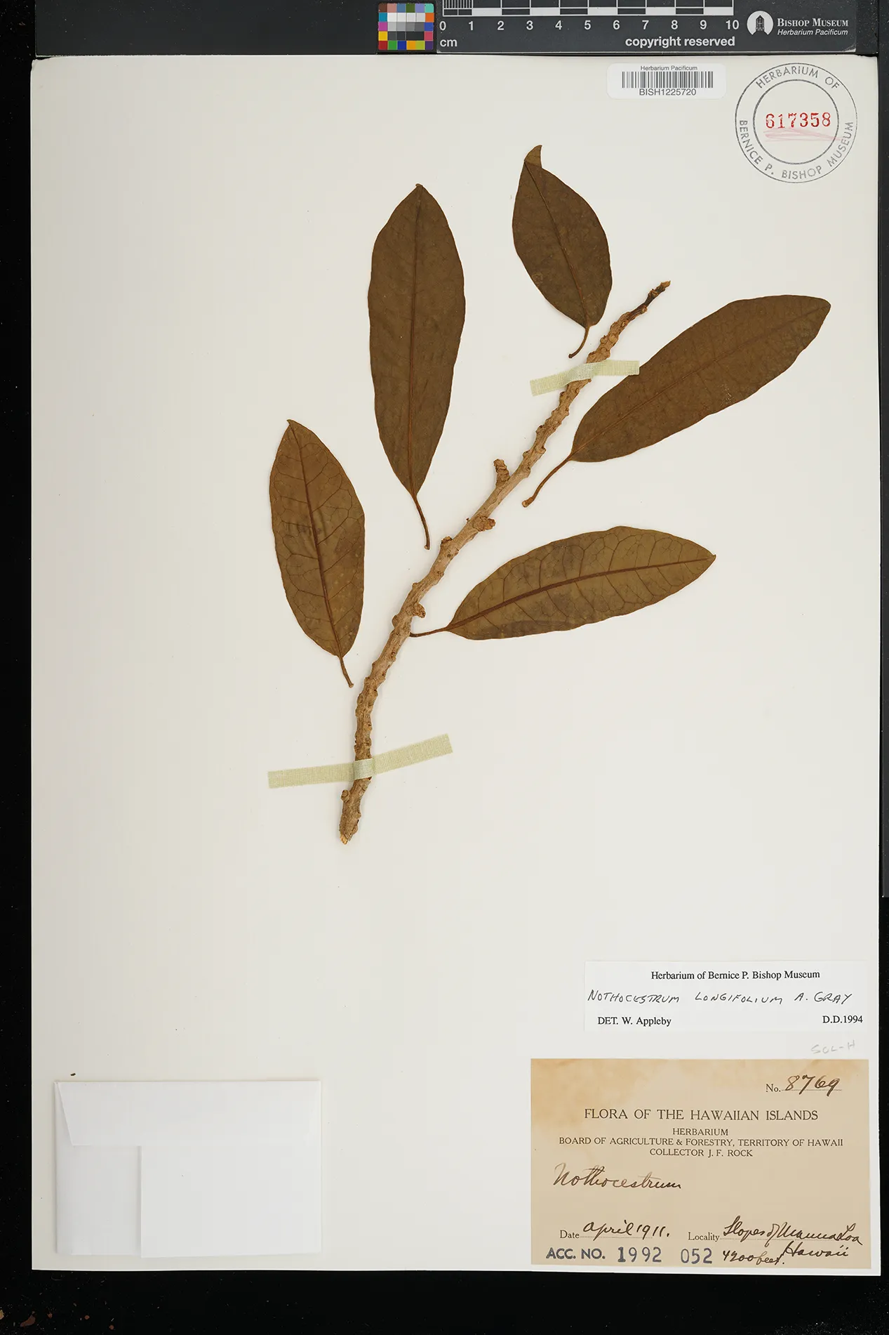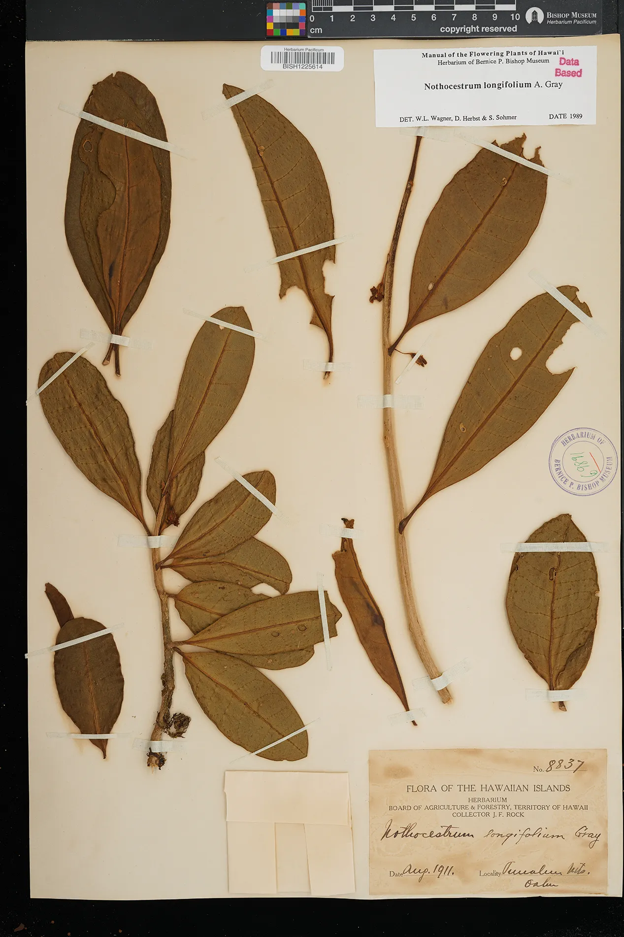 near Kumakalii, elev. approx 600 m, tree growing beside Nothocestrum 2834 |