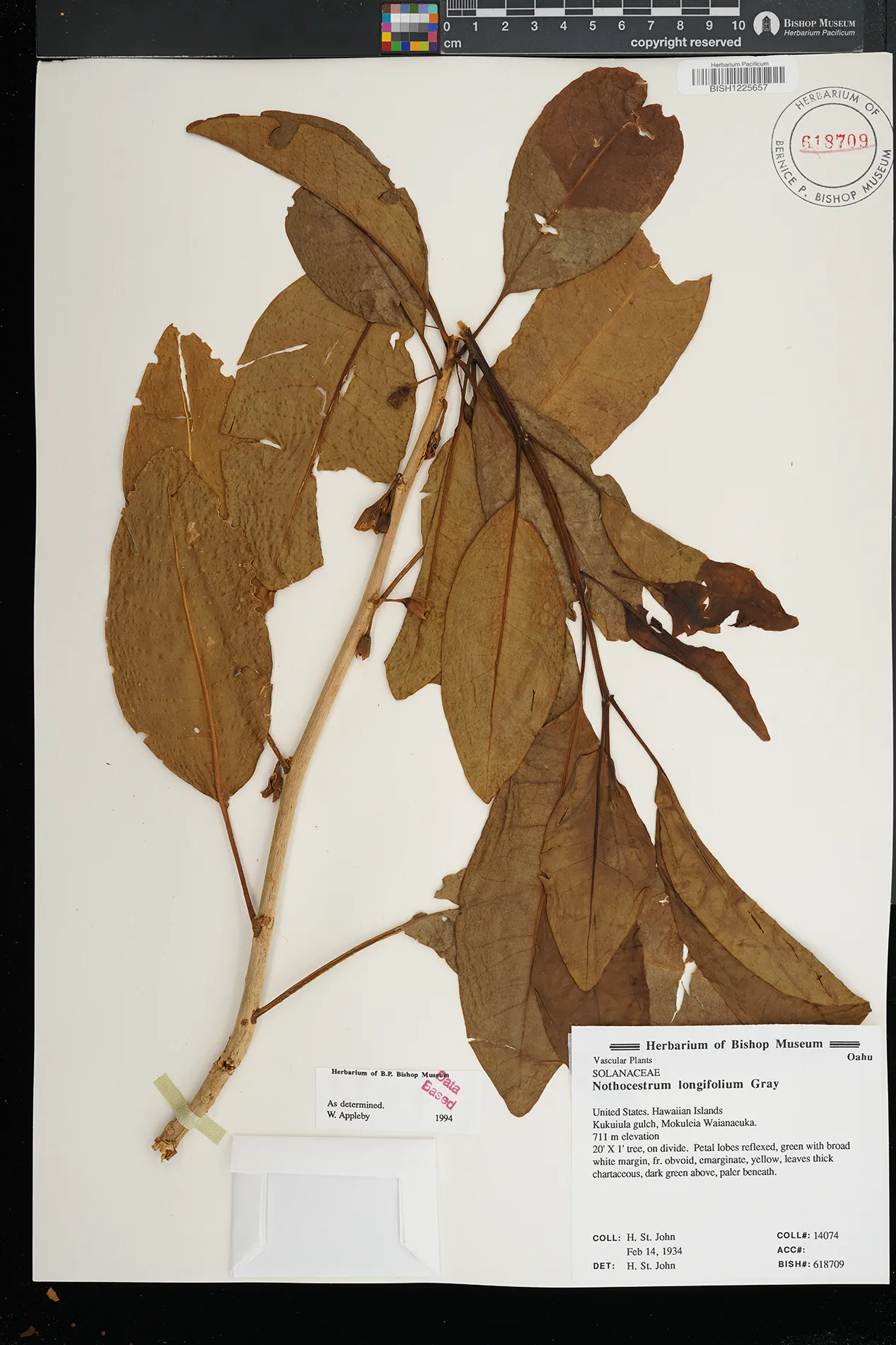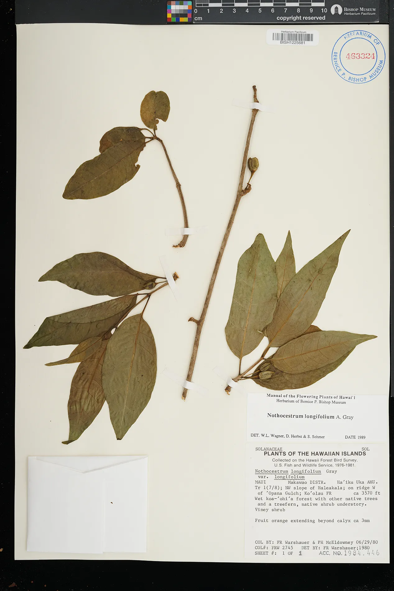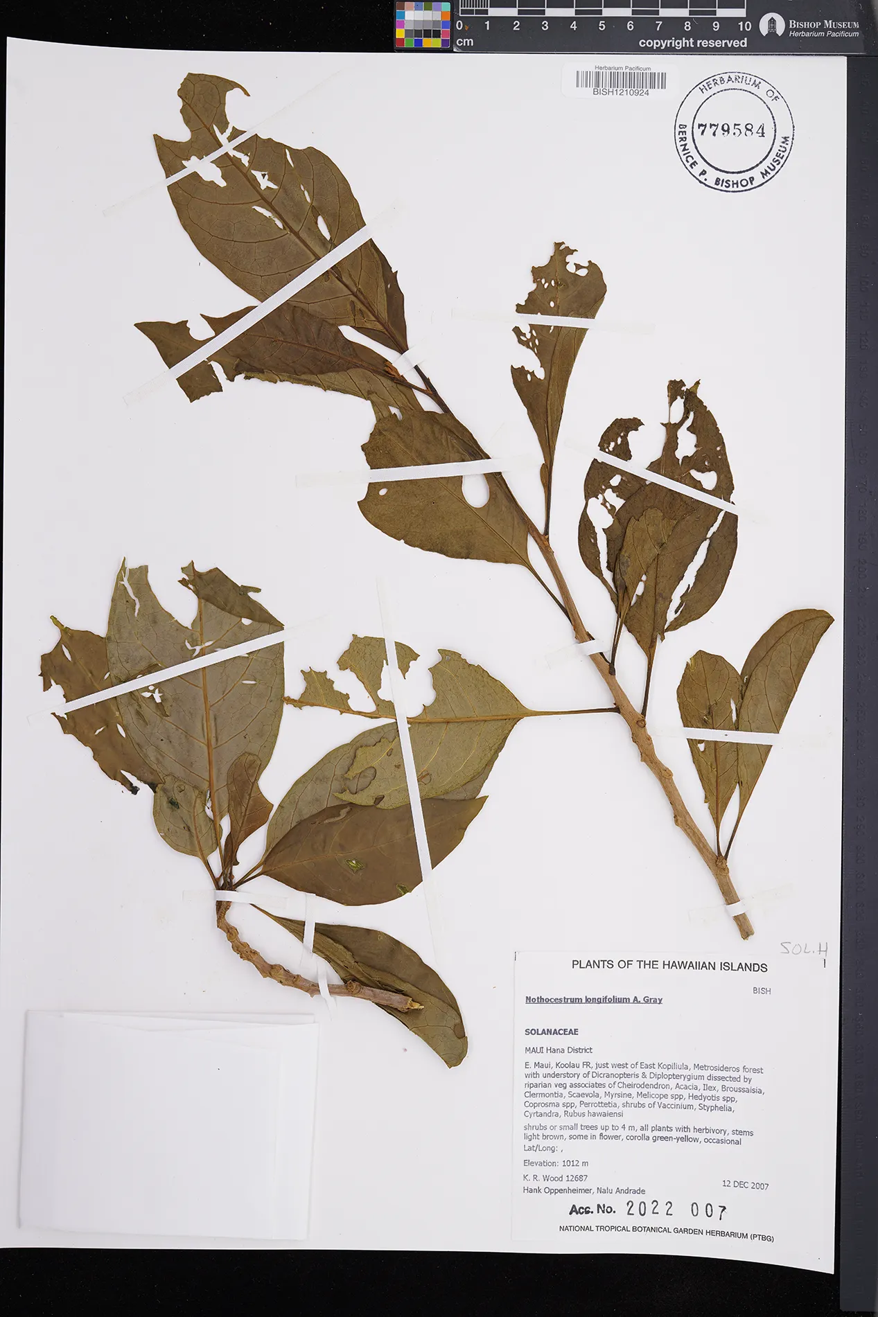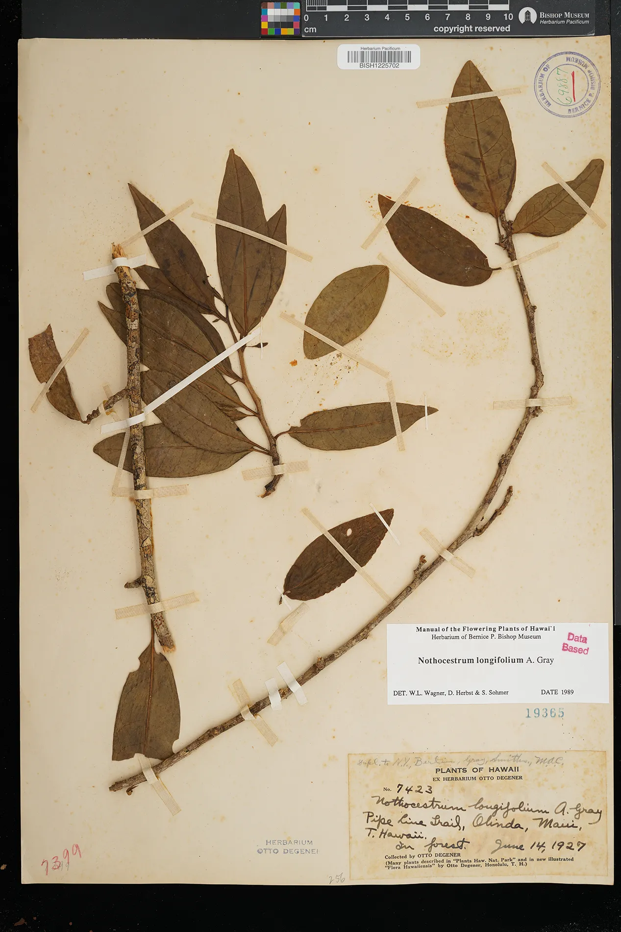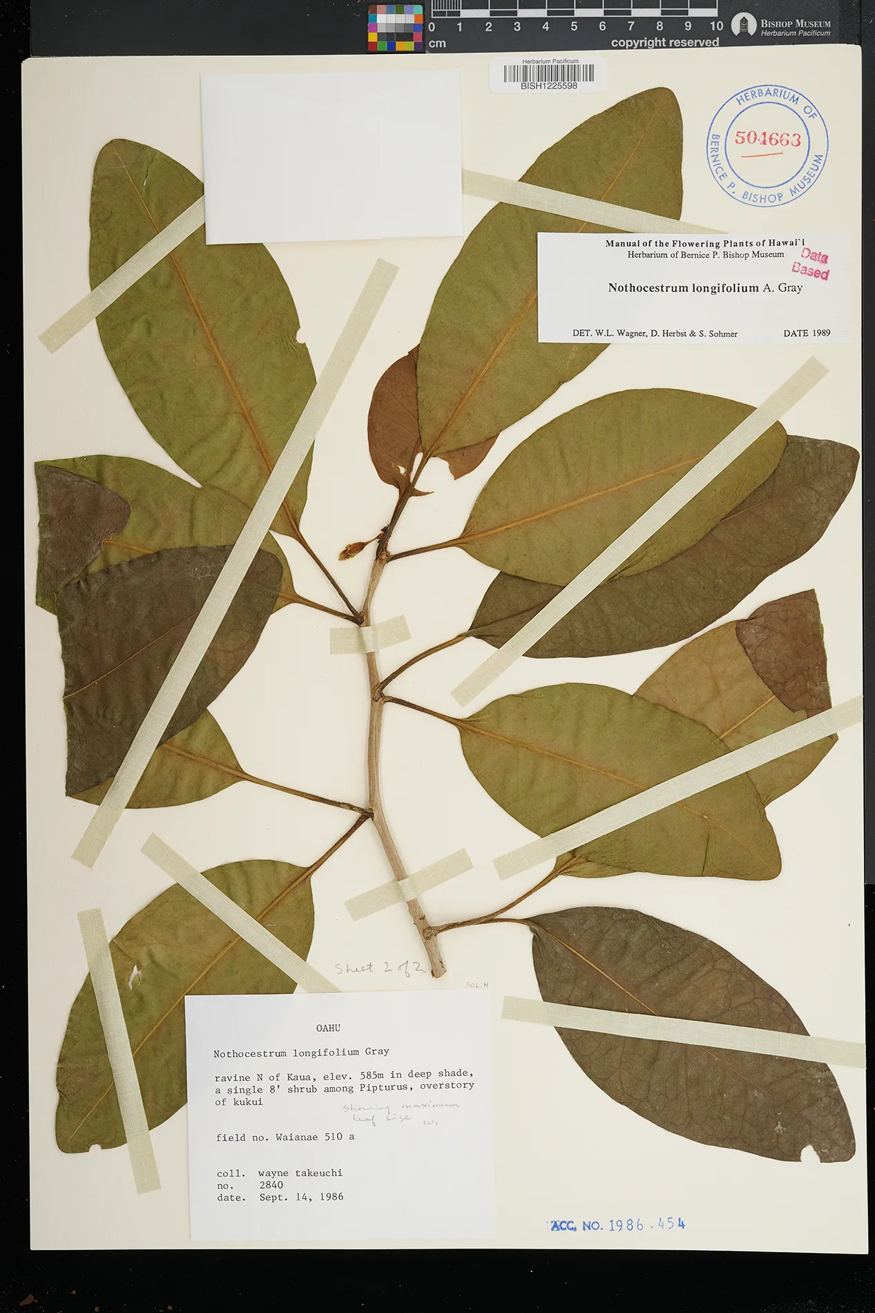 near Kumakalii, elev. approx 600 m, tree growing beside Nothocestrum 2834 |