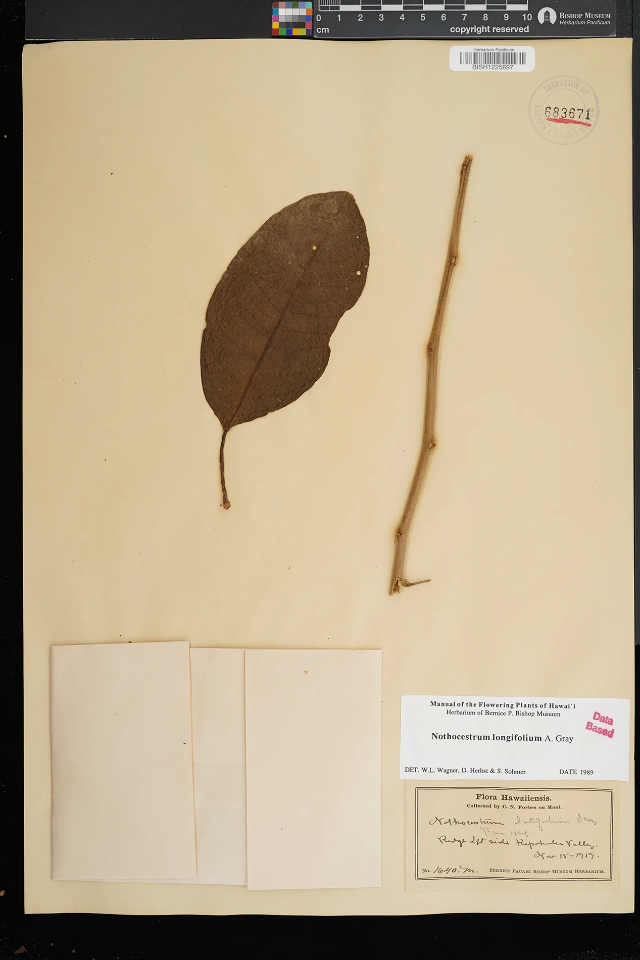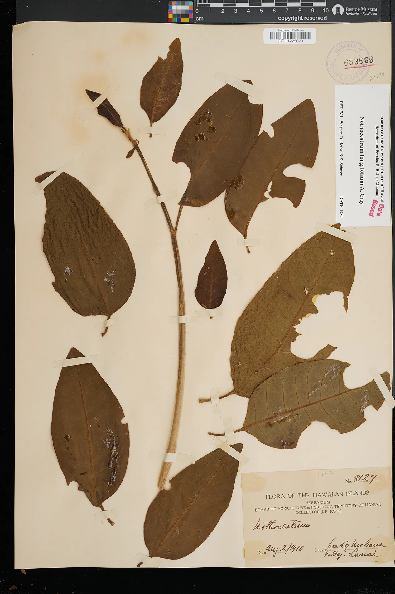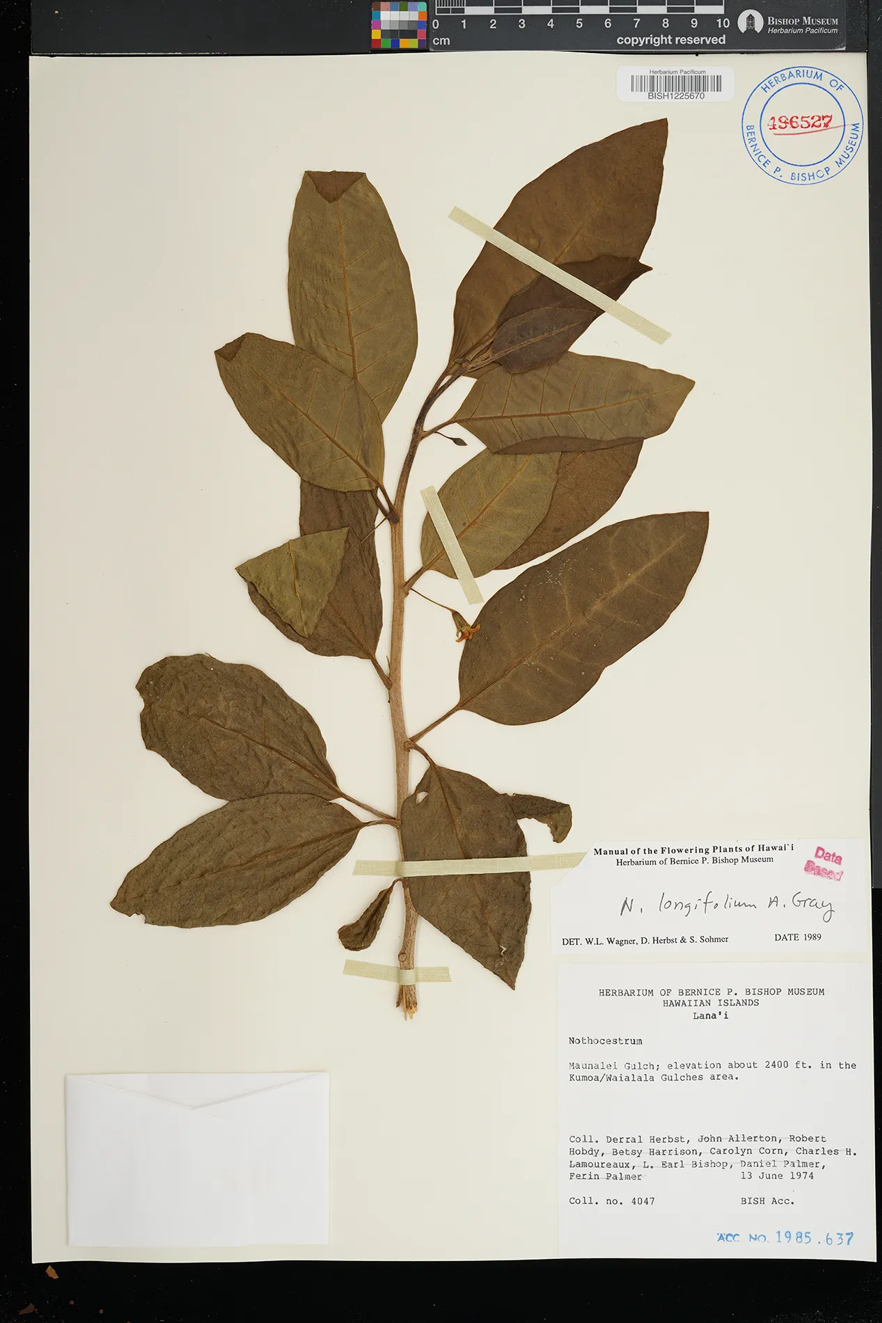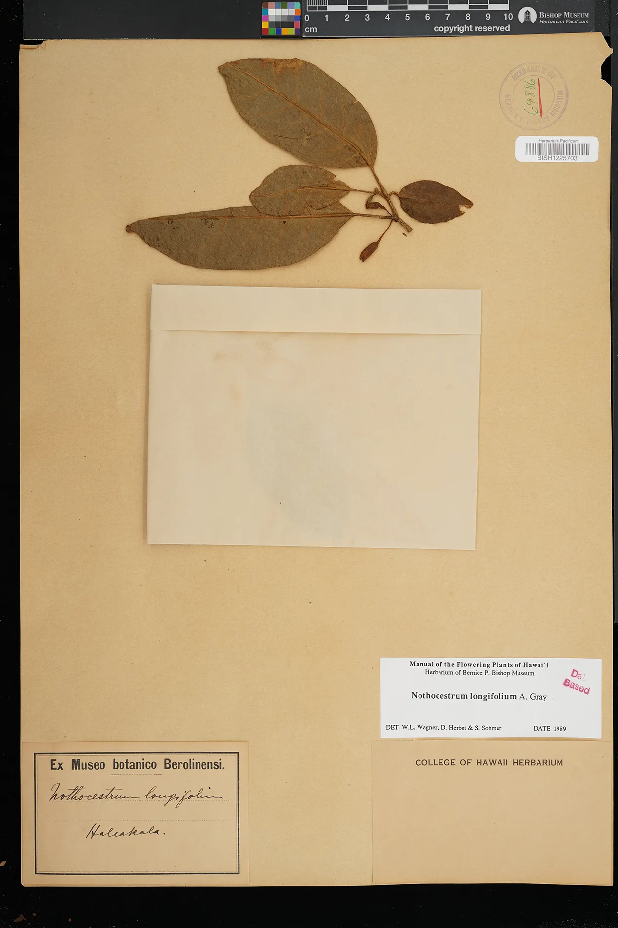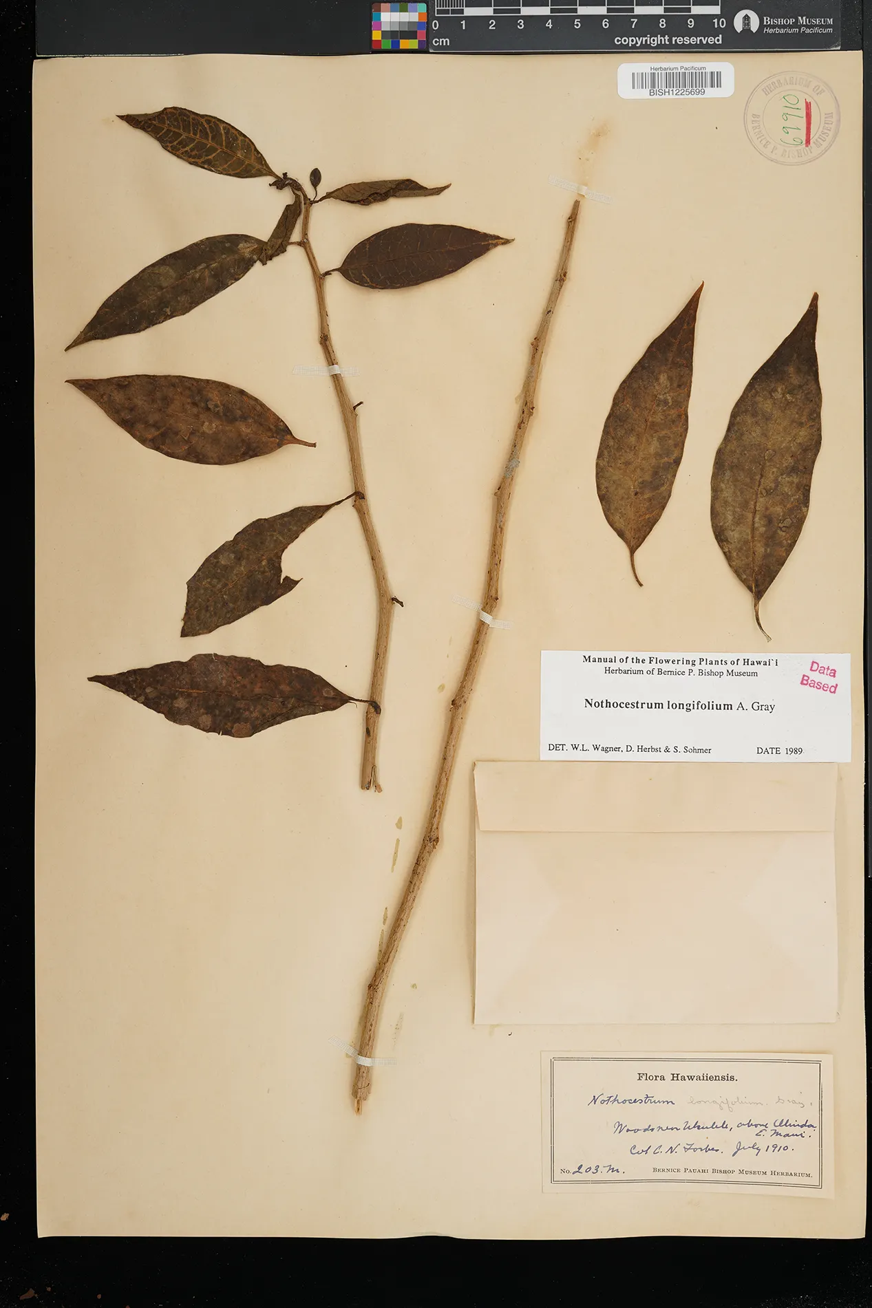 near Kumakalii, elev. approx 600 m, tree growing beside Nothocestrum 2834 |