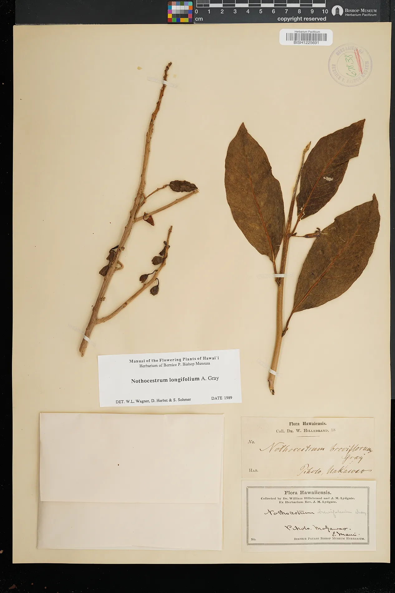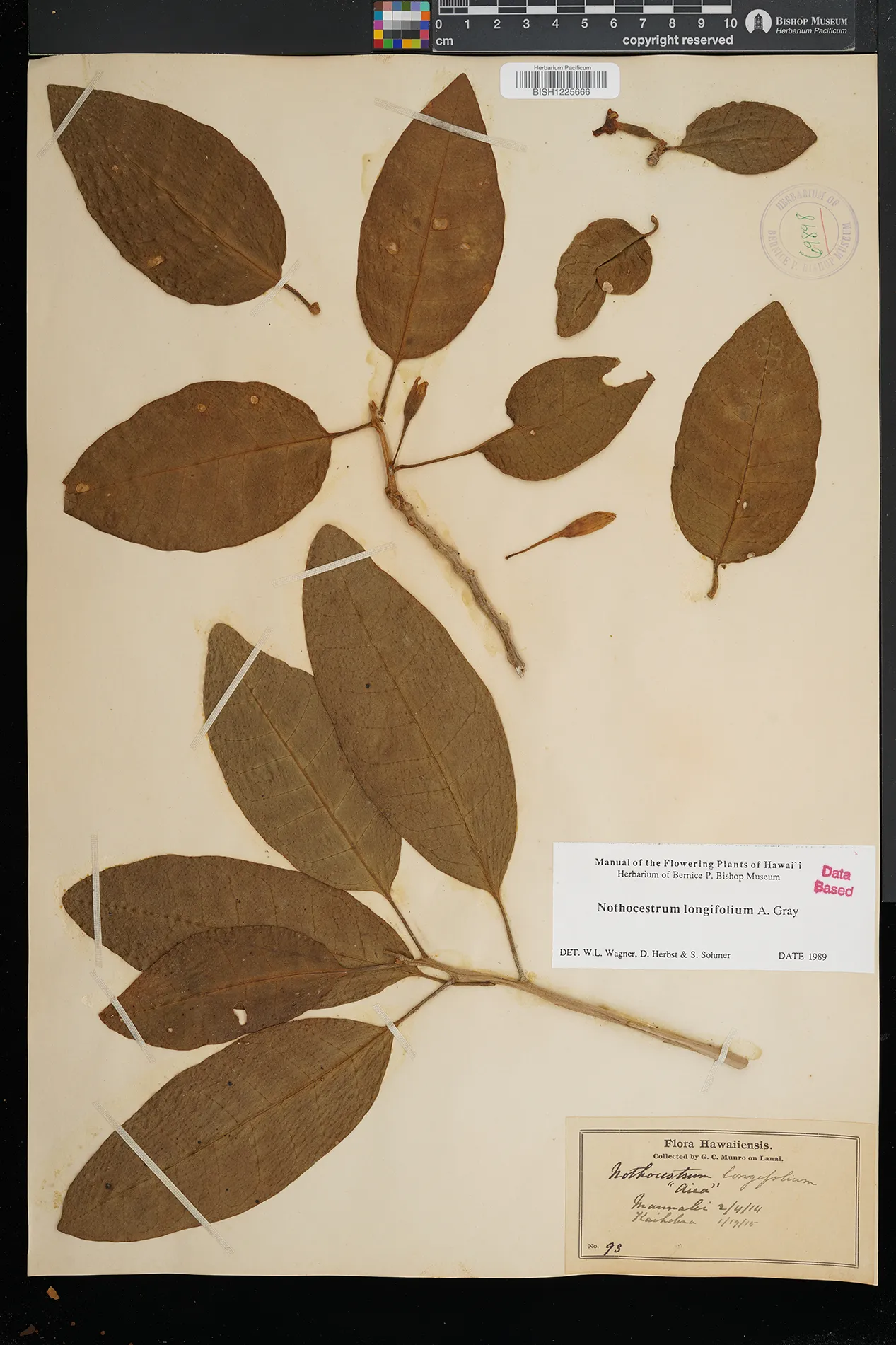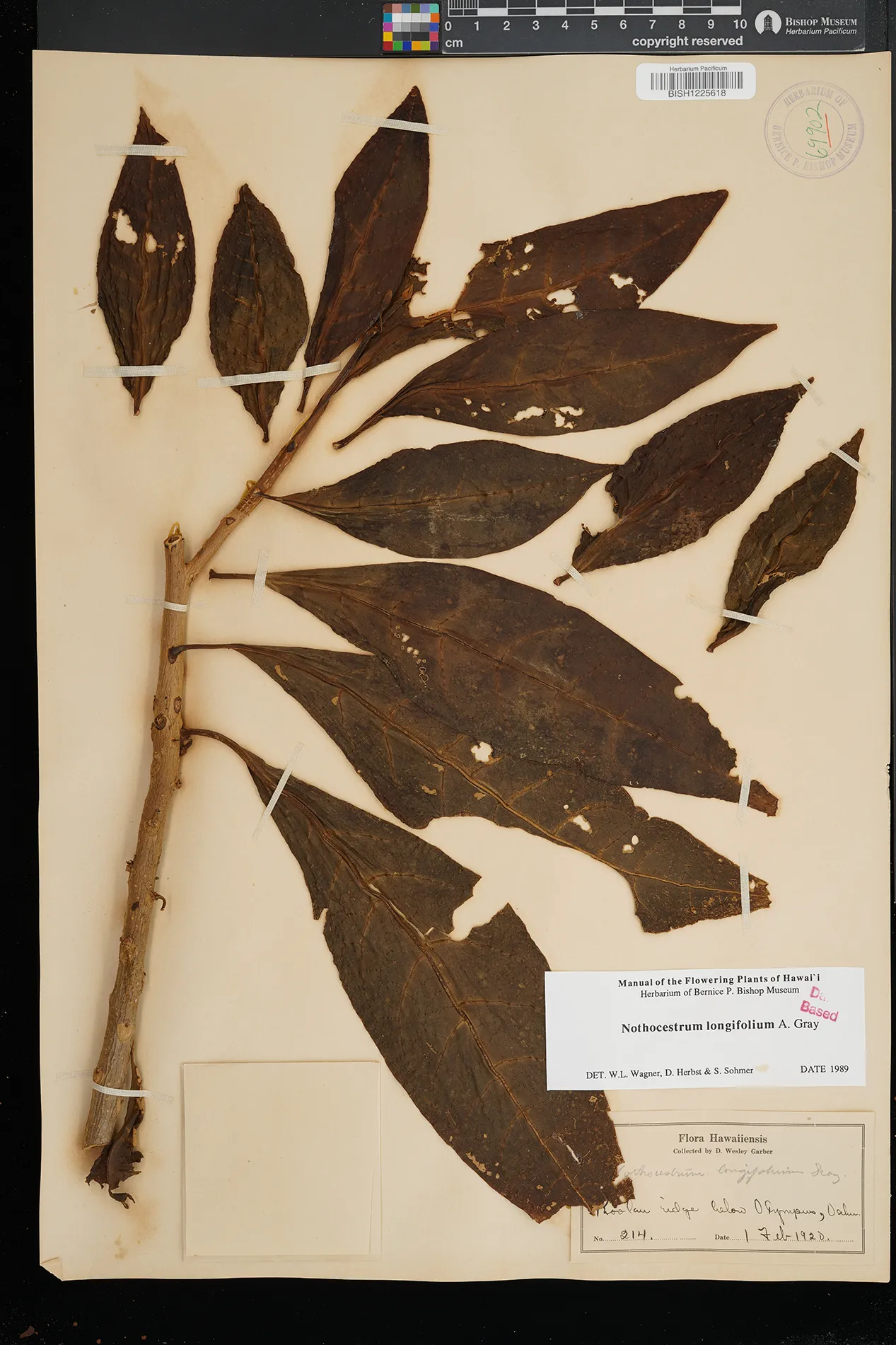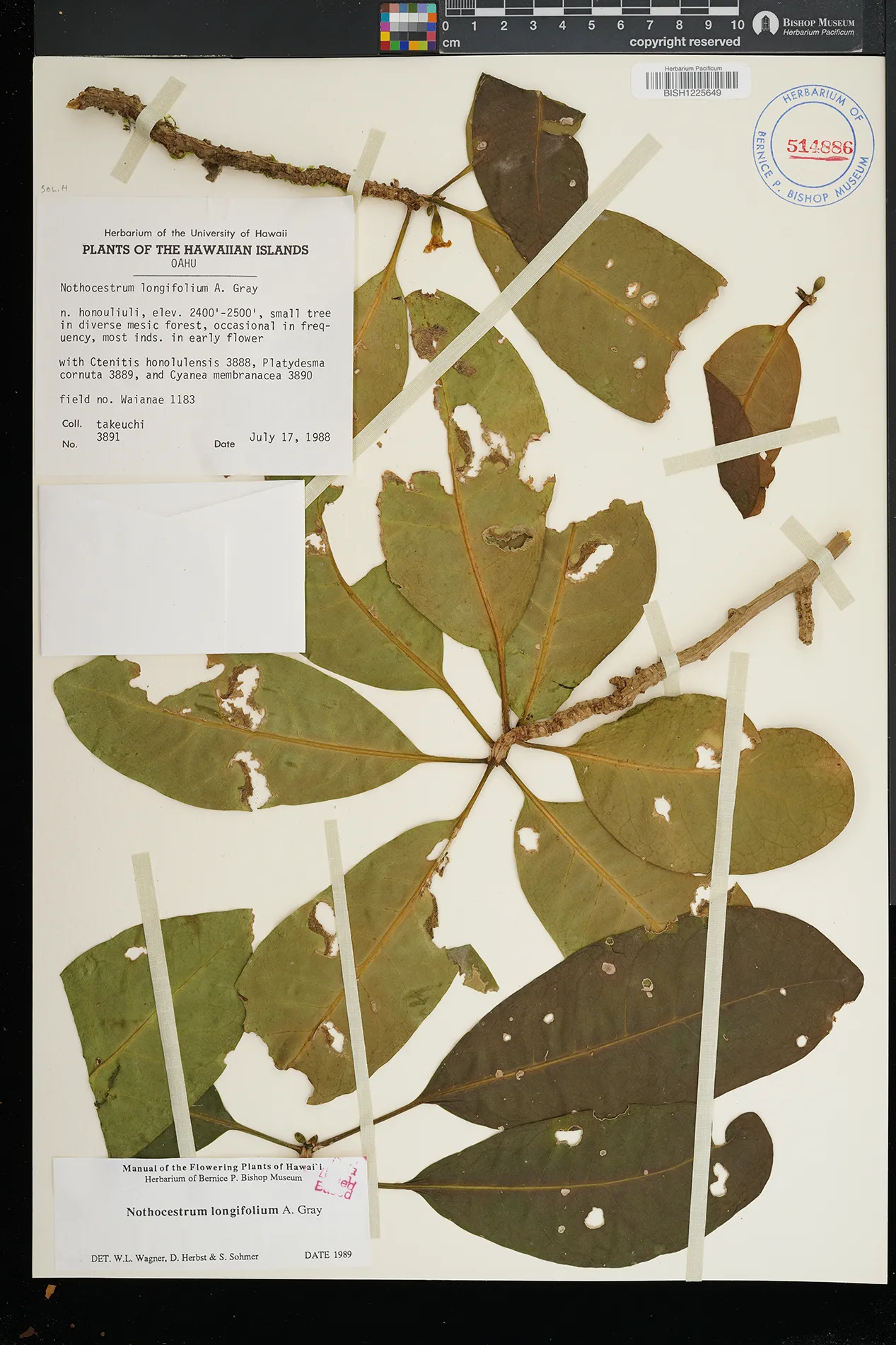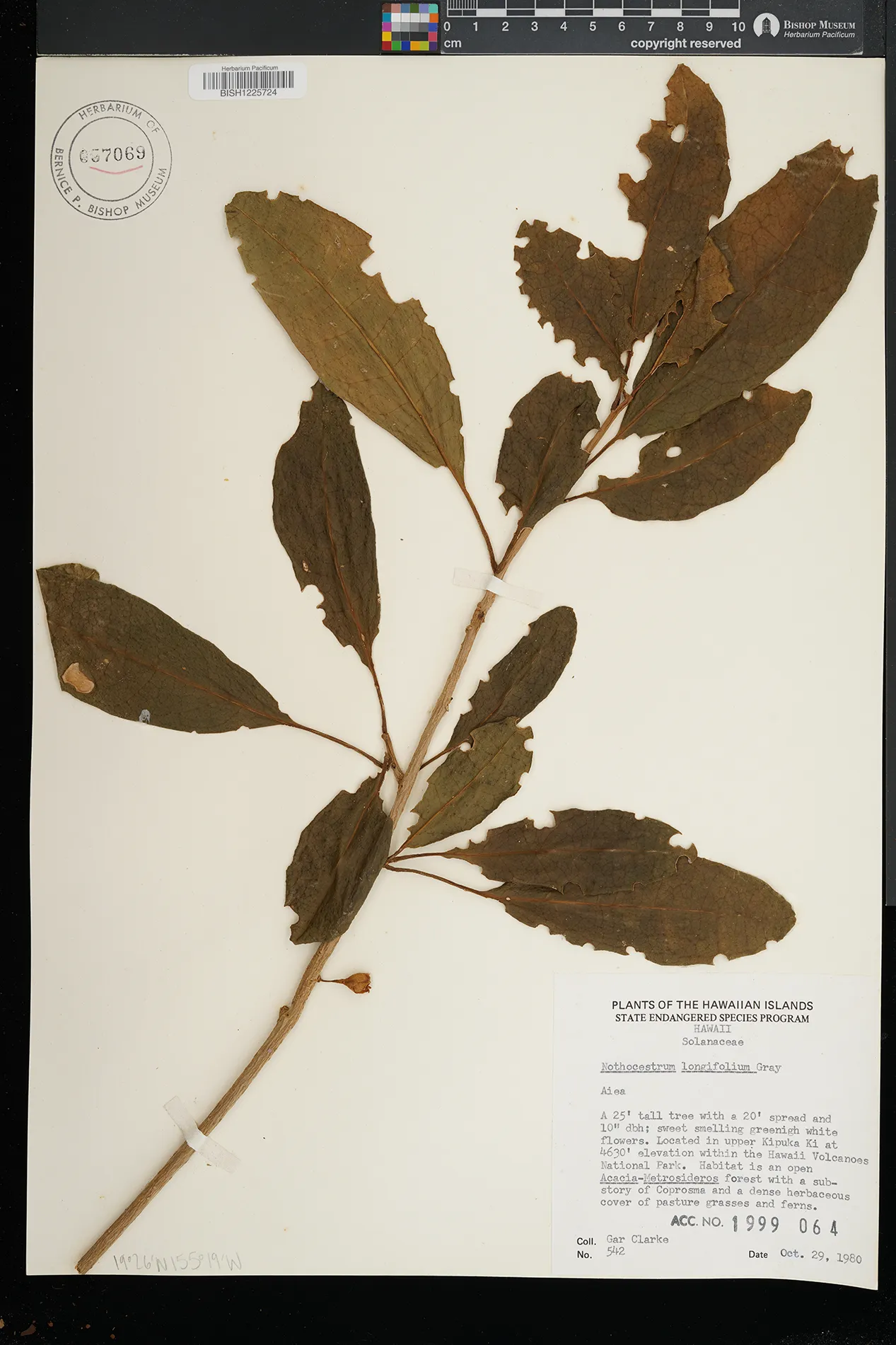 near Kumakalii, elev. approx 600 m, tree growing beside Nothocestrum 2834 |