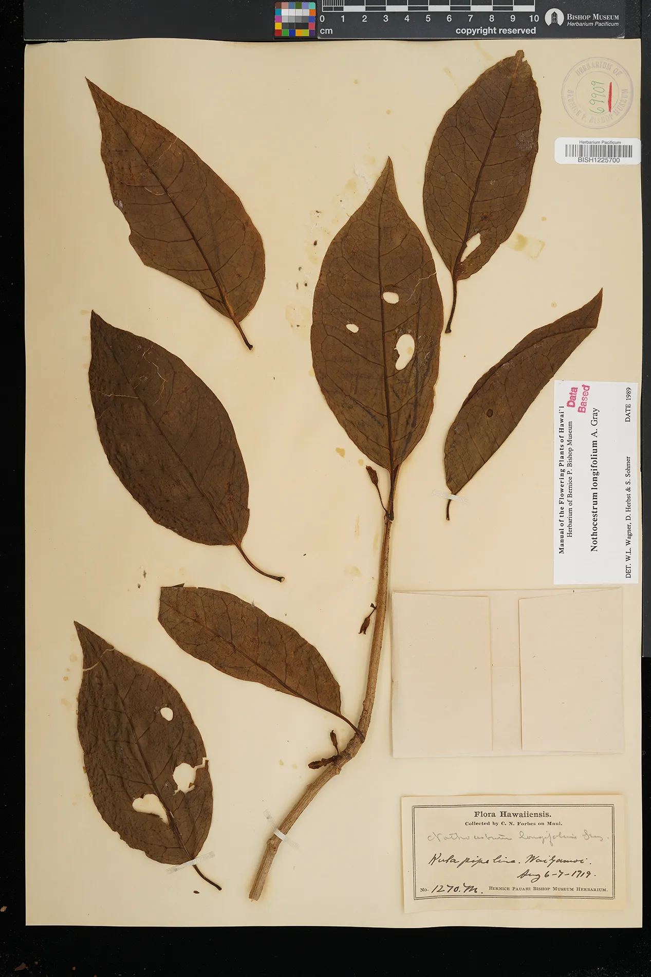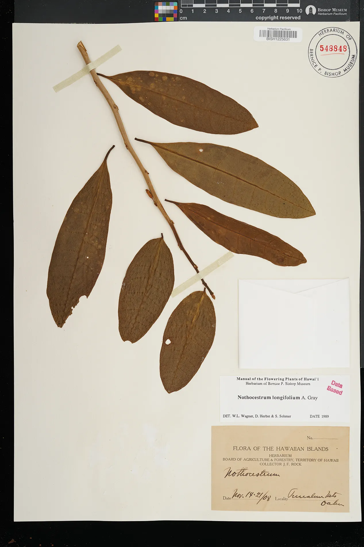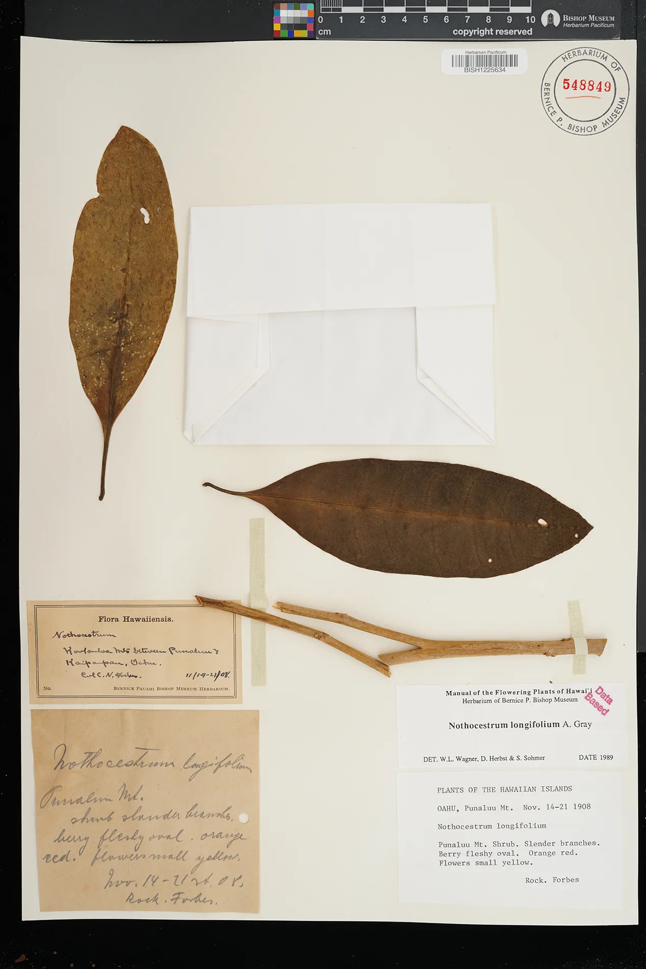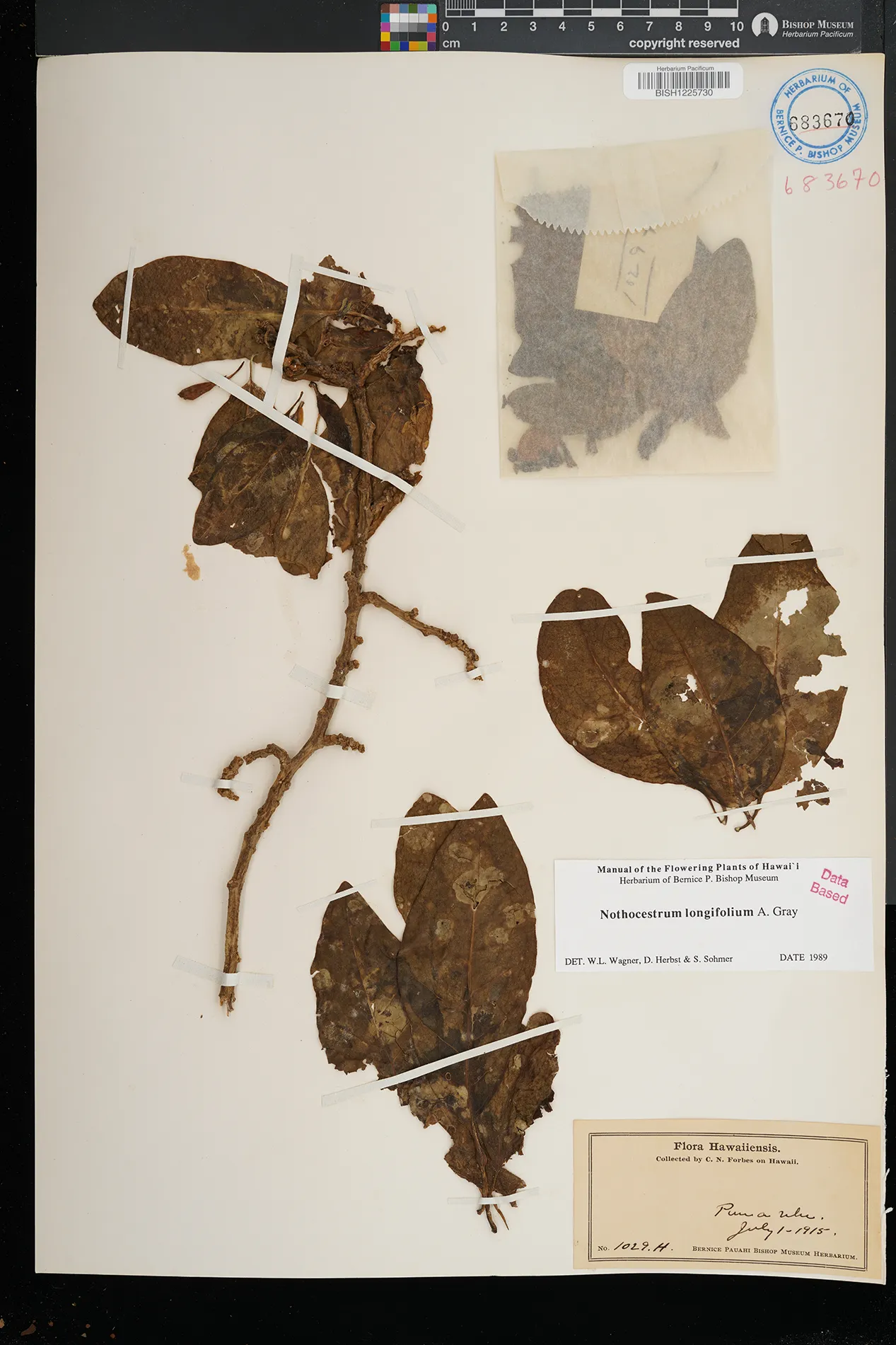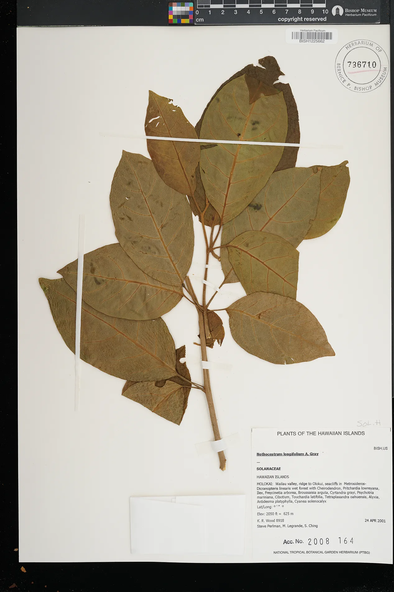 near Kumakalii, elev. approx 600 m, tree growing beside Nothocestrum 2834 |