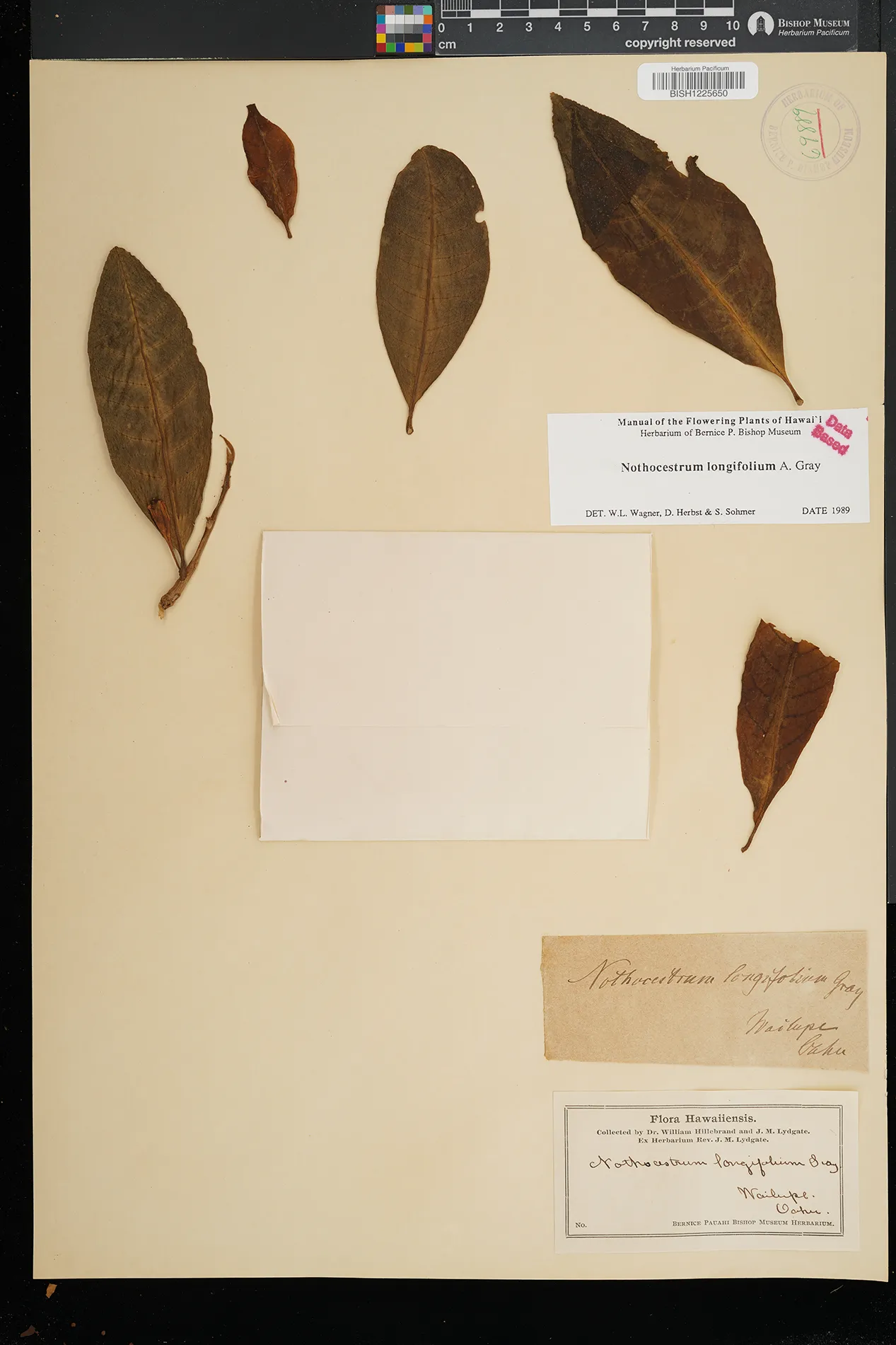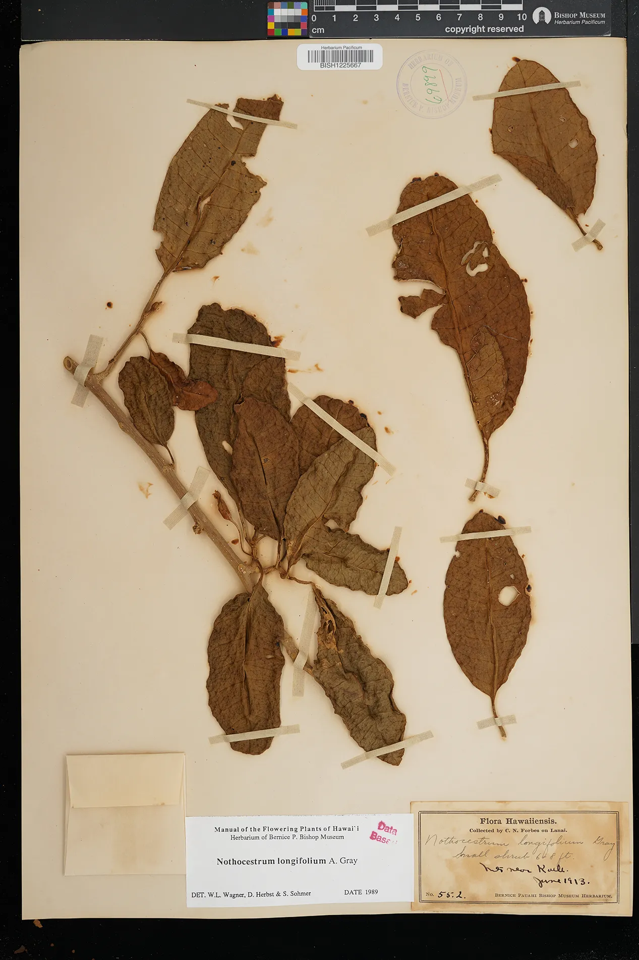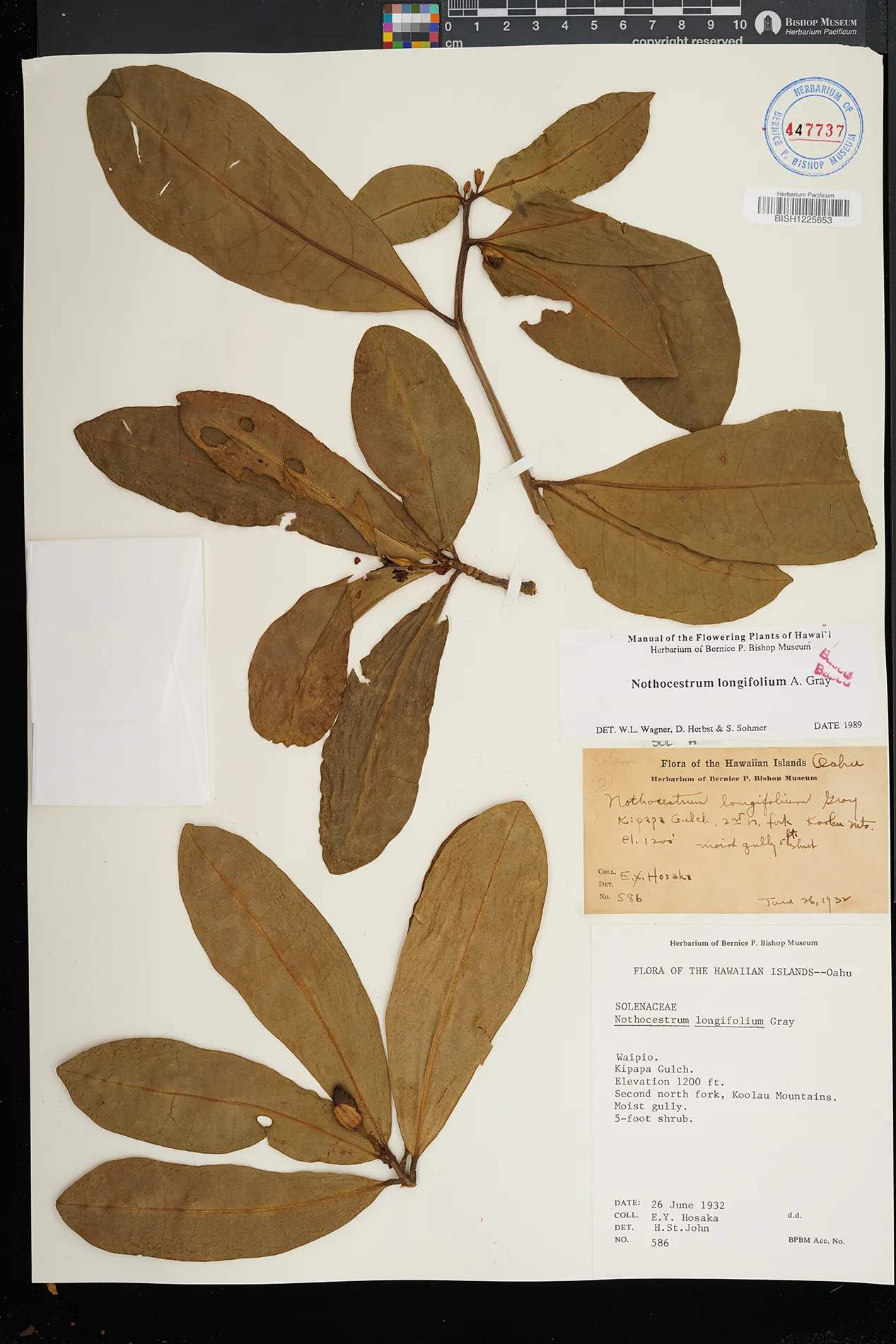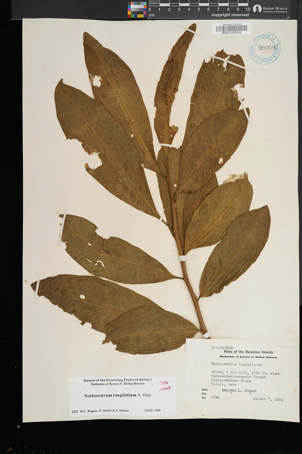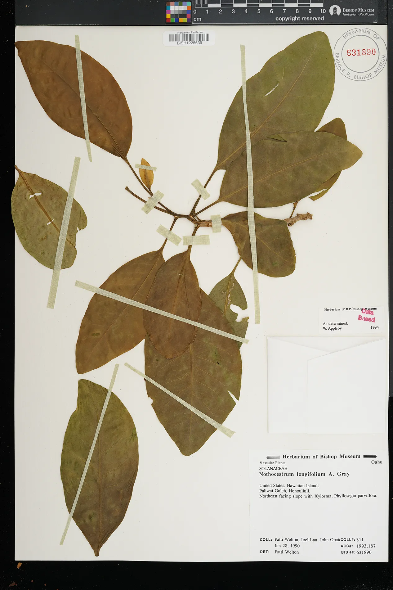 near Kumakalii, elev. approx 600 m, tree growing beside Nothocestrum 2834 |