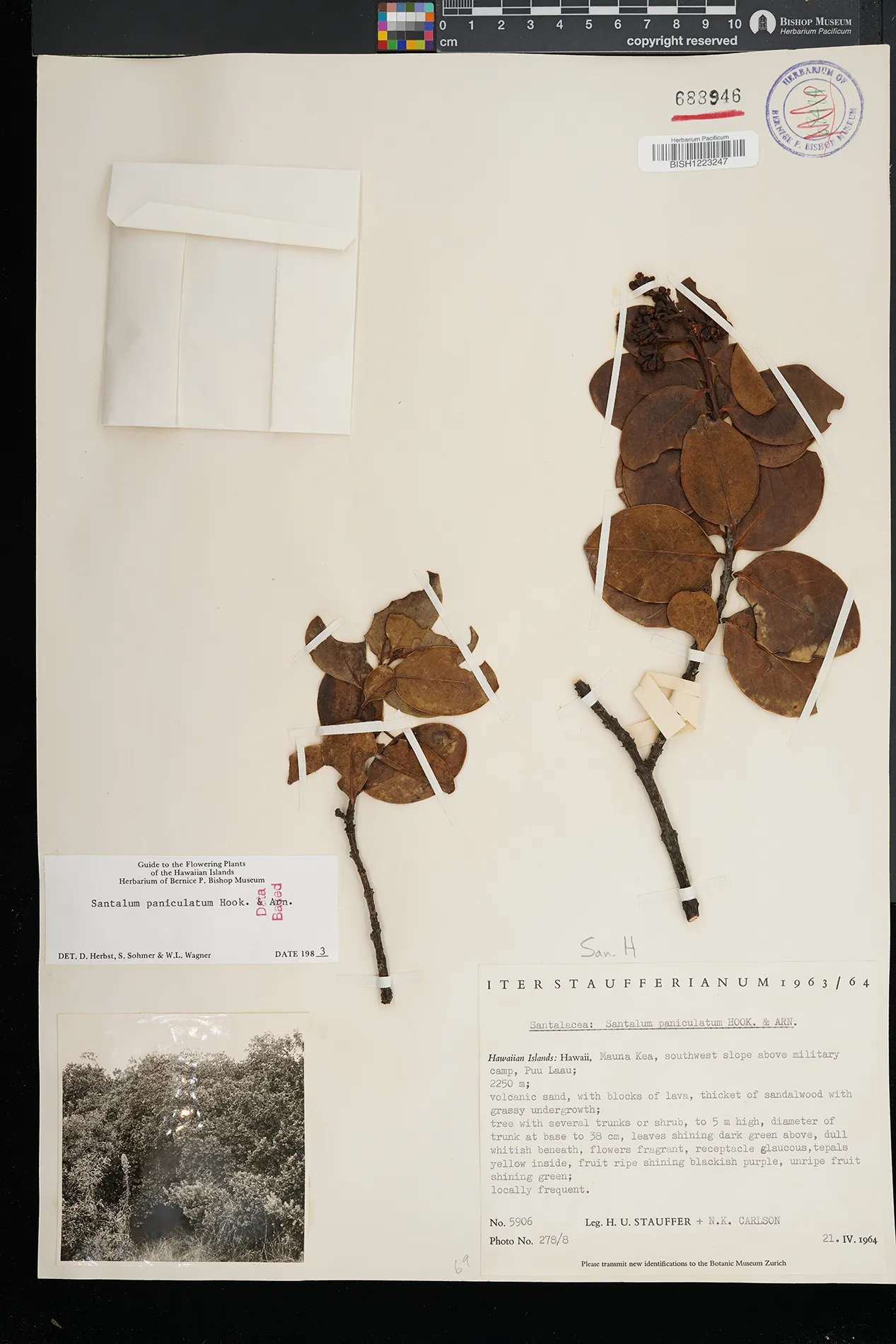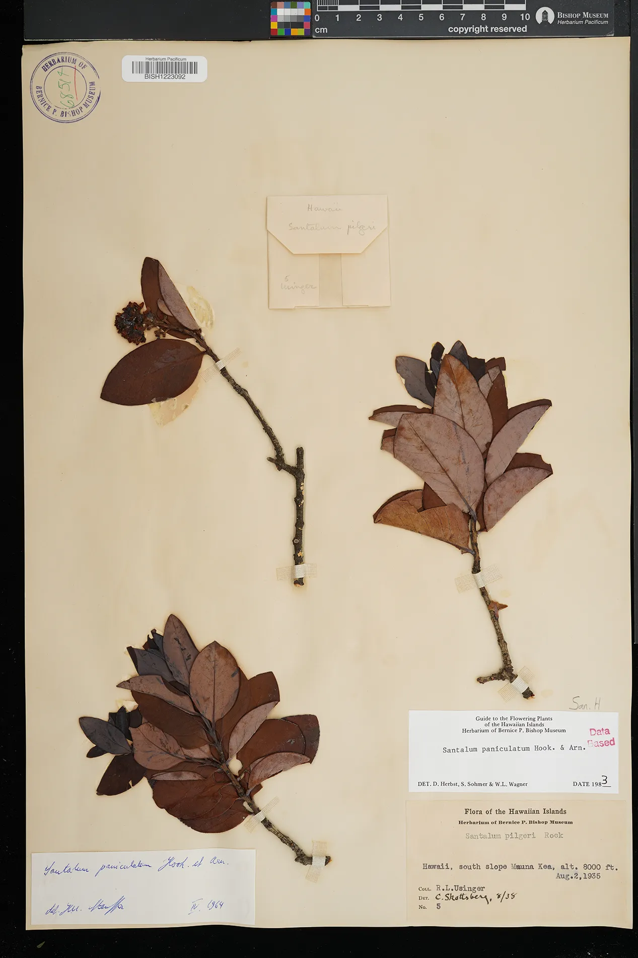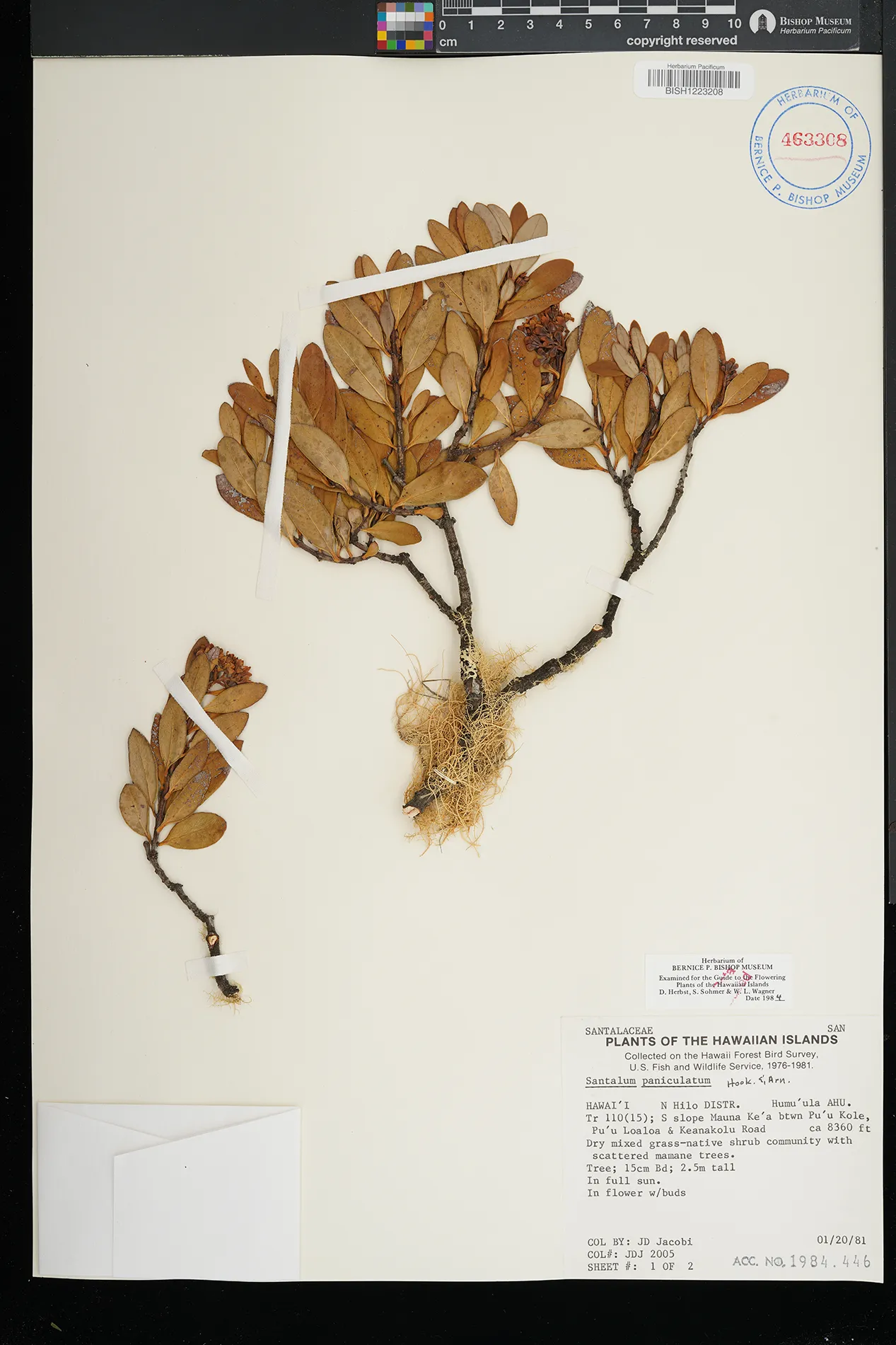 alluvial fan from Mauna Kea with Chenopodium, Sophora, Euphorbia, Myoporum, Santalum, Dodonaea |