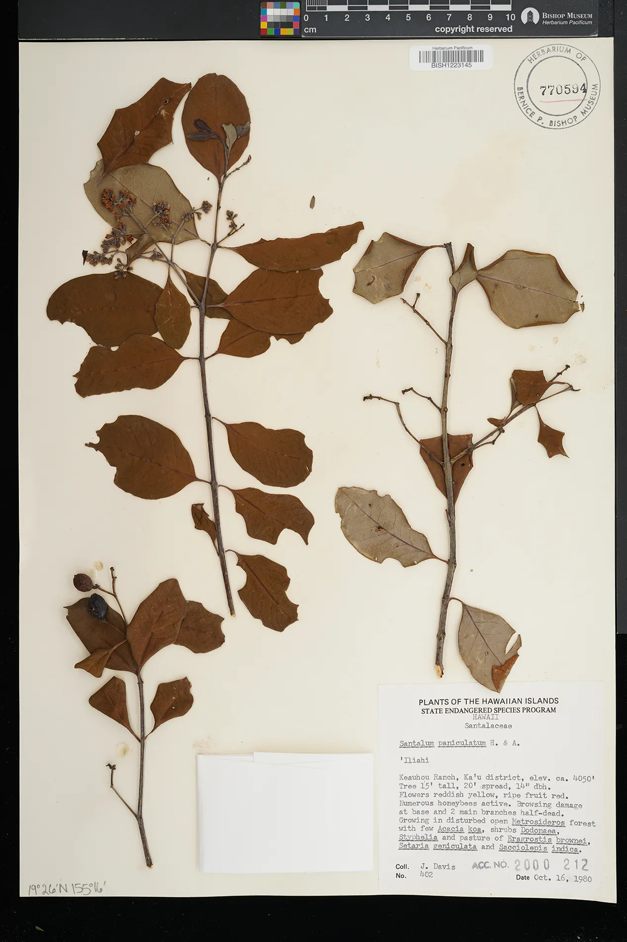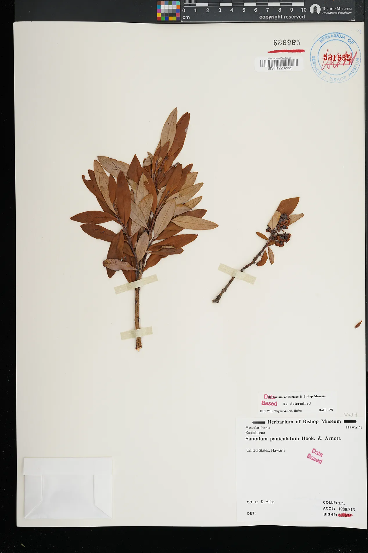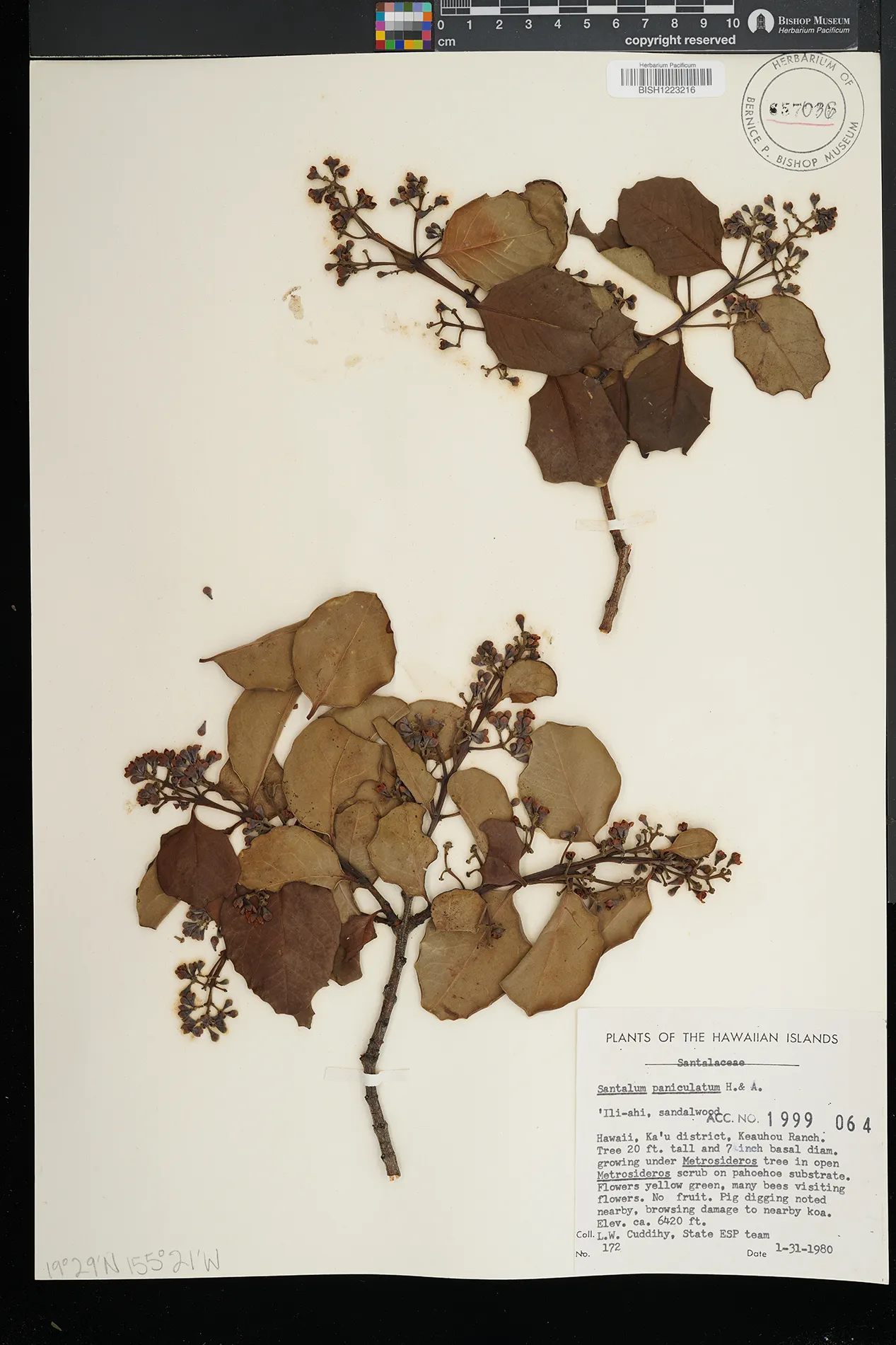 alluvial fan from Mauna Kea with Chenopodium, Sophora, Euphorbia, Myoporum, Santalum, Dodonaea |